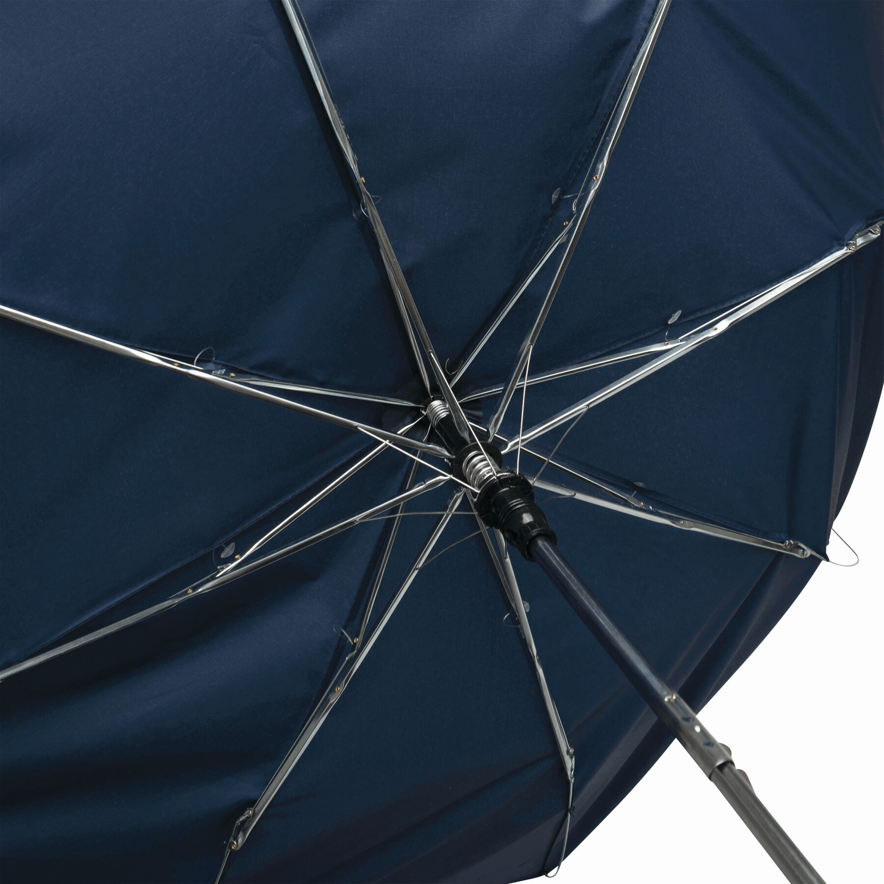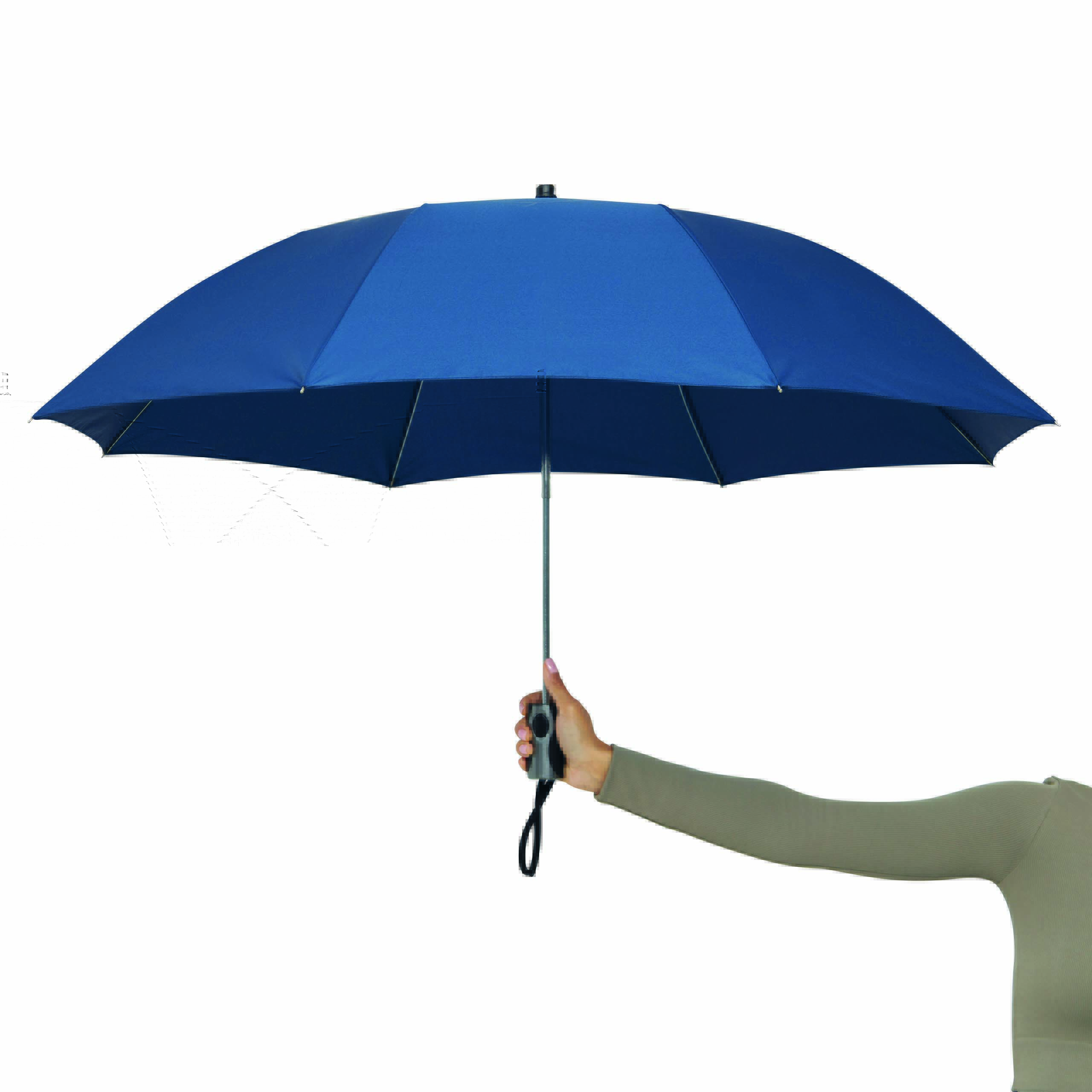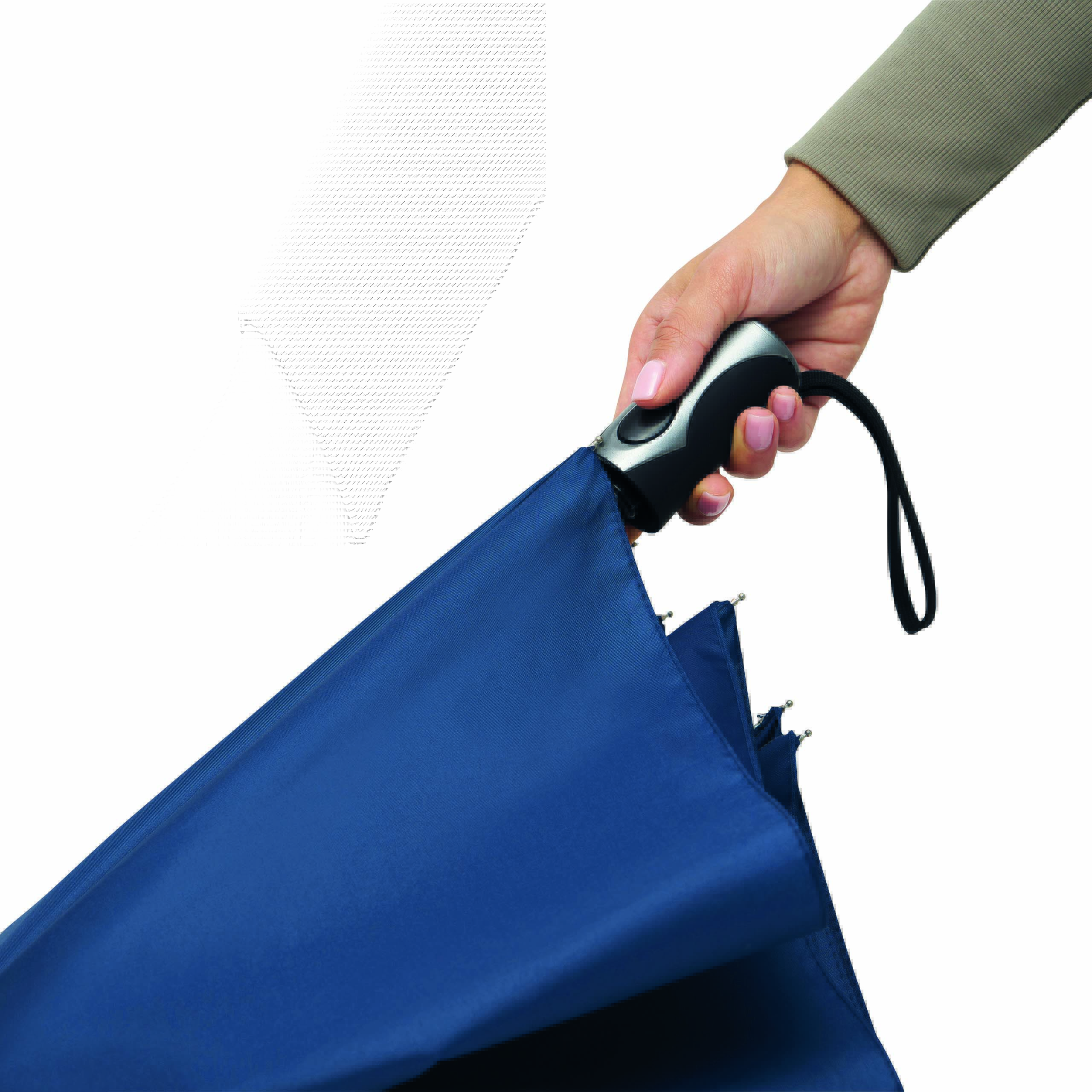 Automatyczny mini parasol męski MISTER. Poszycie poliester-pongee, pokrowiec z jasną lamówką, metalowe szyny, 2 x składana metalowa laska, plastikowy uchwyt.