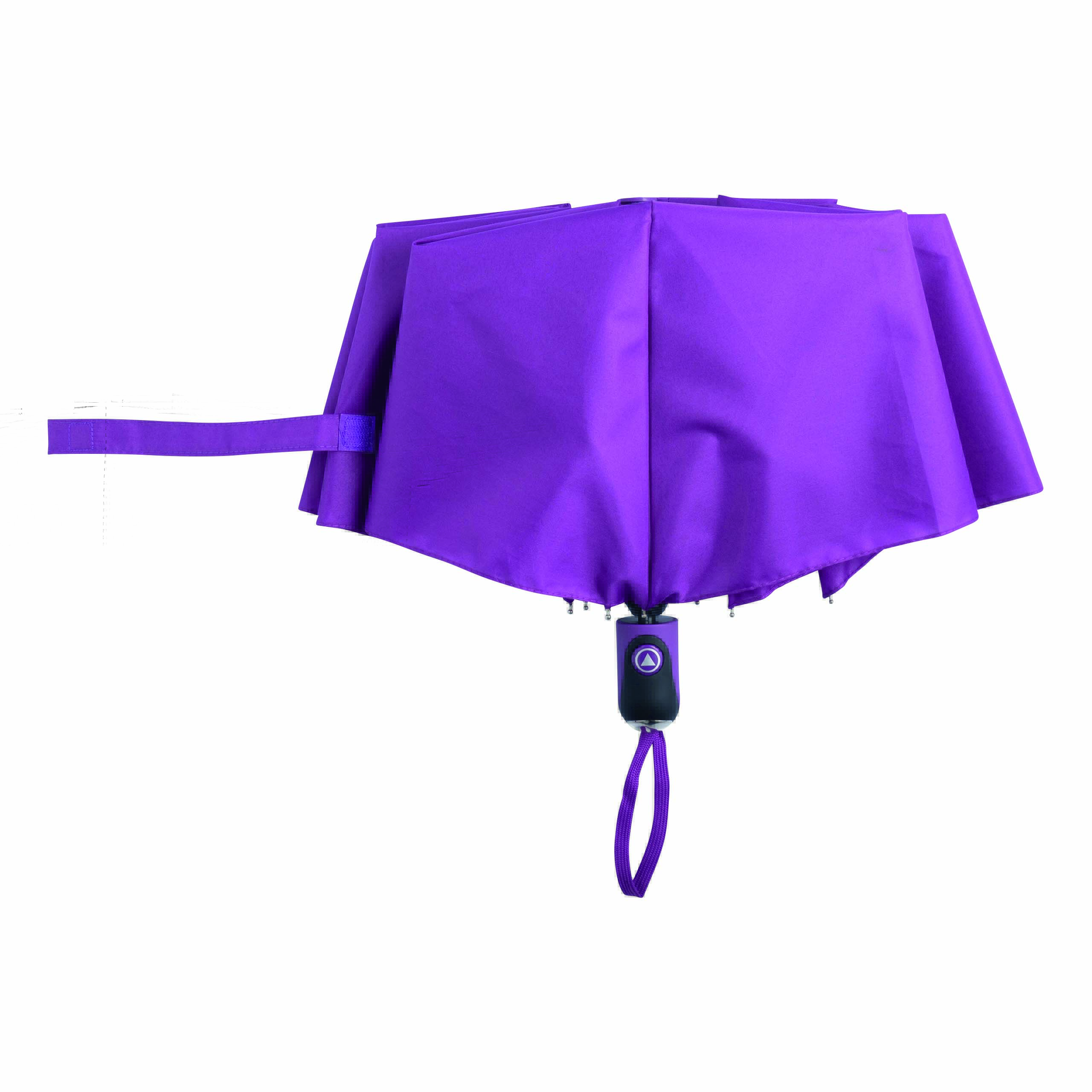 Automatyczny parasol mini COVER. Poszycie poliester-pongee, metalowe szyny, 3 x składana laska, uchwyt, przycisk i sznureczek w kolorze poszycia.