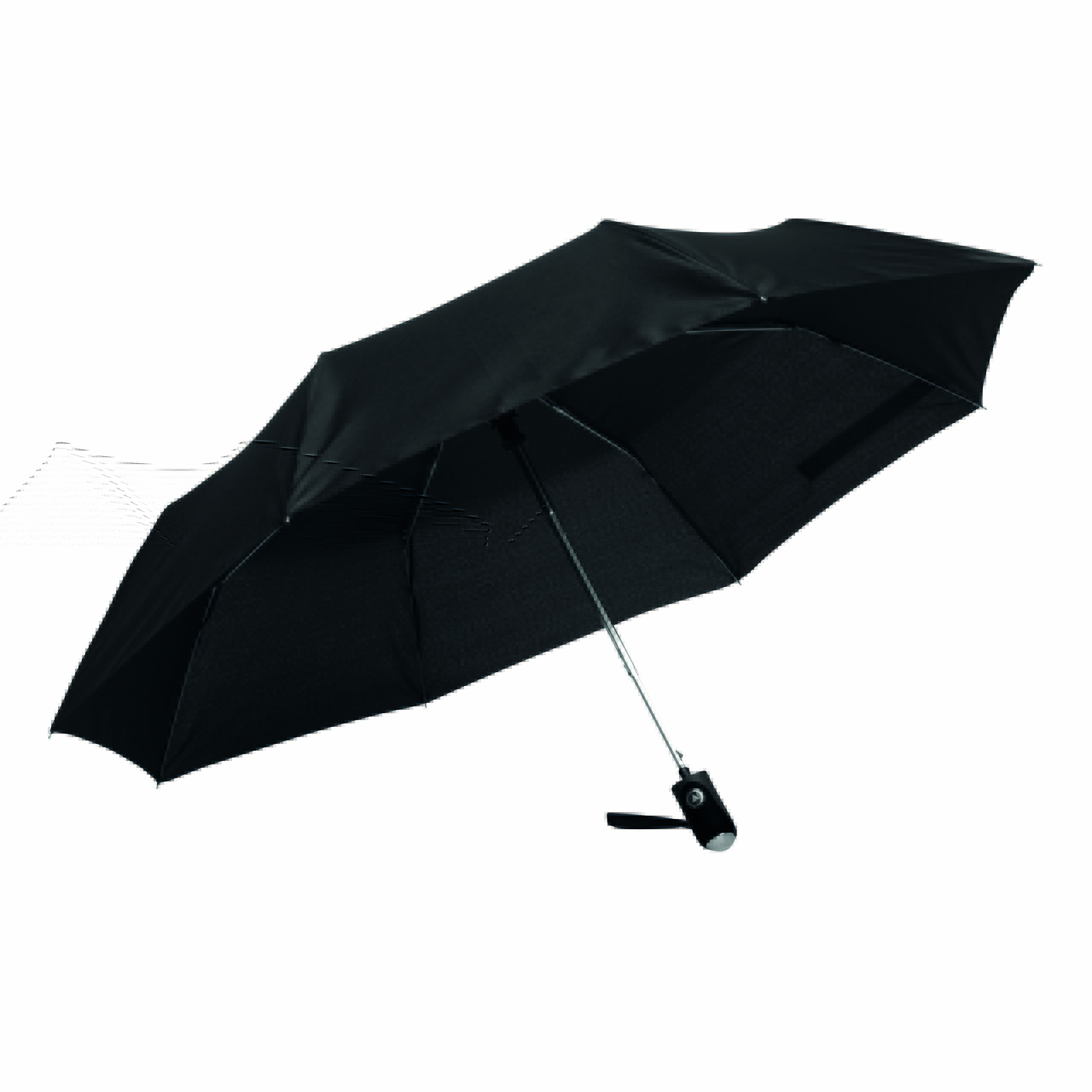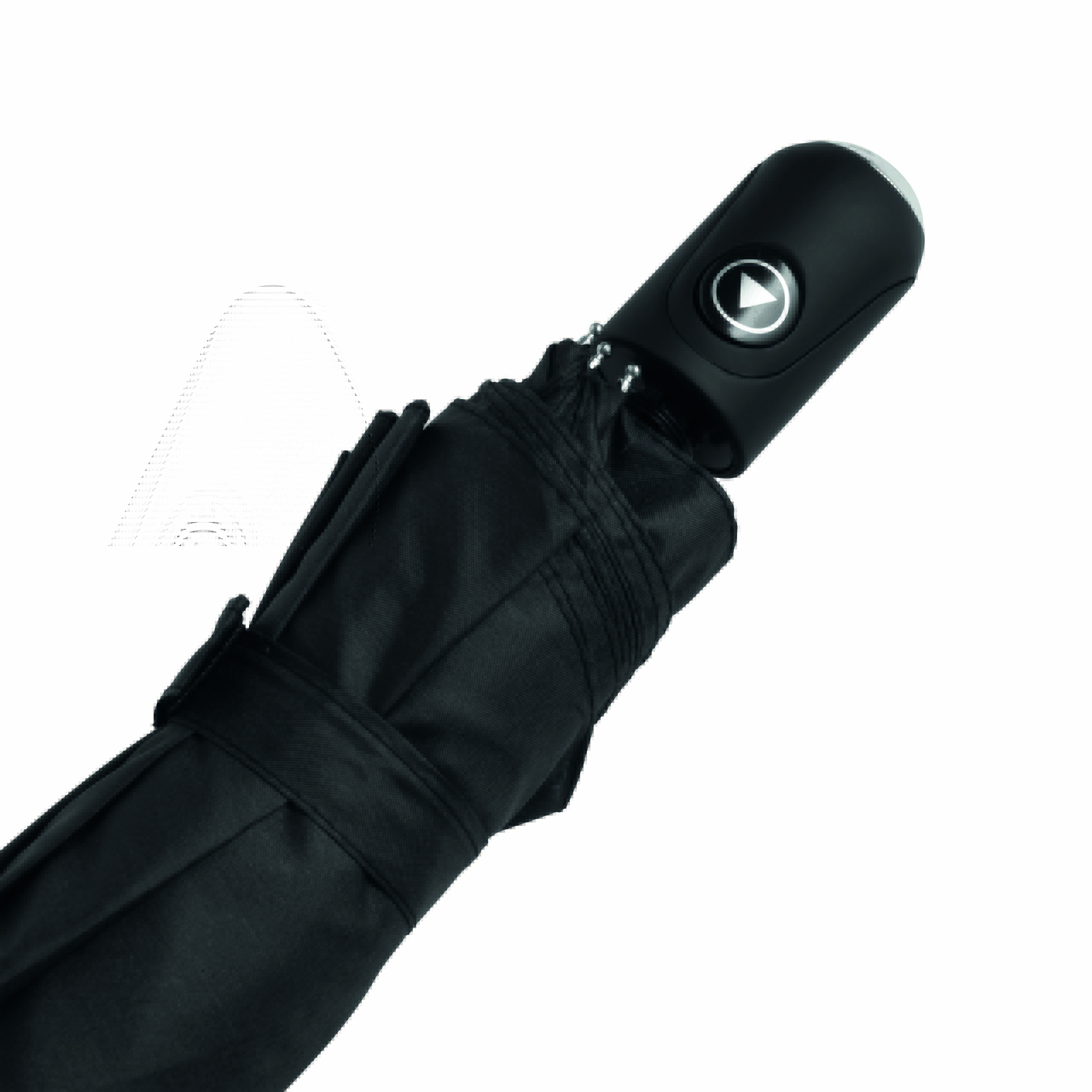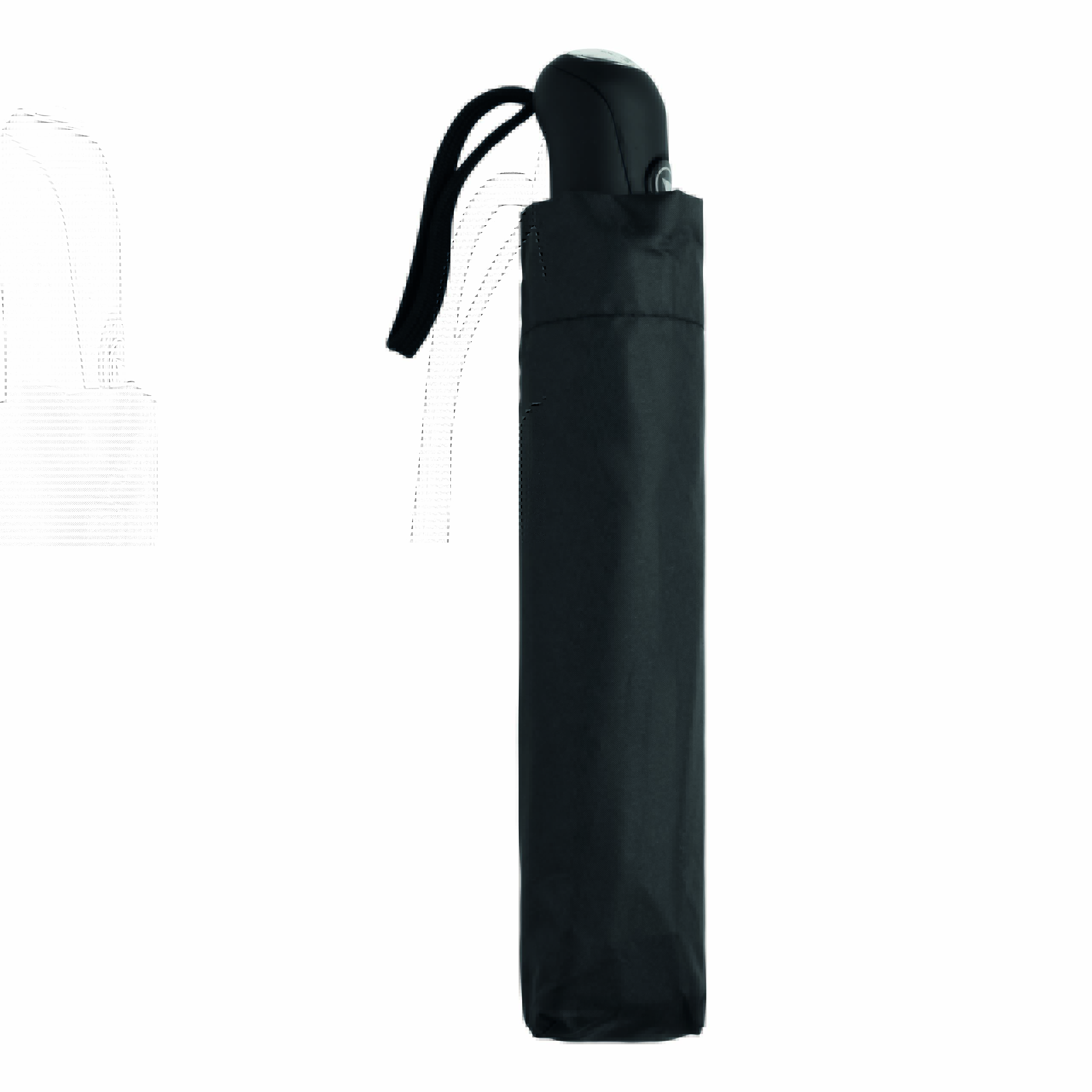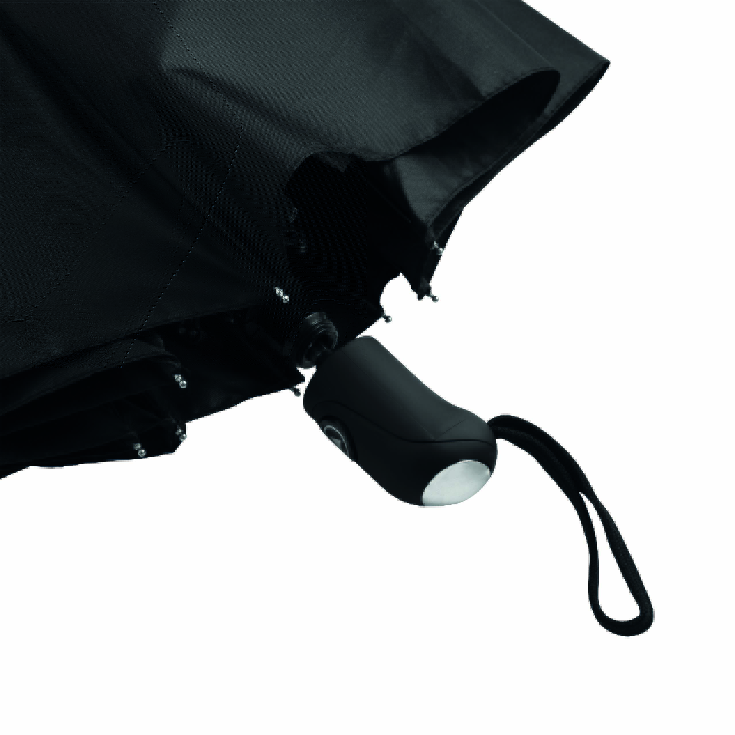 Automatyczny parasol mini COVER. Poszycie poliester-pongee, metalowe szyny, 3 x składana laska, uchwyt, przycisk i sznureczek w kolorze poszycia.
