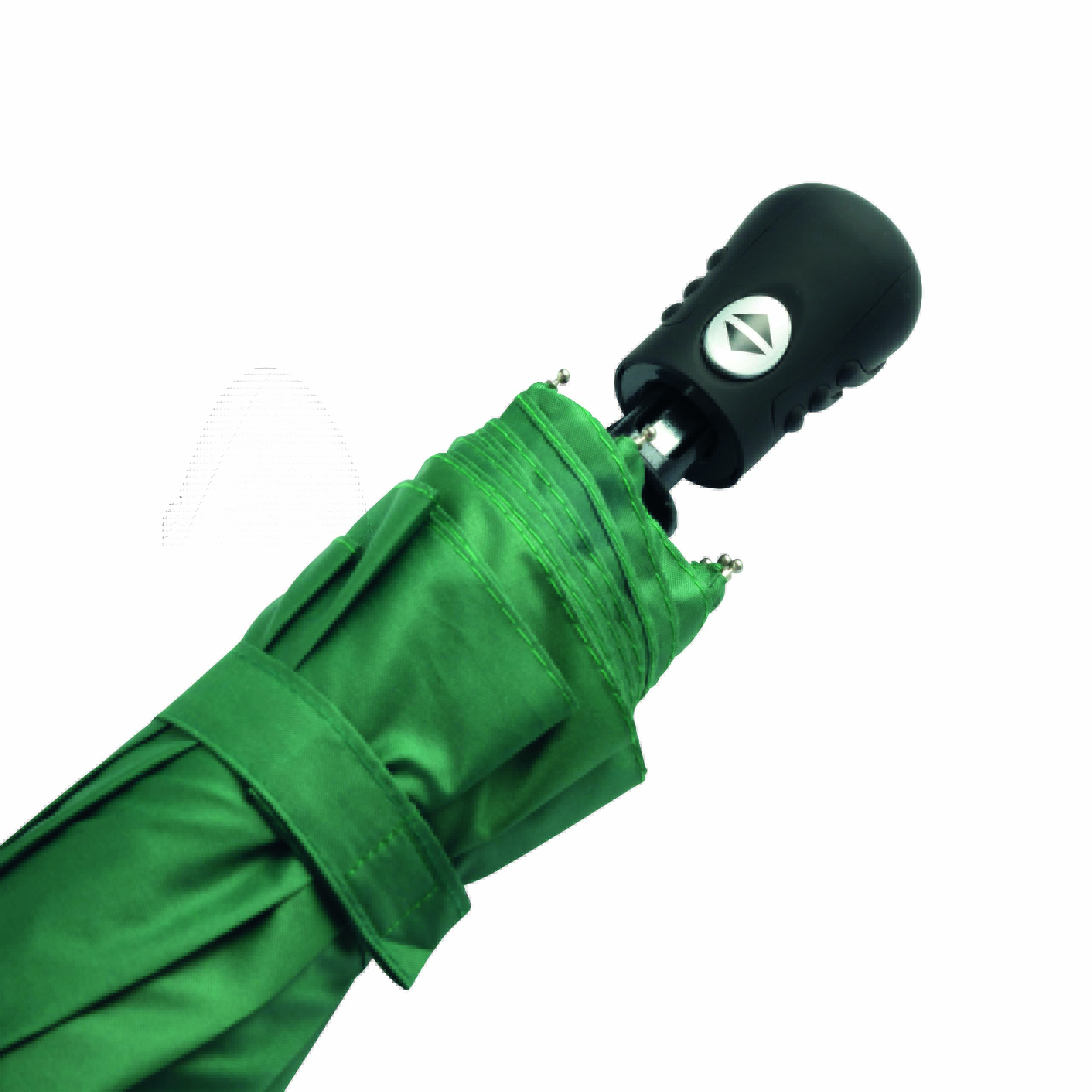 Automatyczny, wiatroodporny, kieszonkowy parasol BORA. Trzyczęściowy, metalowy trzon, szkielet z aluminium, plastiku i włókna szklanego, metalowe końcówki, rączka z gumową powłoką, poliestrowe poszycie, zapinany na rzep.