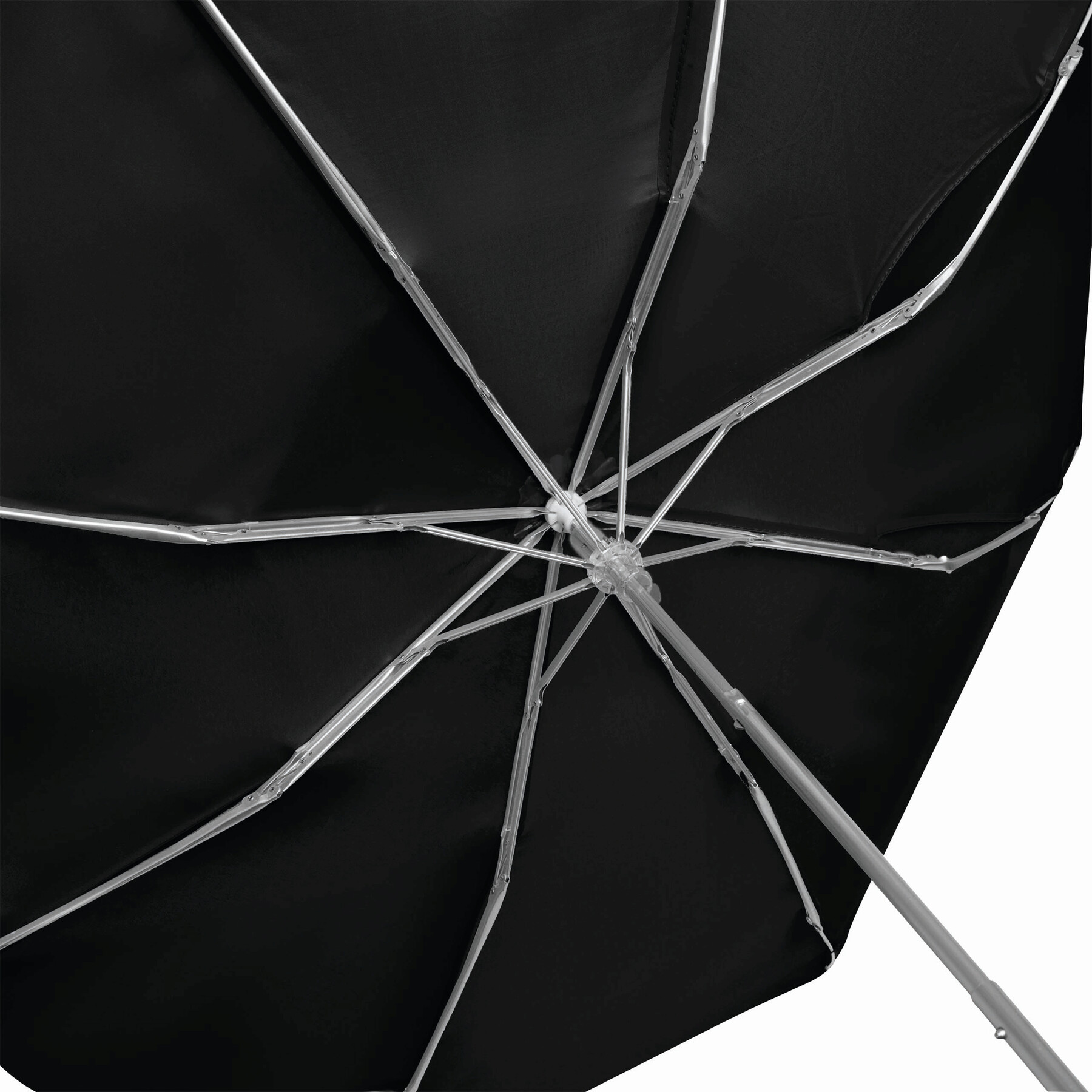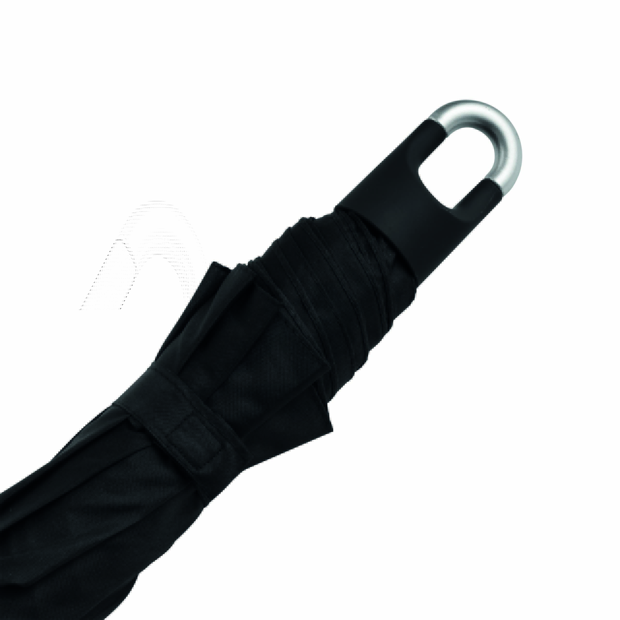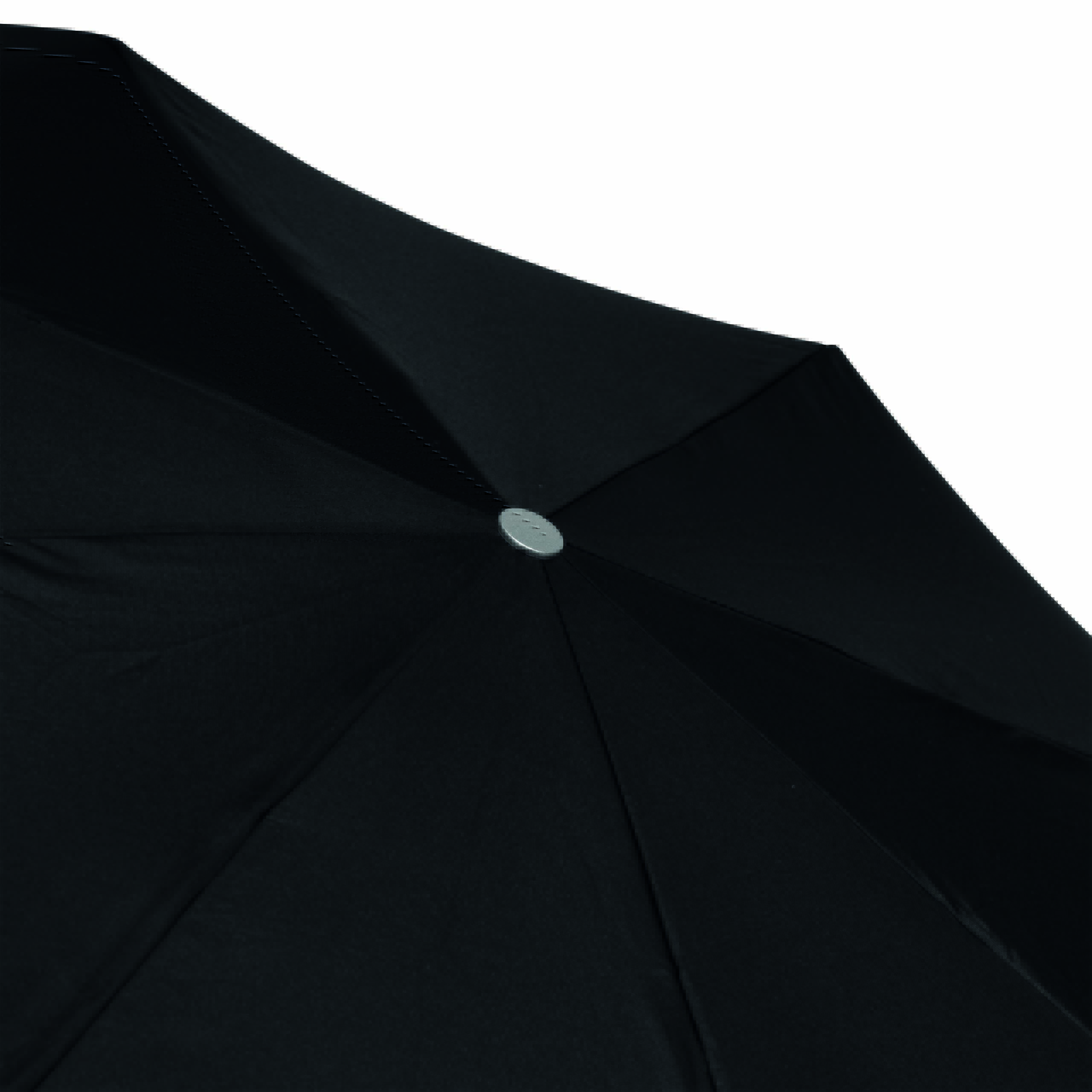 Parasol mini TWIST. Poszycie z poliestru pongee, aluminiowe szyny, stelaż 204 g, wiatroodporny, 3 x składana laska, uchwyt z ruchomym elementem służącym jako zaczep.