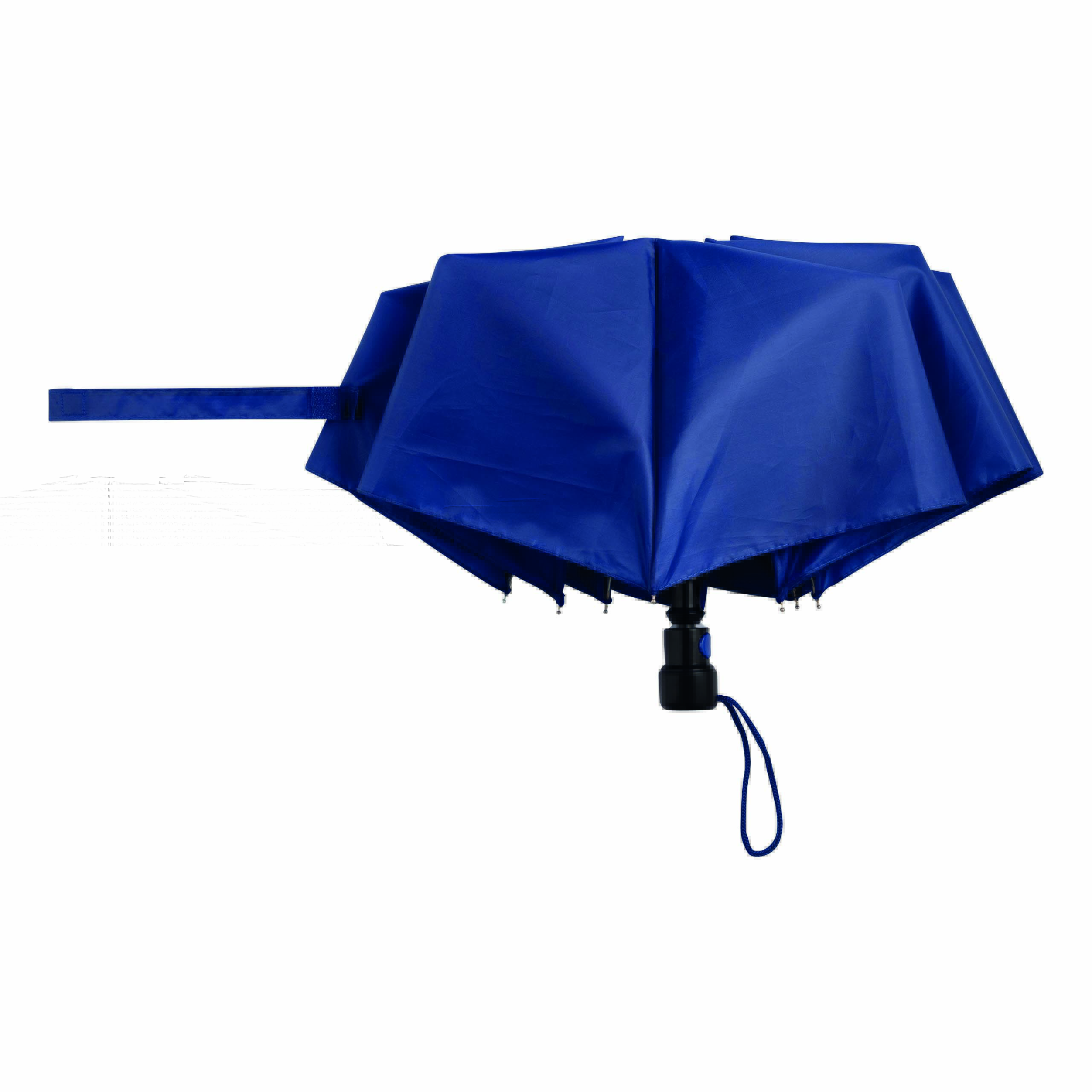 Automatyczny parasol kieszonkowy PRIMA. Pokrowiec w kolorze poszycia, 3-częściowa metalowa laska, szyny i kolce, czarny, plastikowy uchwyt z automatycznym przyciskiem i pętelką, poszycie z poliestru, zapinany na rzep.