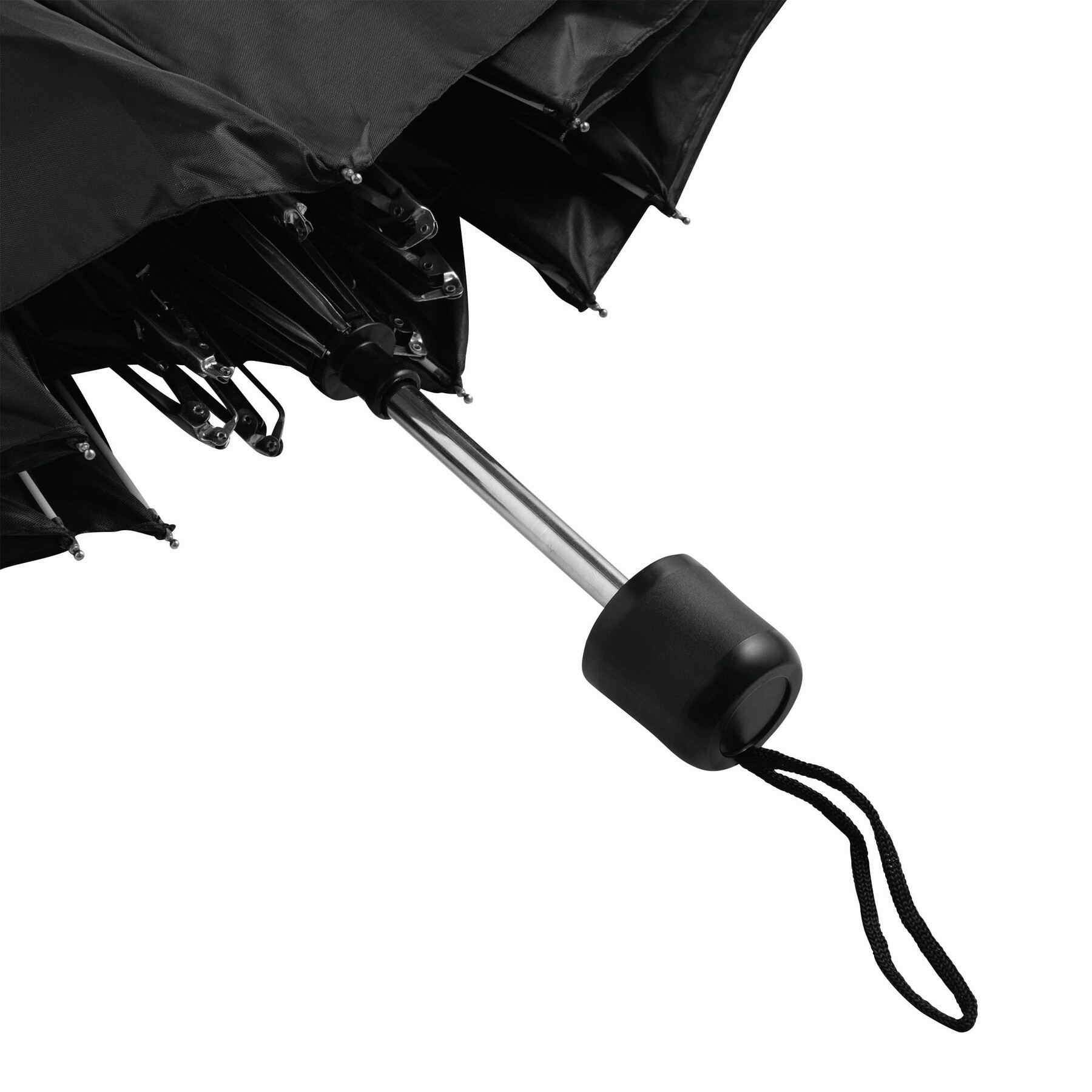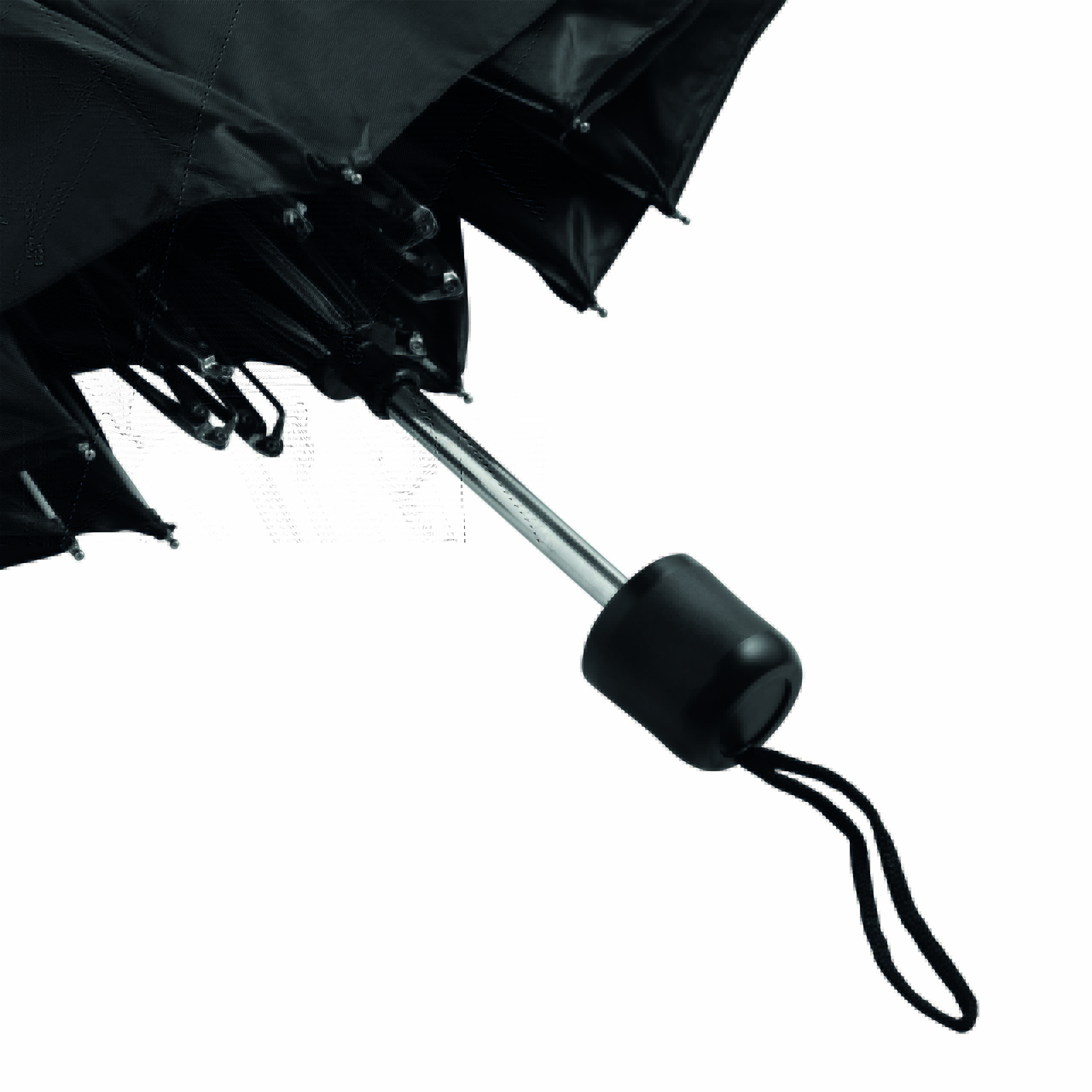 Składany parasol PICOBELLO z 3-częściową metalową laską, szynami z metalu i włókna szklanego, metalowymi kolcami, czarnym uchwytem z tworzywa sztucznego, z poszyciem poliestrowym i zamknięciem na rzep Velcro.