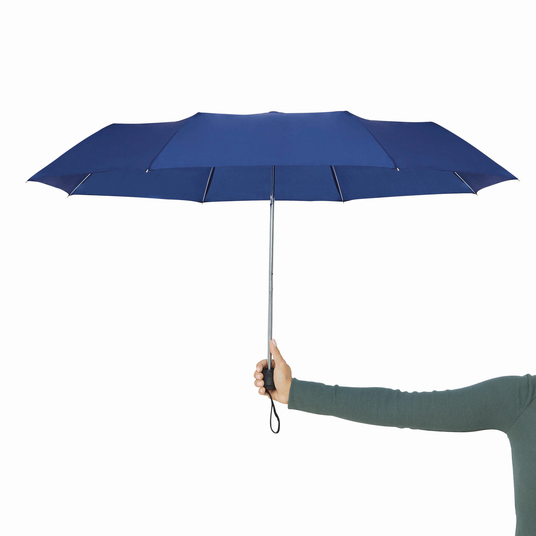 Składany parasol PICOBELLO z 3-częściową metalową laską, szynami z metalu i włókna szklanego, metalowymi kolcami, czarnym uchwytem z tworzywa sztucznego, z poszyciem poliestrowym i zamknięciem na rzep Velcro.