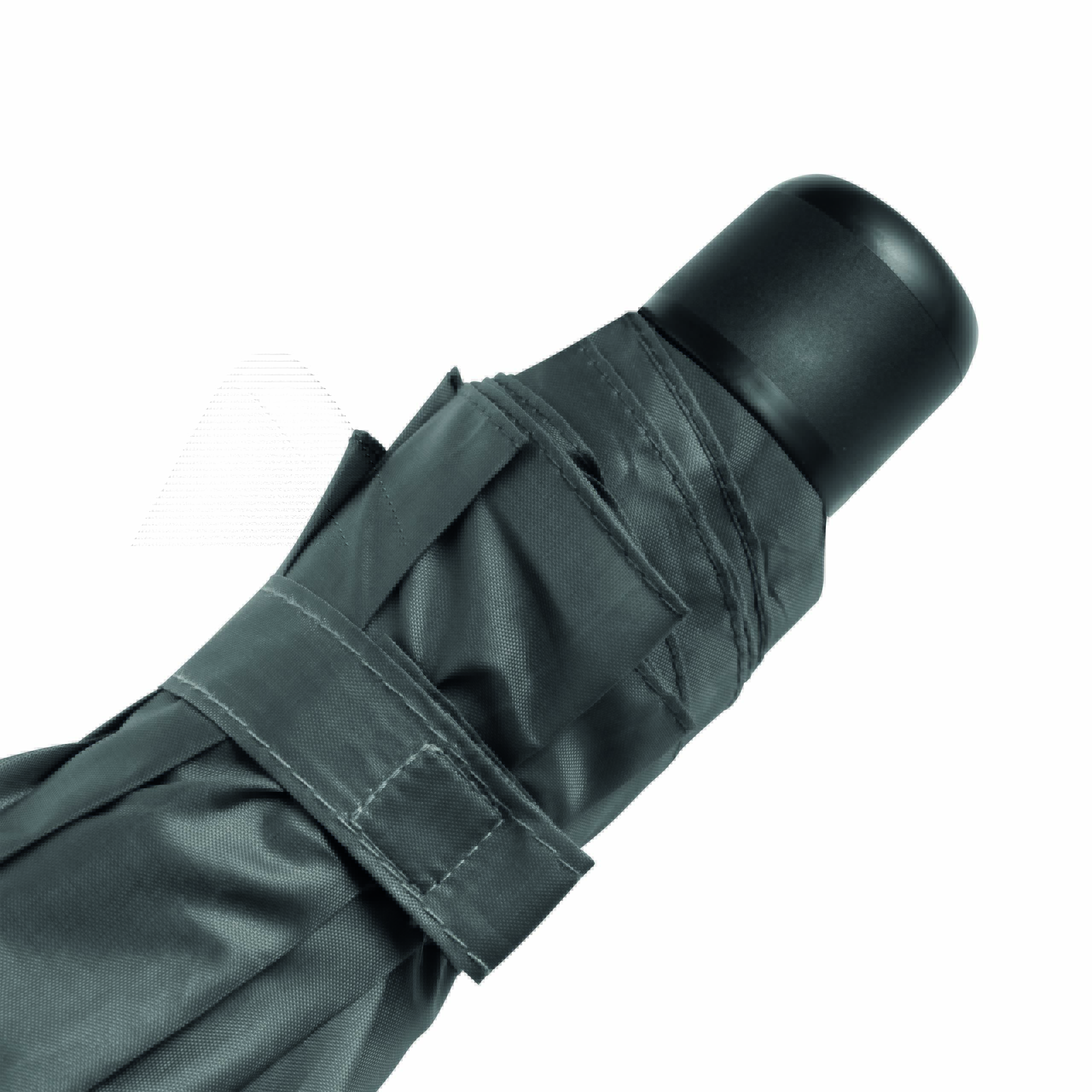Składany parasol PICOBELLO z 3-częściową metalową laską, szynami z metalu i włókna szklanego, metalowymi kolcami, czarnym uchwytem z tworzywa sztucznego, z poszyciem poliestrowym i zamknięciem na rzep Velcro.