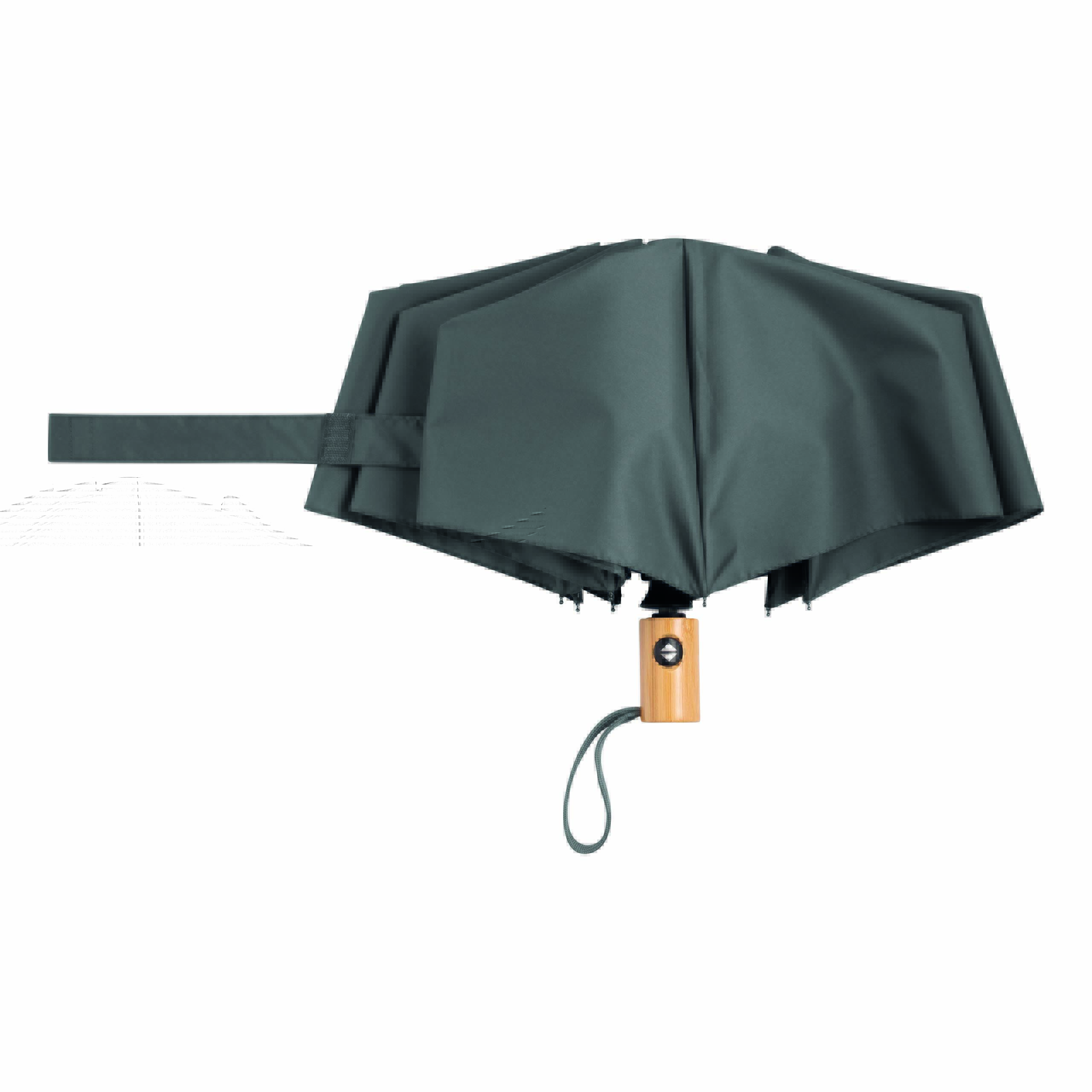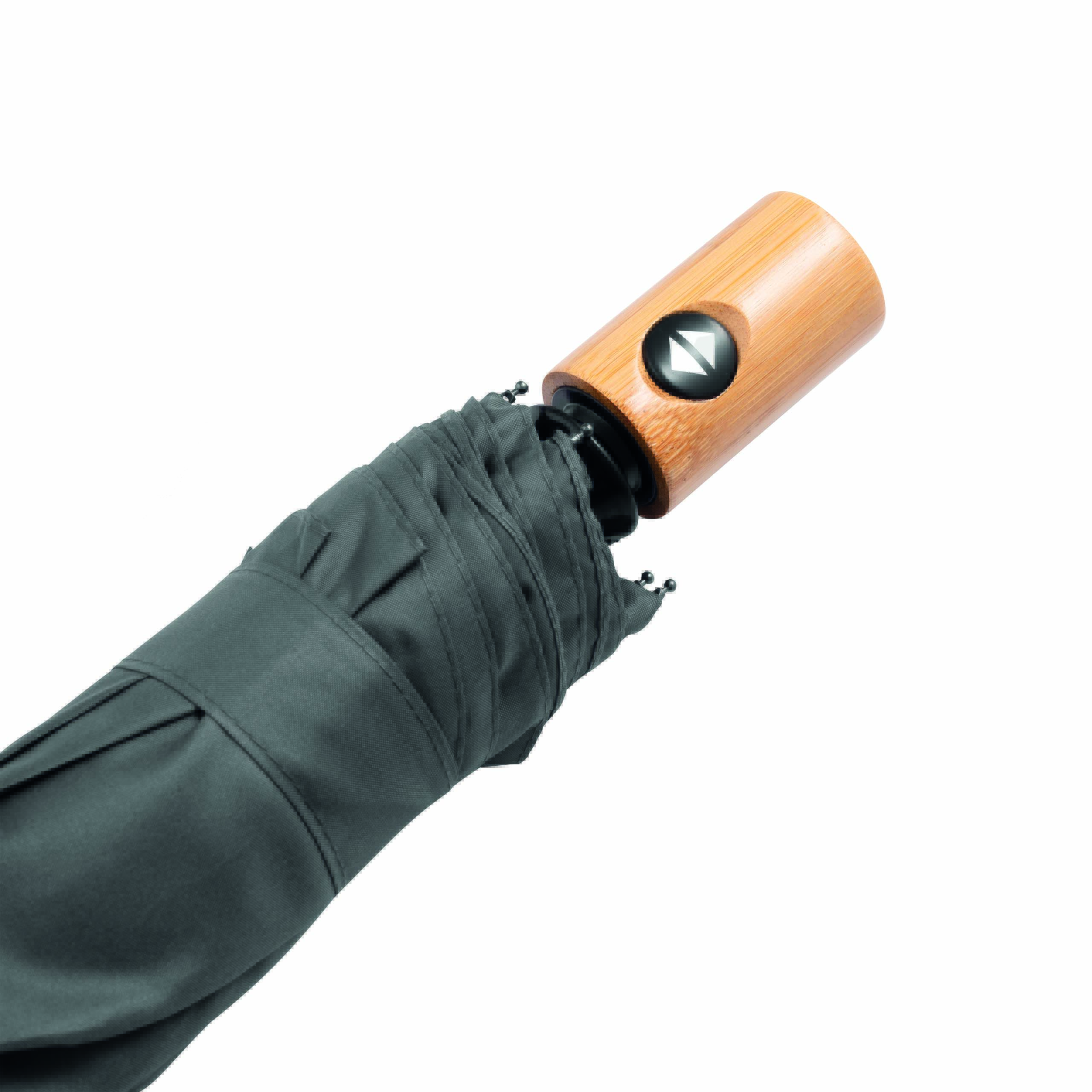 Automatycznie otwierany i składany, wiatroodporny parasol kieszonkowy CALYPSO z pokrowcem w dopasowanym kolorze, trzyczęściową, metalową laską, z szynami z metalu, plastiku i włókna szklanego oraz z metalowymi kolcami. Bambusowy uchwyt z pętelką w dopasowanym kolorze. Poszycie z poliestru pongee wykonanego z powtórnie przetworzonych tworzyw sztucznych / RPET. Zapięcie na rzep.