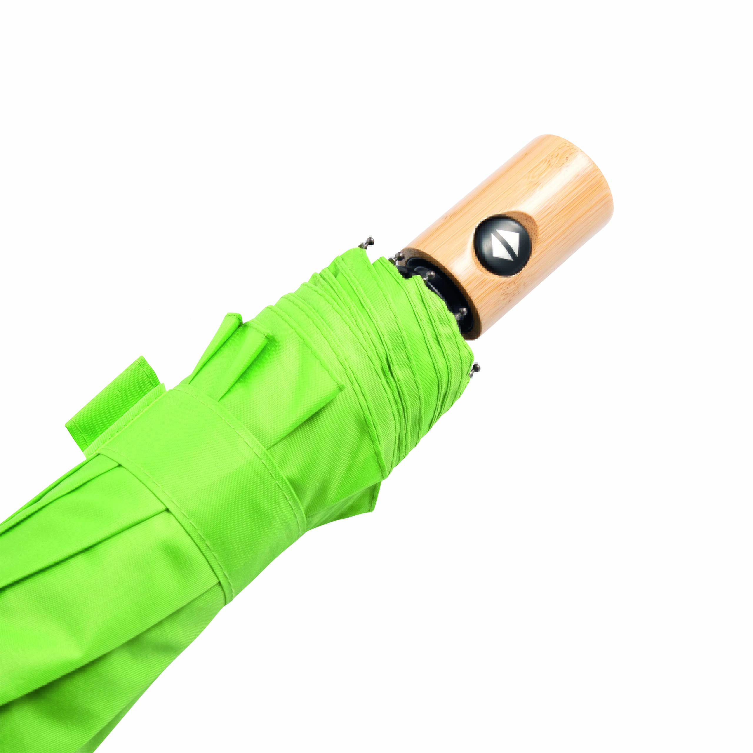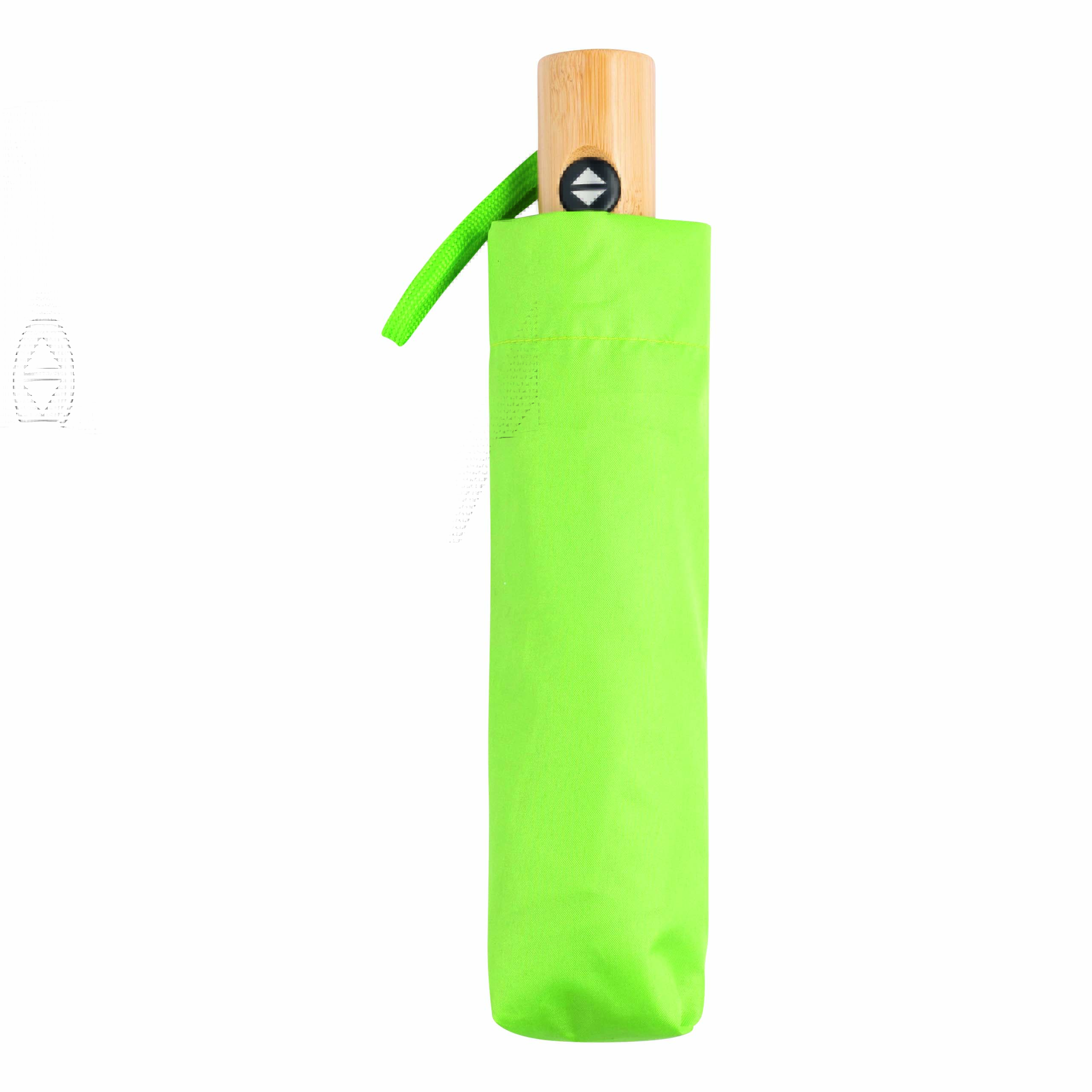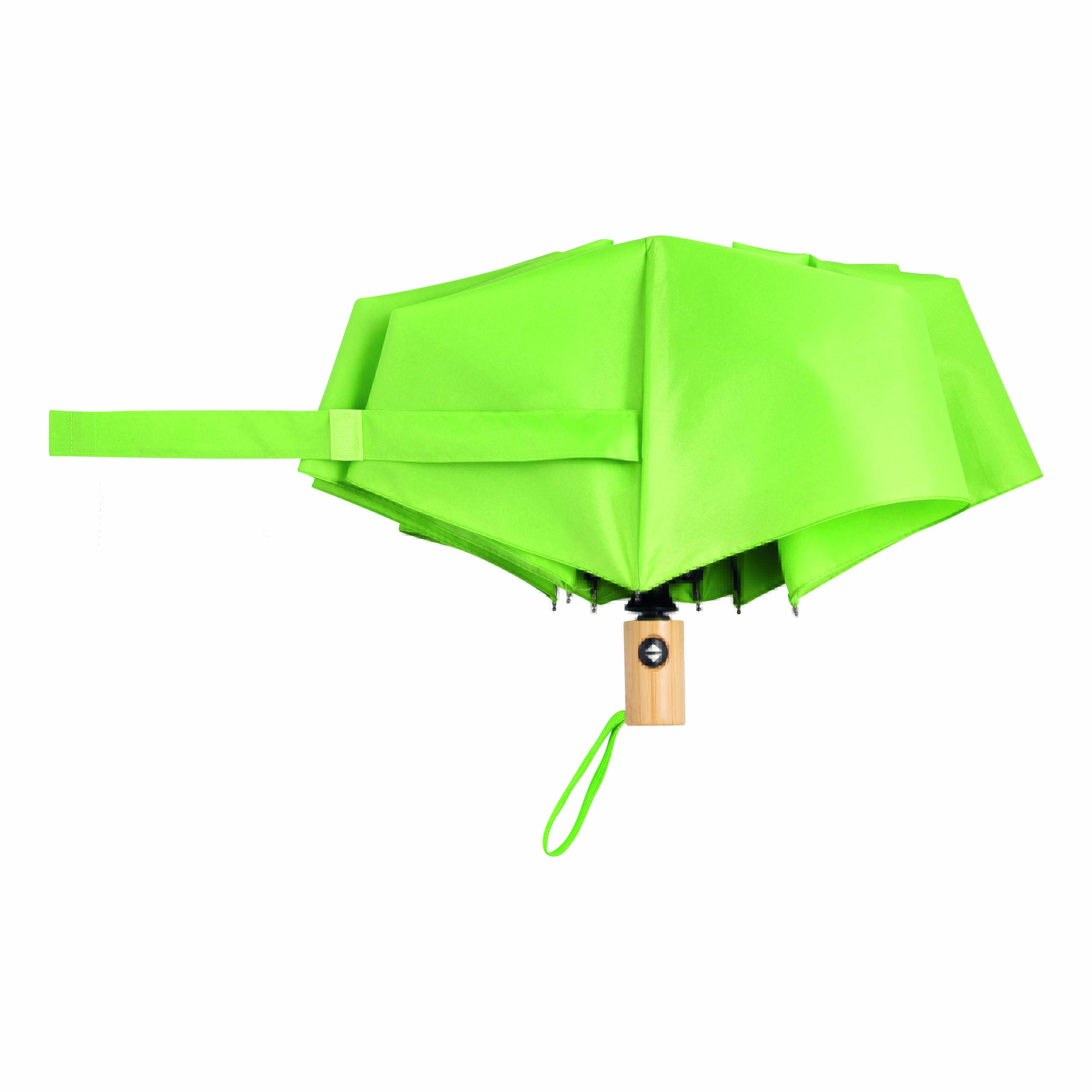 Automatycznie otwierany i składany, wiatroodporny parasol kieszonkowy CALYPSO z pokrowcem w dopasowanym kolorze, trzyczęściową, metalową laską, z szynami z metalu, plastiku i włókna szklanego oraz z metalowymi kolcami. Bambusowy uchwyt z pętelką w dopasowanym kolorze. Poszycie z poliestru pongee wykonanego z powtórnie przetworzonych tworzyw sztucznych / RPET. Zapięcie na rzep.