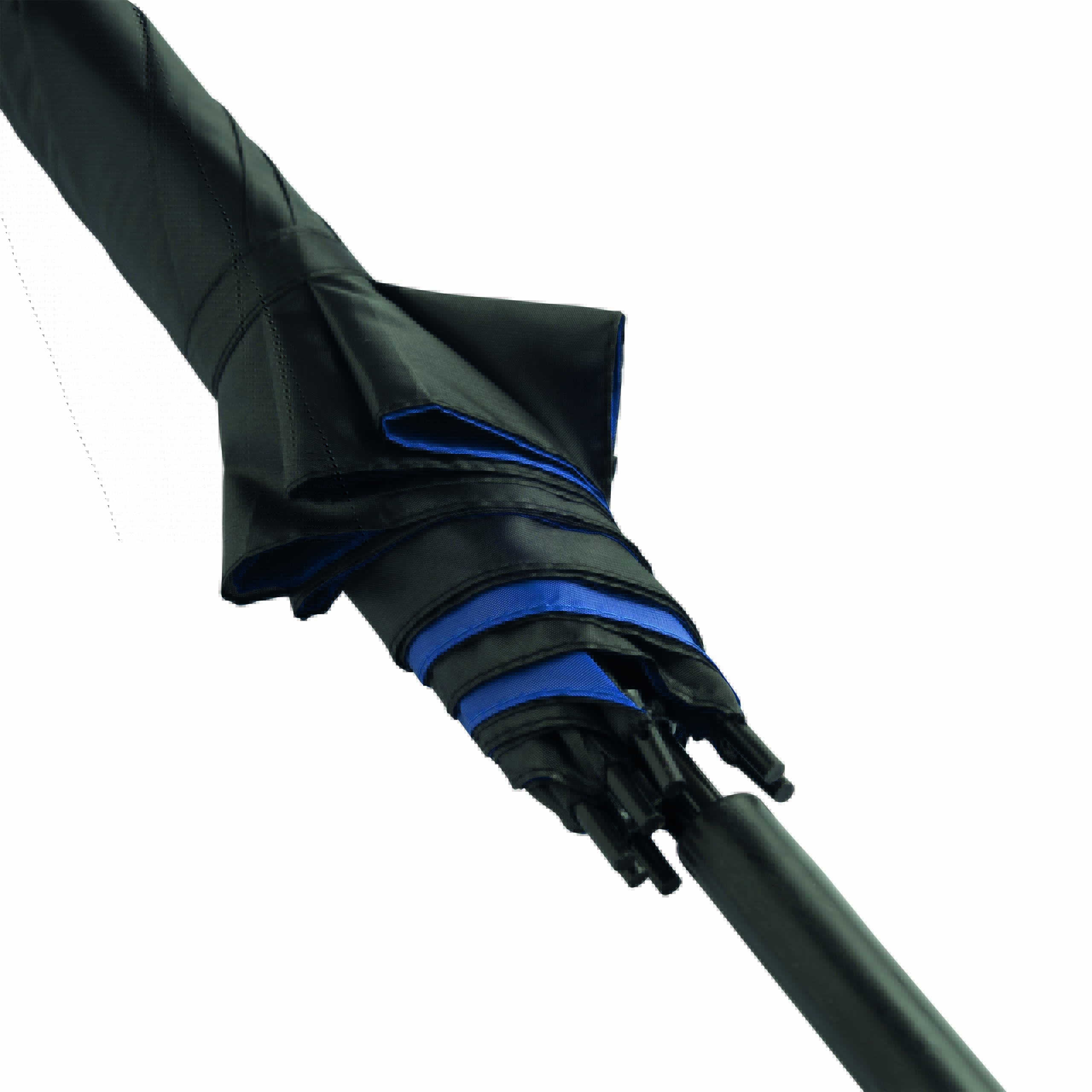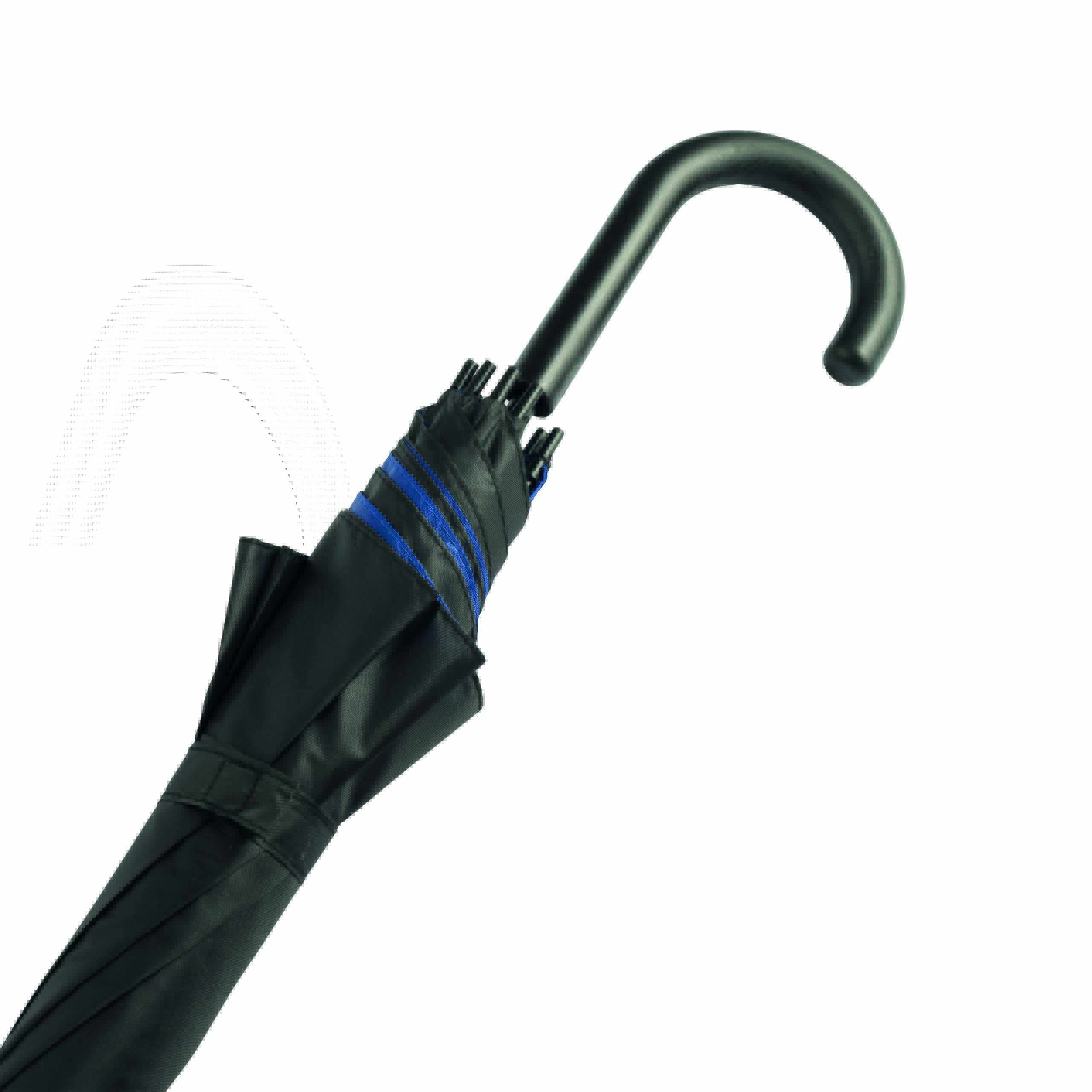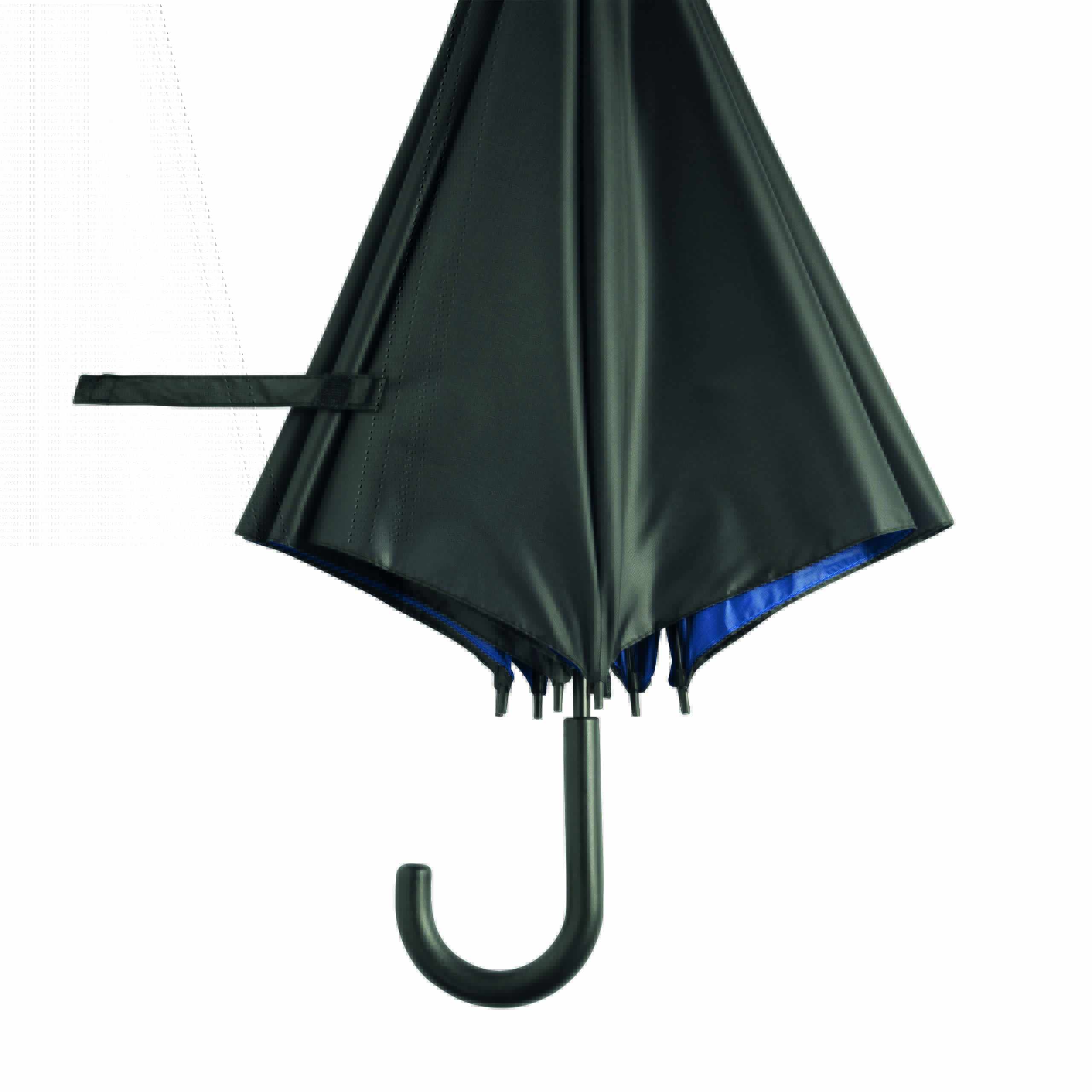Parasol automatyczny DOUBLY z metalową laską, plastikowymi kolcami i uchwytem, dwuwarstwowym poszyciem z poliestru w dwóch kolorach, zapięciem na rzep.