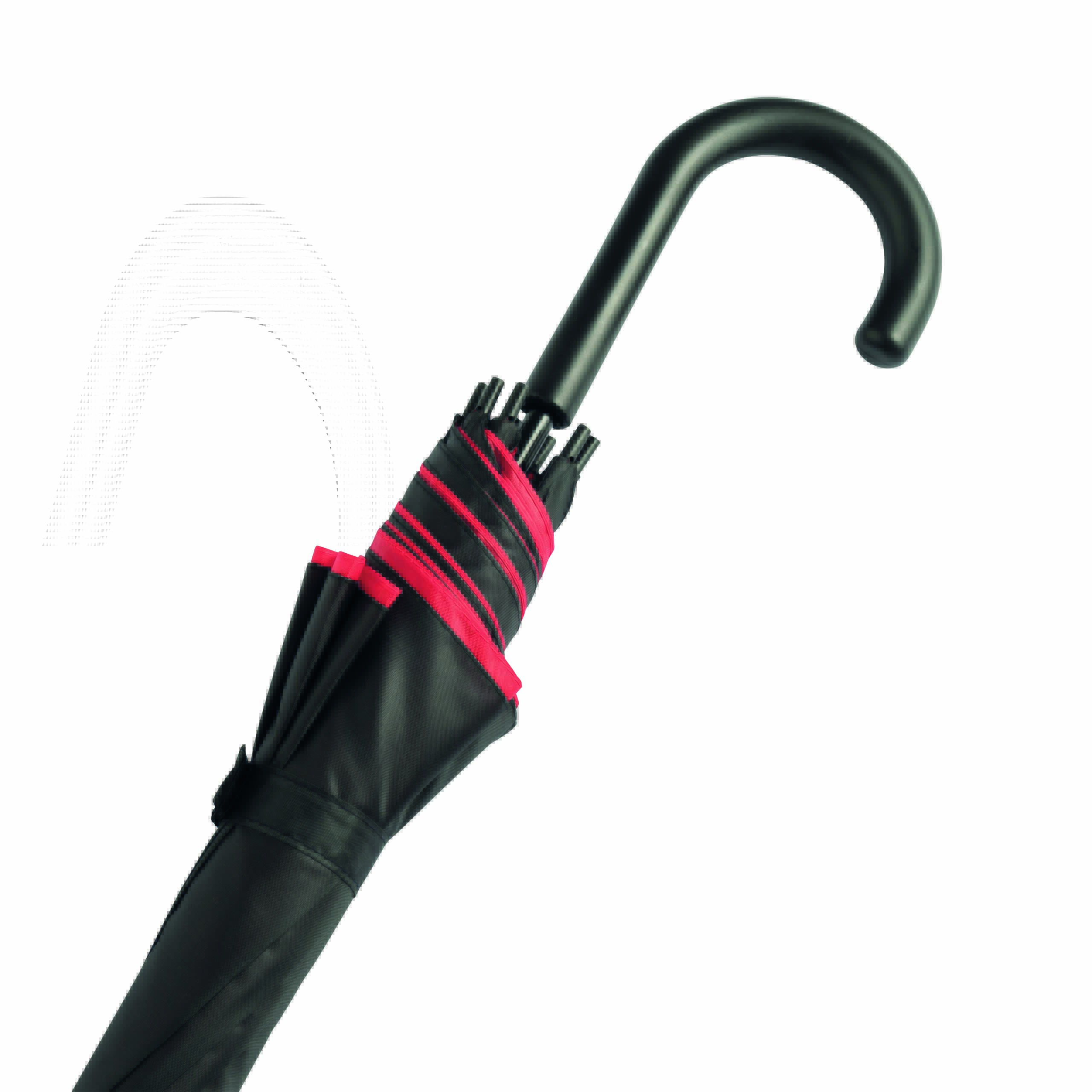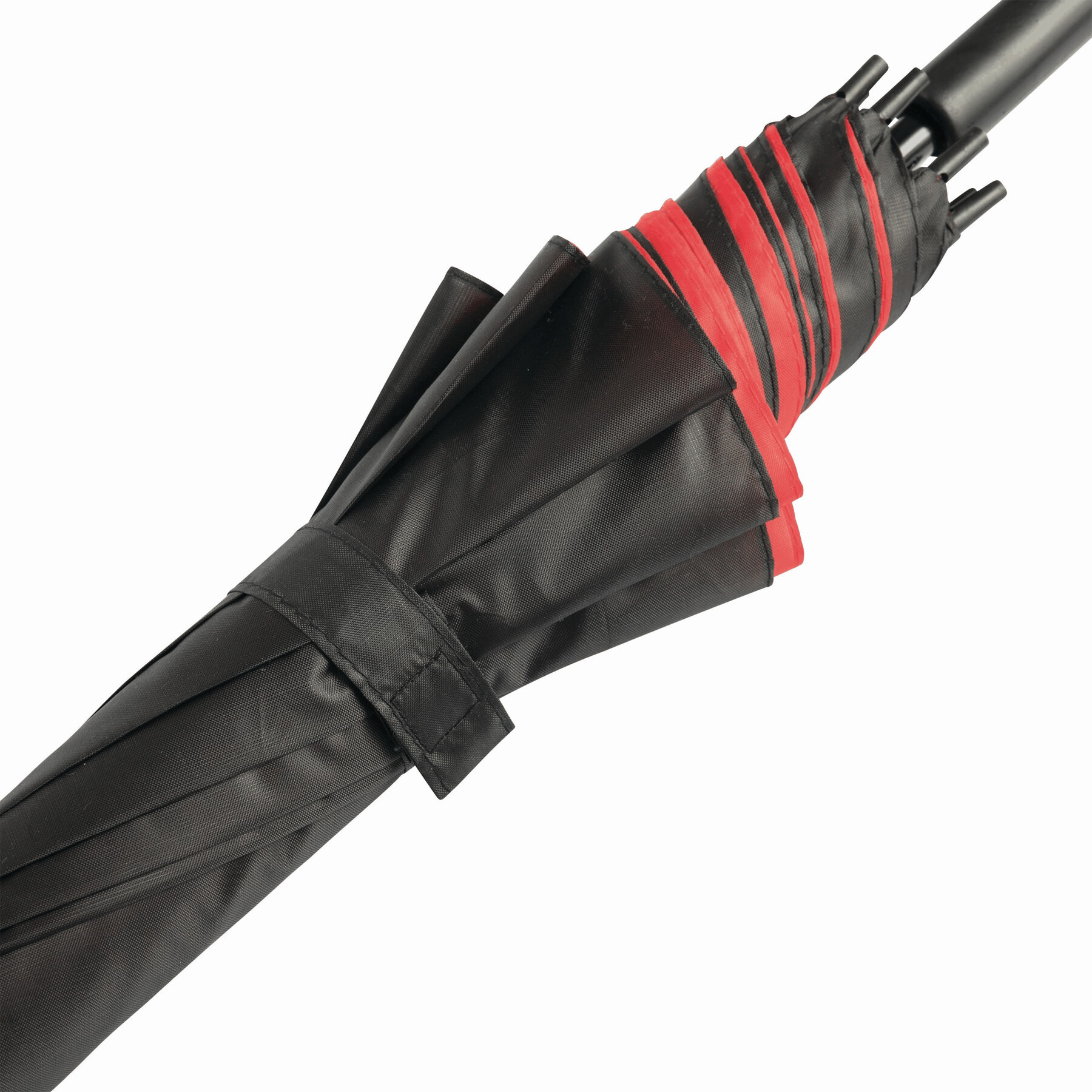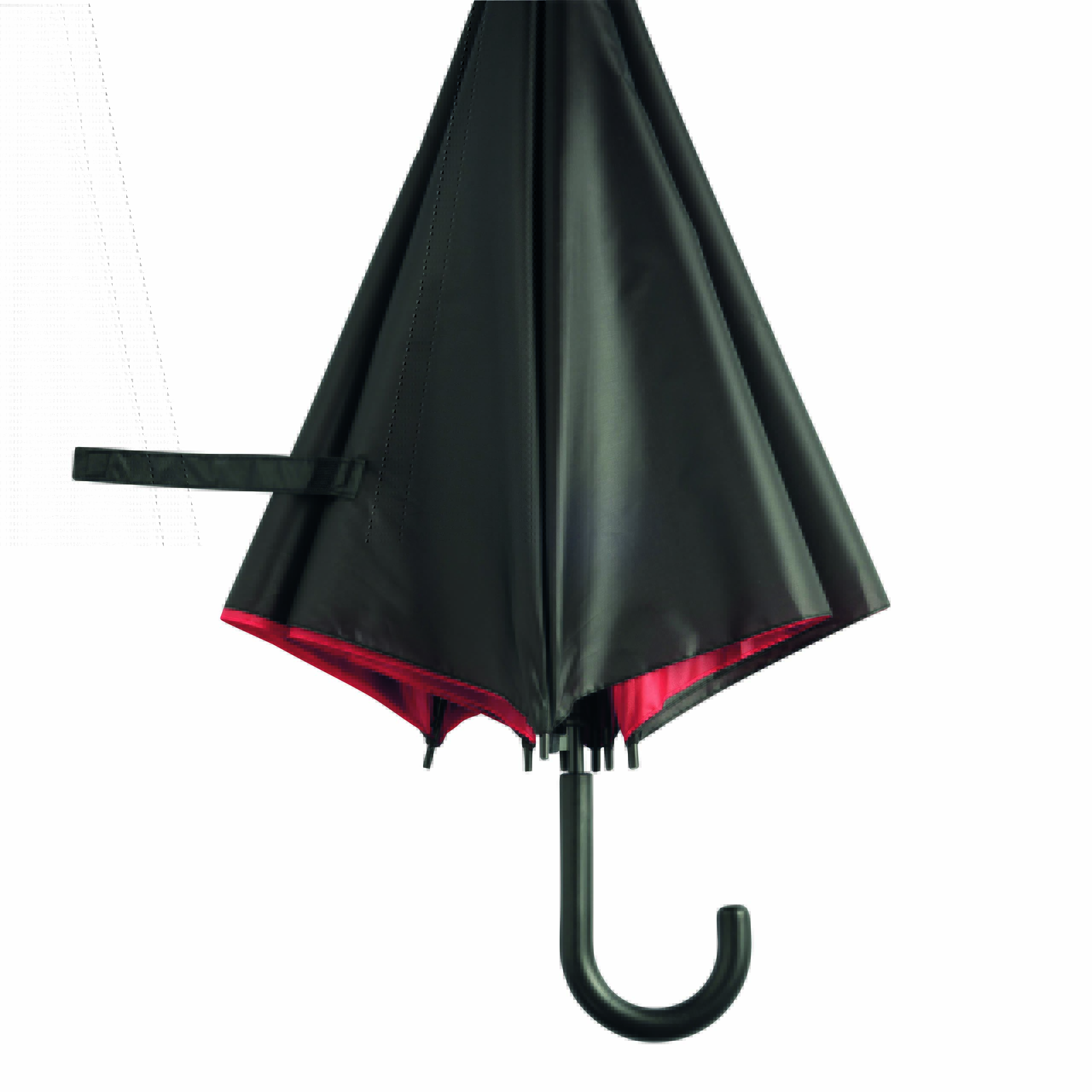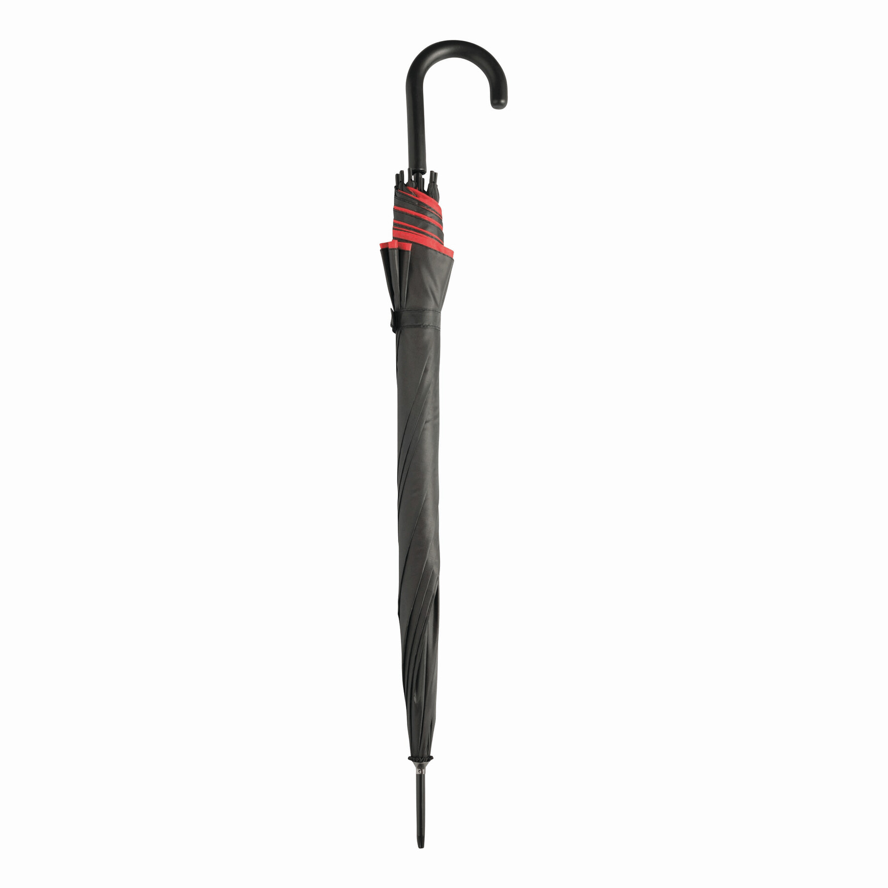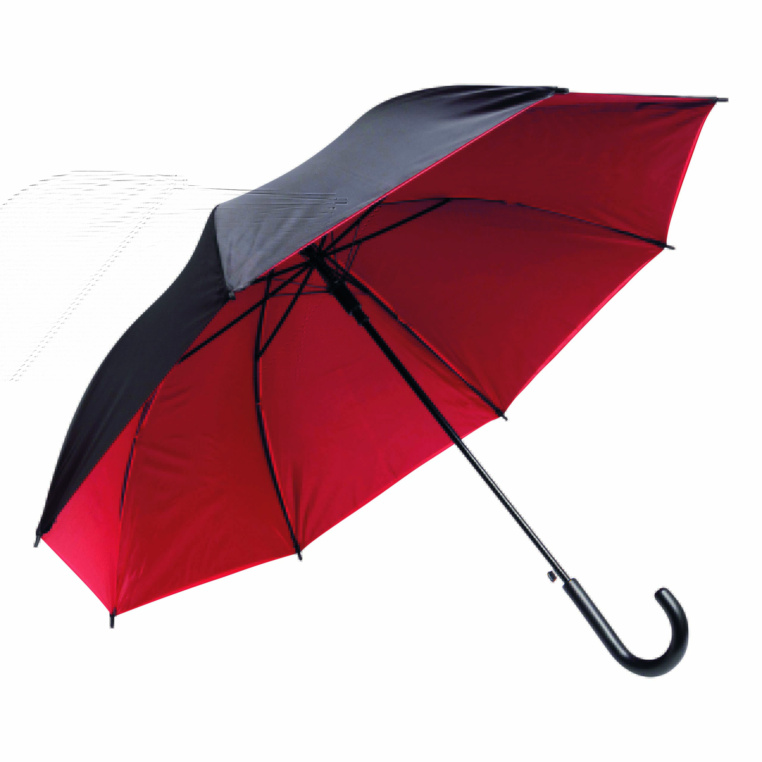 Parasol automatyczny DOUBLY z metalową laską, plastikowymi kolcami i uchwytem, dwuwarstwowym poszyciem z poliestru w dwóch kolorach, zapięciem na rzep.