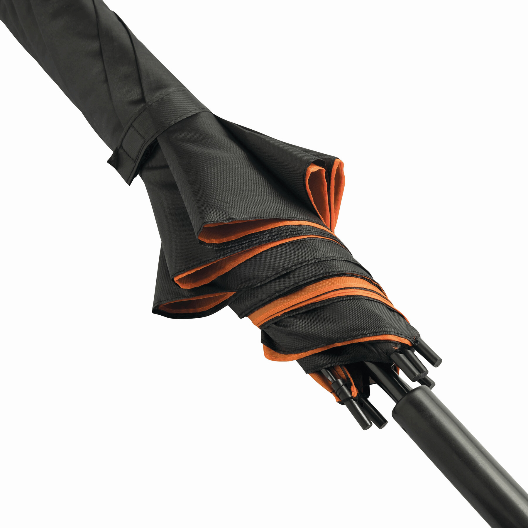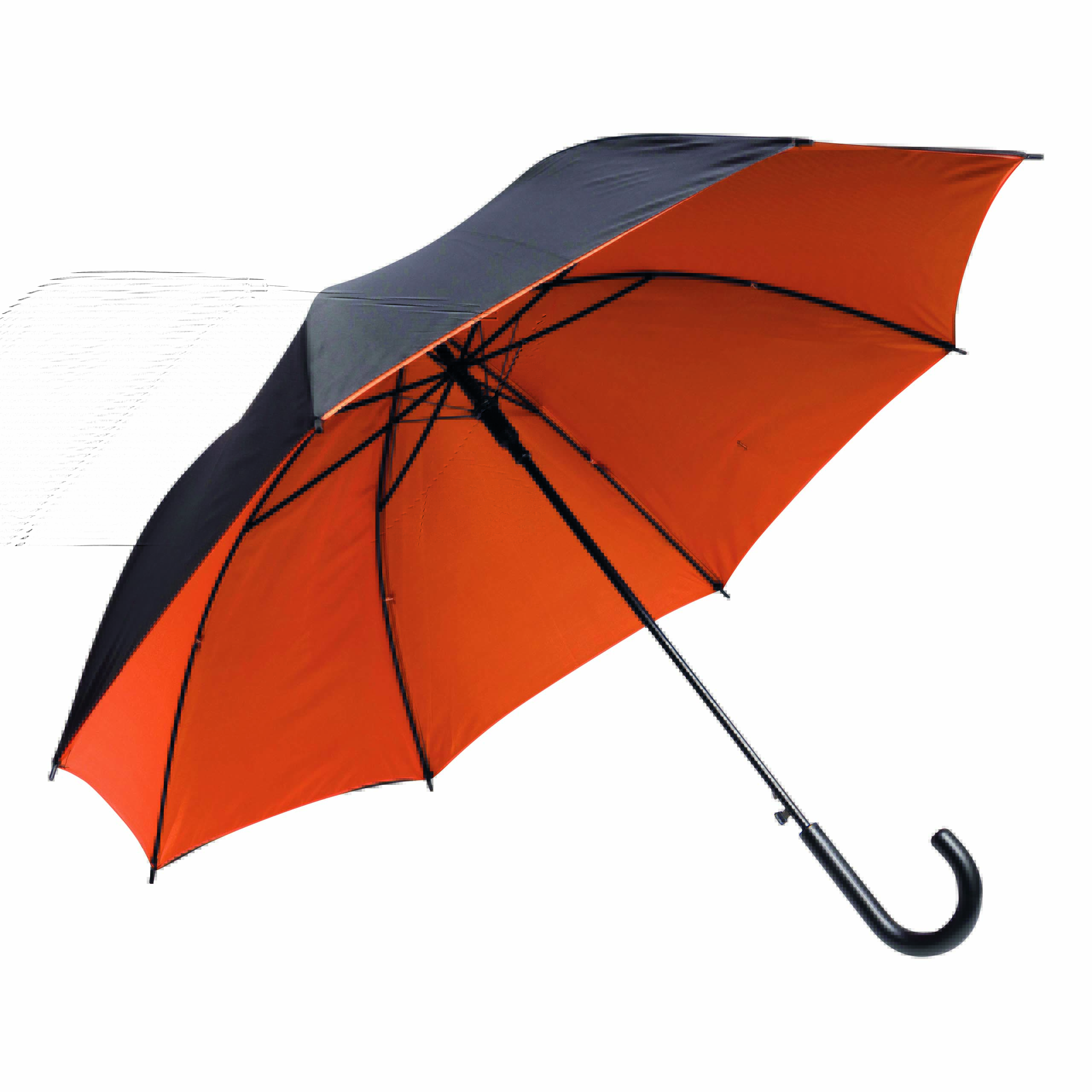 Parasol automatyczny DOUBLY z metalową laską, plastikowymi kolcami i uchwytem, dwuwarstwowym poszyciem z poliestru w dwóch kolorach, zapięciem na rzep.