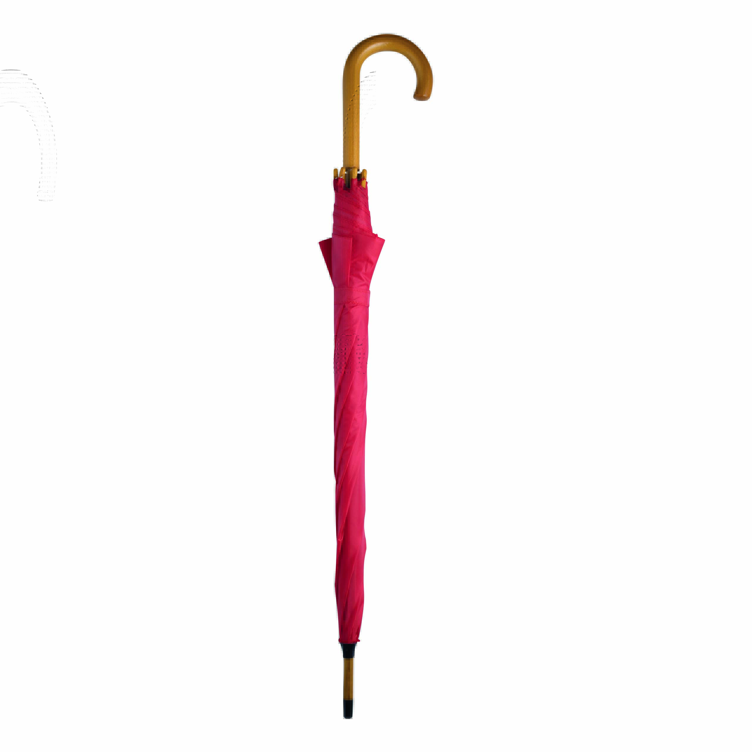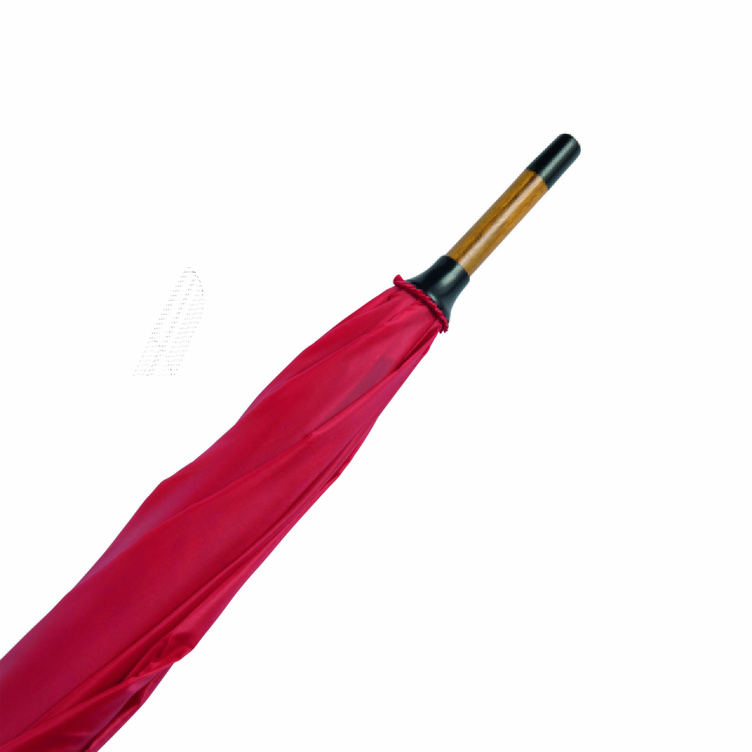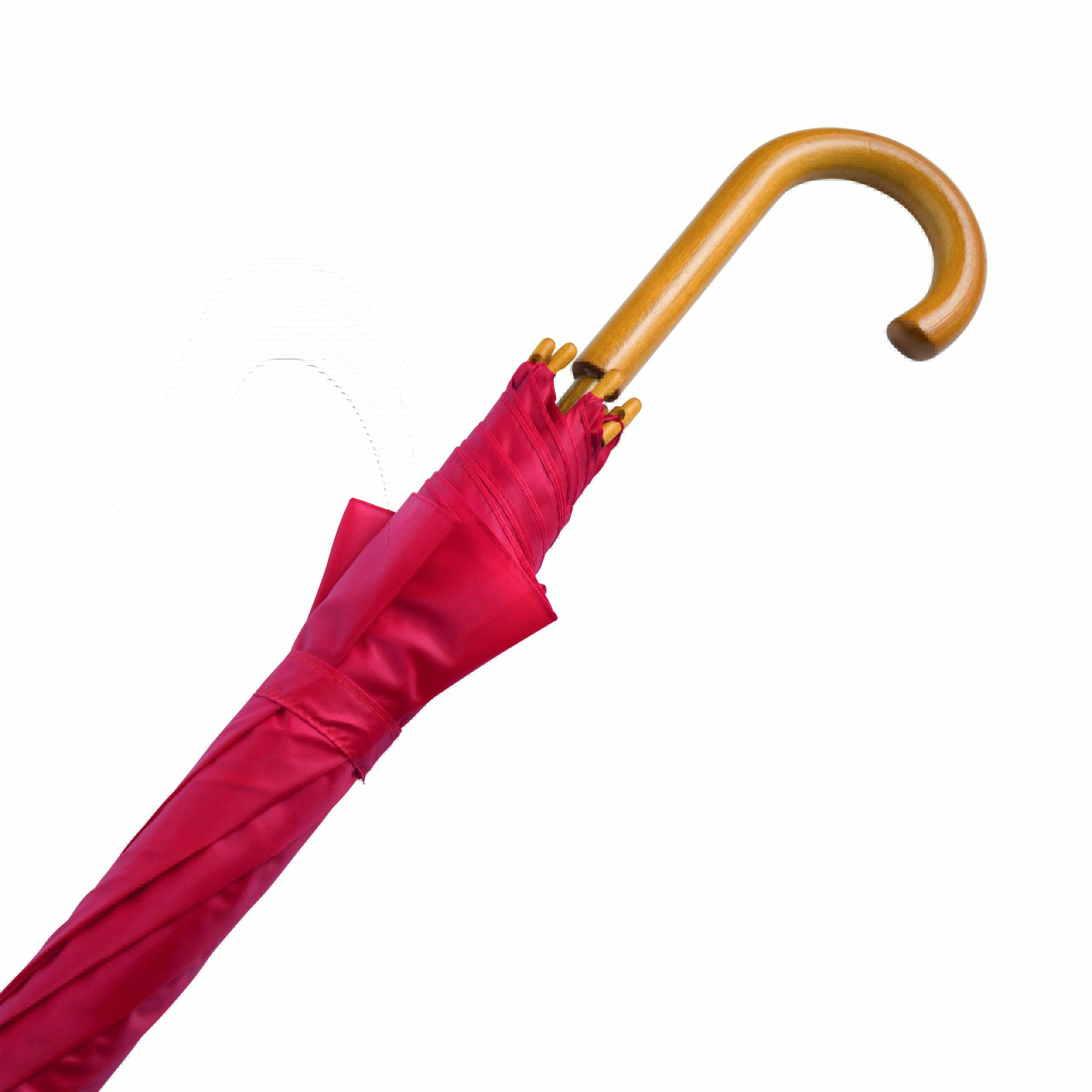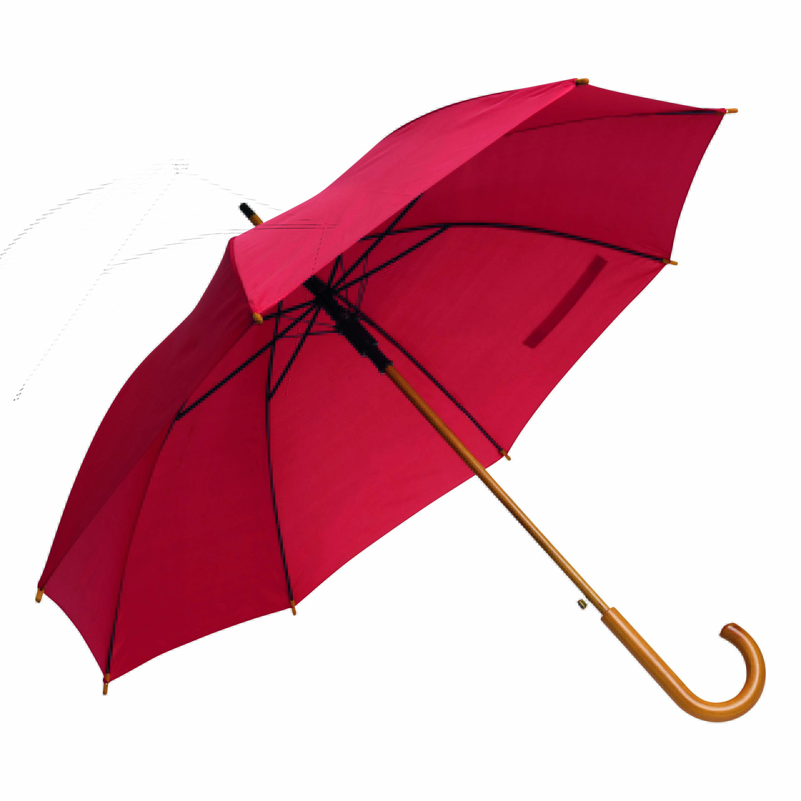 Automatyczny parasol TANGO. Poszycie z poliestru 190 T, czarne, metalowe szyny, drewniana laska i uchwyt w kolorze orzecha włoskiego.