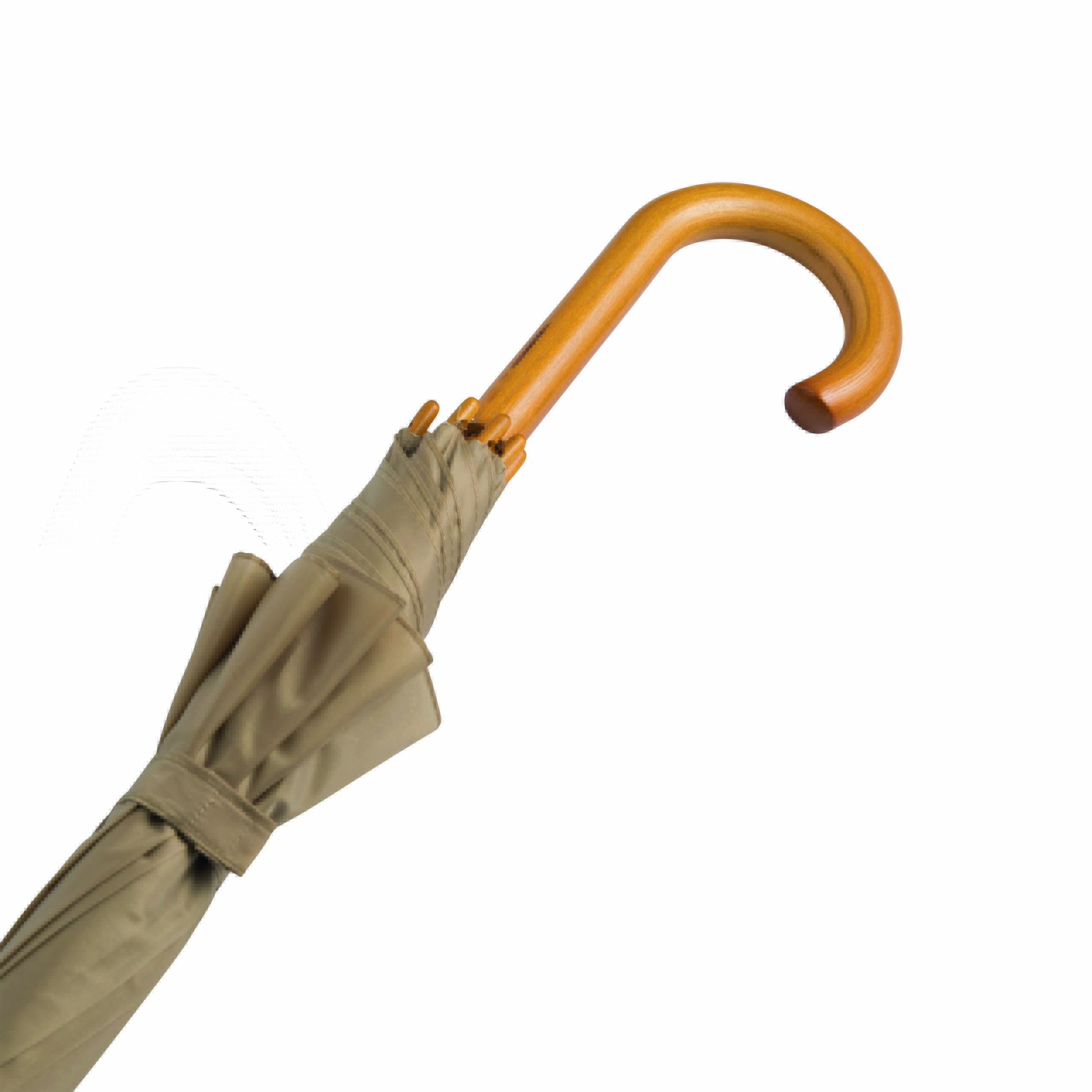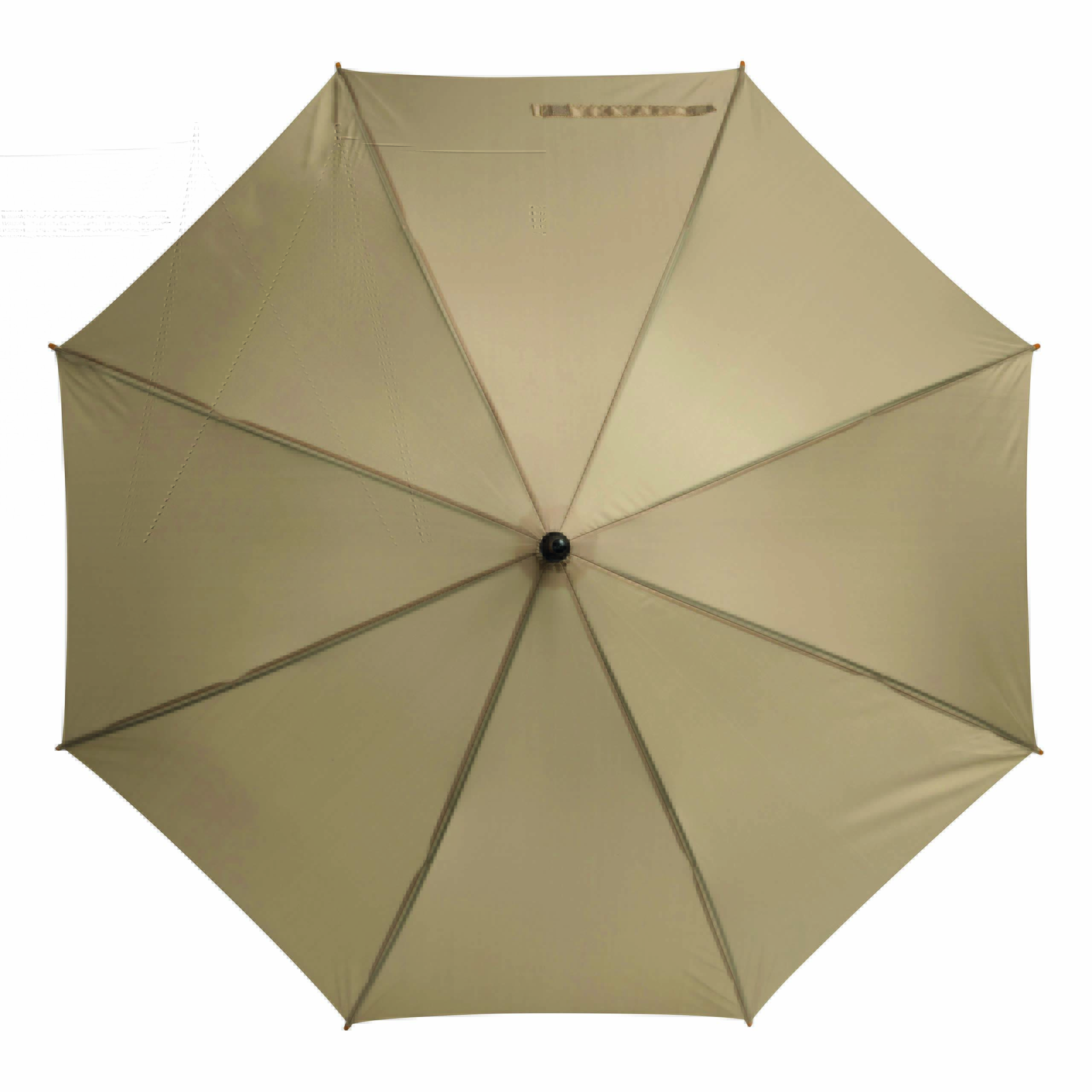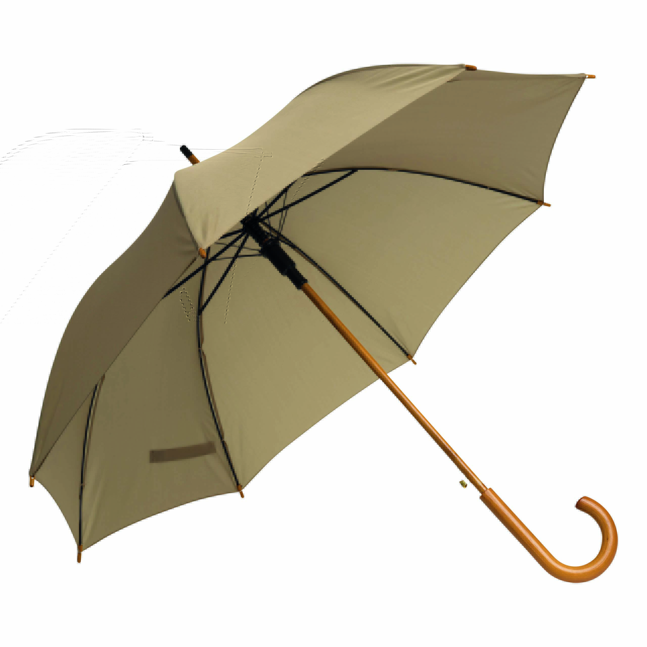 Automatyczny parasol TANGO. Poszycie z poliestru 190 T, czarne, metalowe szyny, drewniana laska i uchwyt w kolorze orzecha włoskiego.