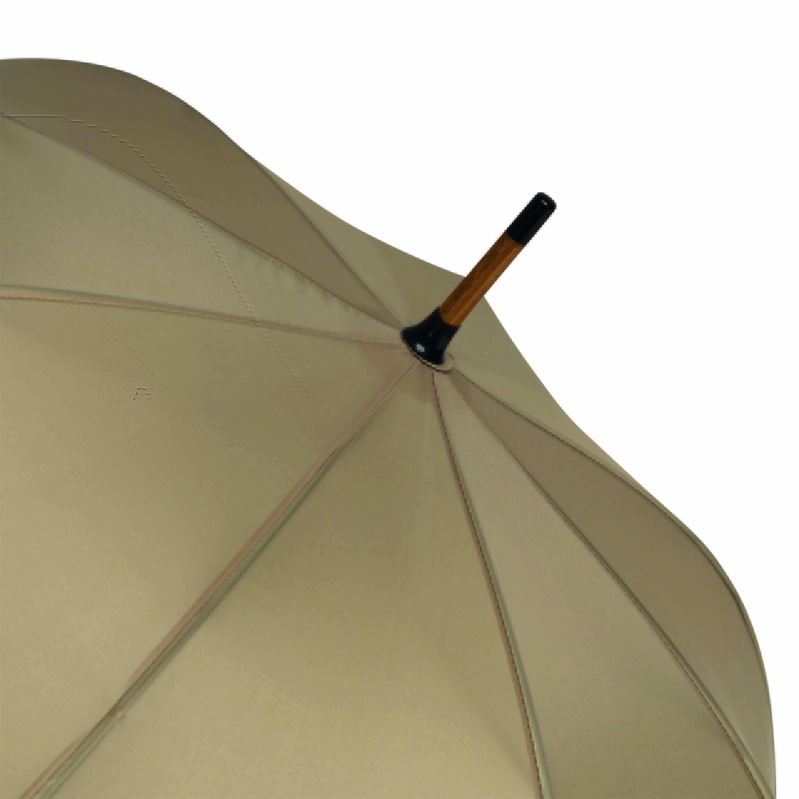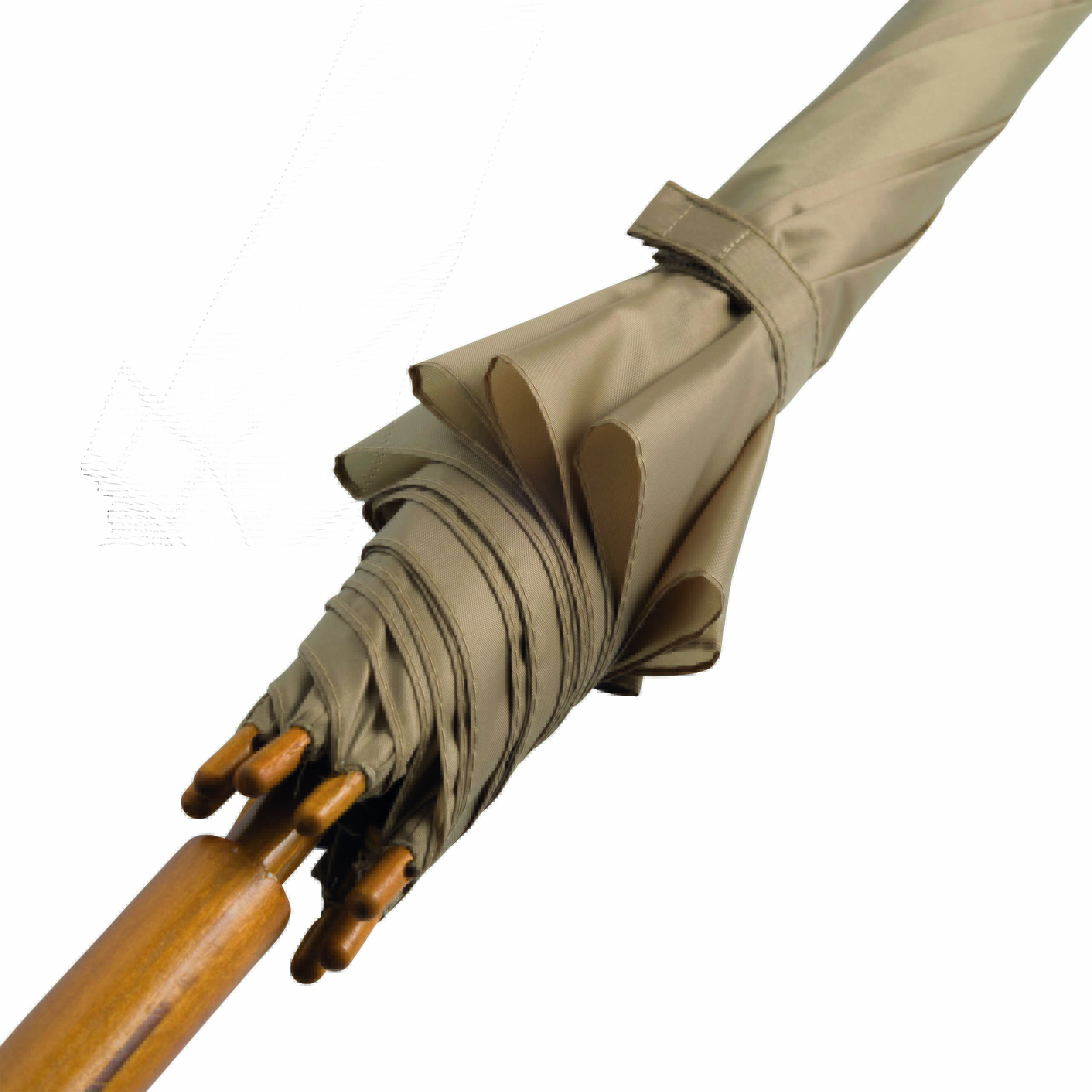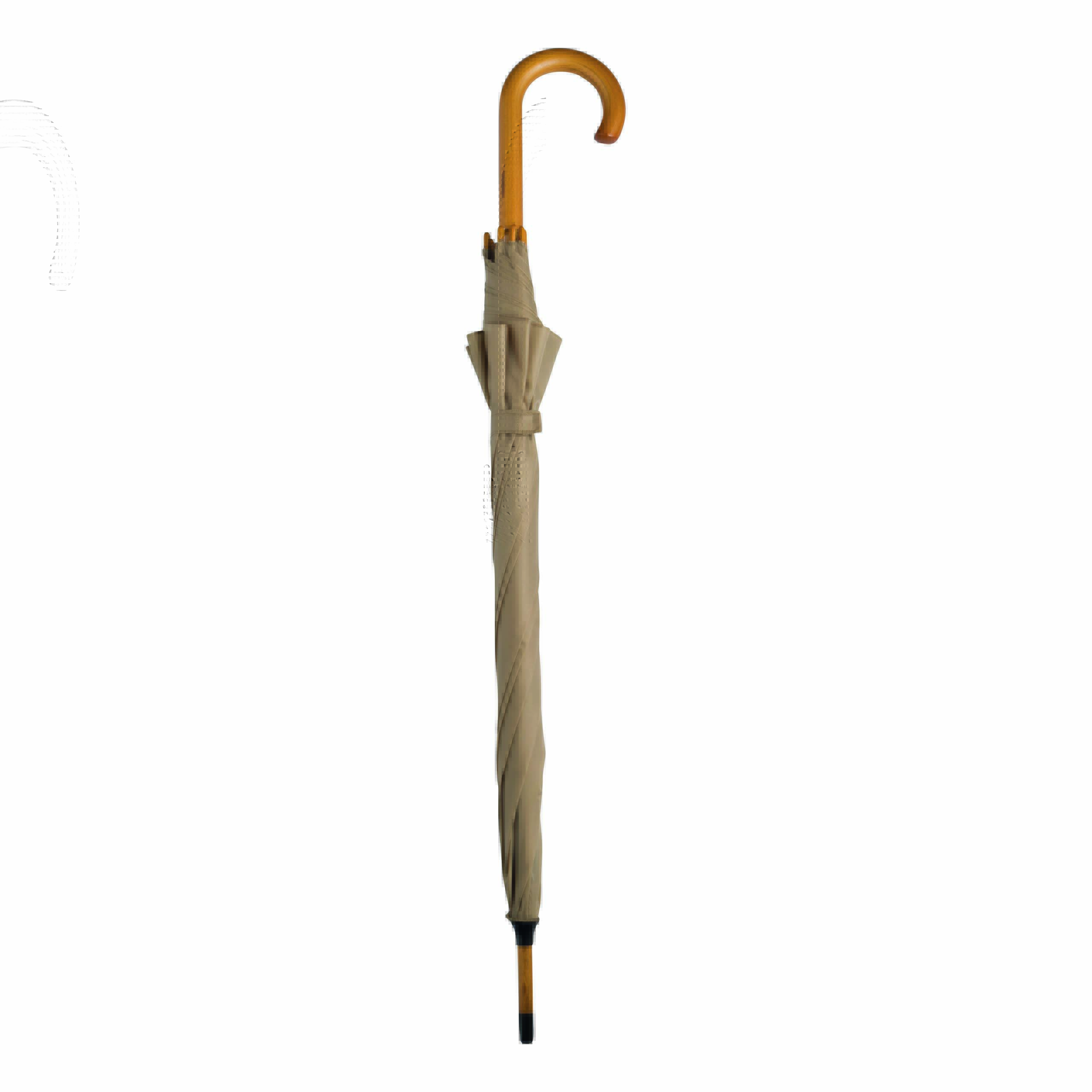 Automatyczny parasol TANGO. Poszycie z poliestru 190 T, czarne, metalowe szyny, drewniana laska i uchwyt w kolorze orzecha włoskiego.