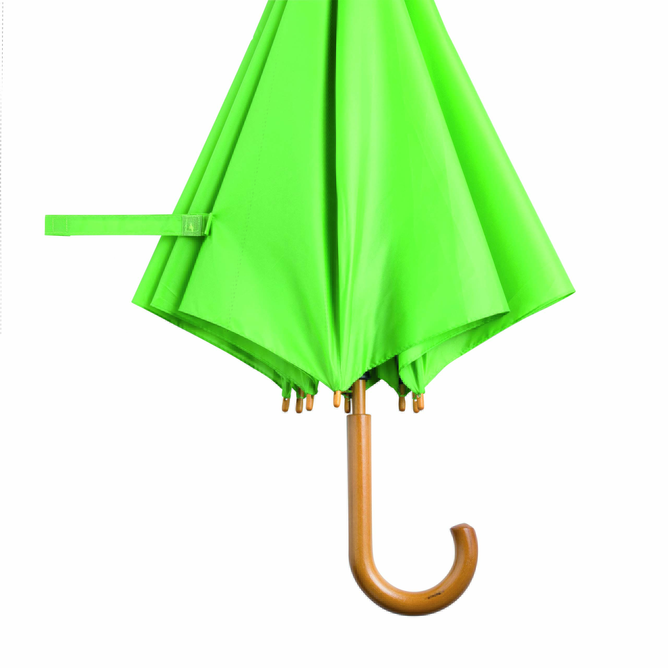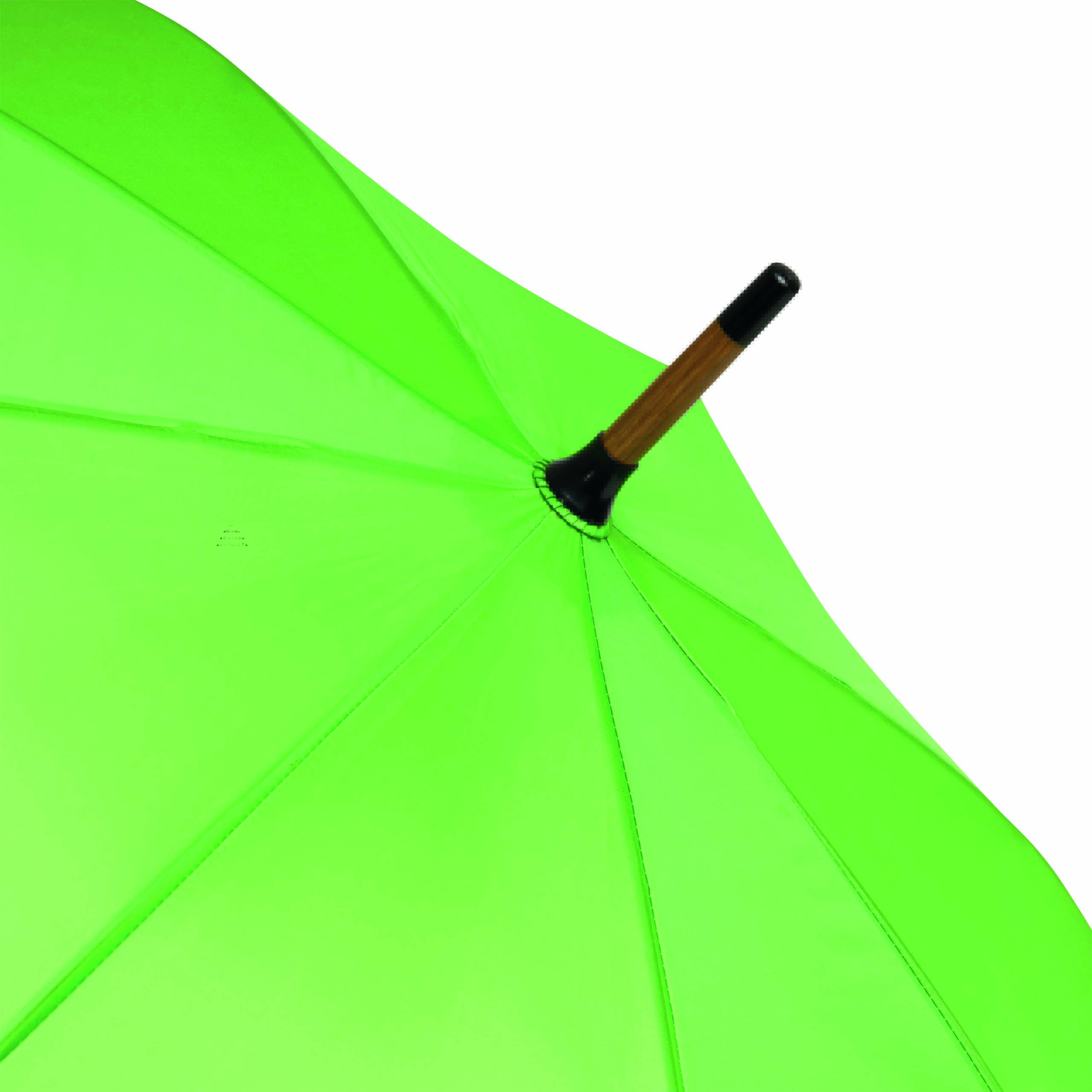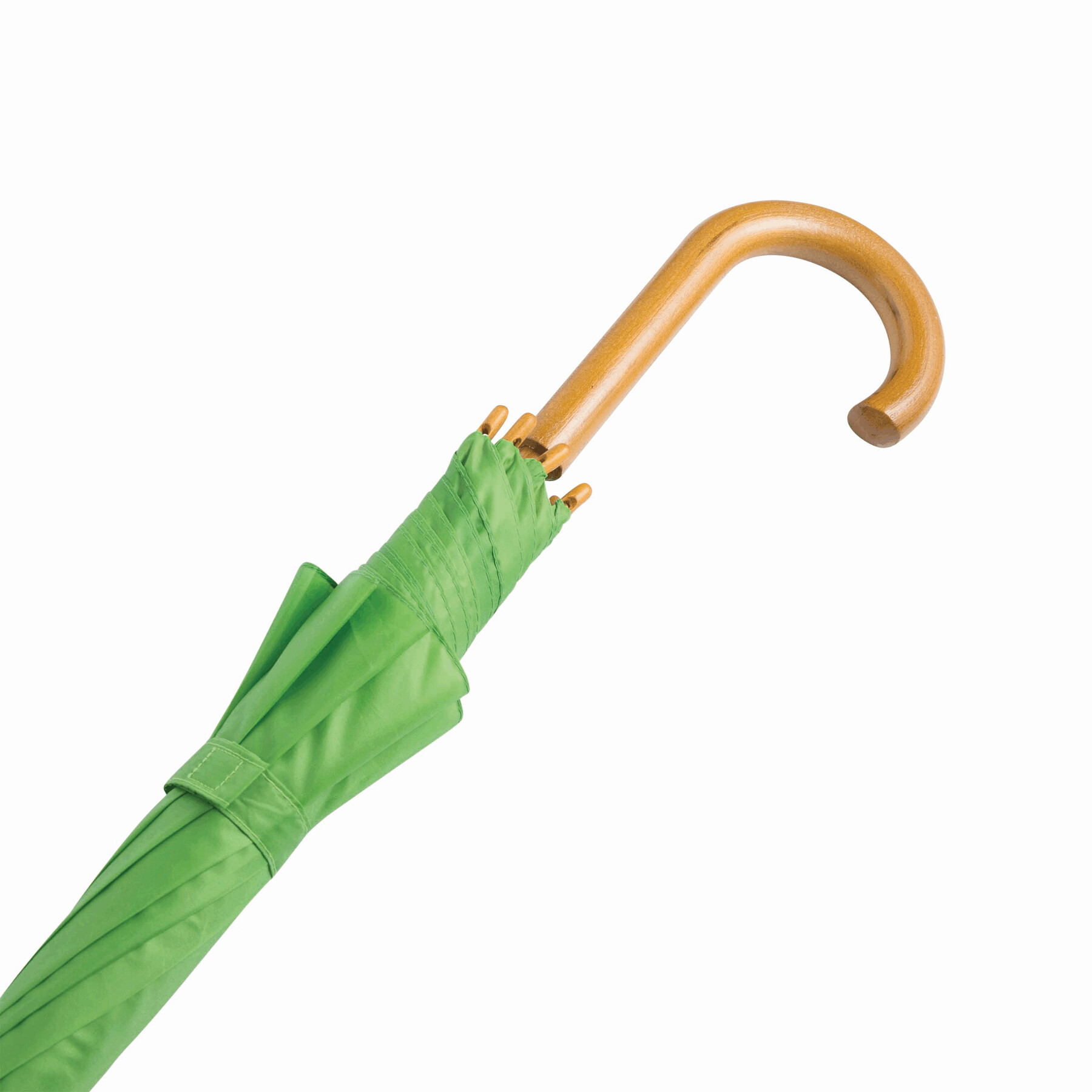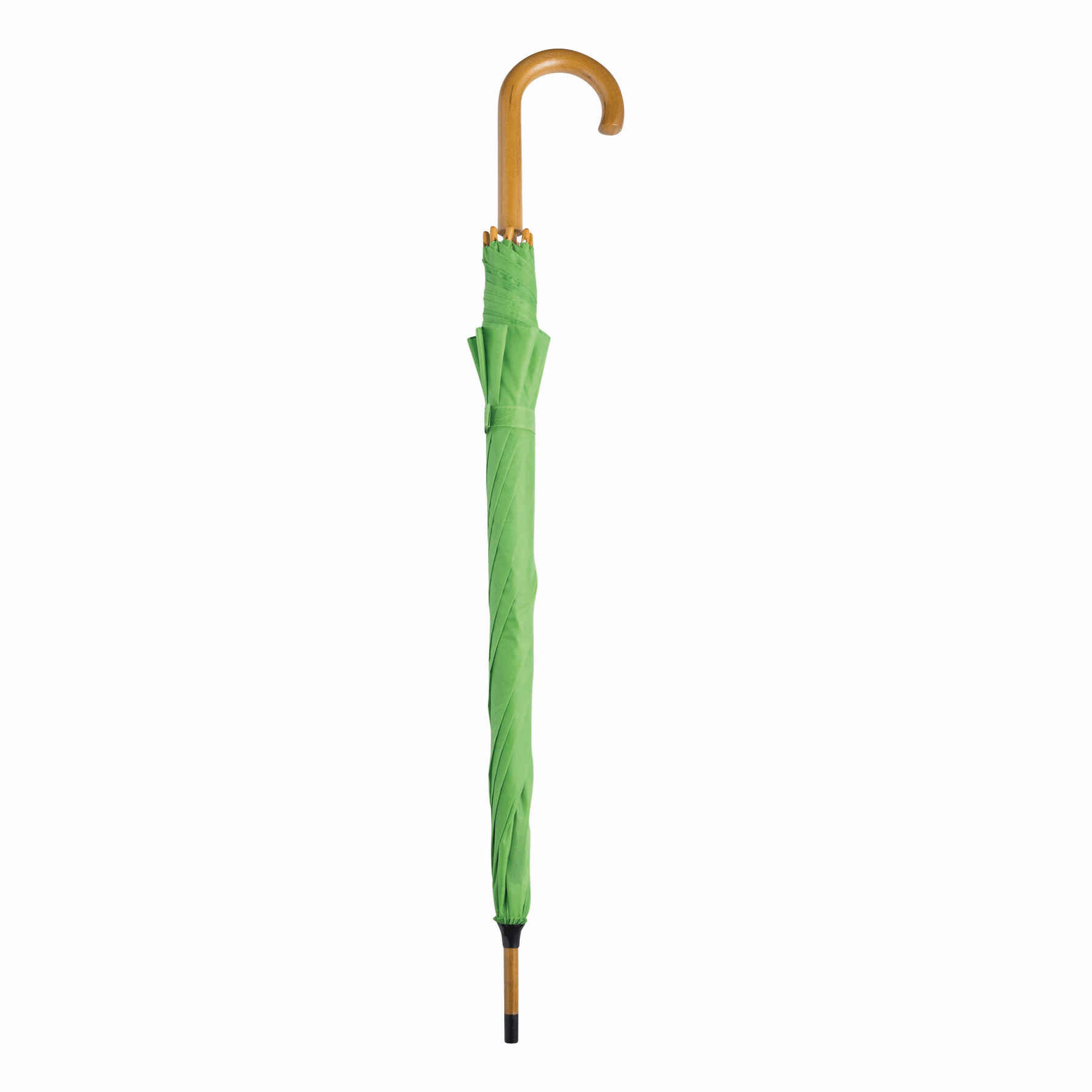 Automatyczny parasol TANGO. Poszycie z poliestru 190 T, czarne, metalowe szyny, drewniana laska i uchwyt w kolorze orzecha włoskiego.