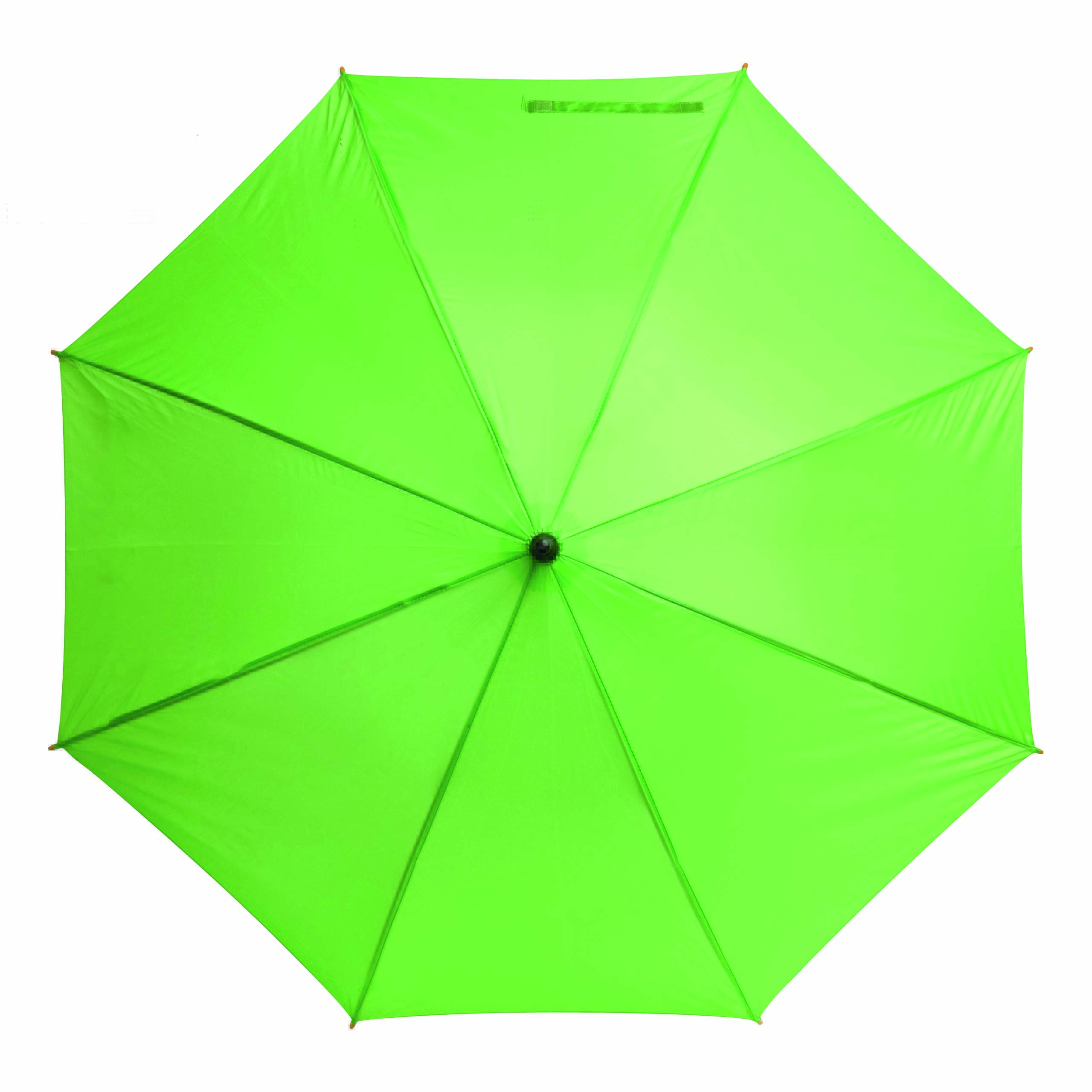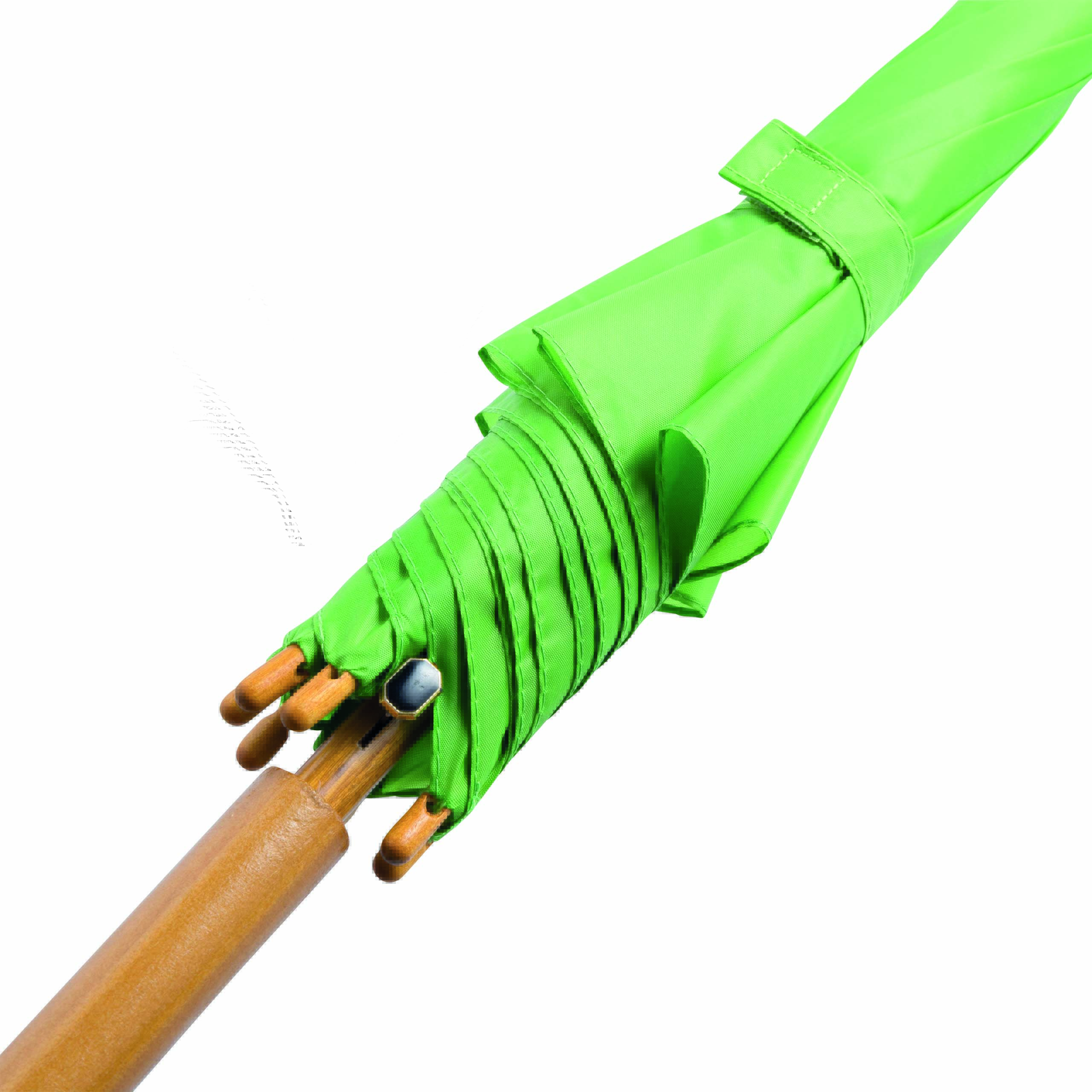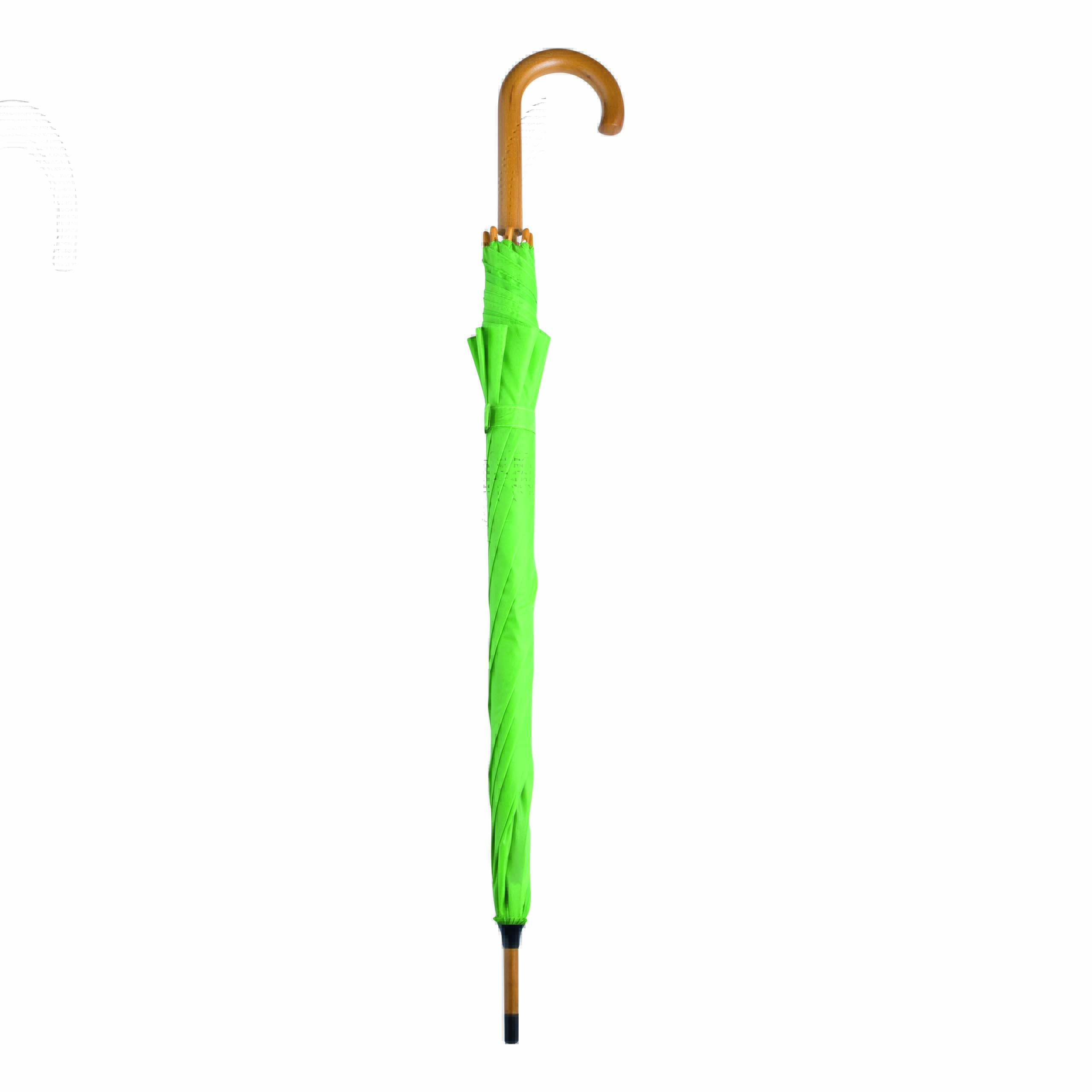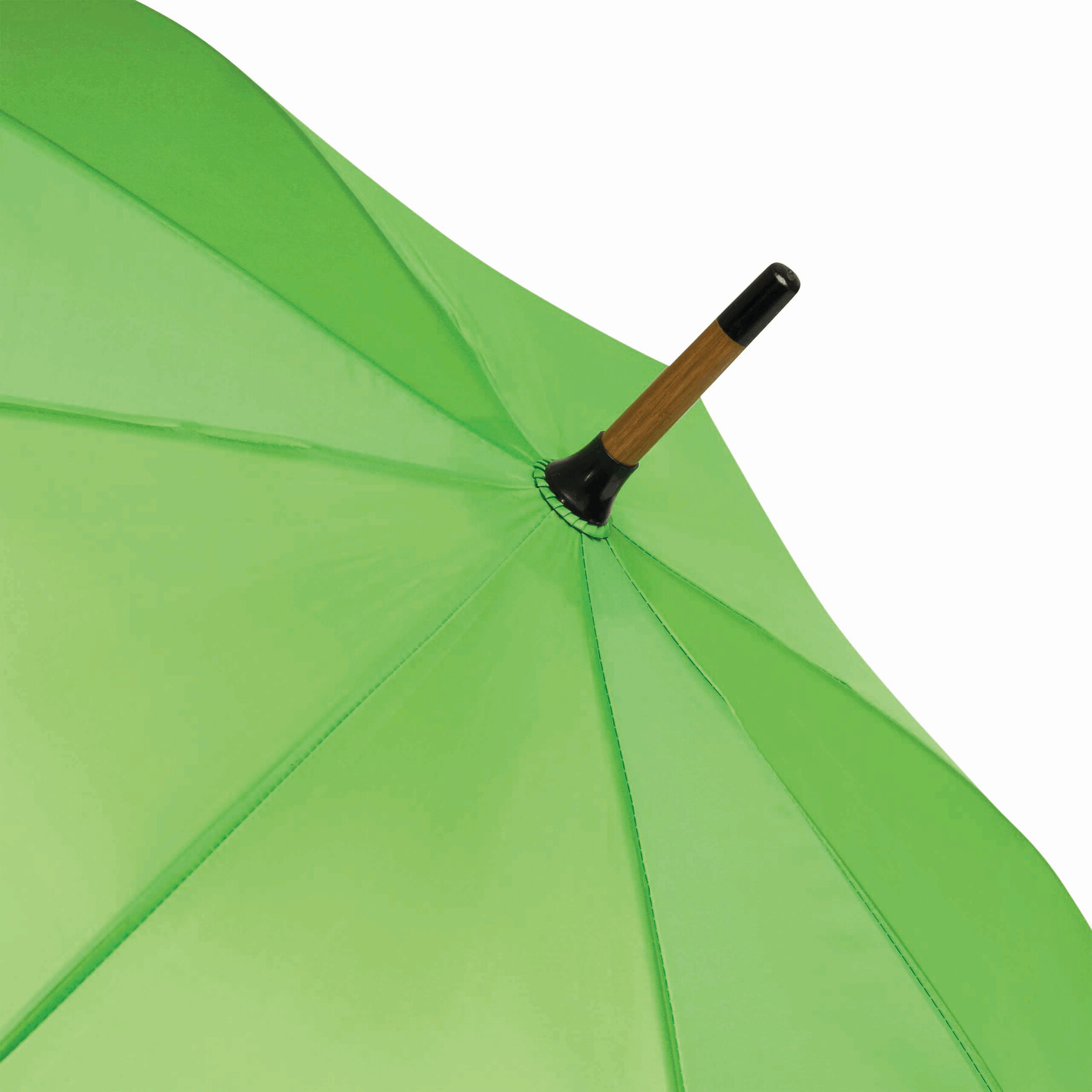 Automatyczny parasol TANGO. Poszycie z poliestru 190 T, czarne, metalowe szyny, drewniana laska i uchwyt w kolorze orzecha włoskiego.