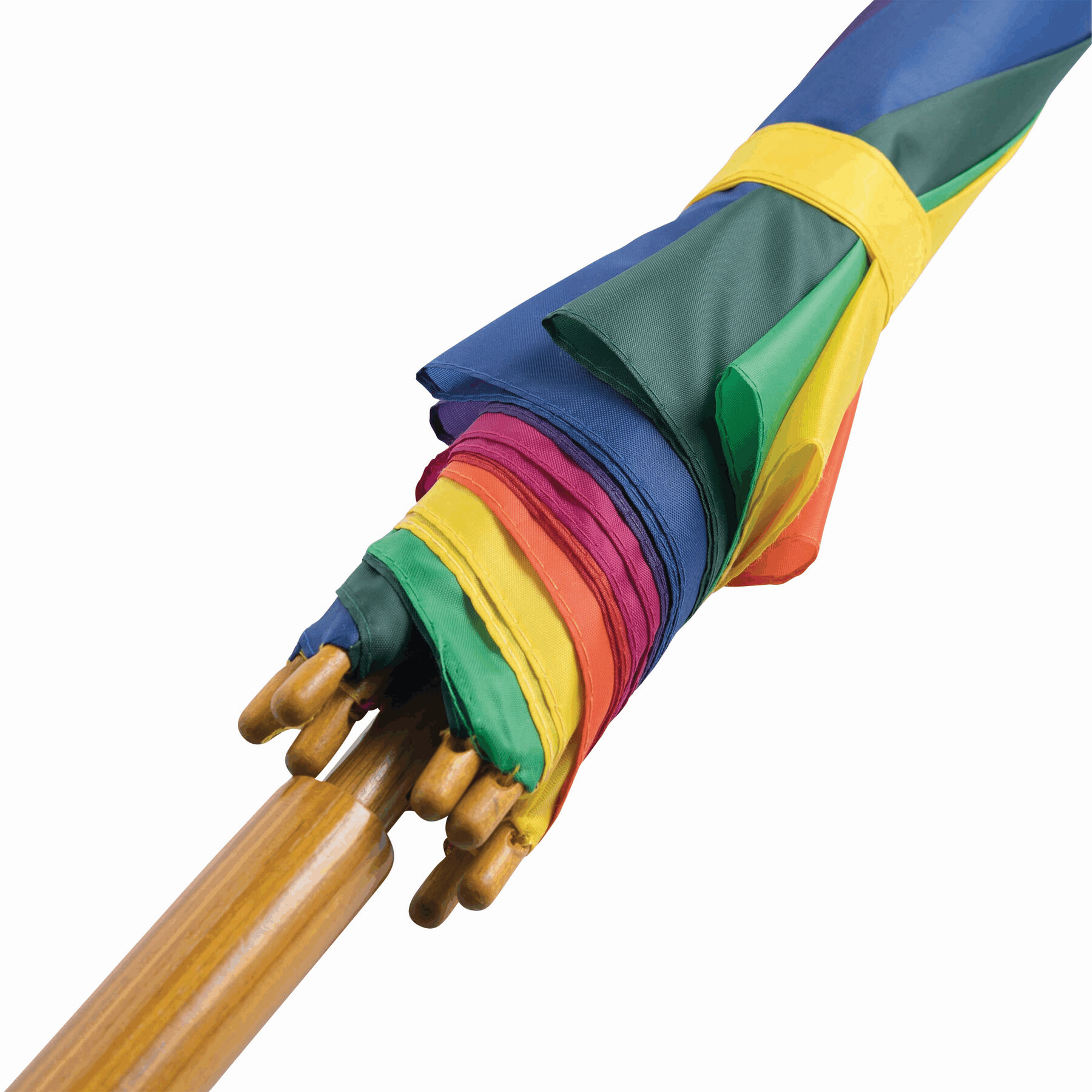 Automatyczny parasol TANGO. Poszycie z poliestru 190 T, czarne, metalowe szyny, drewniana laska i uchwyt w kolorze orzecha włoskiego.