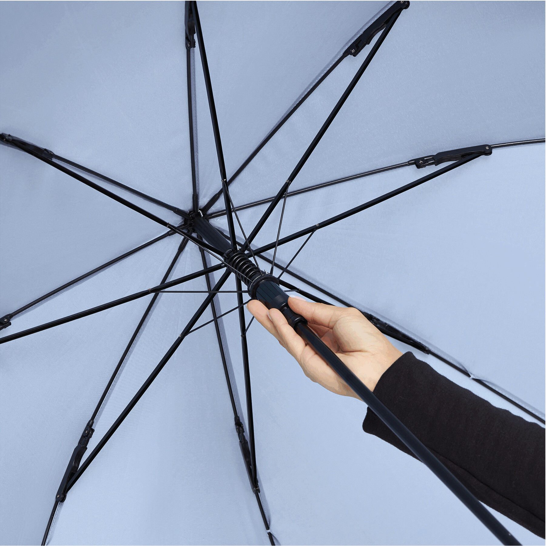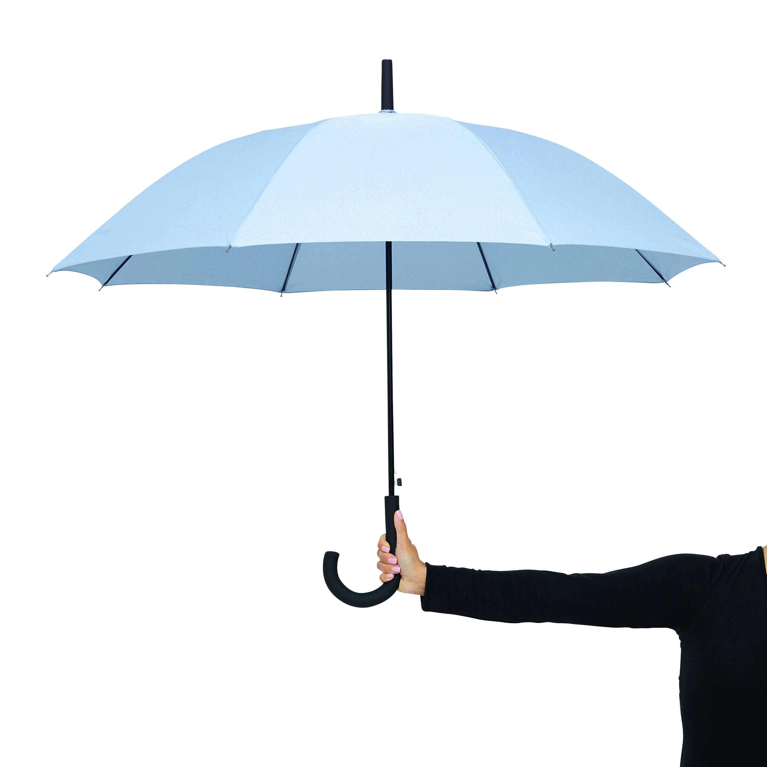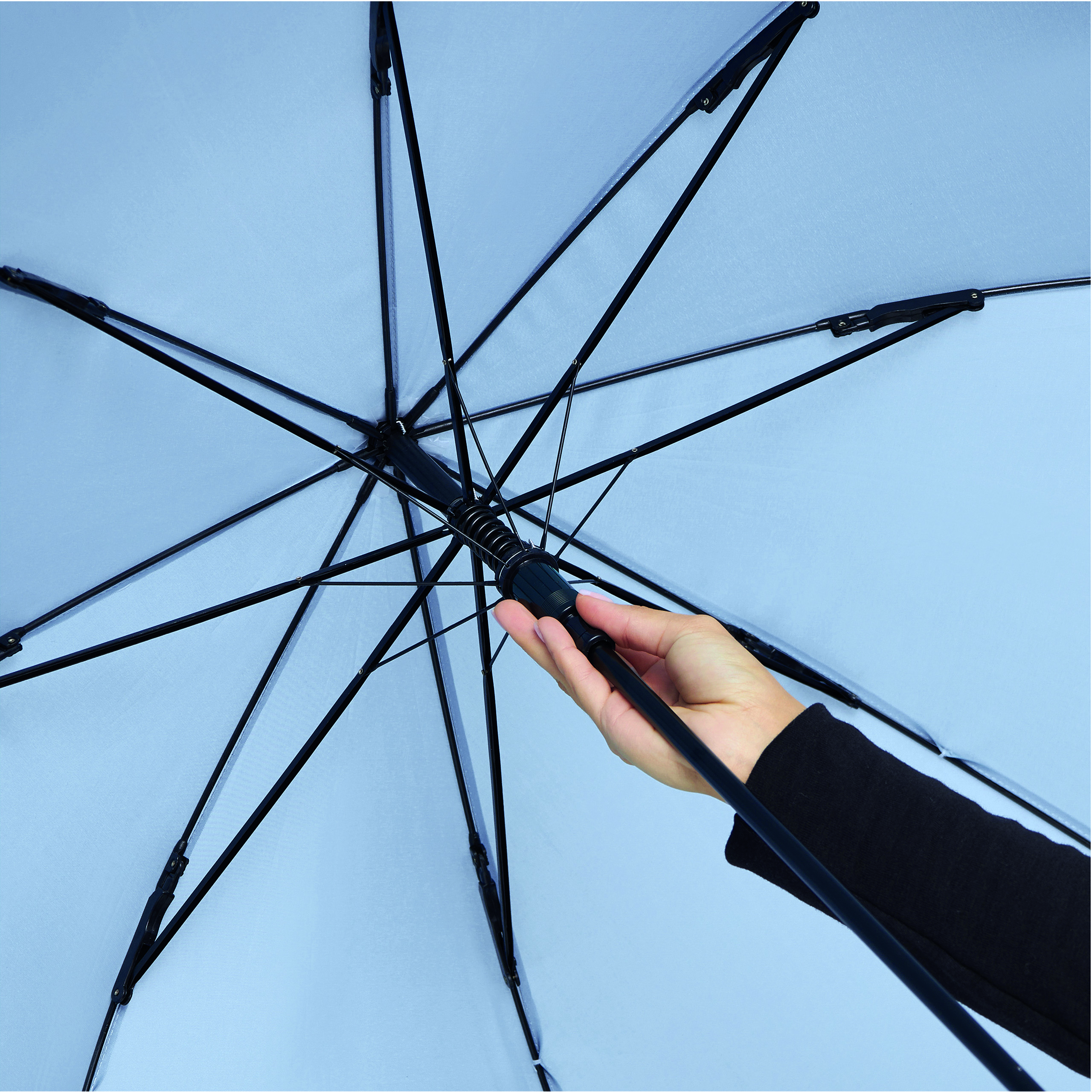 Automatyczny parasol sztormowy WIND z gumowanym uchwytem, poszycie z wysokiej jakości poliestru pongee, mocny automatyczny stelaż, odporny na wiatr, metalowa laska lakierowana na kolor czarny.