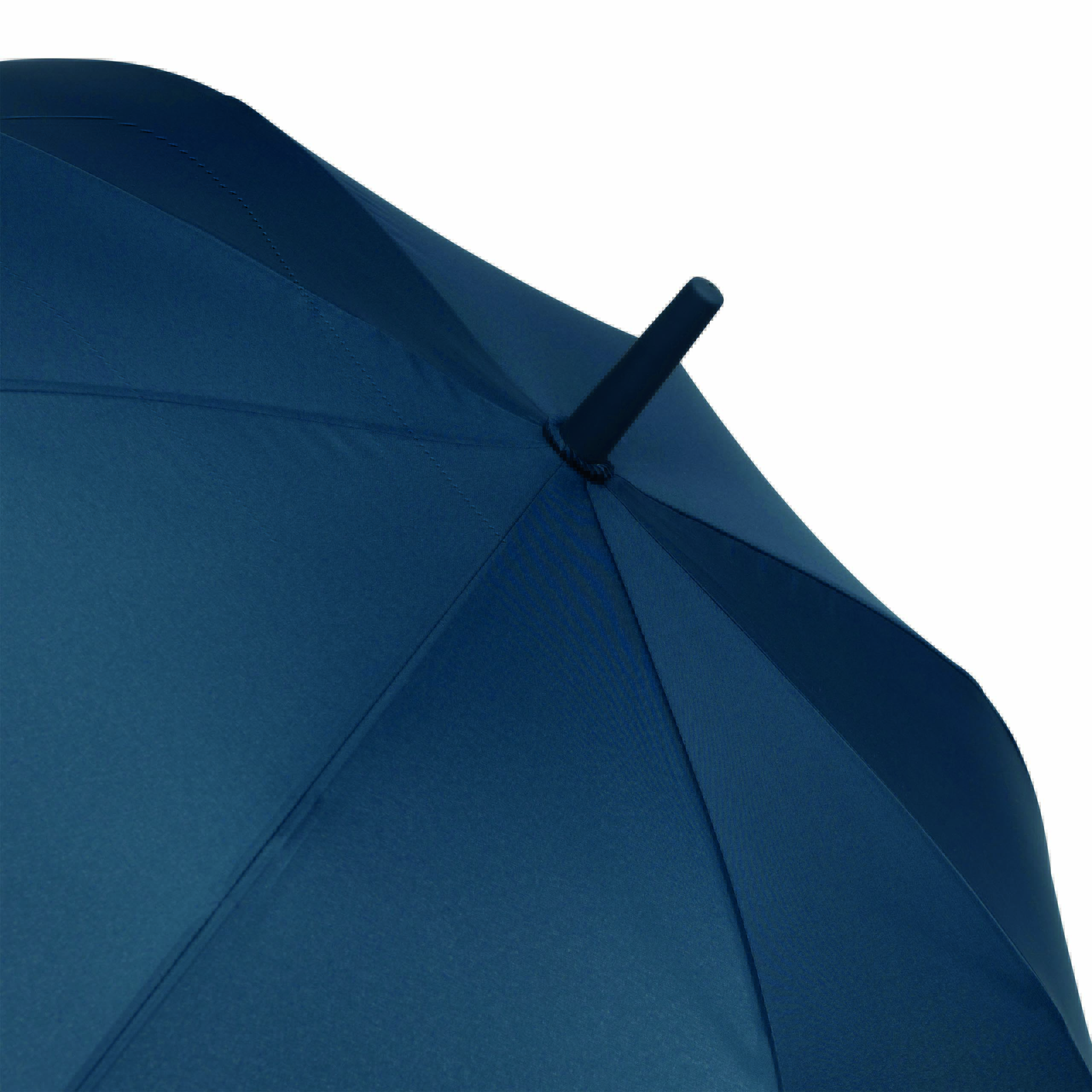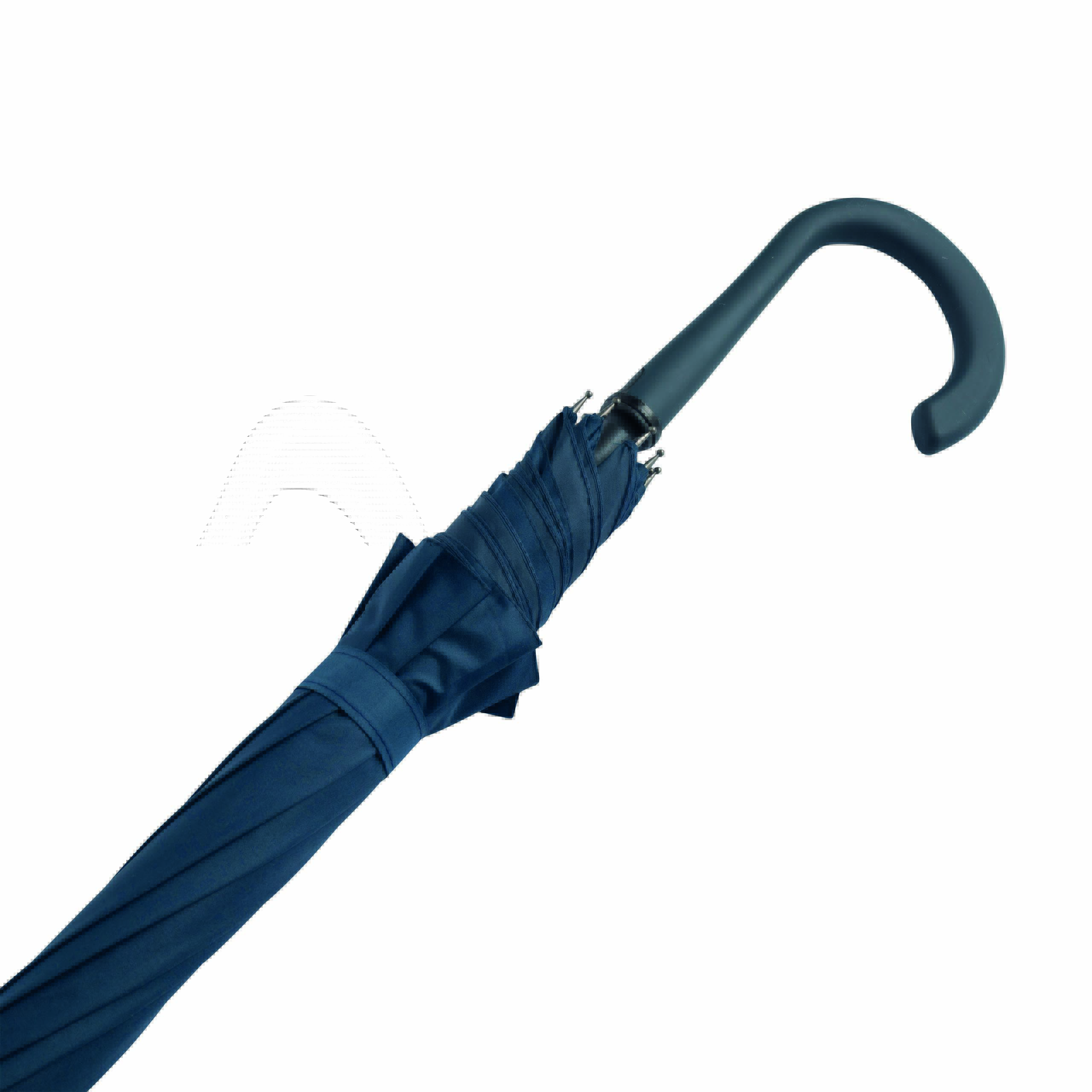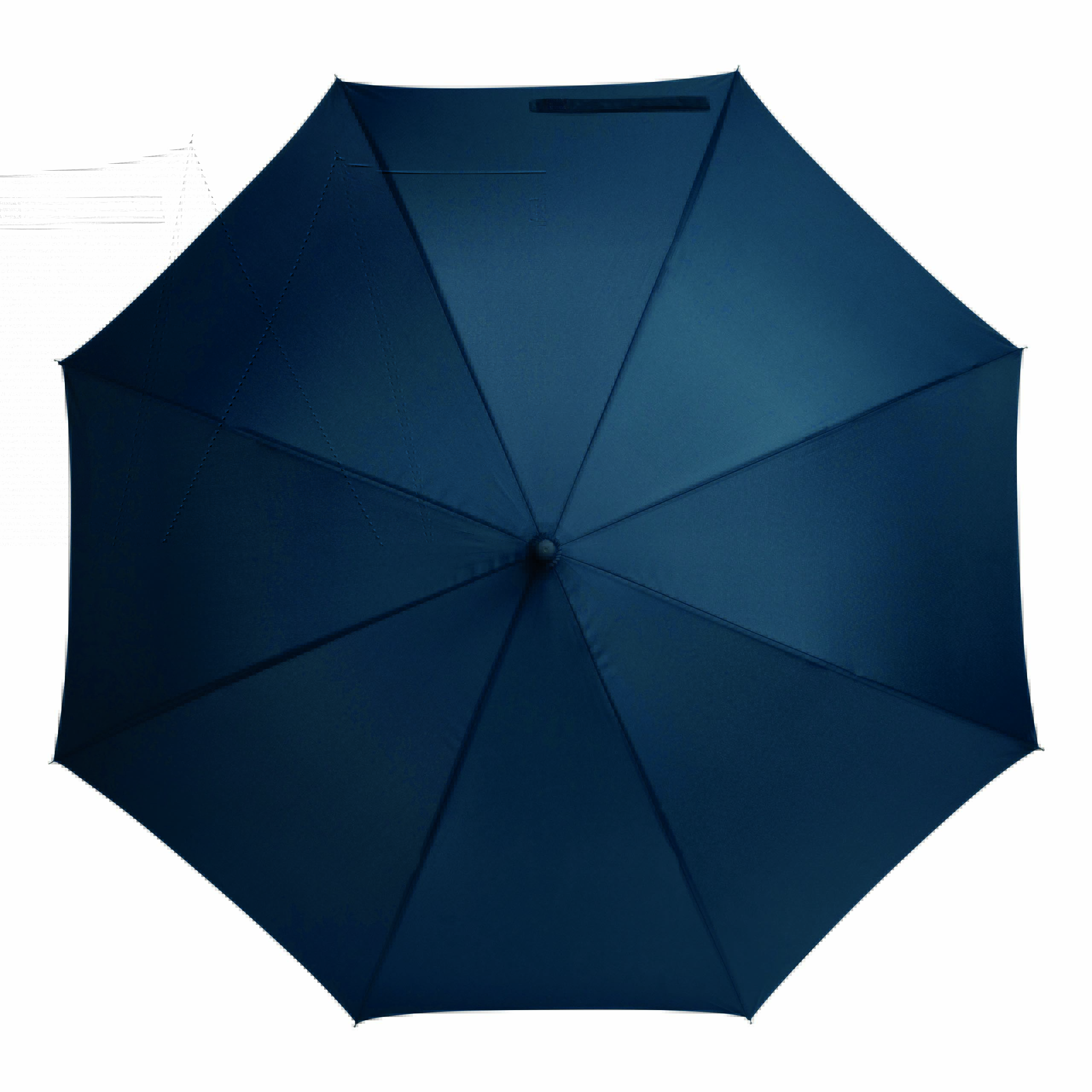 Parasol automatyczny LAMBARDA z metalową laską, szynami z włókna szklanego, metalowymi kolcami, uchwytem pokrytym gumą, z wbudowanym przyciskiem, poszycie z poliestru pongee ze specjalną wodoodporną powłoką, zapięcie na rzep. Wiatroodporny.