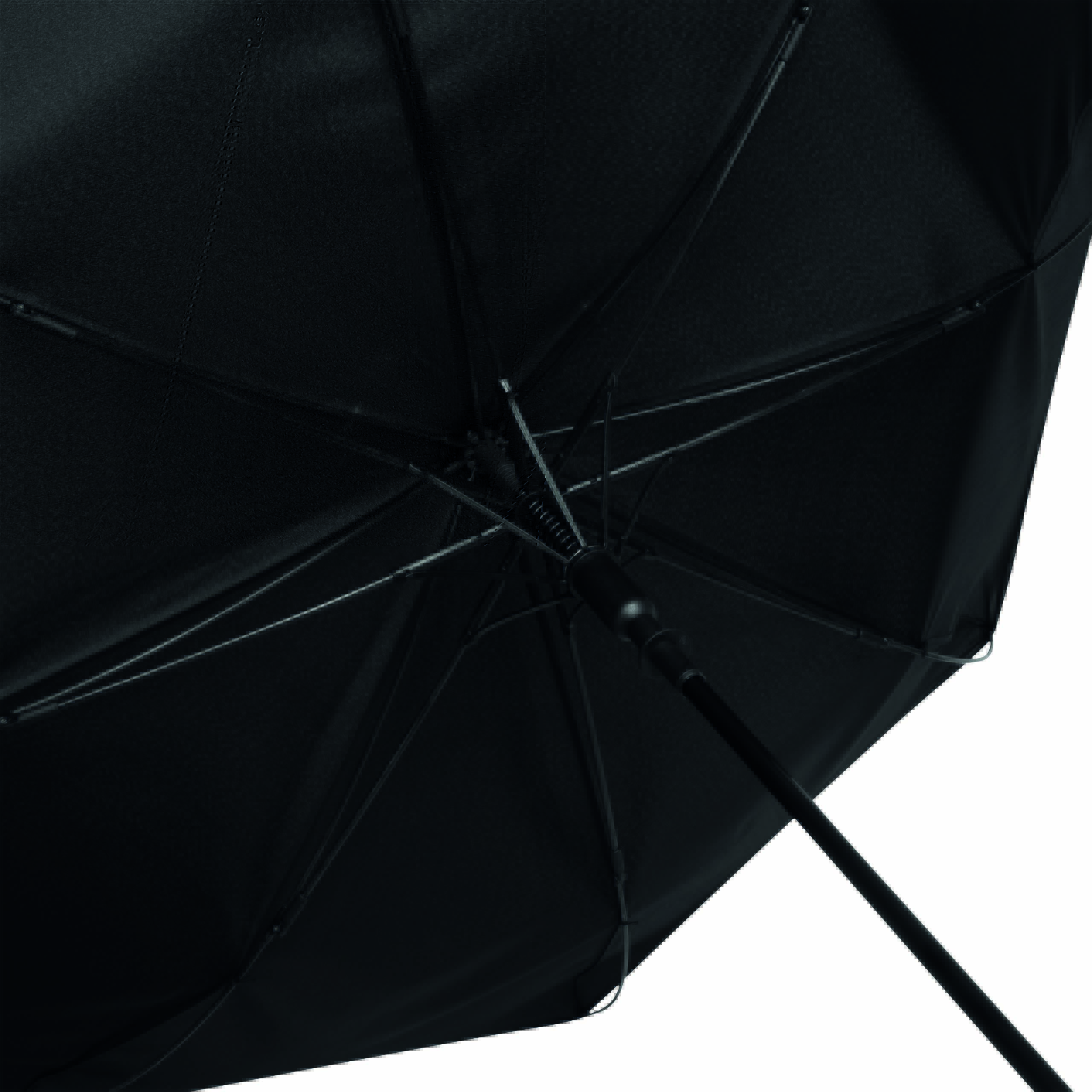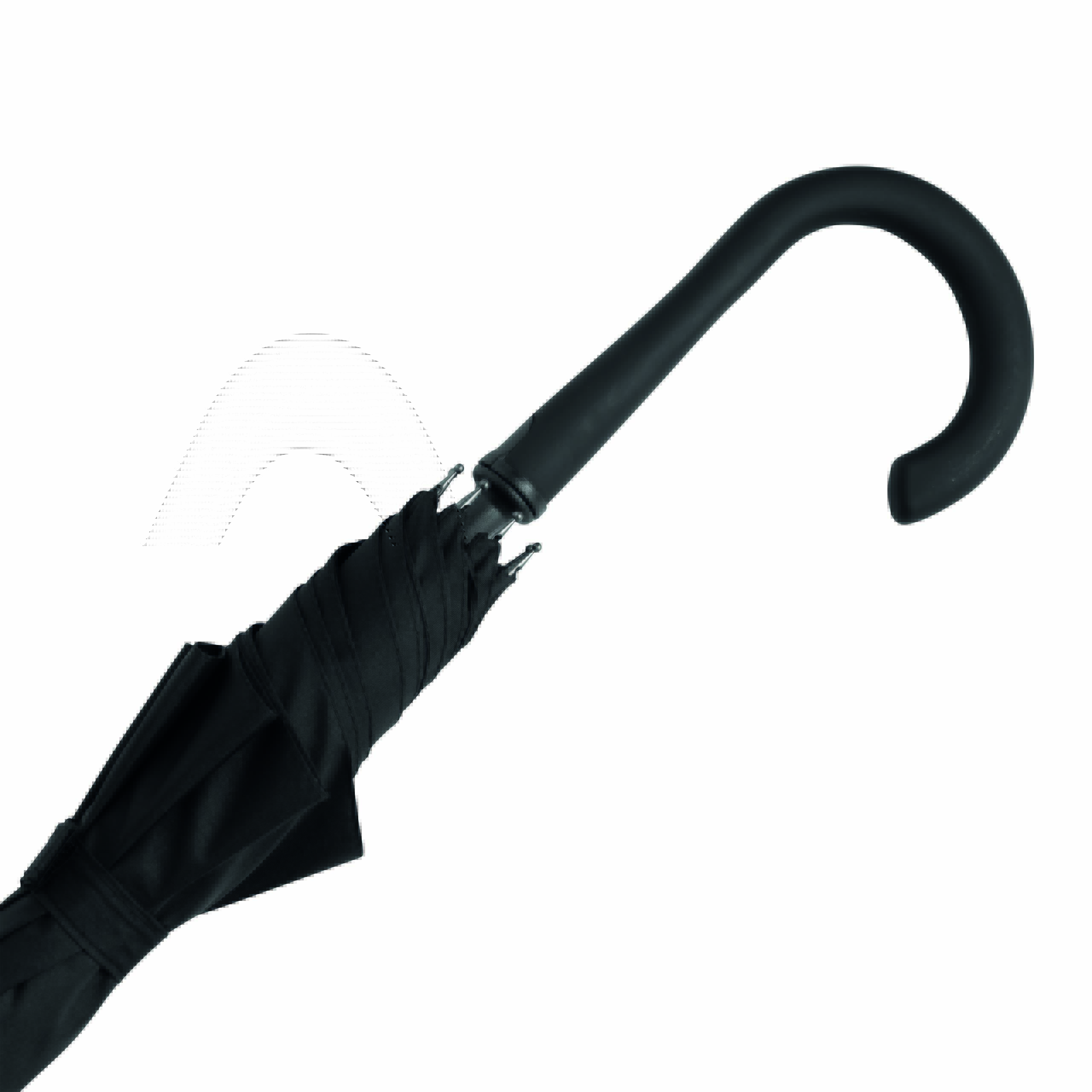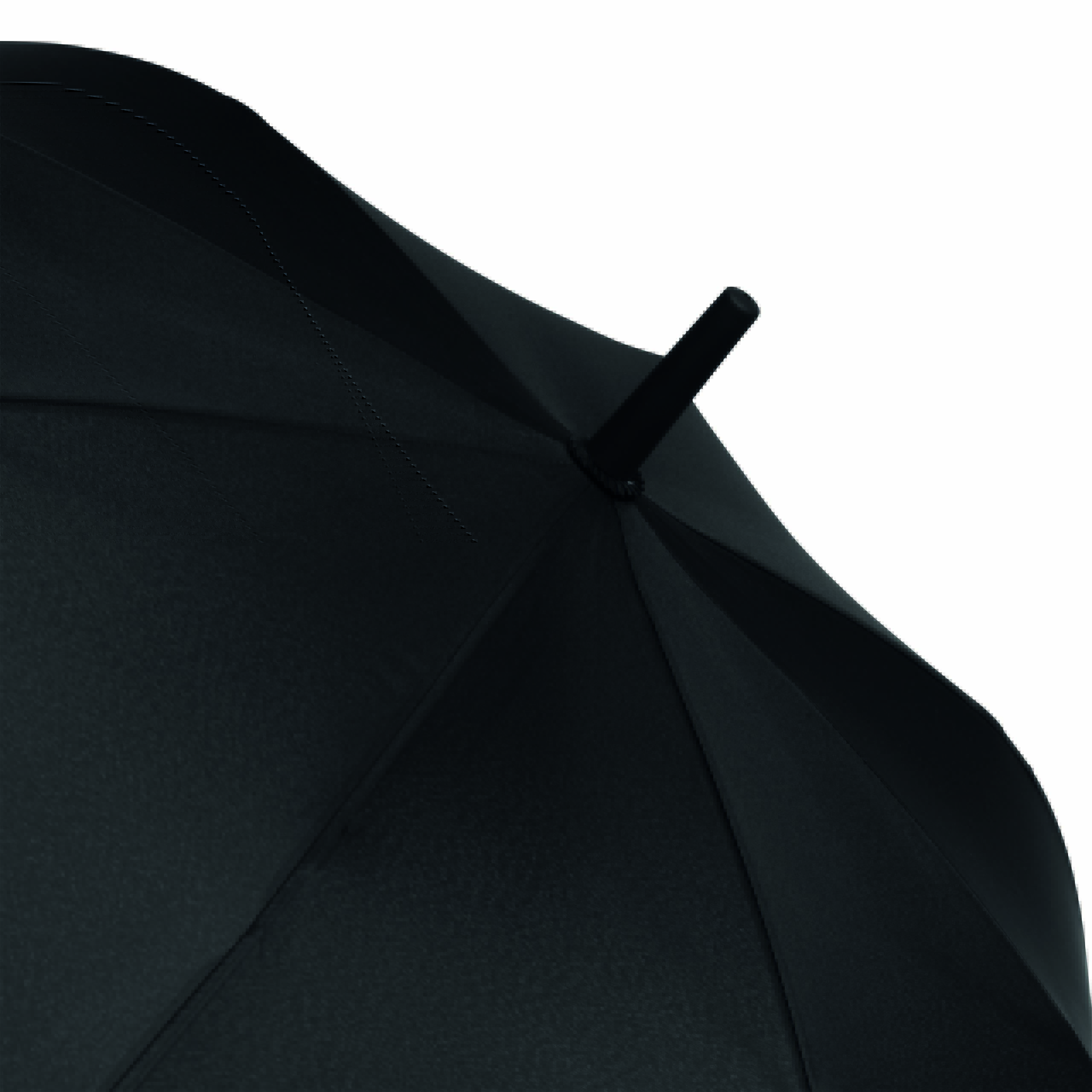Parasol automatyczny LAMBARDA z metalową laską, szynami z włókna szklanego, metalowymi kolcami, uchwytem pokrytym gumą, z wbudowanym przyciskiem, poszycie z poliestru pongee ze specjalną wodoodporną powłoką, zapięcie na rzep. Wiatroodporny.