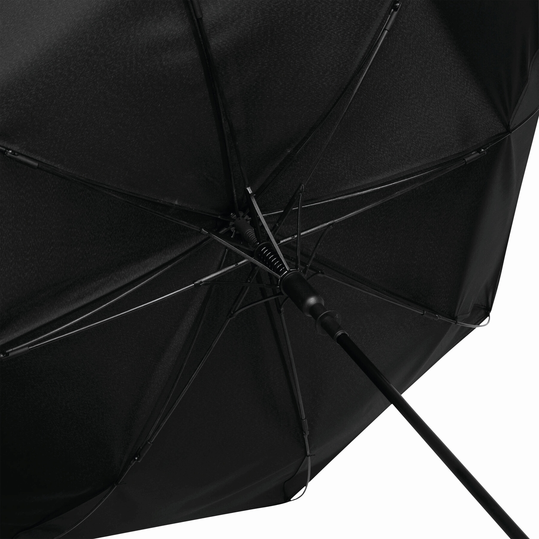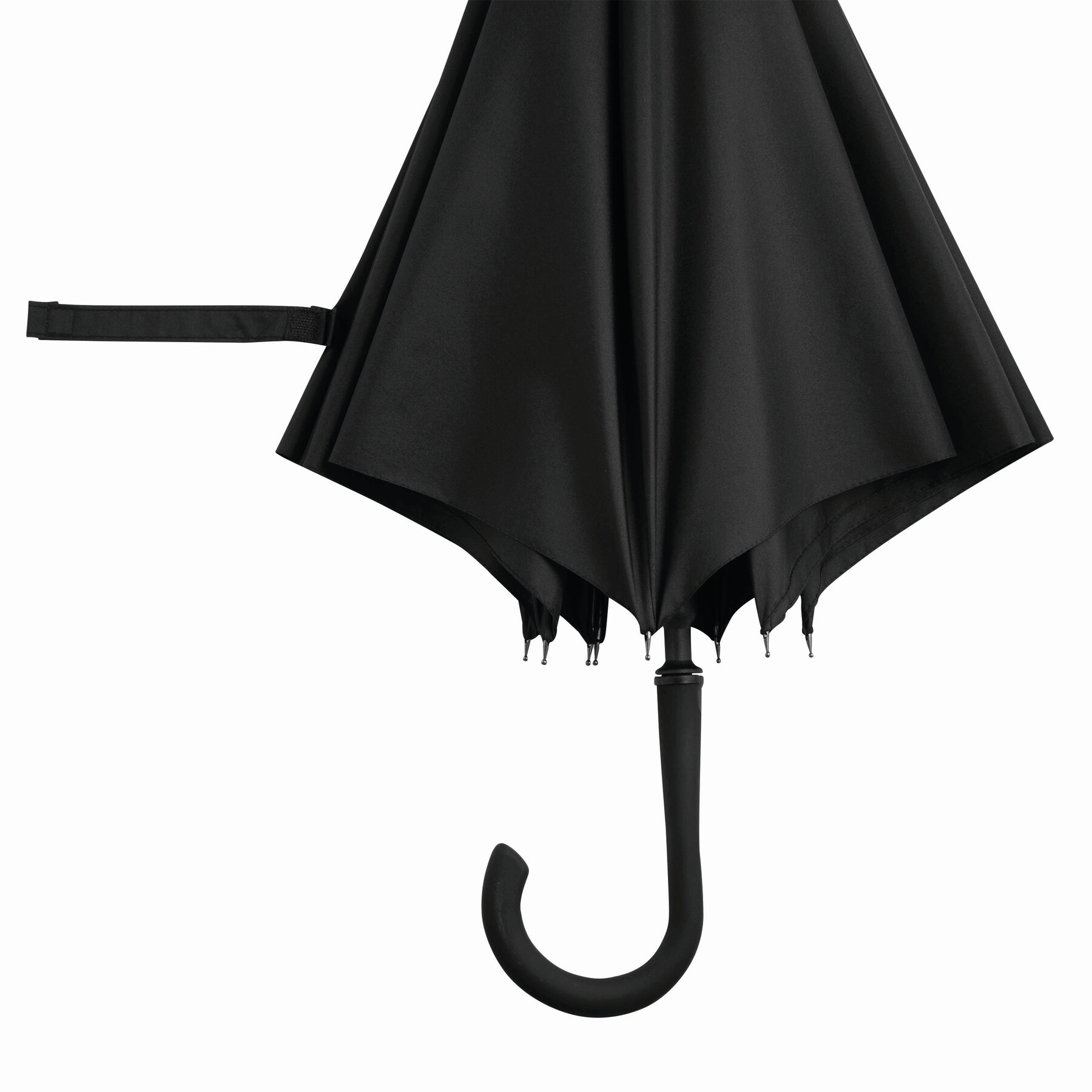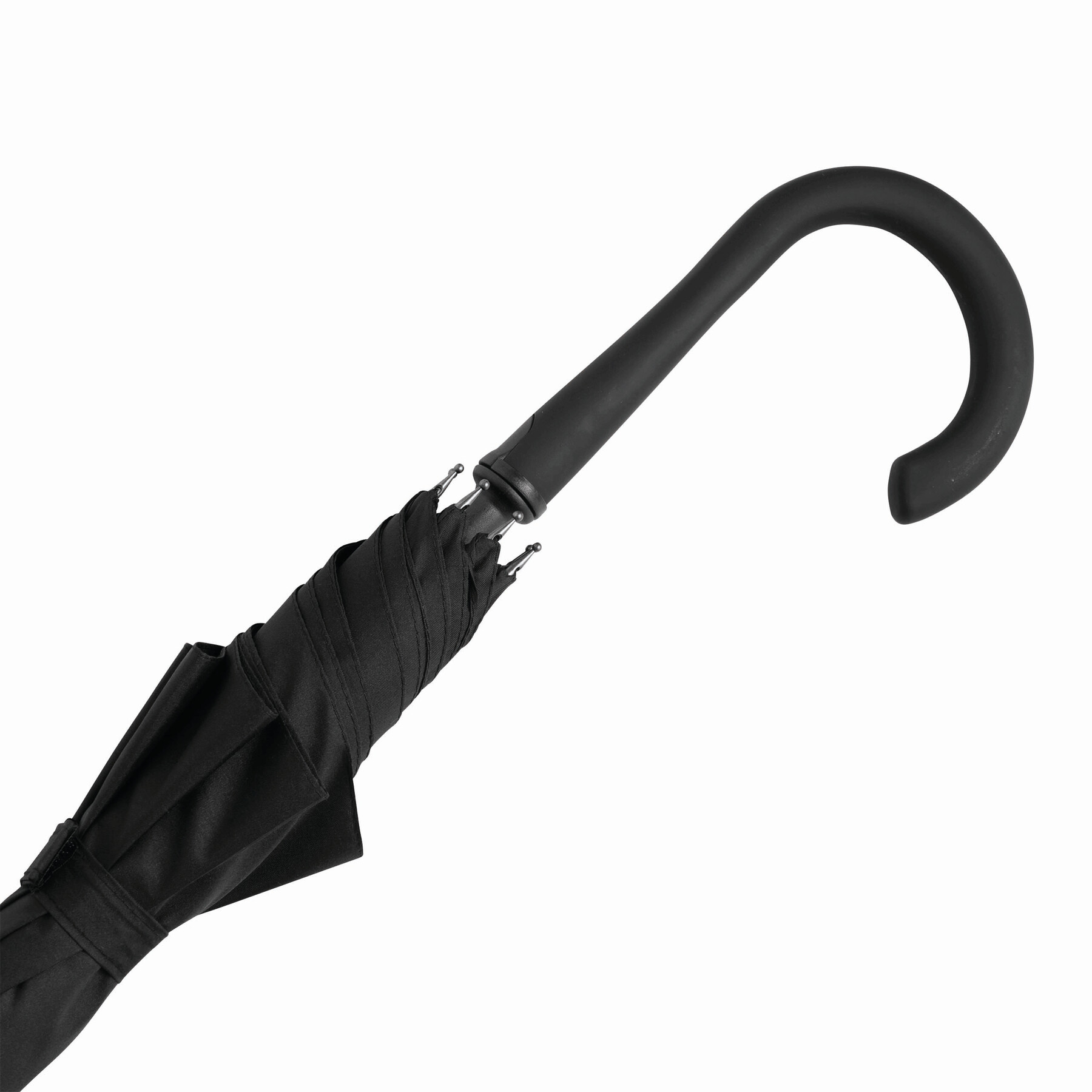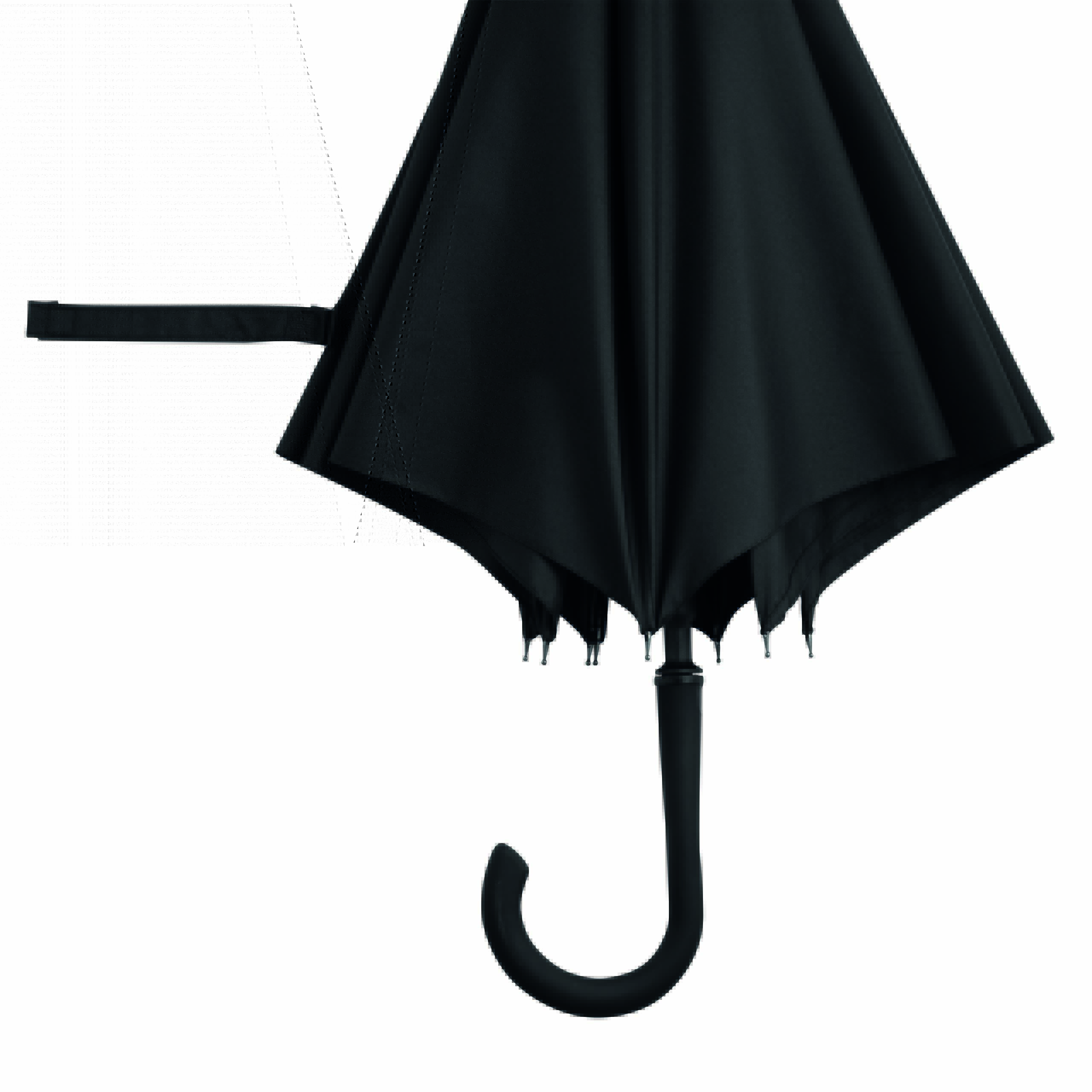 Parasol automatyczny LAMBARDA z metalową laską, szynami z włókna szklanego, metalowymi kolcami, uchwytem pokrytym gumą, z wbudowanym przyciskiem, poszycie z poliestru pongee ze specjalną wodoodporną powłoką, zapięcie na rzep. Wiatroodporny.
