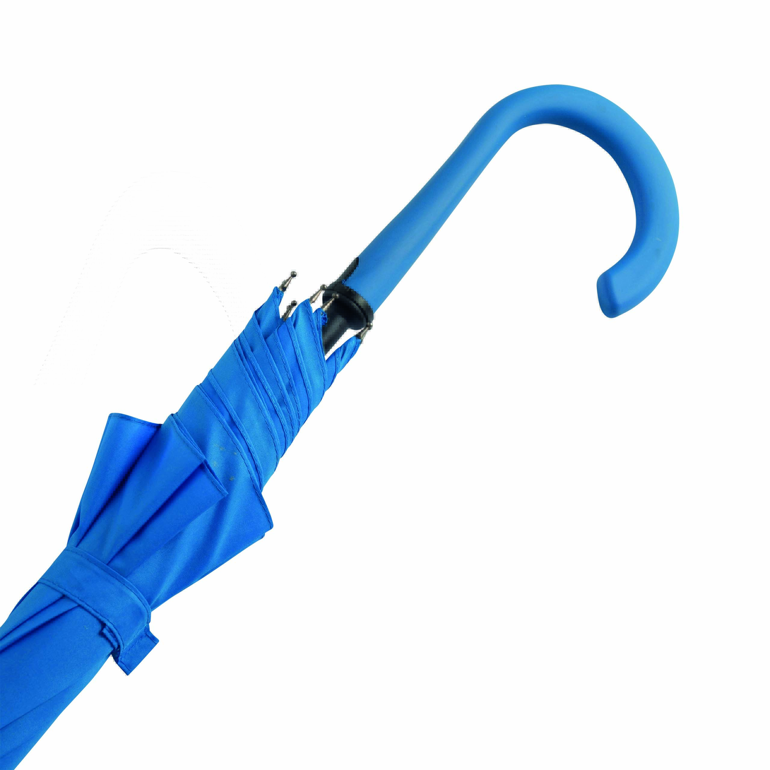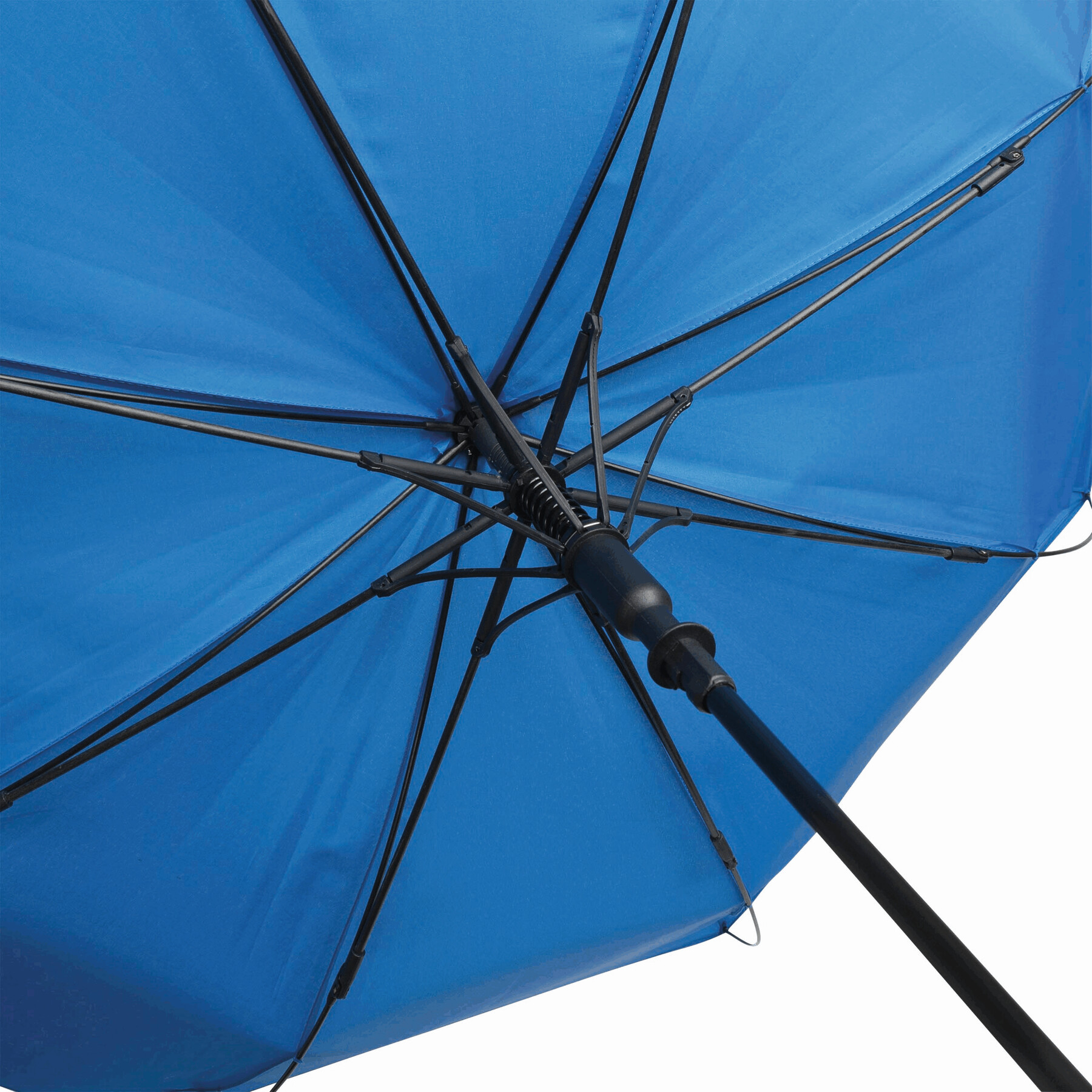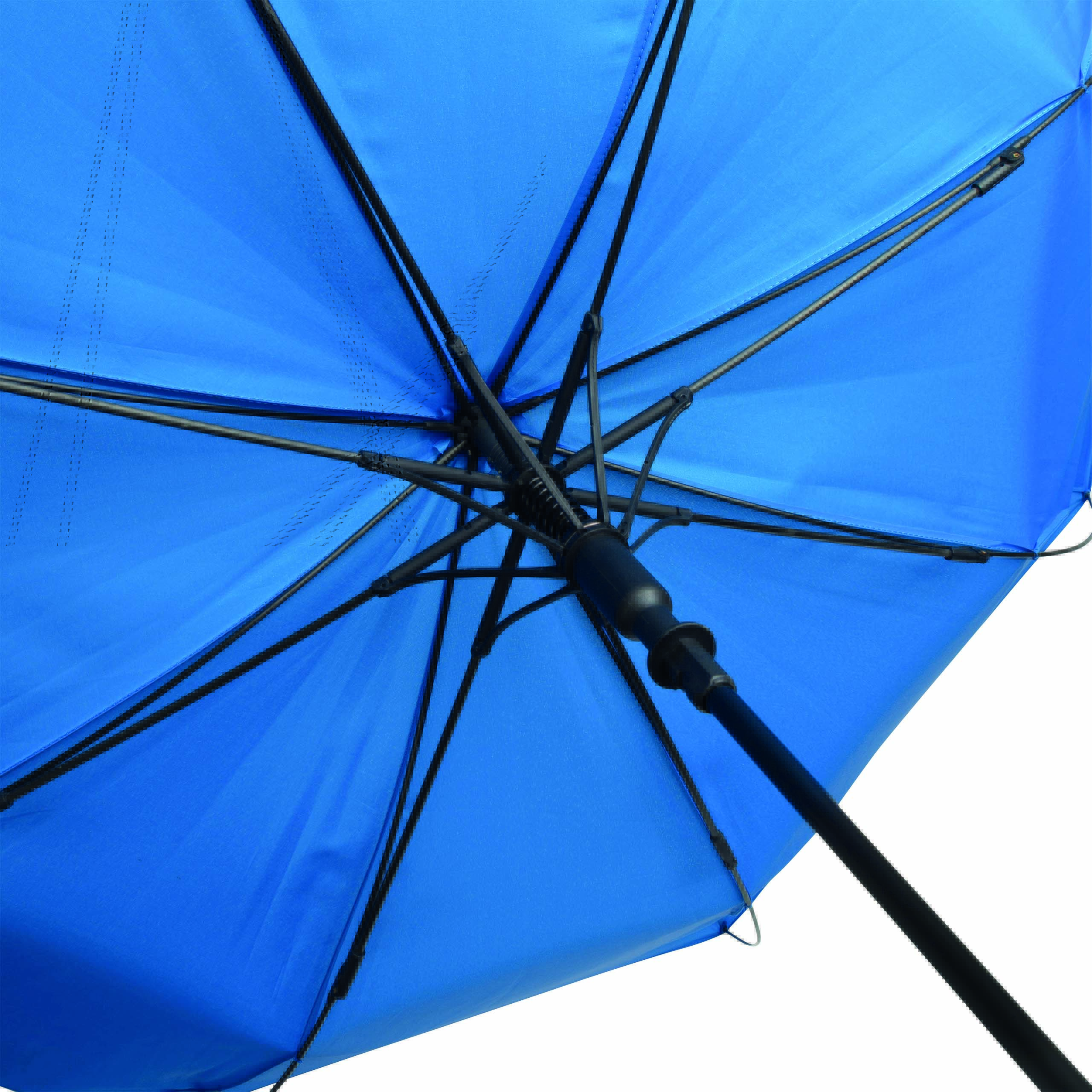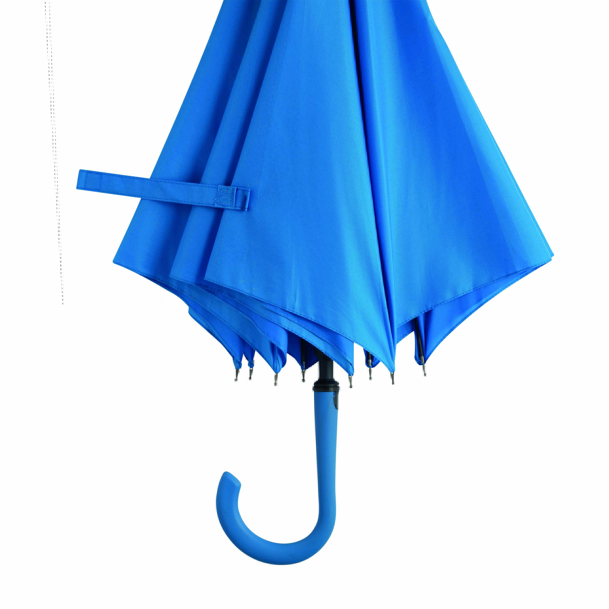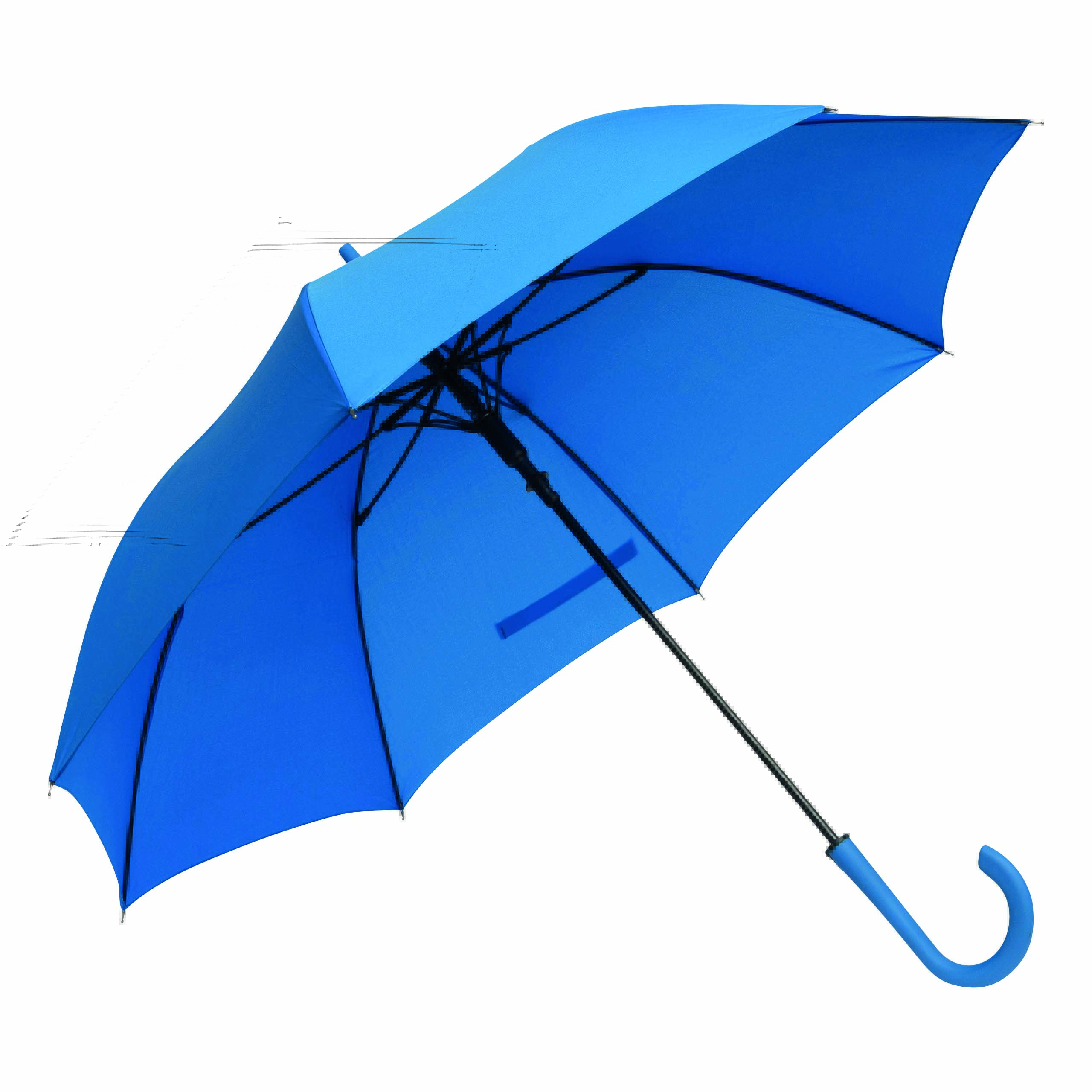 Parasol automatyczny LAMBARDA z metalową laską, szynami z włókna szklanego, metalowymi kolcami, uchwytem pokrytym gumą, z wbudowanym przyciskiem, poszycie z poliestru pongee ze specjalną wodoodporną powłoką, zapięcie na rzep. Wiatroodporny.