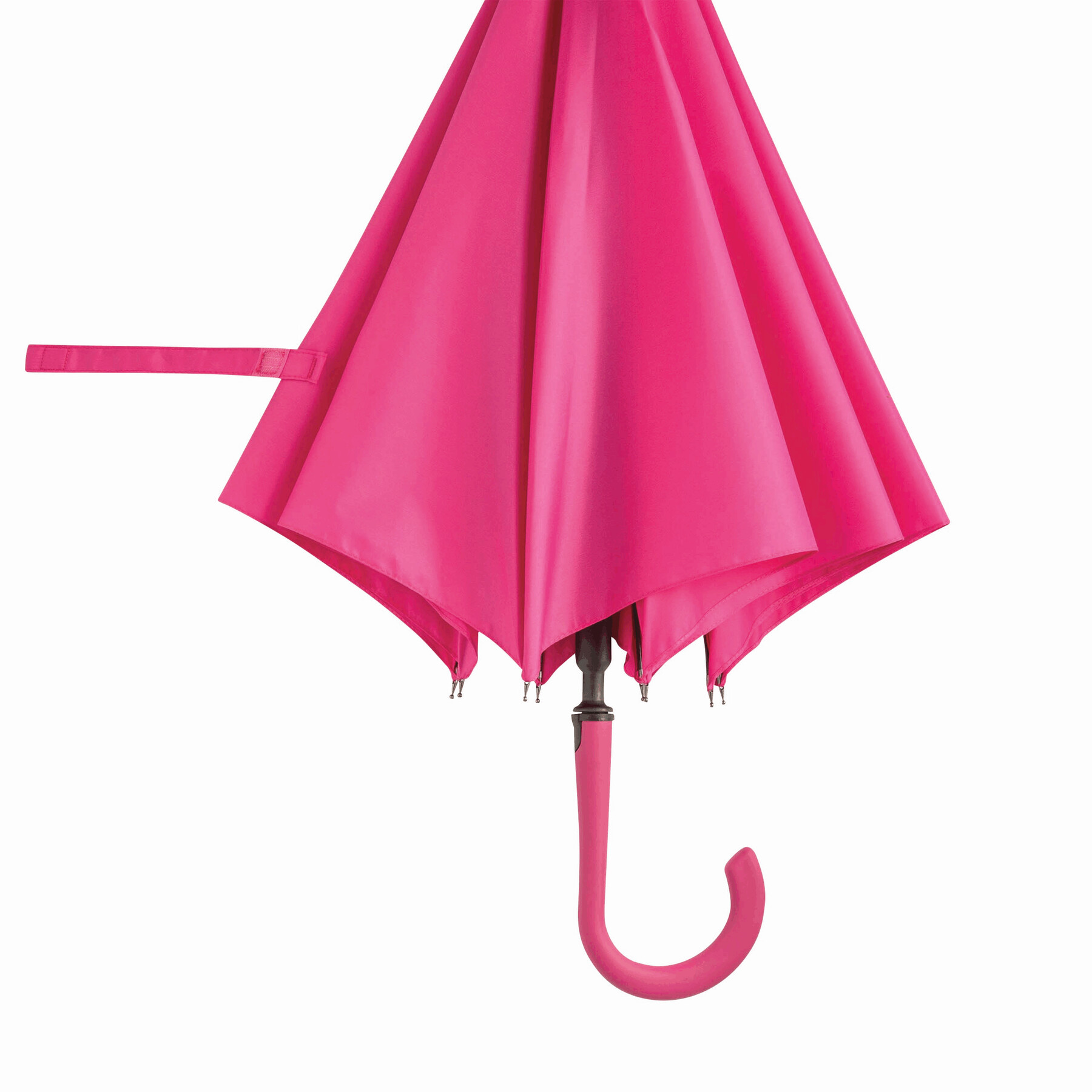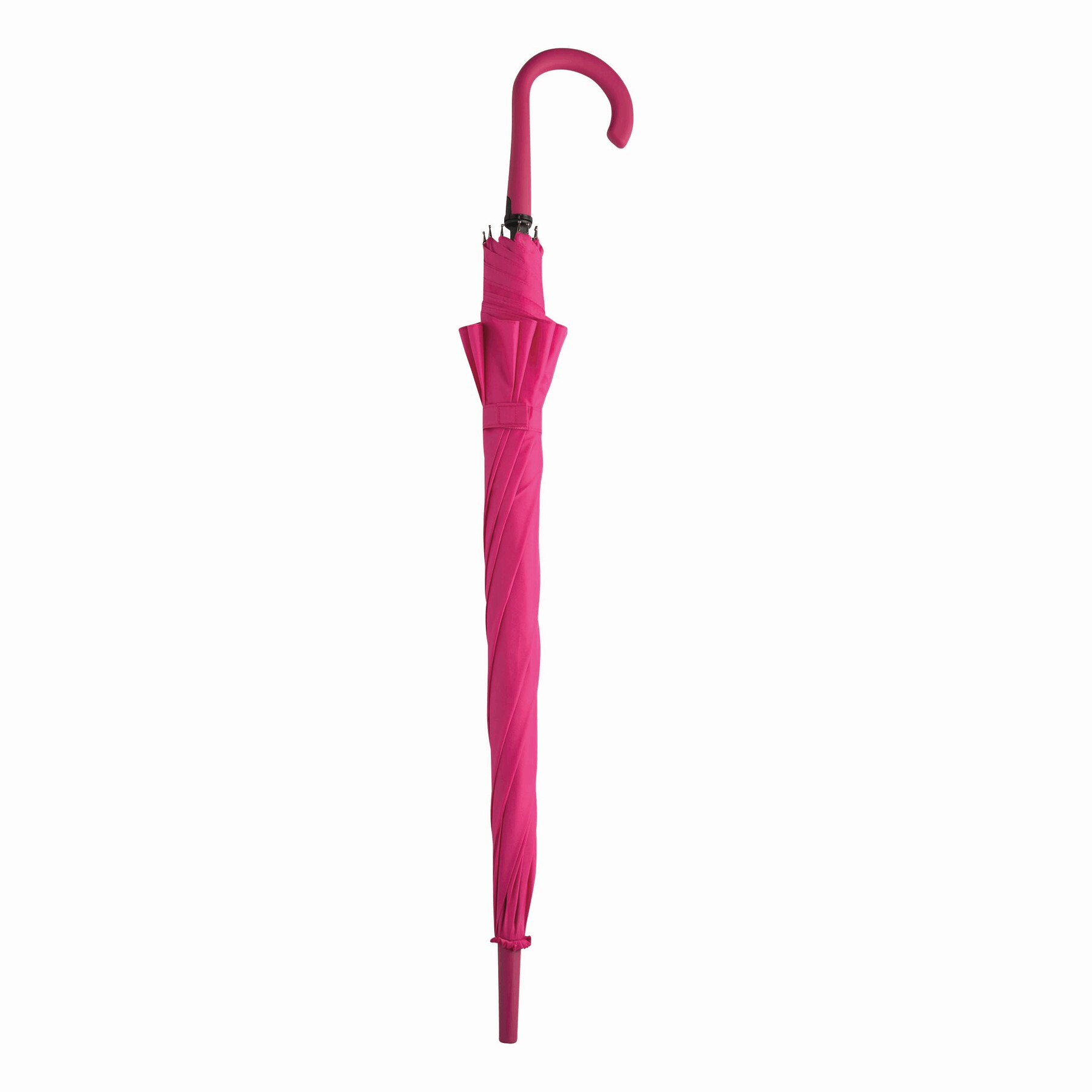 Parasol automatyczny LAMBARDA z metalową laską, szynami z włókna szklanego, metalowymi kolcami, uchwytem pokrytym gumą, z wbudowanym przyciskiem, poszycie z poliestru pongee ze specjalną wodoodporną powłoką, zapięcie na rzep. Wiatroodporny.