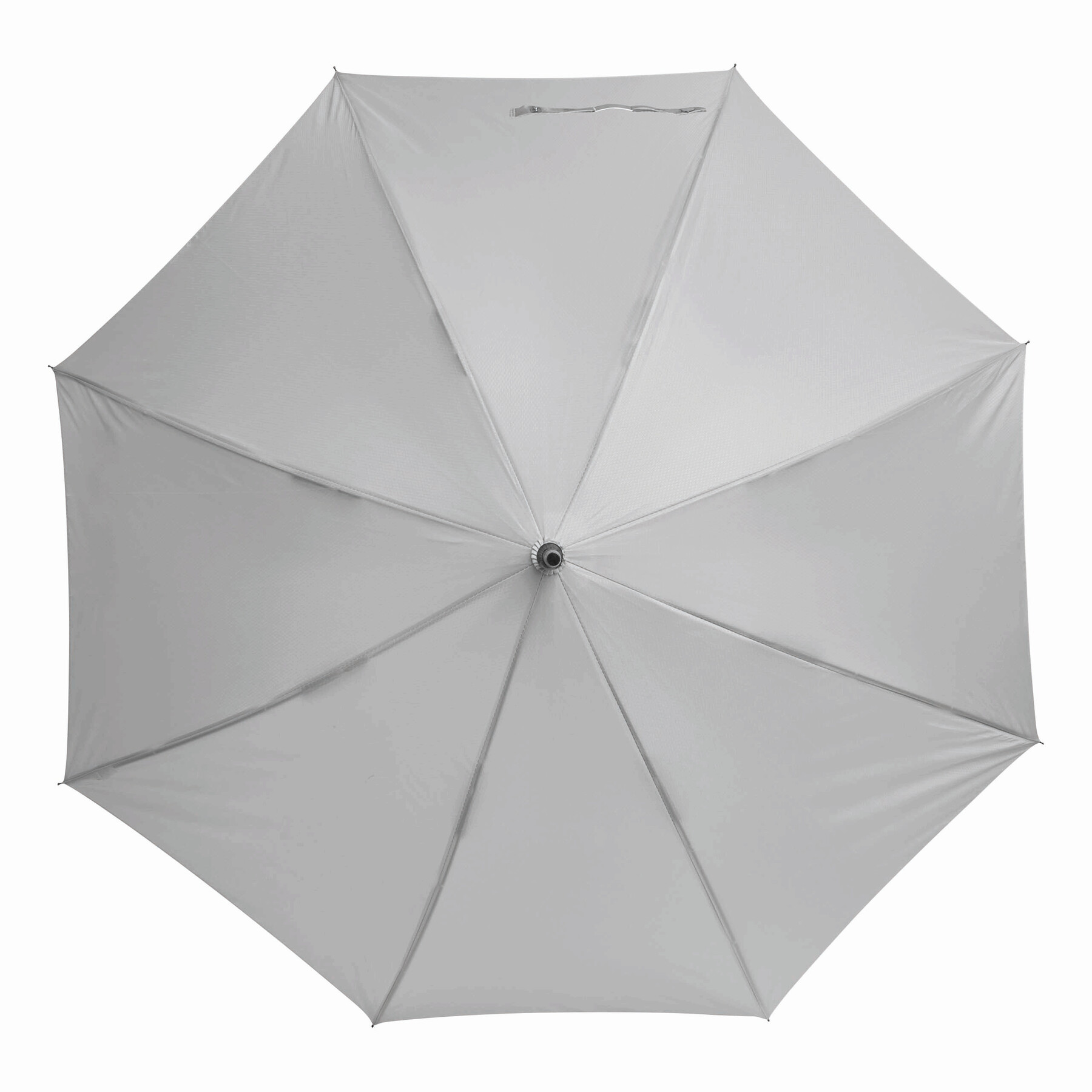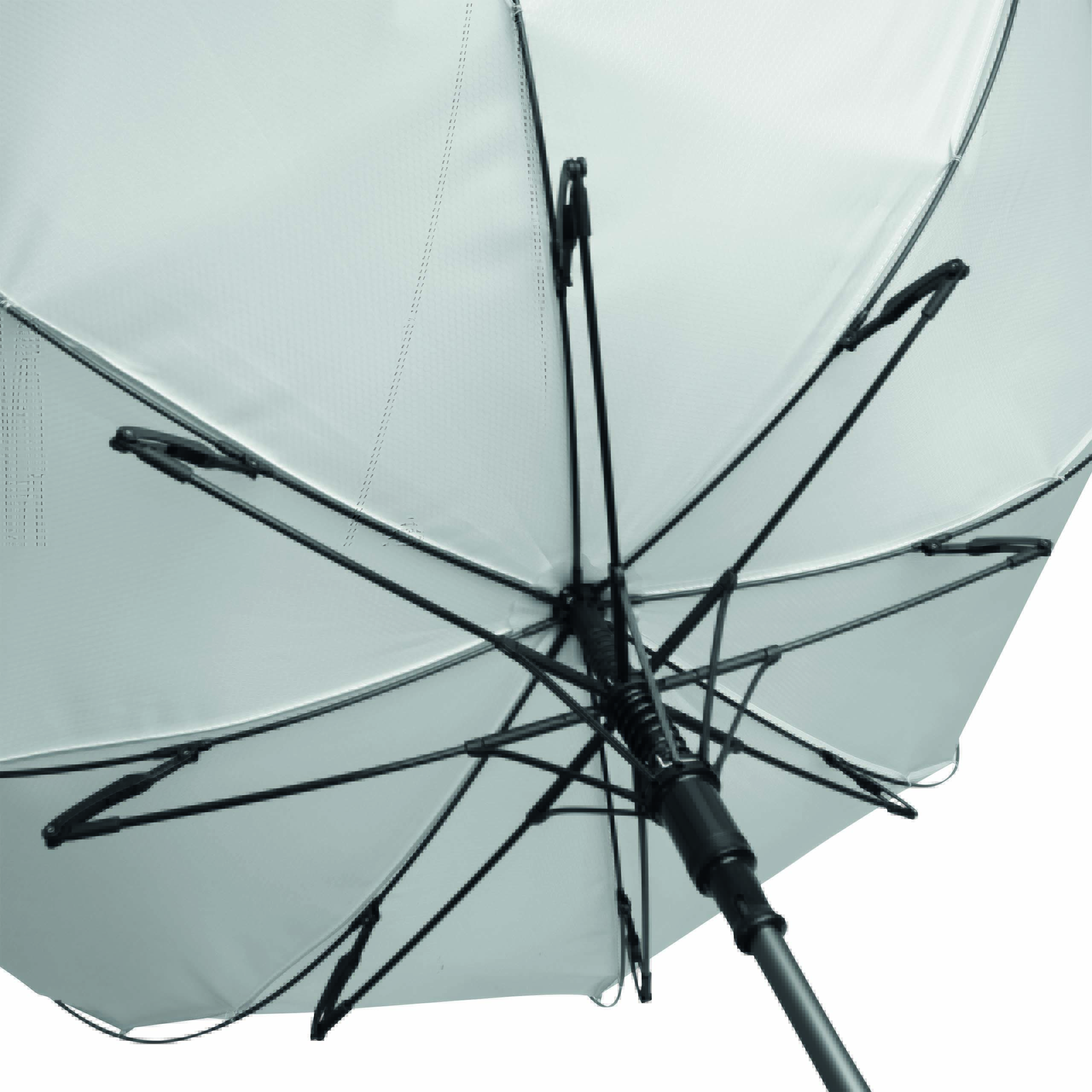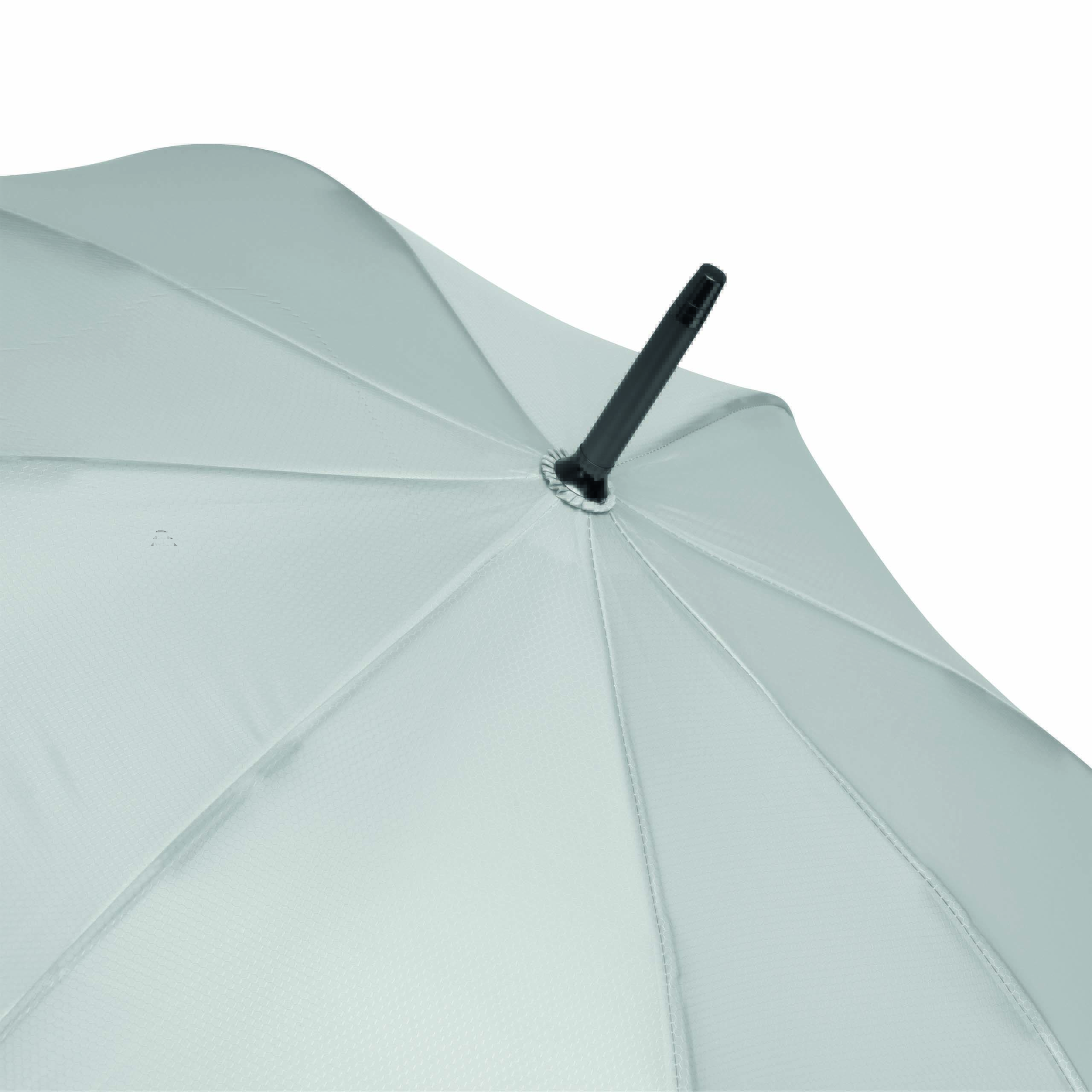 Automatyczny parasol JUBILEE. Aluminiowa laska, szyny z włókna szklanego, metalowe kolce, dopasowany kolorystycznie, gumowany, zaokrąglony uchwyt, poszycie z poliestru z pokrowcem o strukturze plastrów miodu, pasek spinający z zapięciem na zatrzask i metalową płytką na logo.