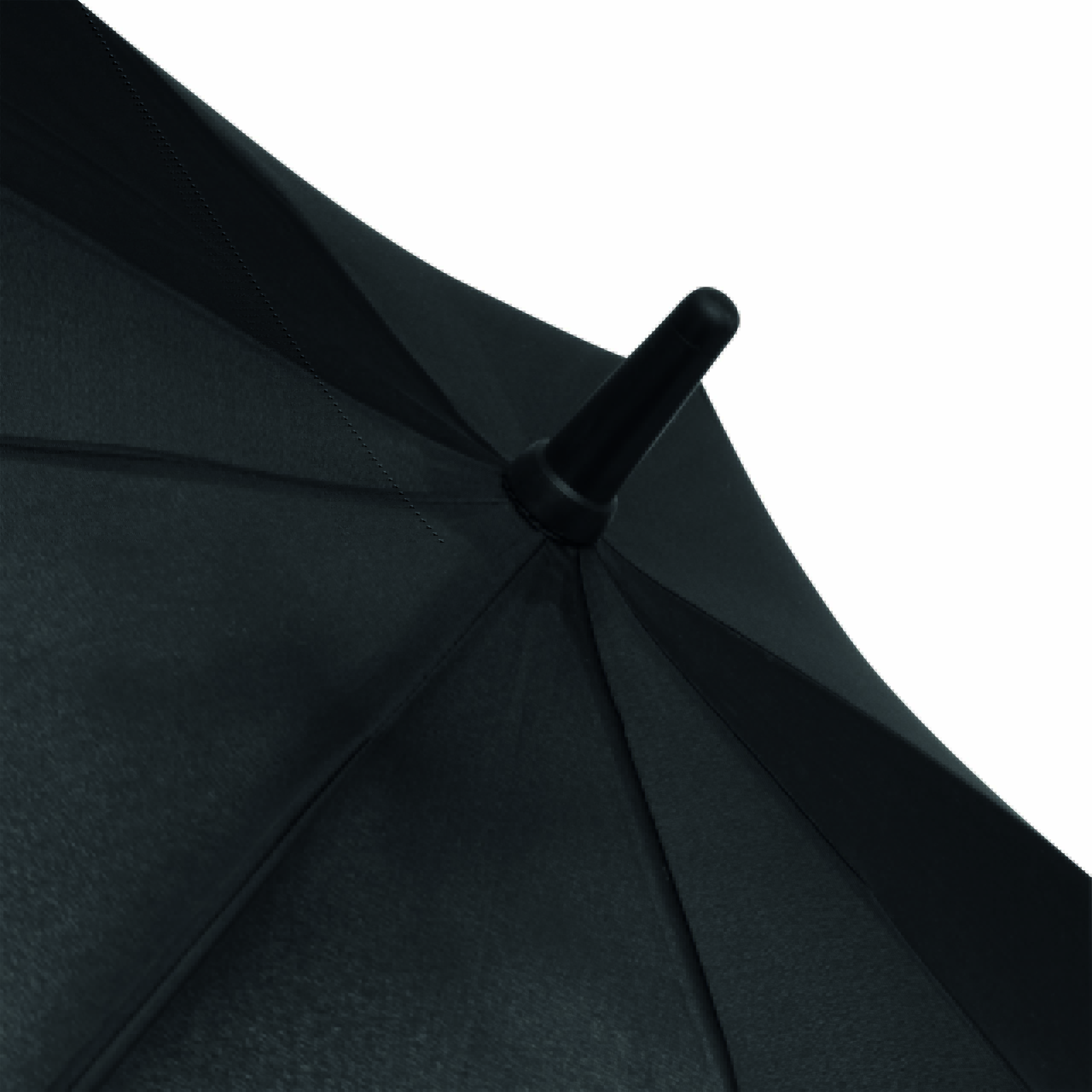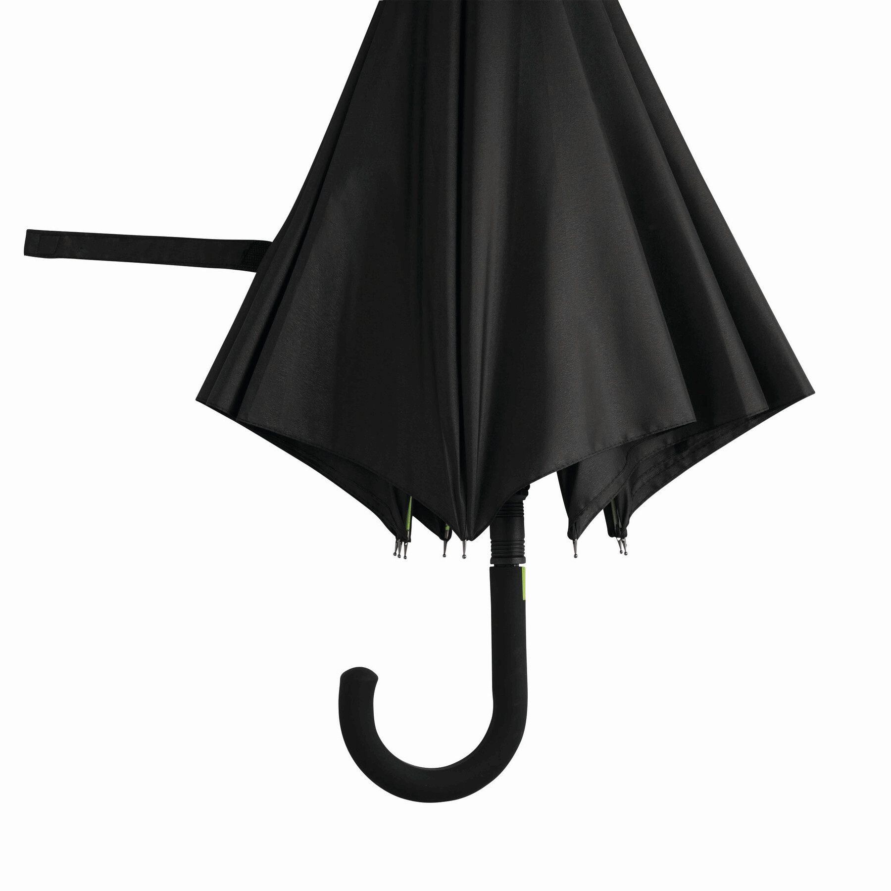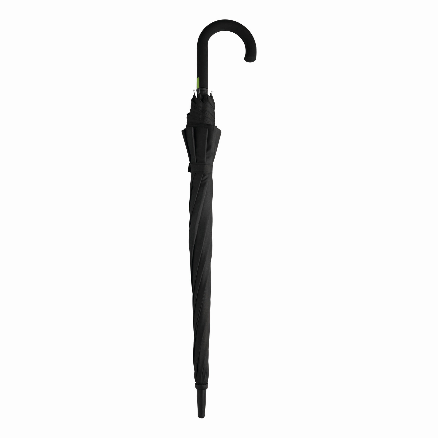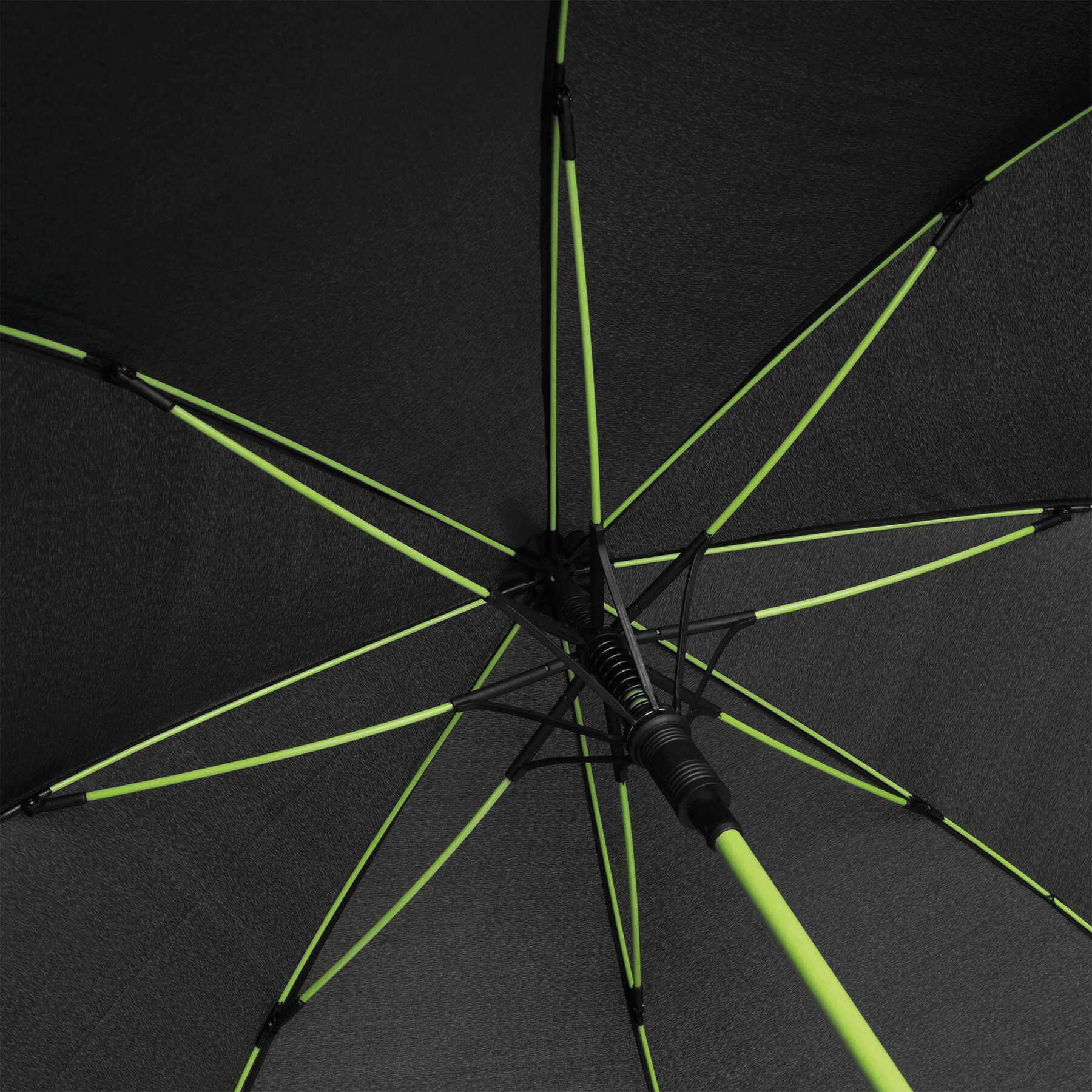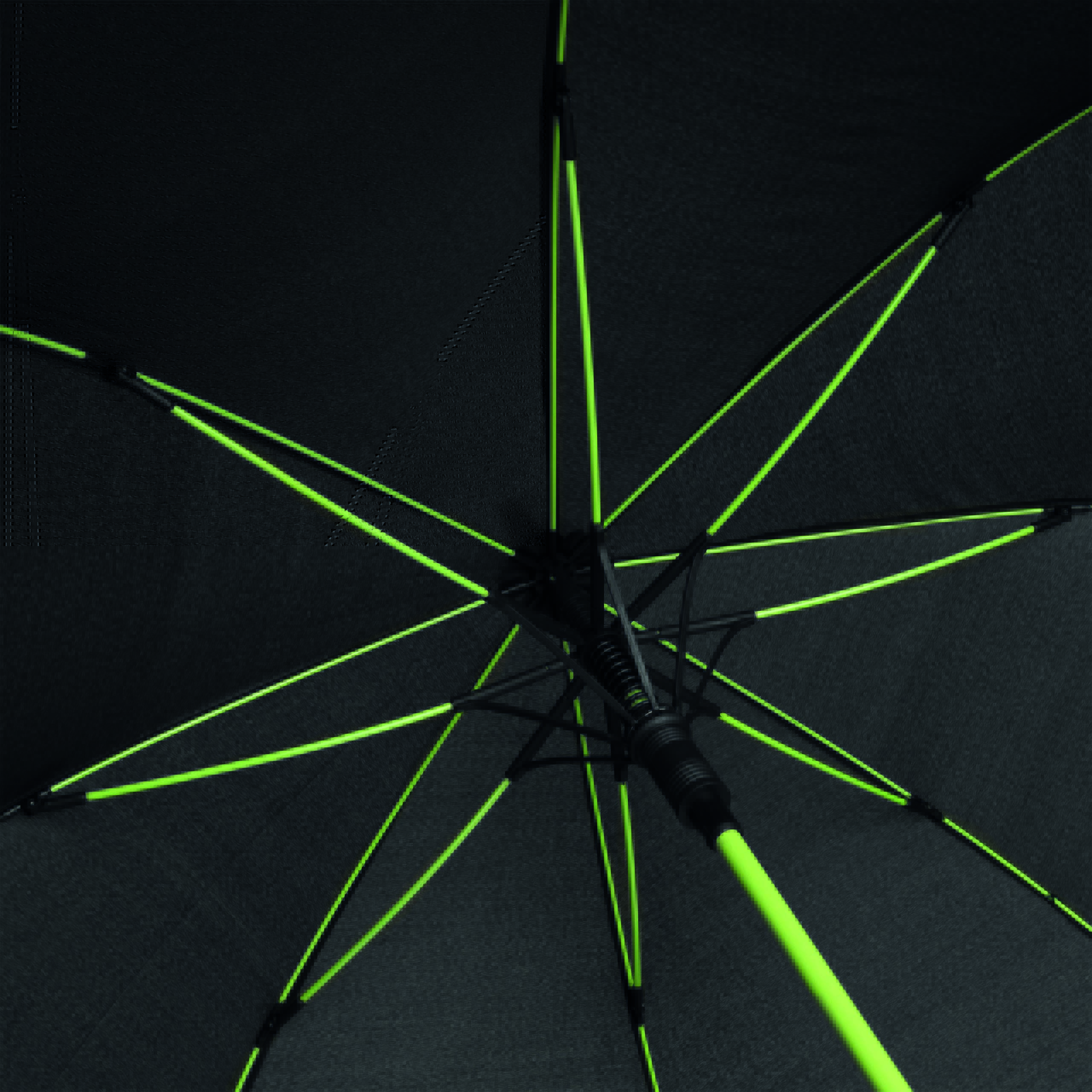 Automatyczny parasol CANCAN z metalową laską oraz kolorowymi szynami z segmentami z włókna szklanego, metalowymi kolcami, wykończona gumą laska z wbudowanym kolorowym automatycznym przyciskiem, poszycie z poliestru pongee i paskiem spinającym zapinanym na rzep.
