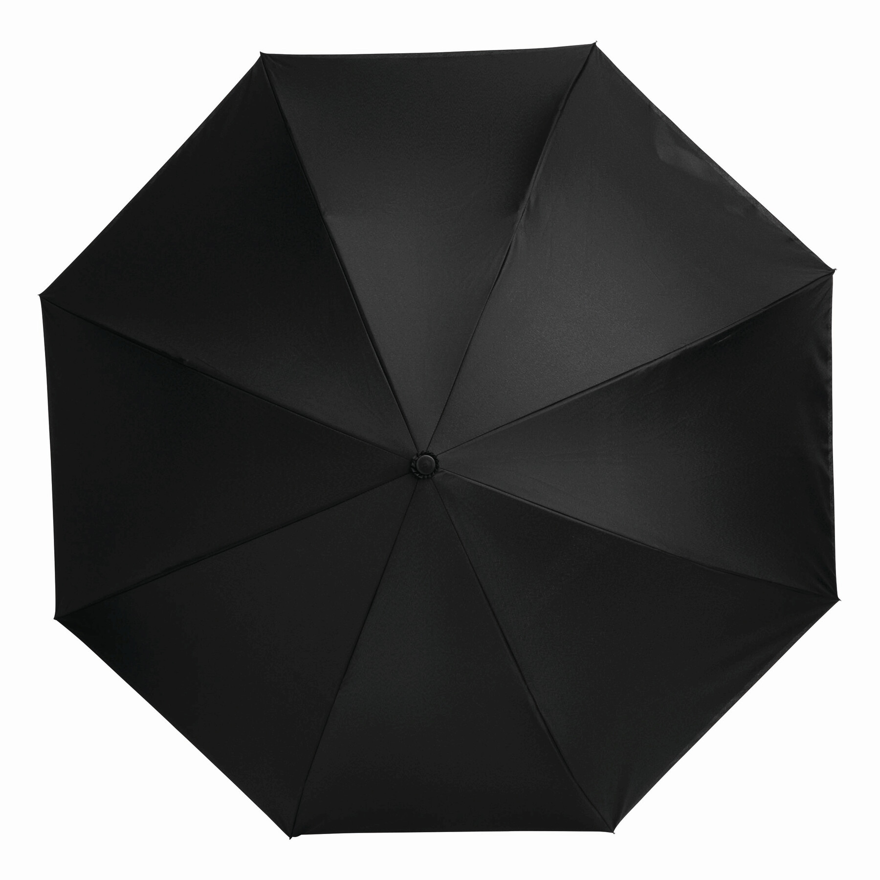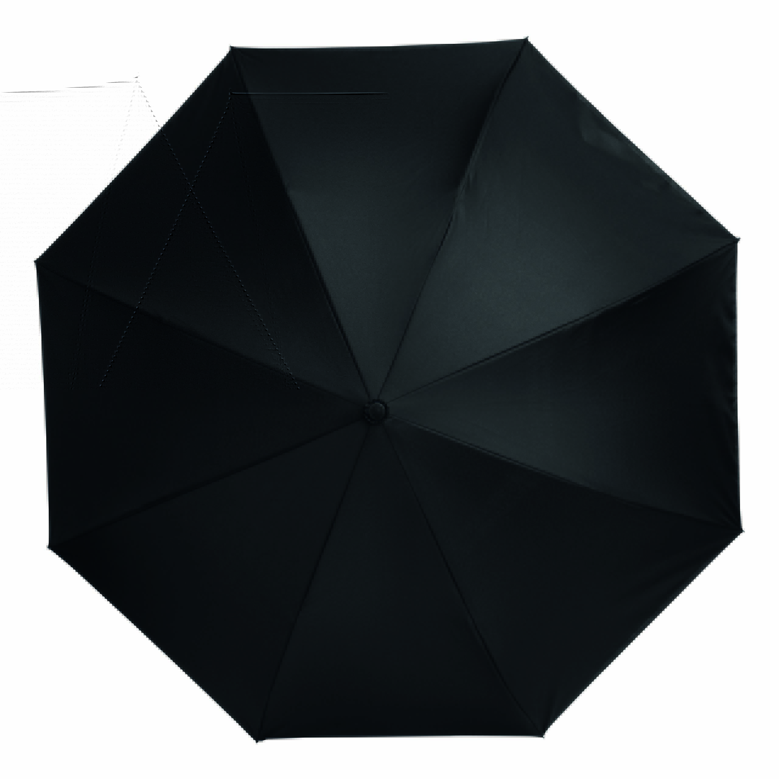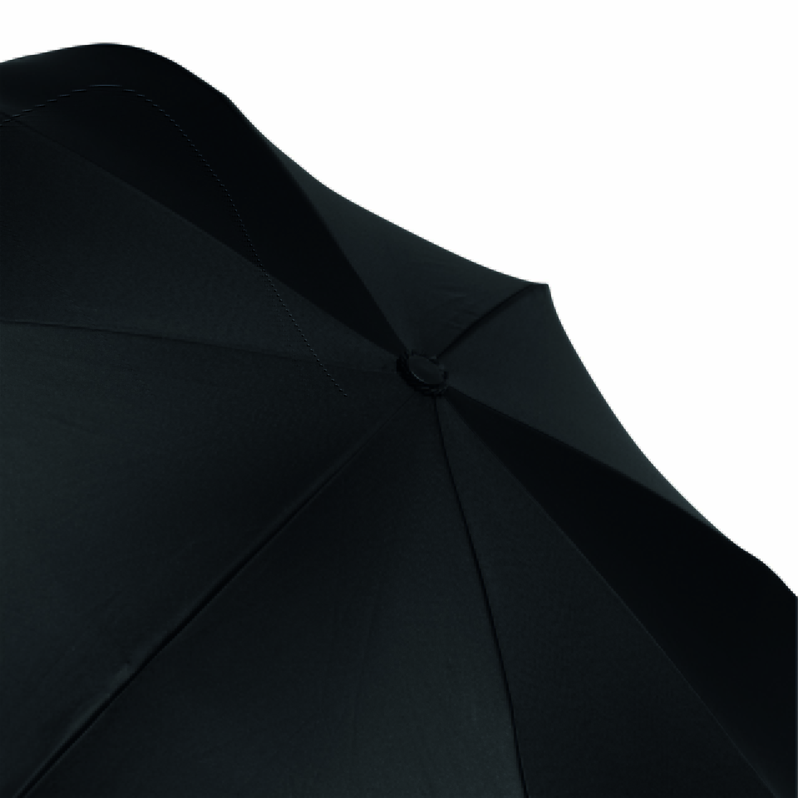 Parasol FLIPPED odwrotnie otwierany, z automatycznym mechanizmem zamykającym, z zabezpieczeniem, z uchwytem w kształcie litery C, dzięki któremu dłonie pozostają wolne, z podwójną, wentylowaną powłoką, metalową laską, szynami z włókna szklanego, metalowymi kolcami. Poszycie z poliestru-pongee, zapinany na rzep.
