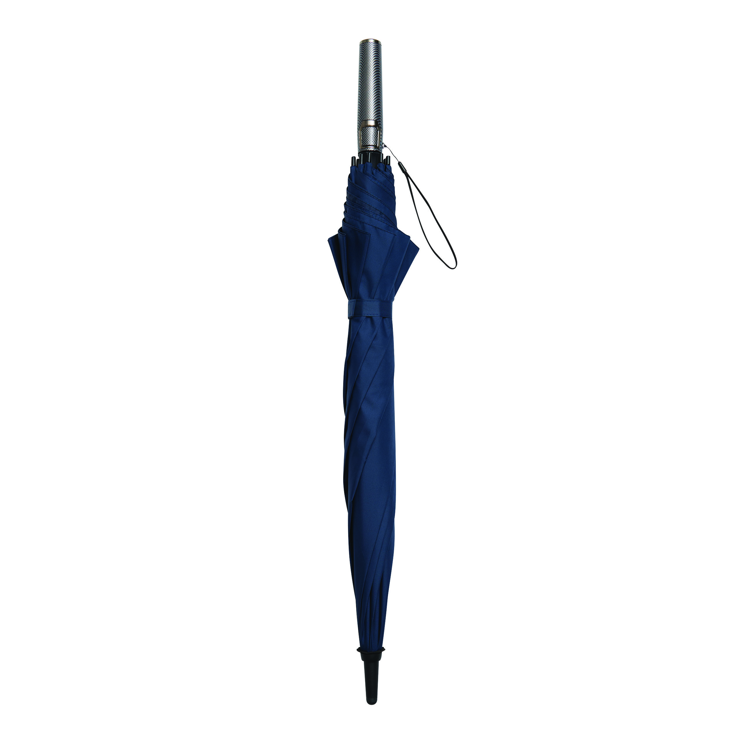 Automatyczny parasol BLIZZARD. Posiada laskę i szyny z włókna szklanego, plastikowe końcówki i plastikową rączkę w kolorze karbonu z wbudowanym przyciskiem i uchwytem do przenoszenia. Ma wysokiej jakości poszycie z poliestru pongee. Zapinany jest na rzep.