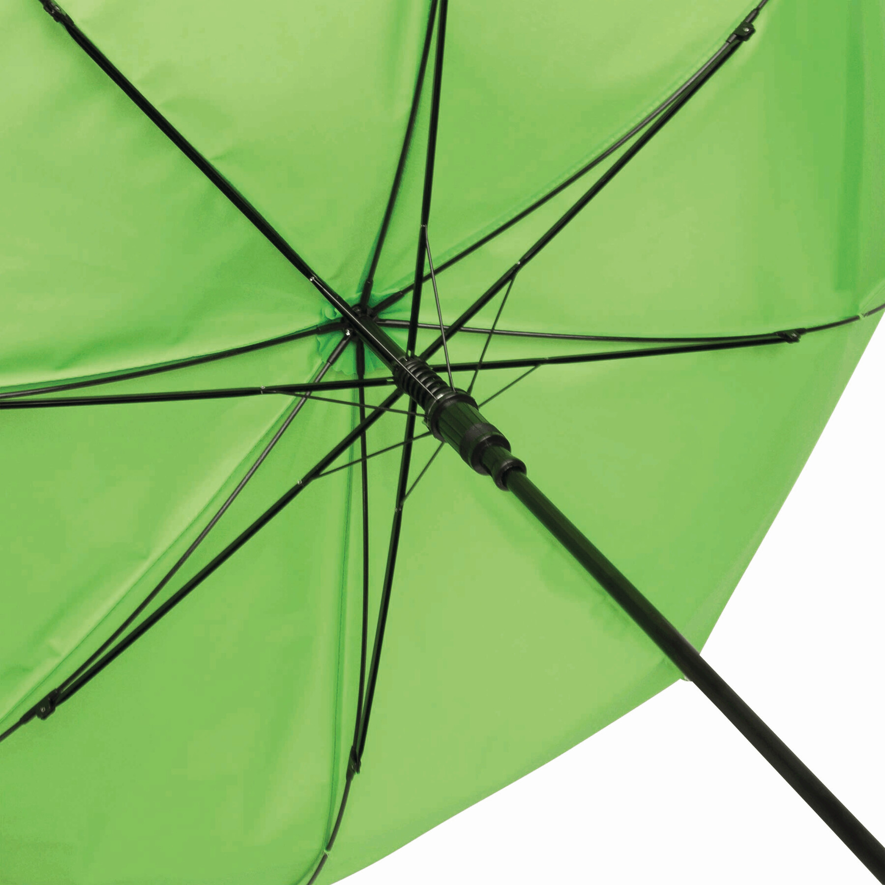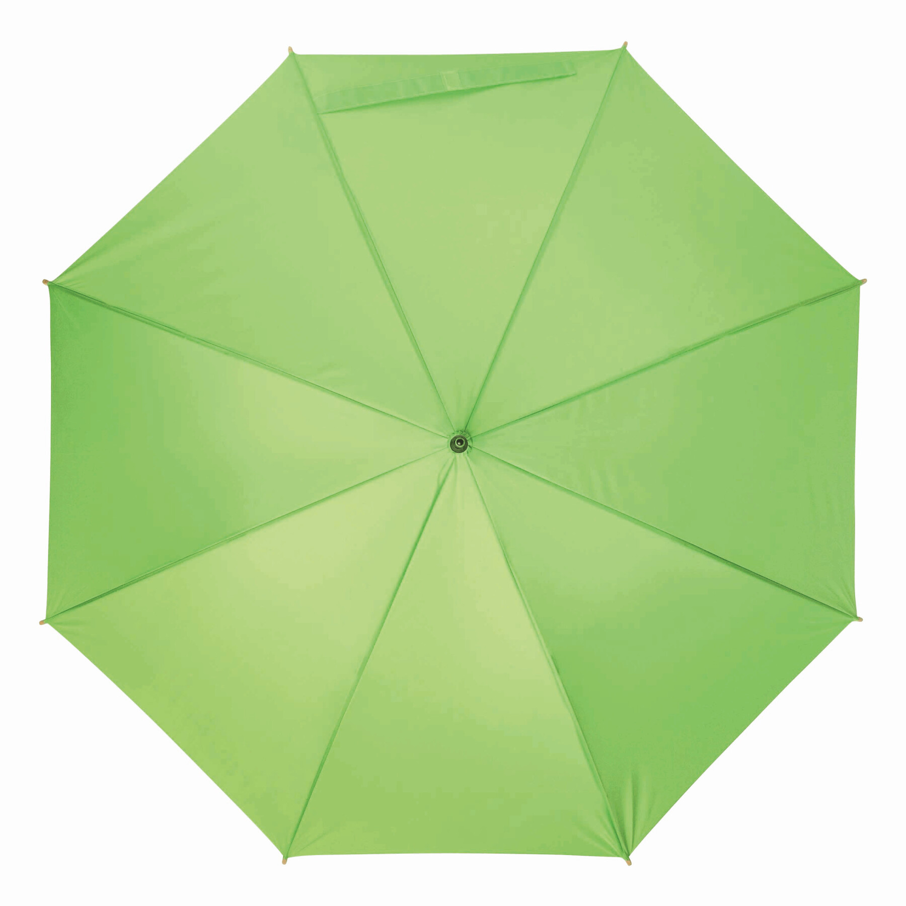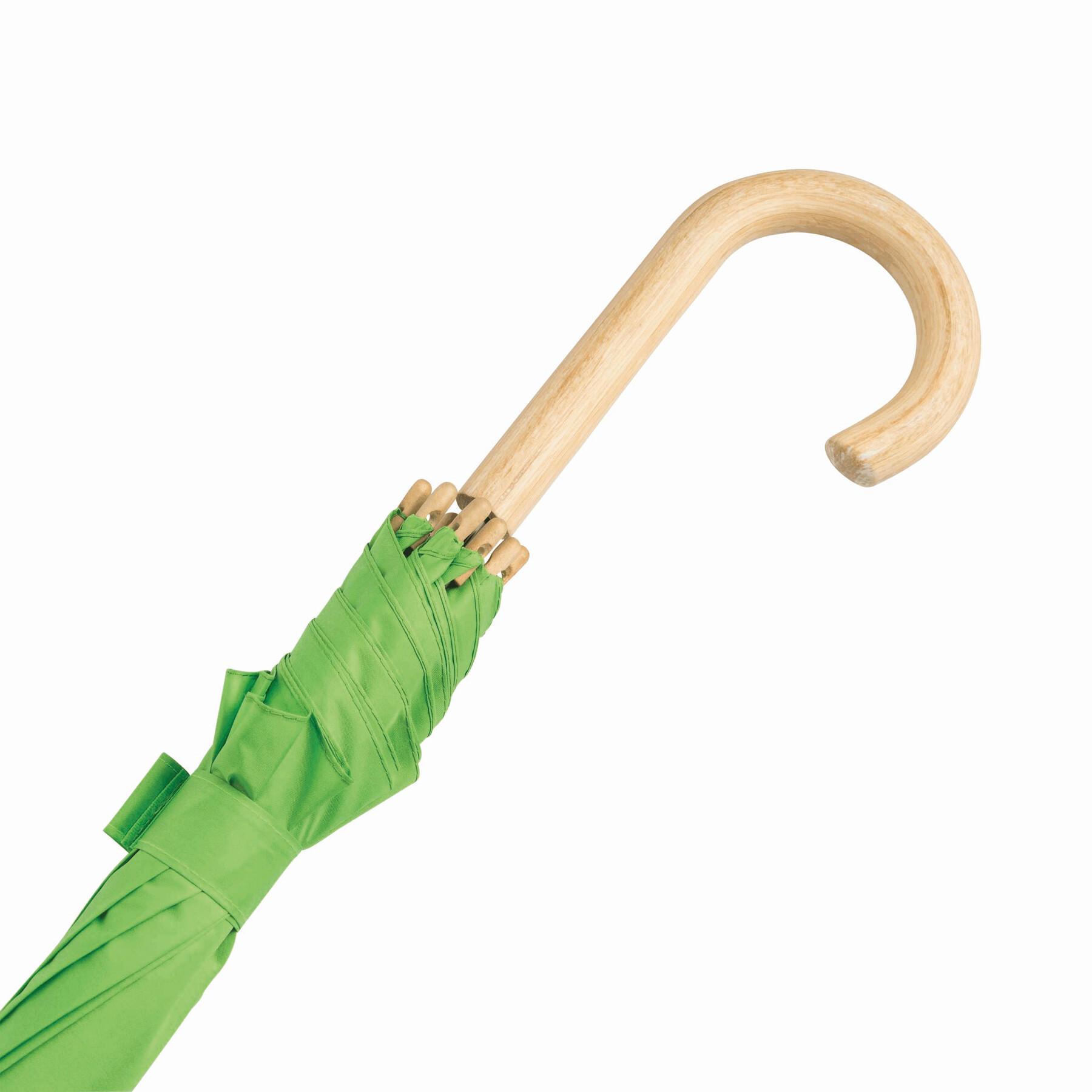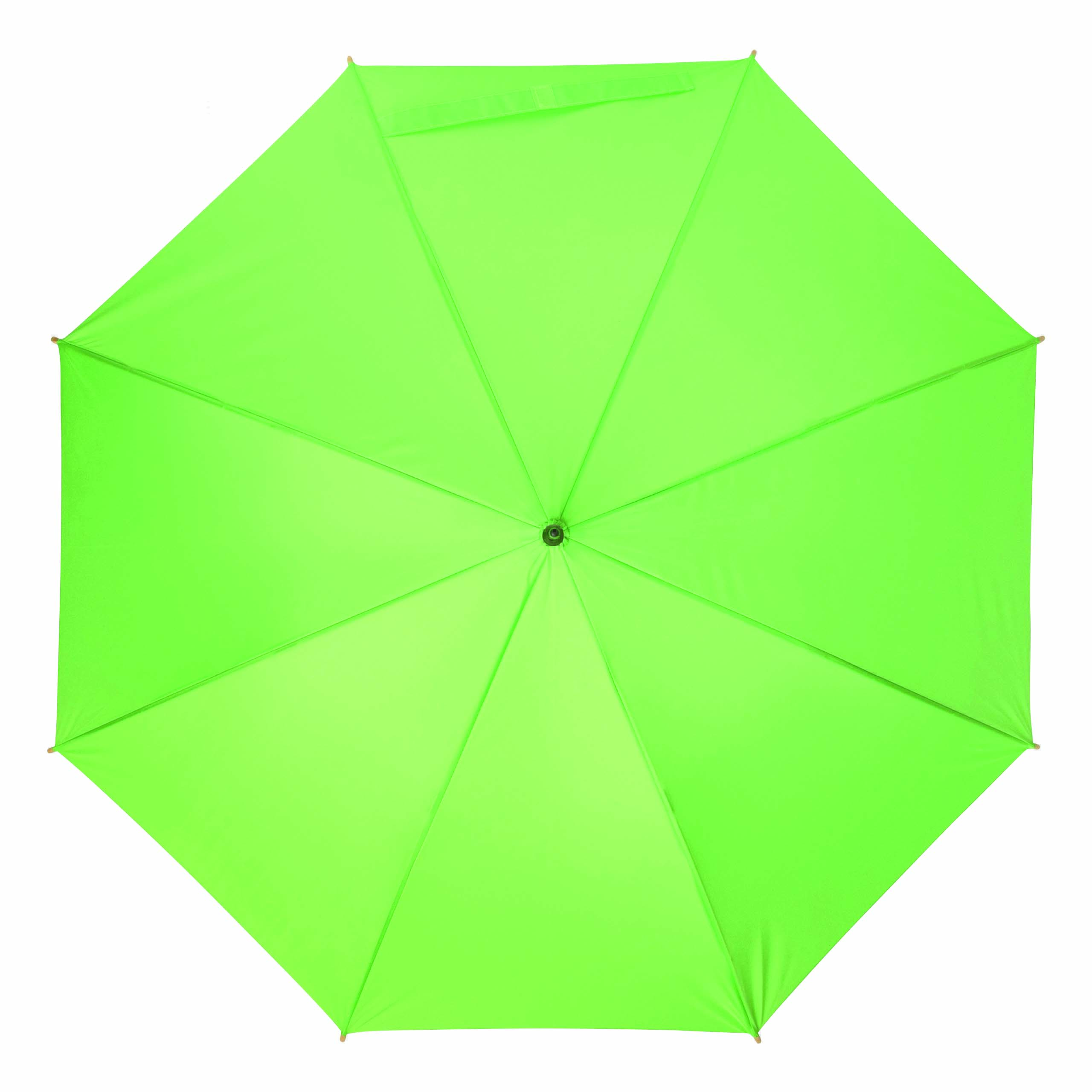 Parasol automatyczny LIPSI z metalową laską. Szyny z włókna szklanego, drewniane kolce i drewniany, zaokrąglony uchwyt. Poszycie z poliestru pongee wykonanego z plastiku pochodzącego z recyklingu / RPET. Zapięcie na rzep.