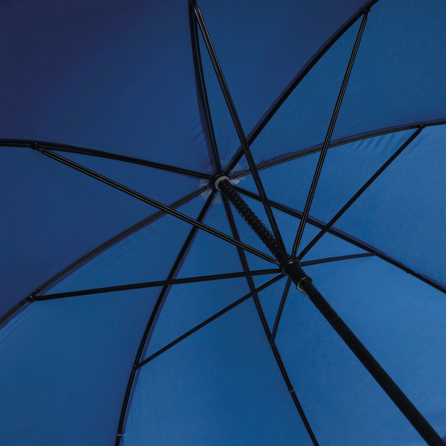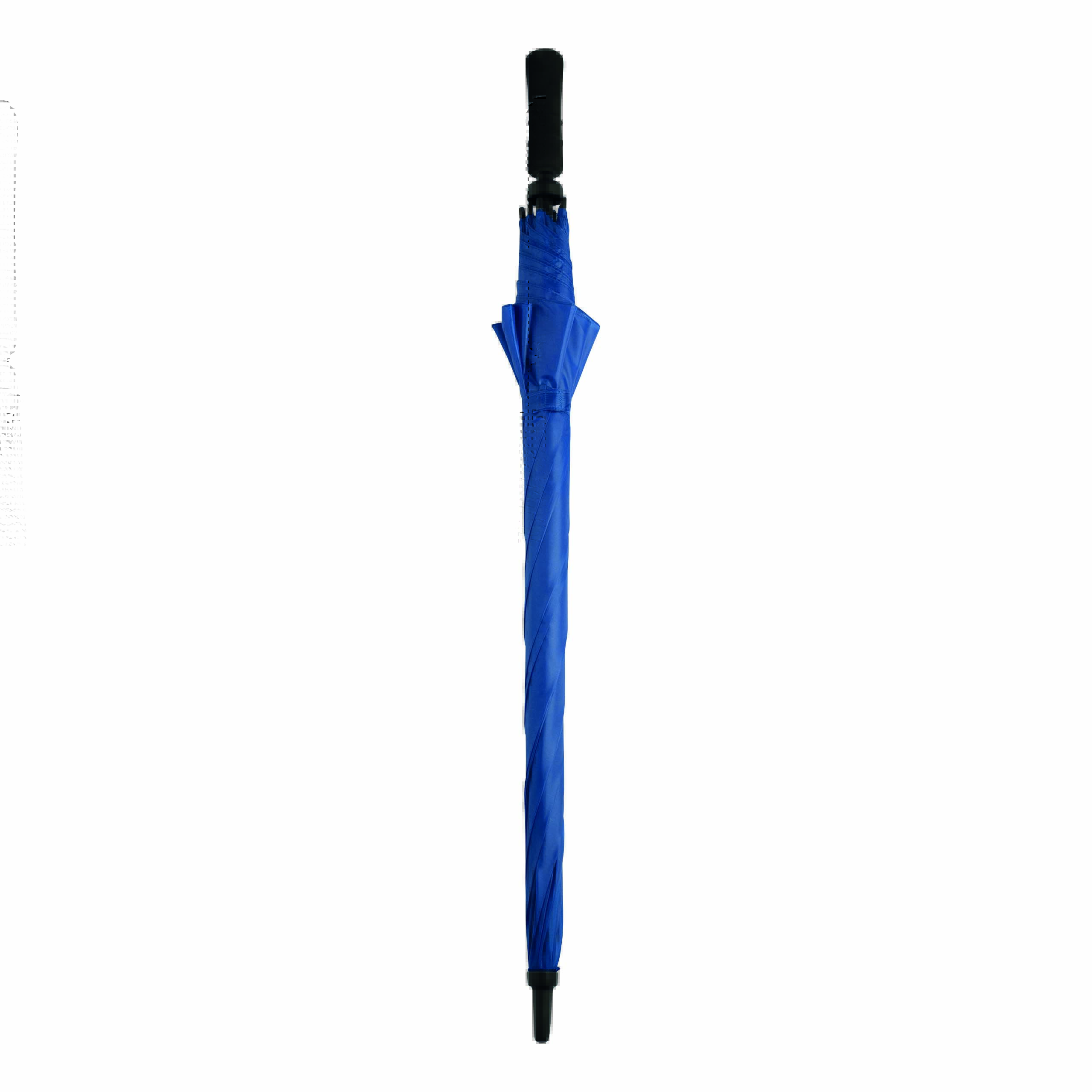Parasol bez automatu TORNADO. Poszycie z poliestru. Czarne, podwójne, metalowe szyny, laska z włókna szklanego, czarny uchwyt z EVA. Odporny na wiatr, specjalna sprężynowa konstrukcja.