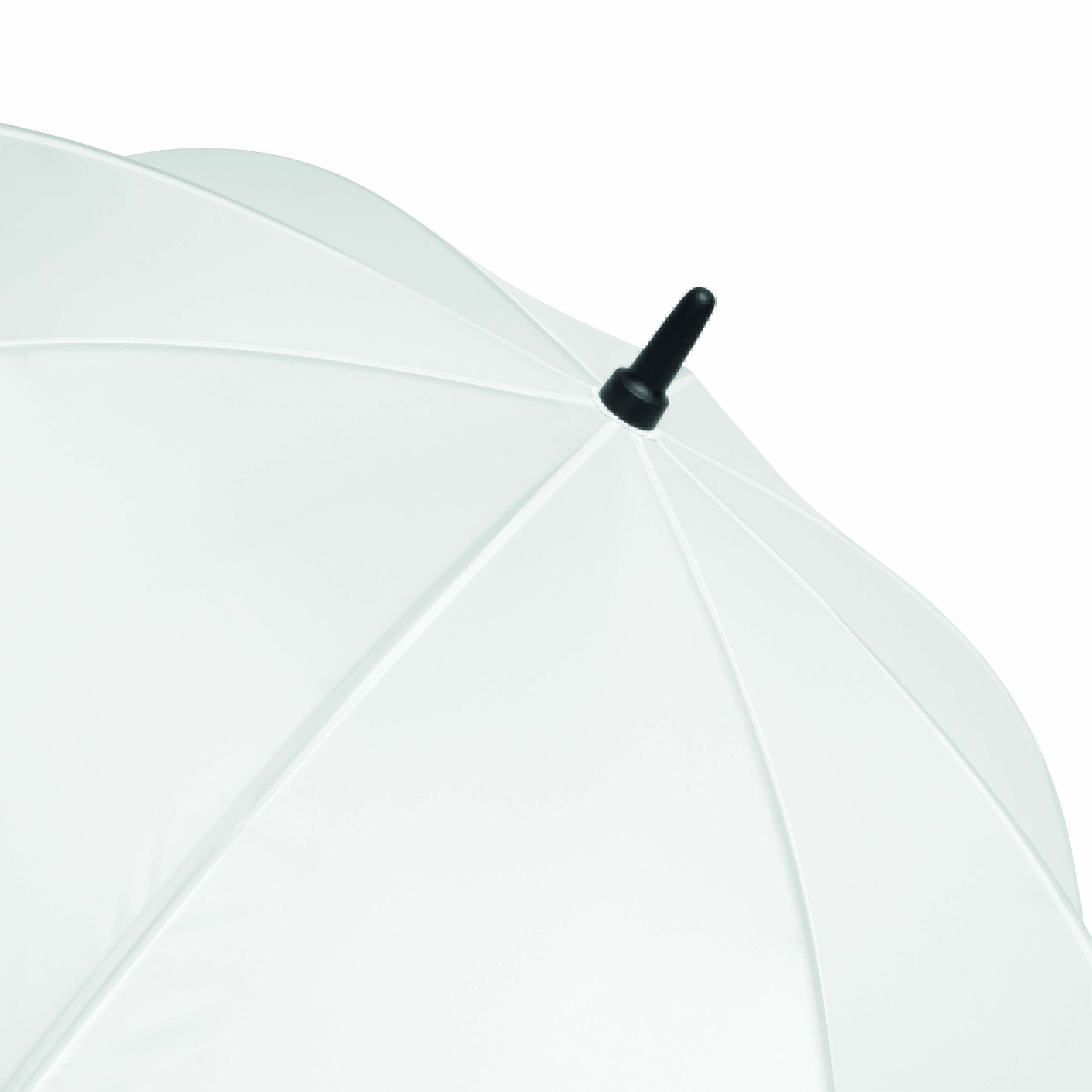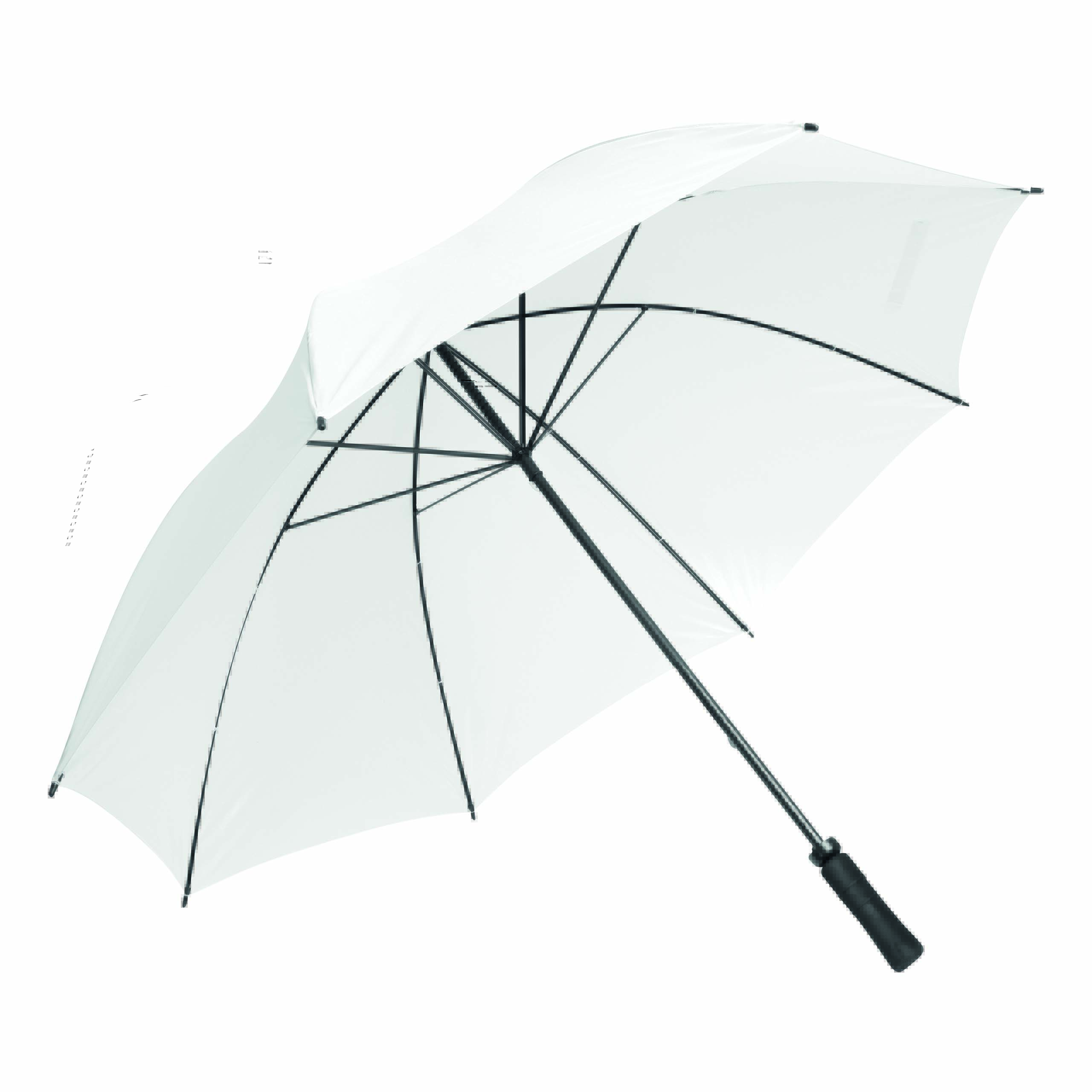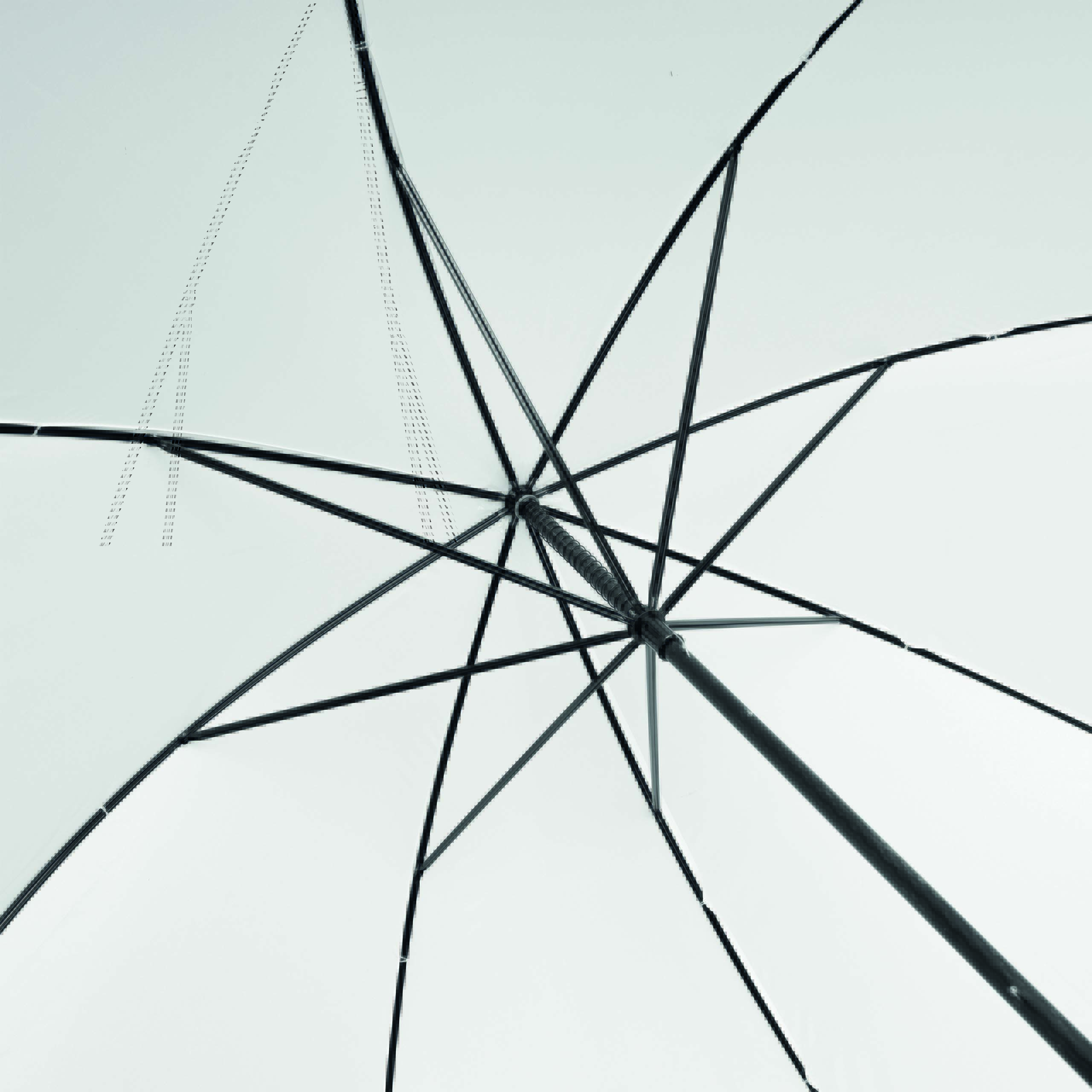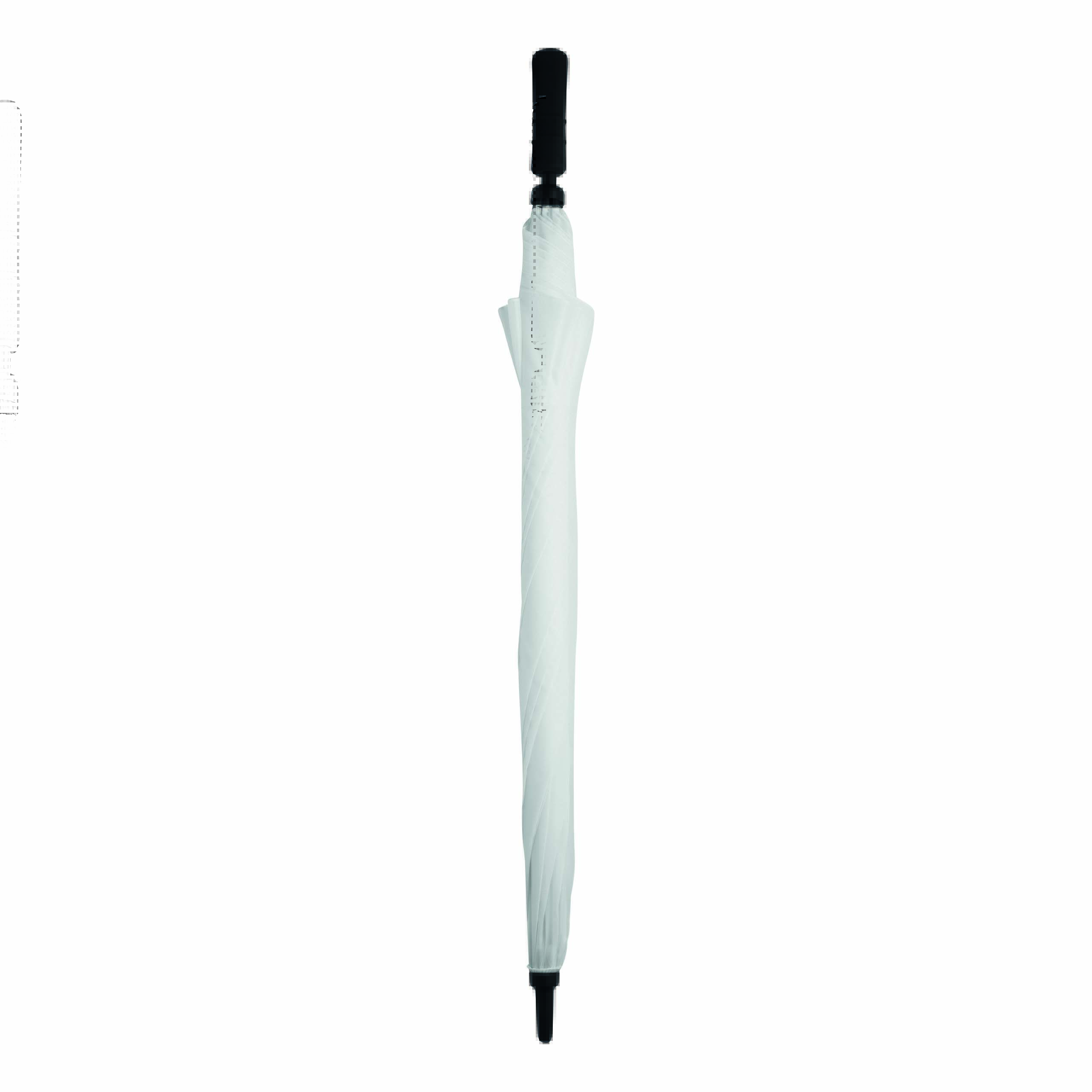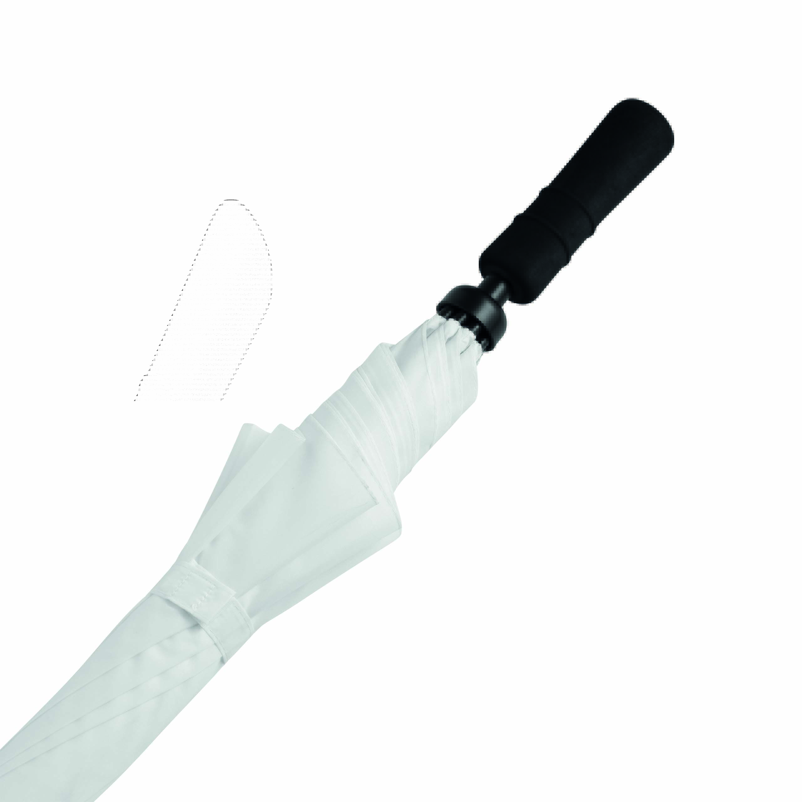 Parasol bez automatu TORNADO. Poszycie z poliestru. Czarne, podwójne, metalowe szyny, laska z włókna szklanego, czarny uchwyt z EVA. Odporny na wiatr, specjalna sprężynowa konstrukcja.