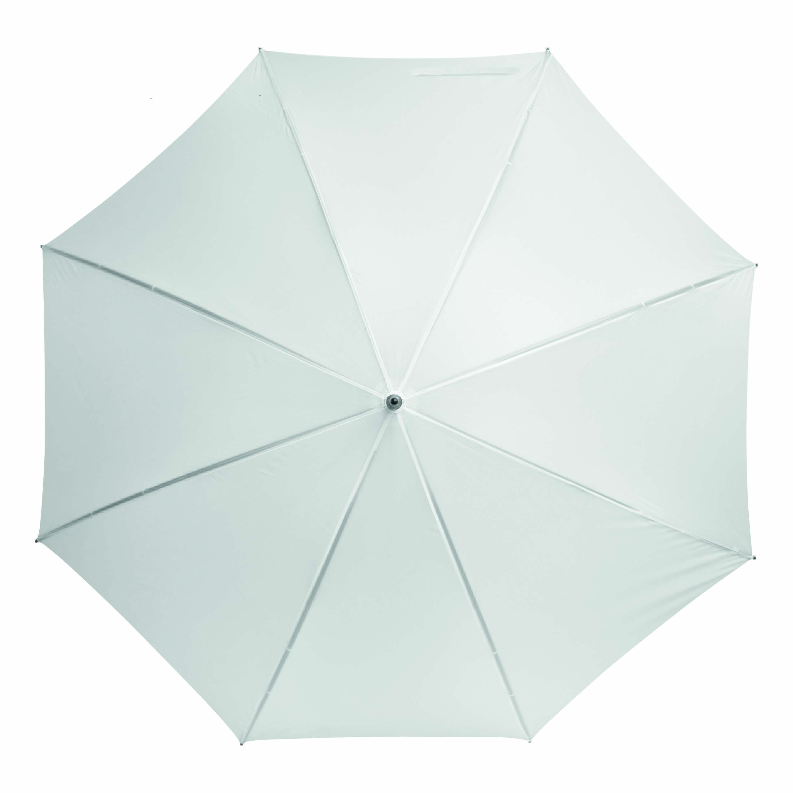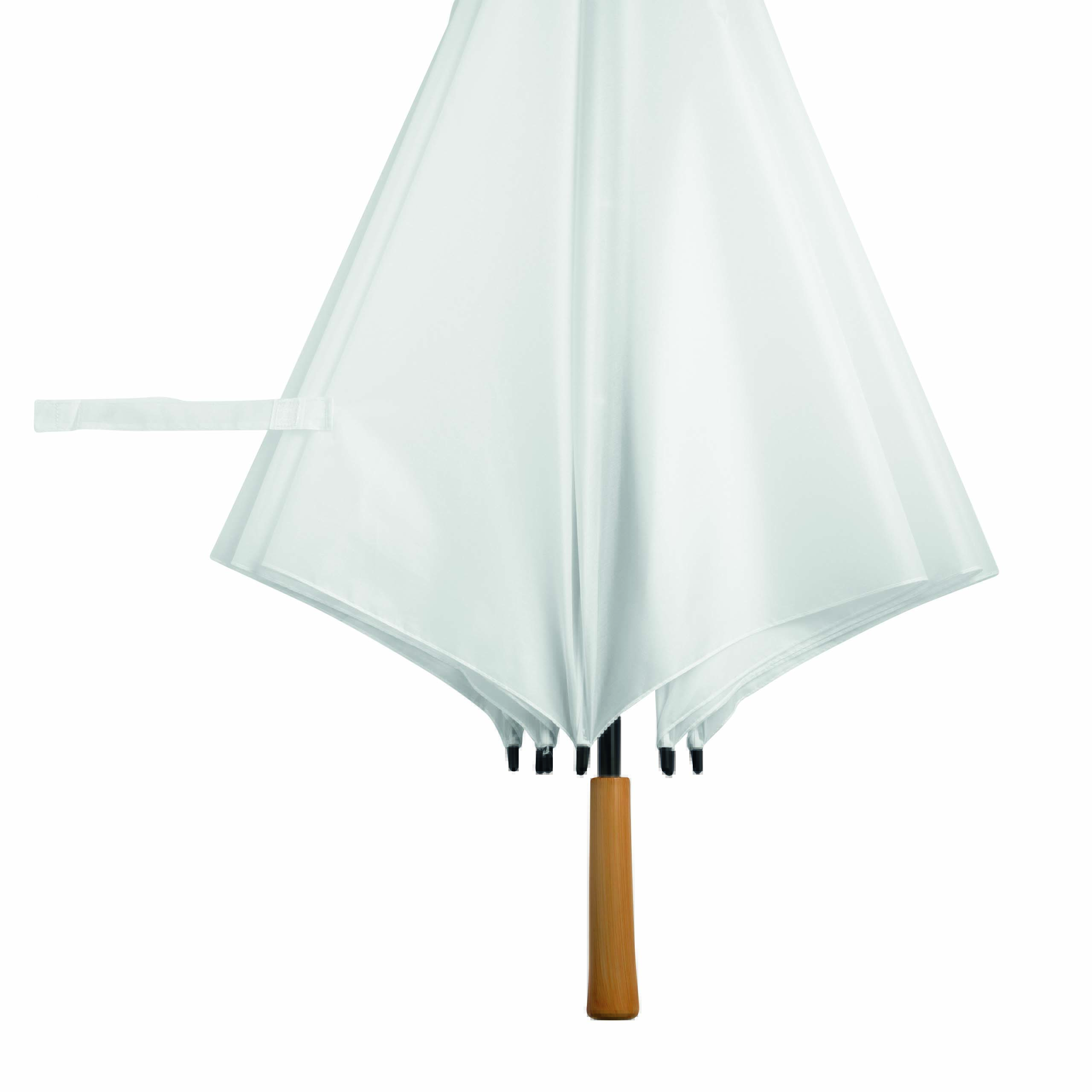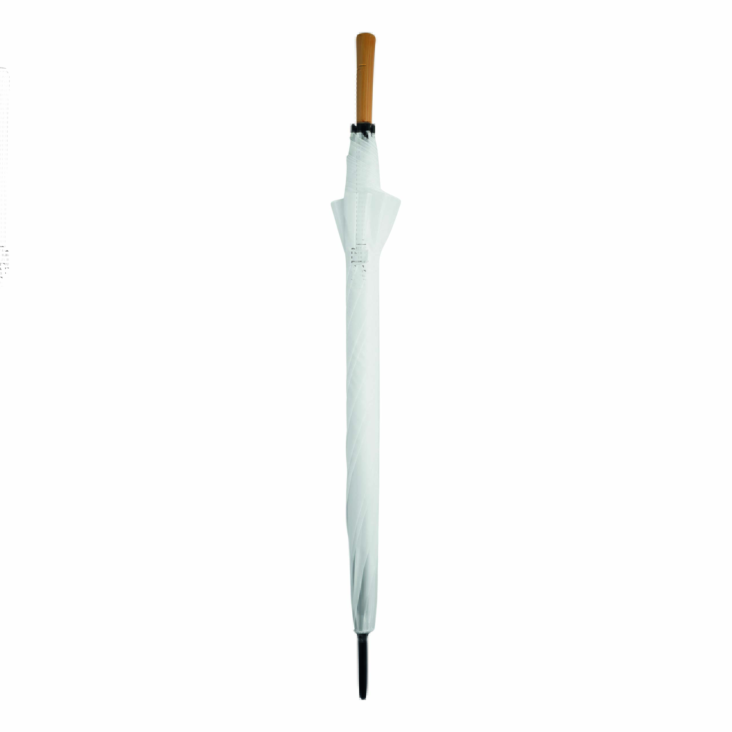Parasol typu golf RAINDROPS z metalową laską i podwójnymi metalowymi szynami, plastikowe kolce, uchwyt o drewnianym wyglądzie, poszycie poliestrowe, zapinany na rzep.