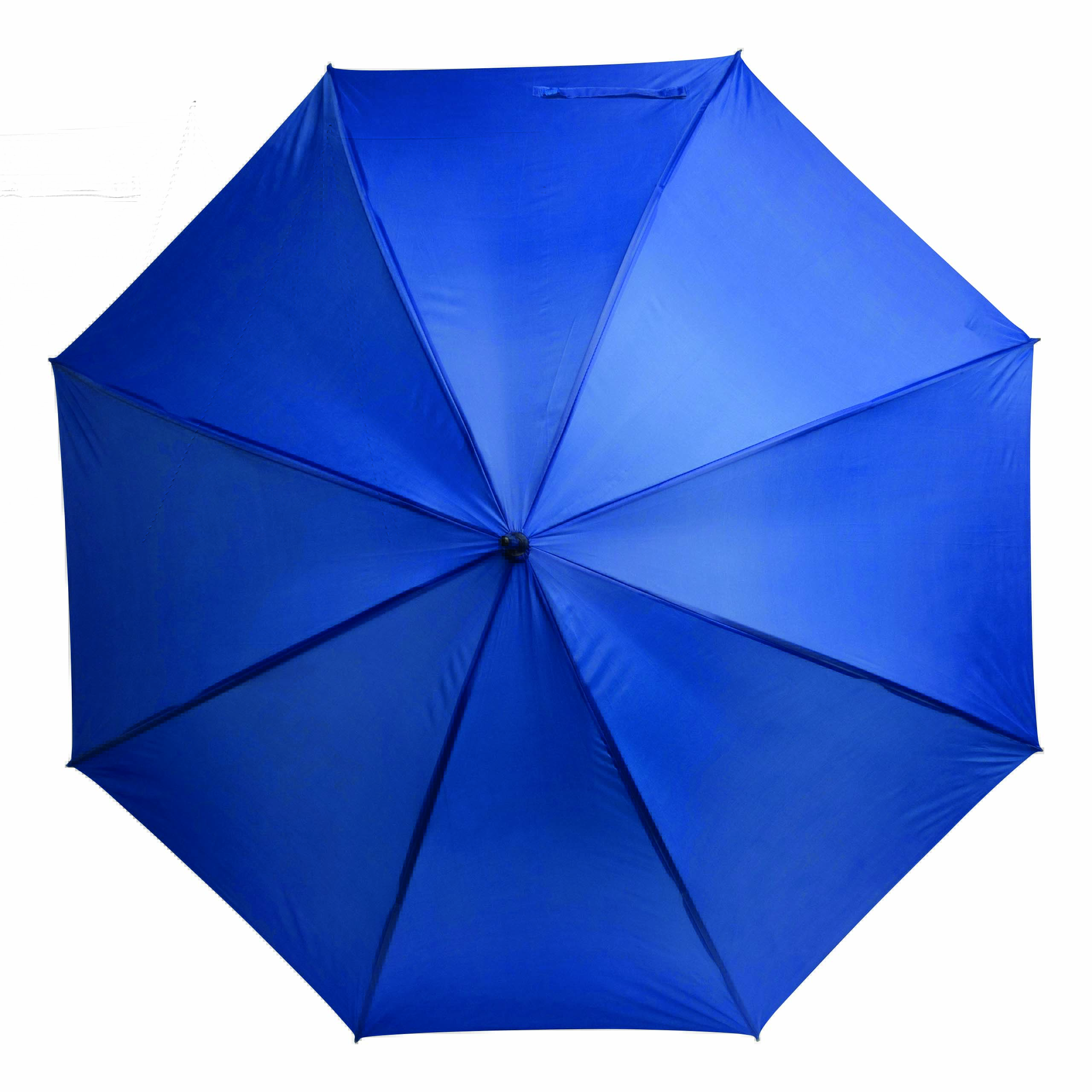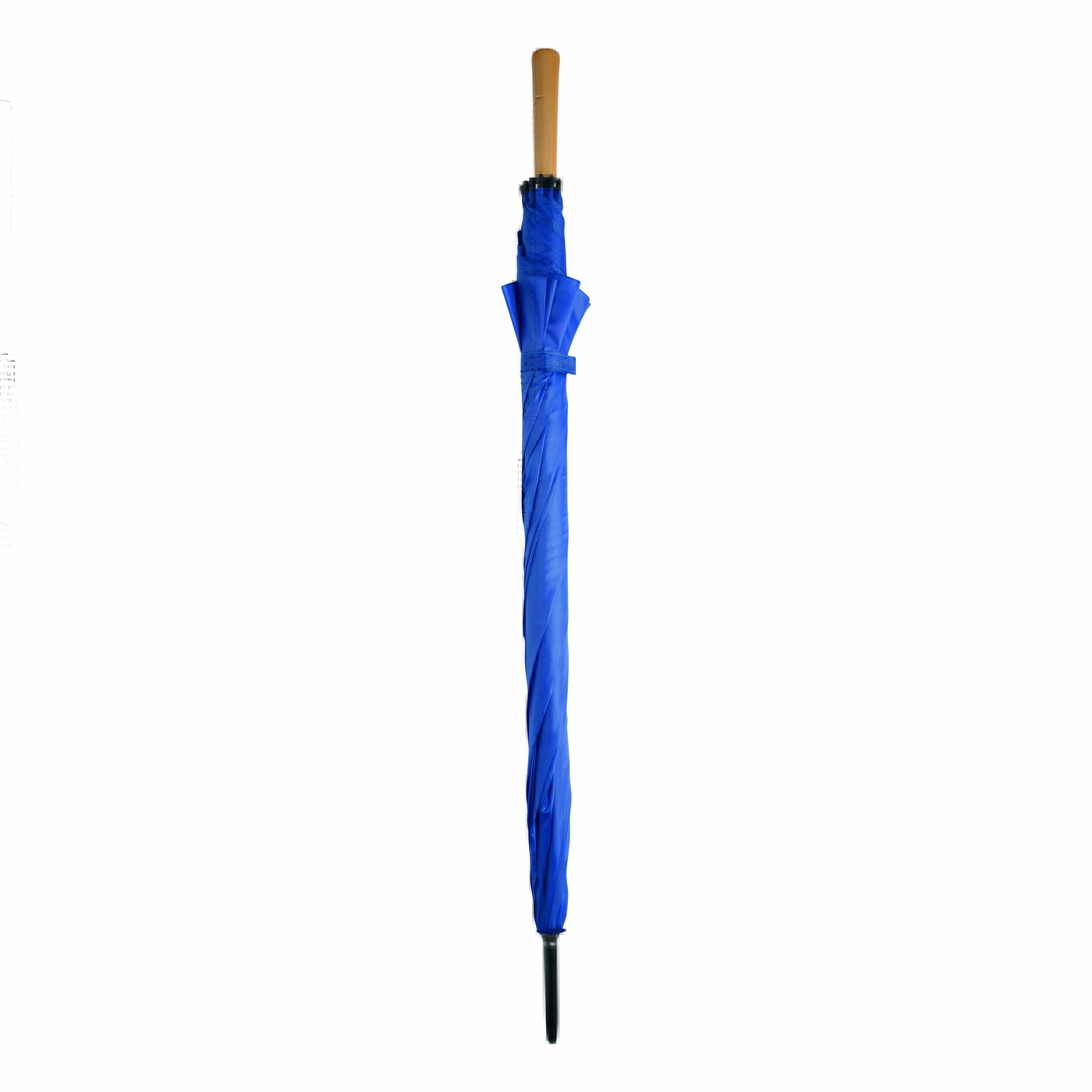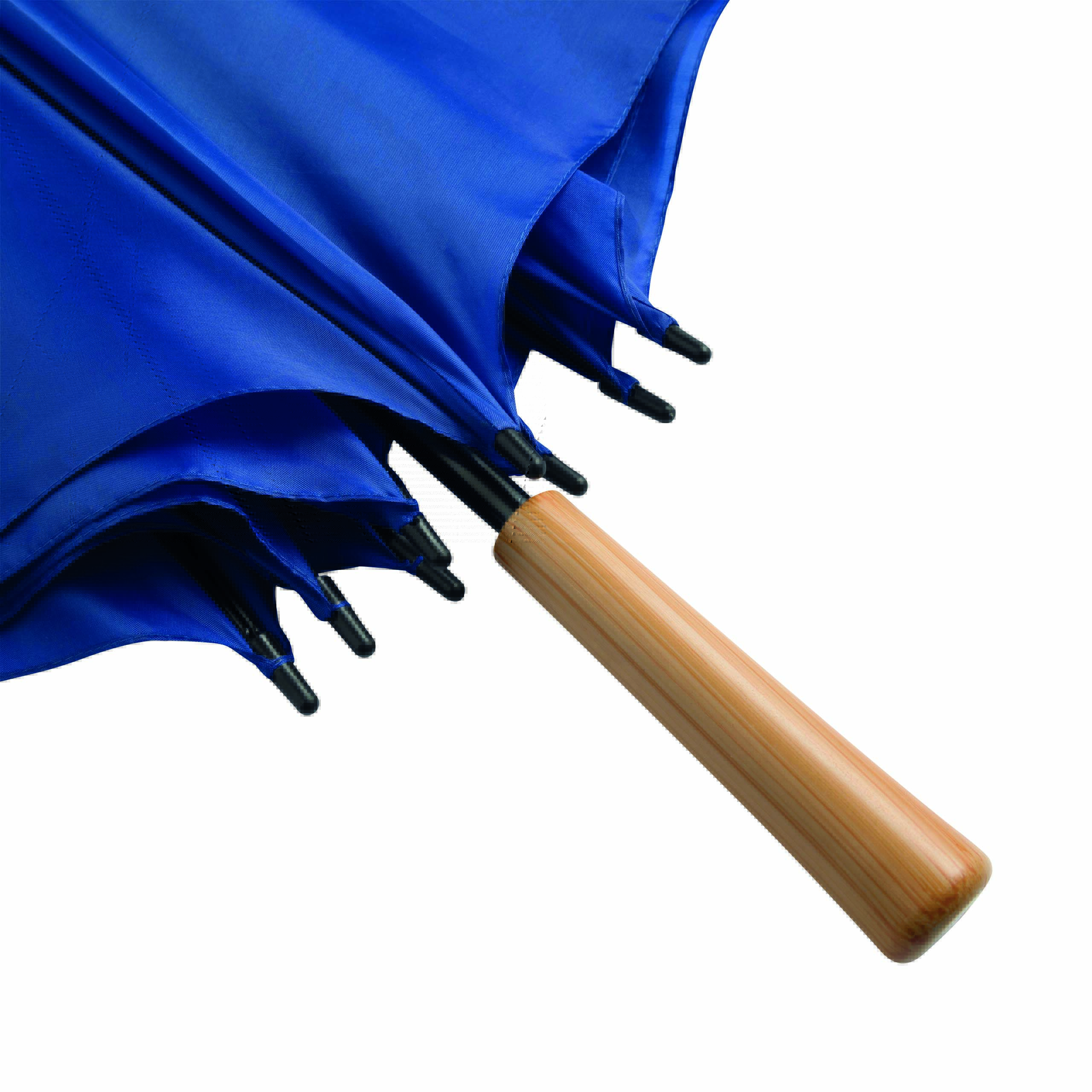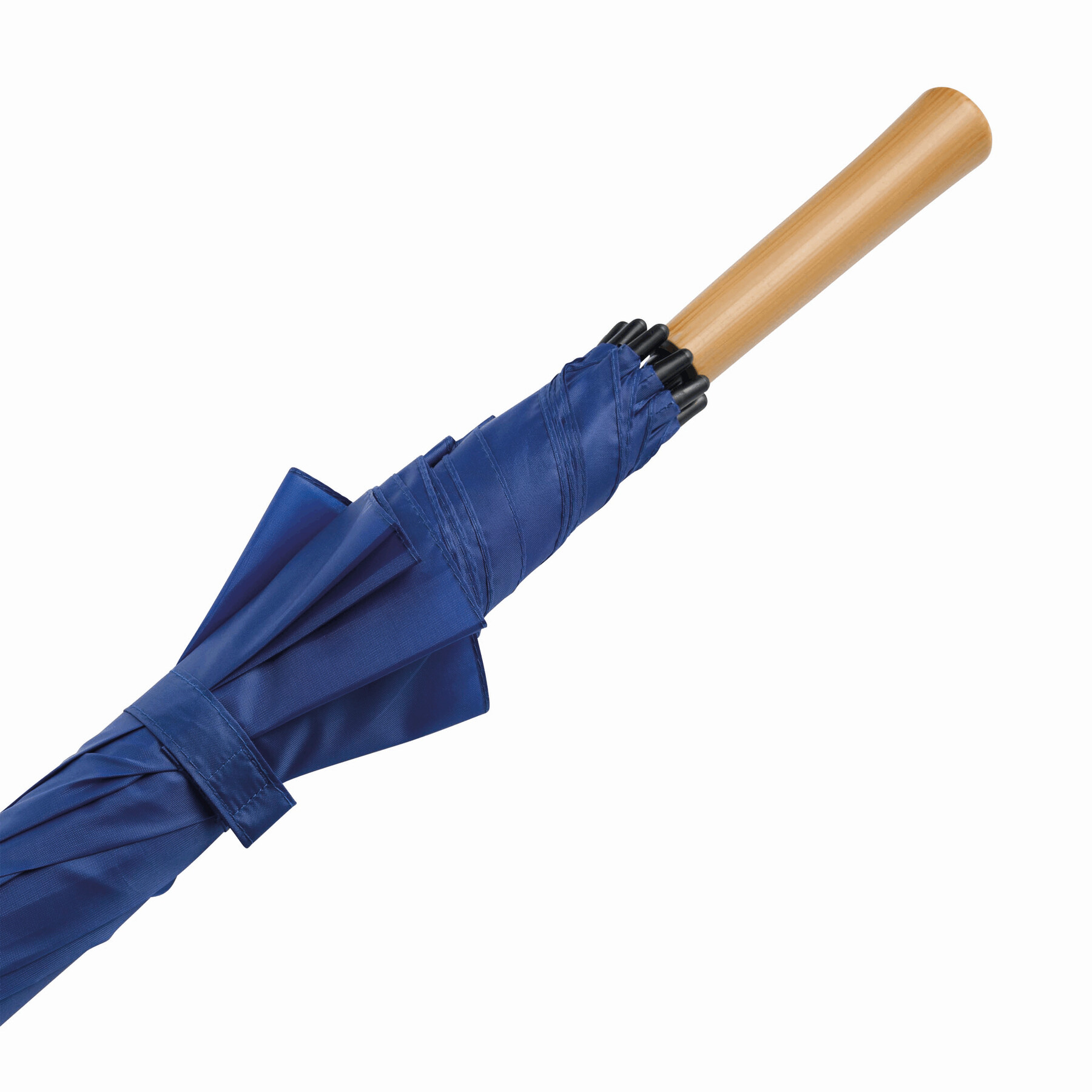 Parasol typu golf RAINDROPS z metalową laską i podwójnymi metalowymi szynami, plastikowe kolce, uchwyt o drewnianym wyglądzie, poszycie poliestrowe, zapinany na rzep.