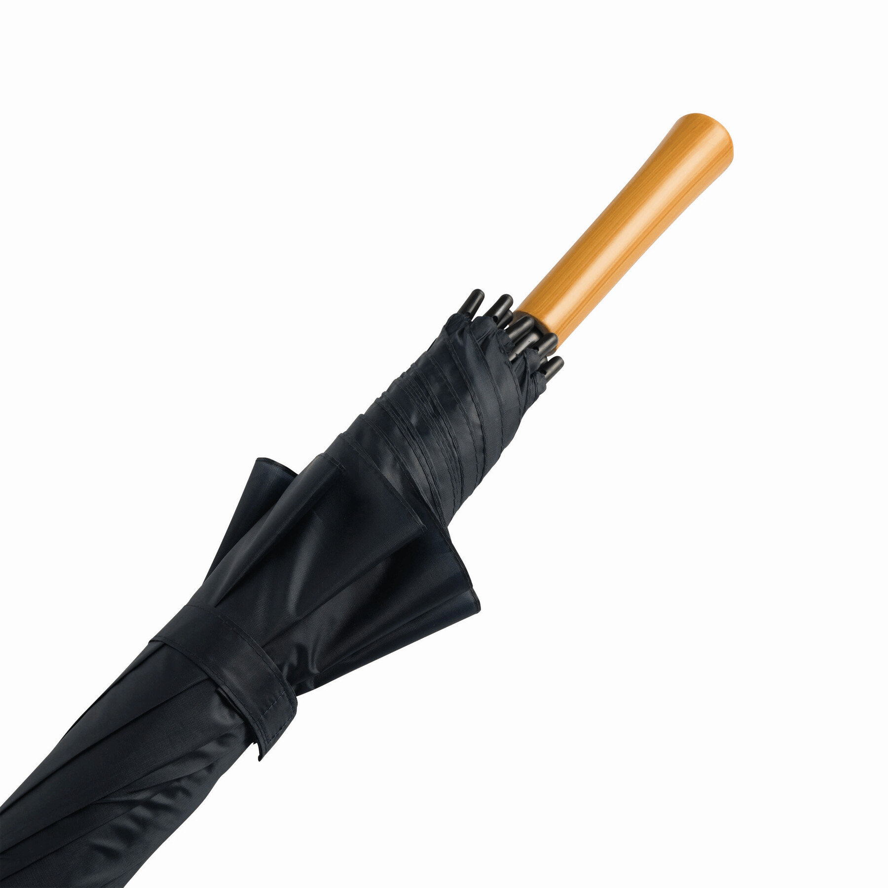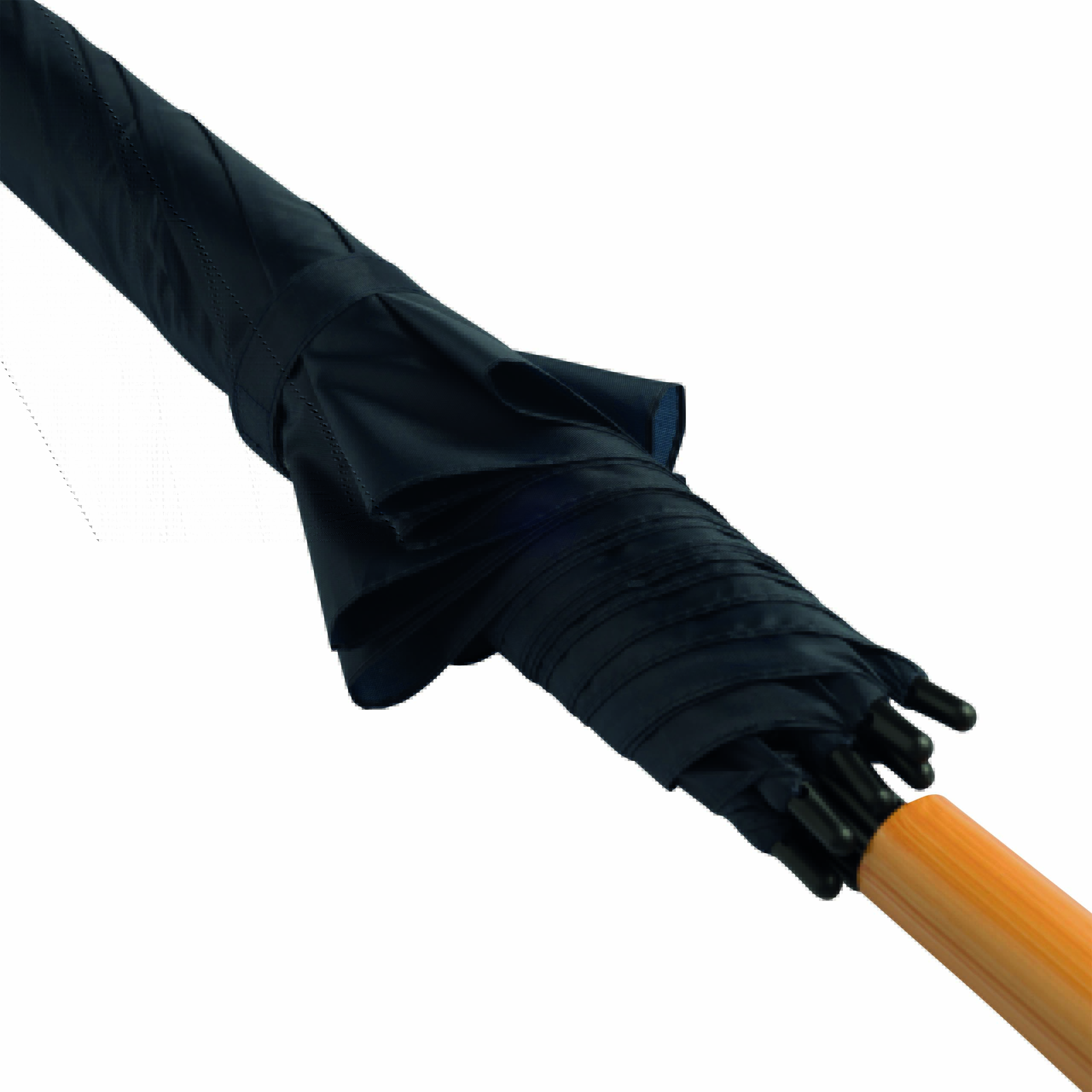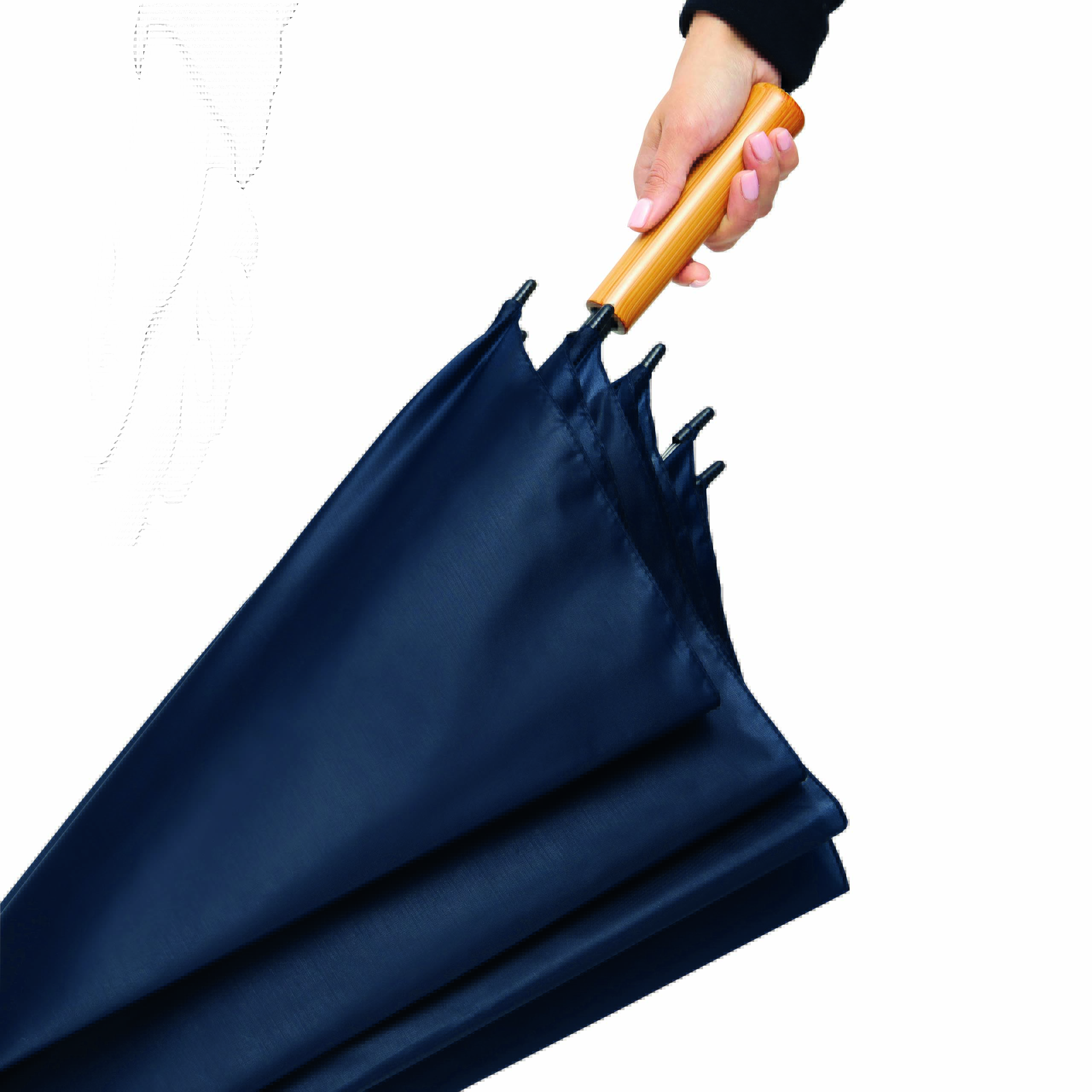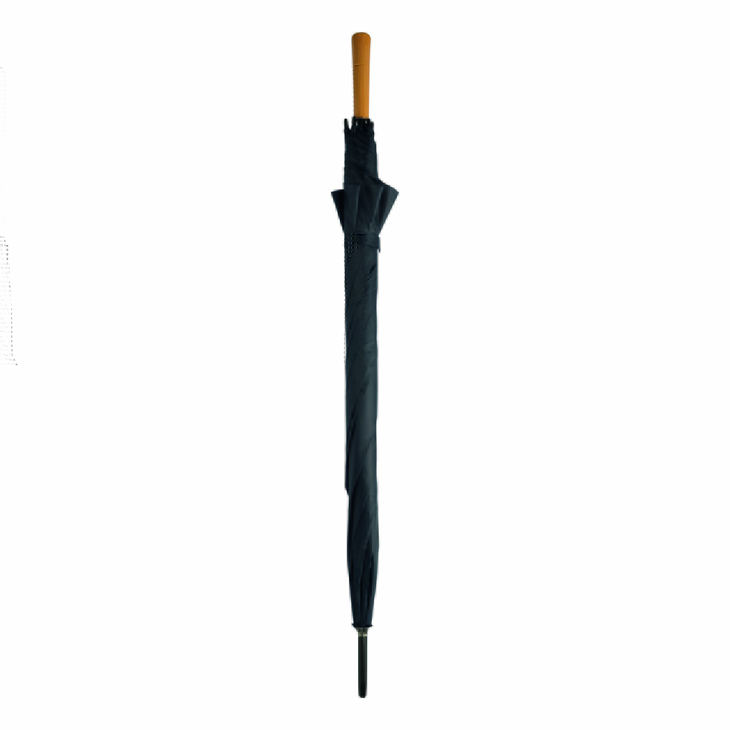Parasol typu golf RAINDROPS z metalową laską i podwójnymi metalowymi szynami, plastikowe kolce, uchwyt o drewnianym wyglądzie, poszycie poliestrowe, zapinany na rzep.