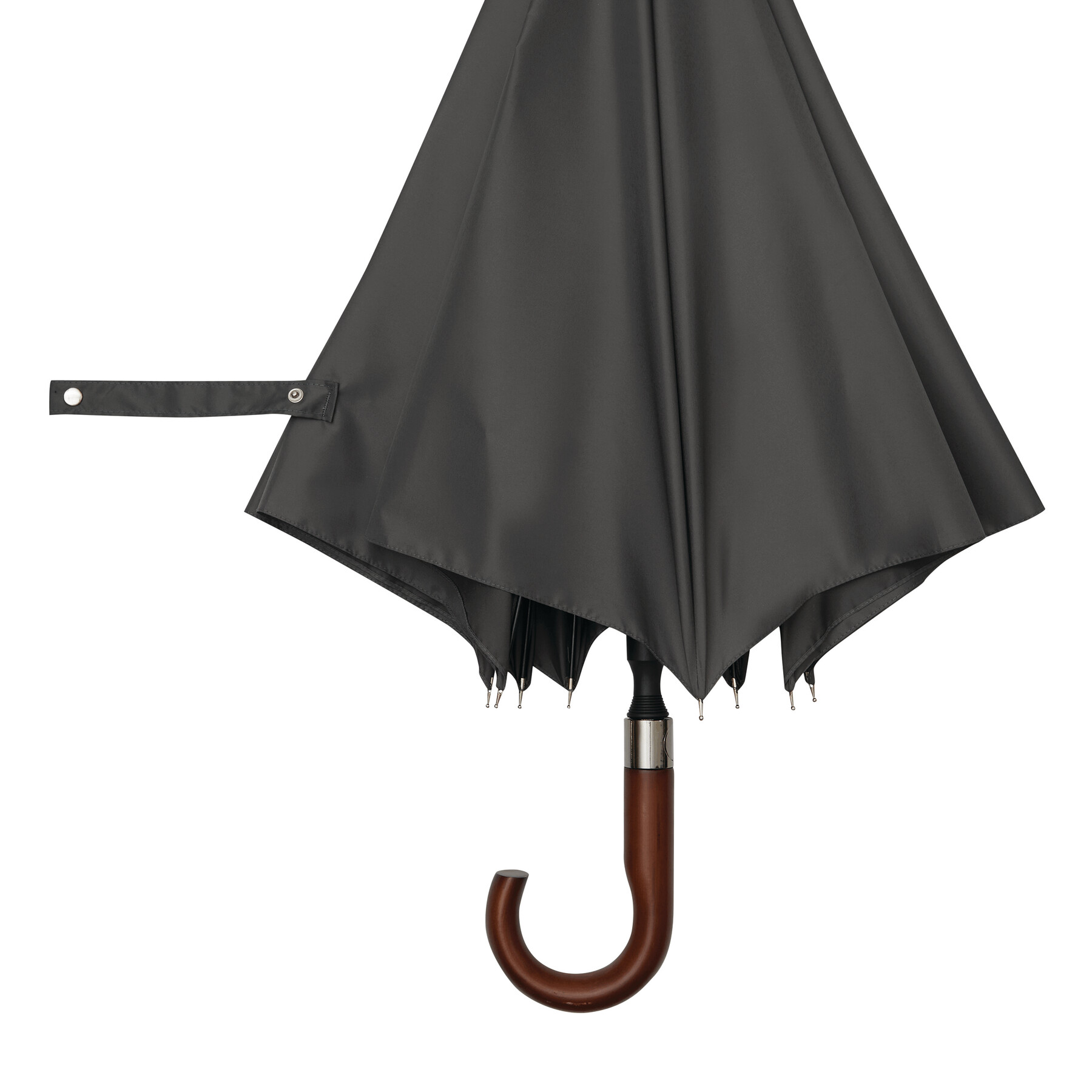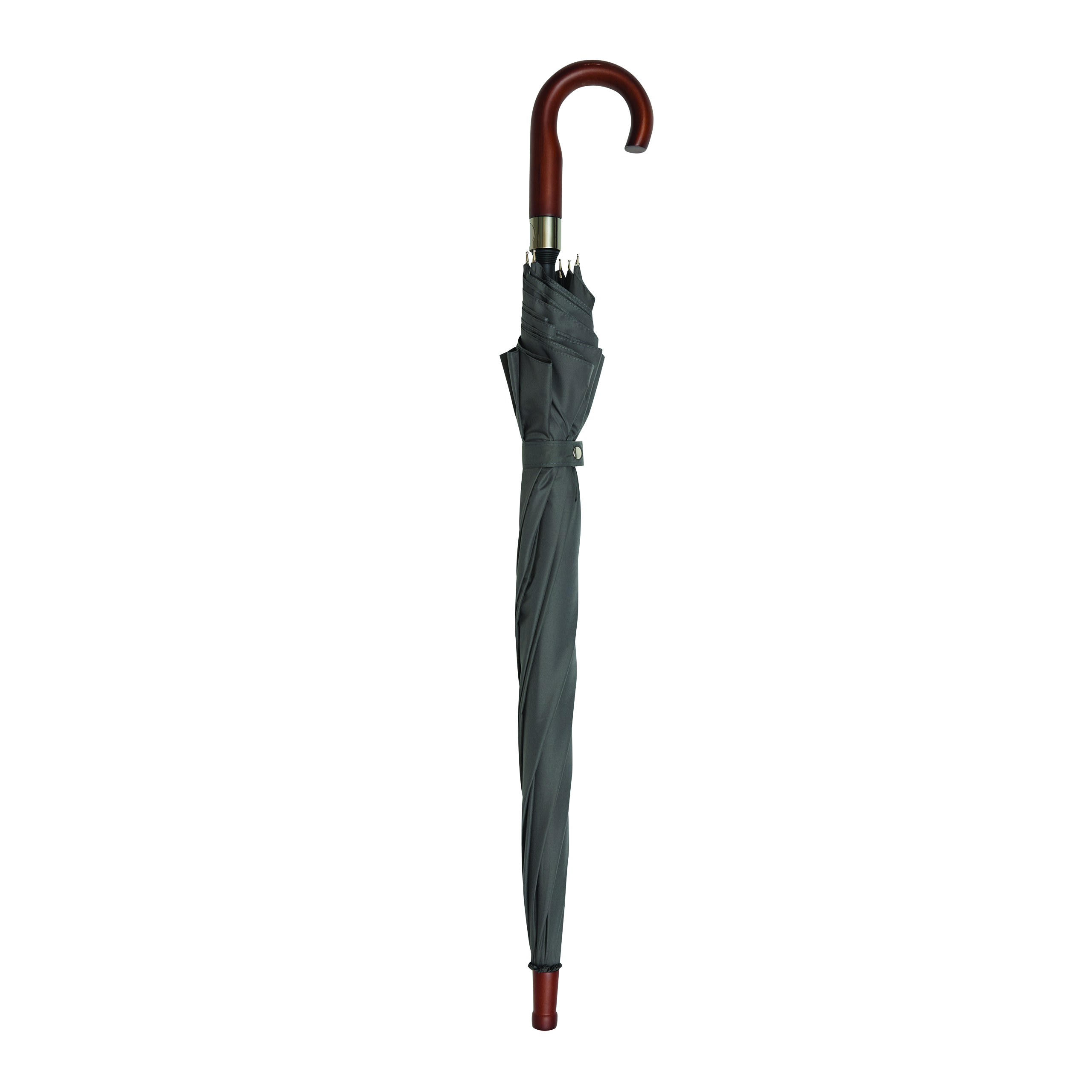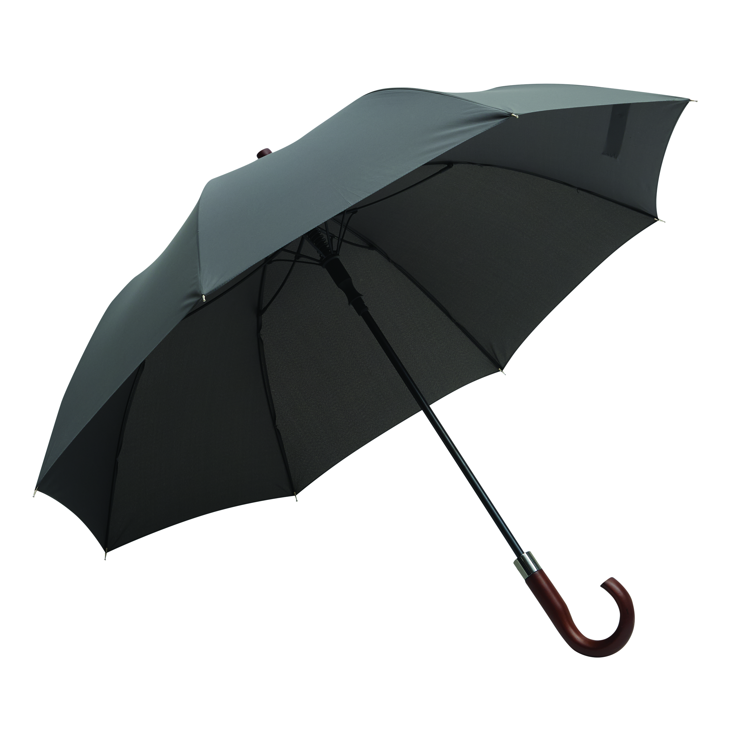 Automatyczny parasol golfowy EARL z wysokiej jakości poszyciem z poliestru pongee. Ma czarną metalową laskę, szyny z włókna szklanego i metalowe kolce. Posiada drewniany okrągły uchwyt ze zintegrowanym przyciskiem automatycznego otwierania i końcówkę. Zapinany jest na przycisk.