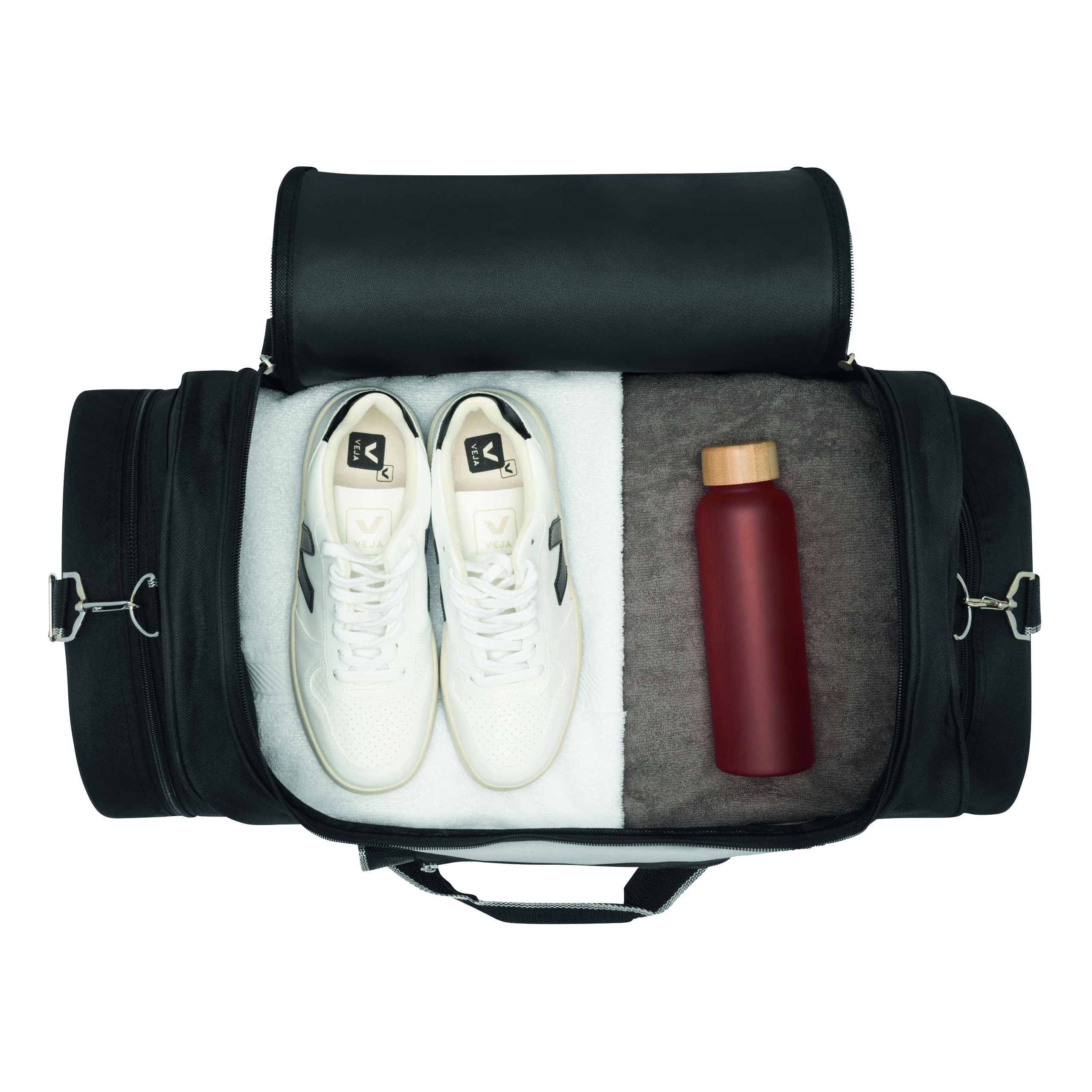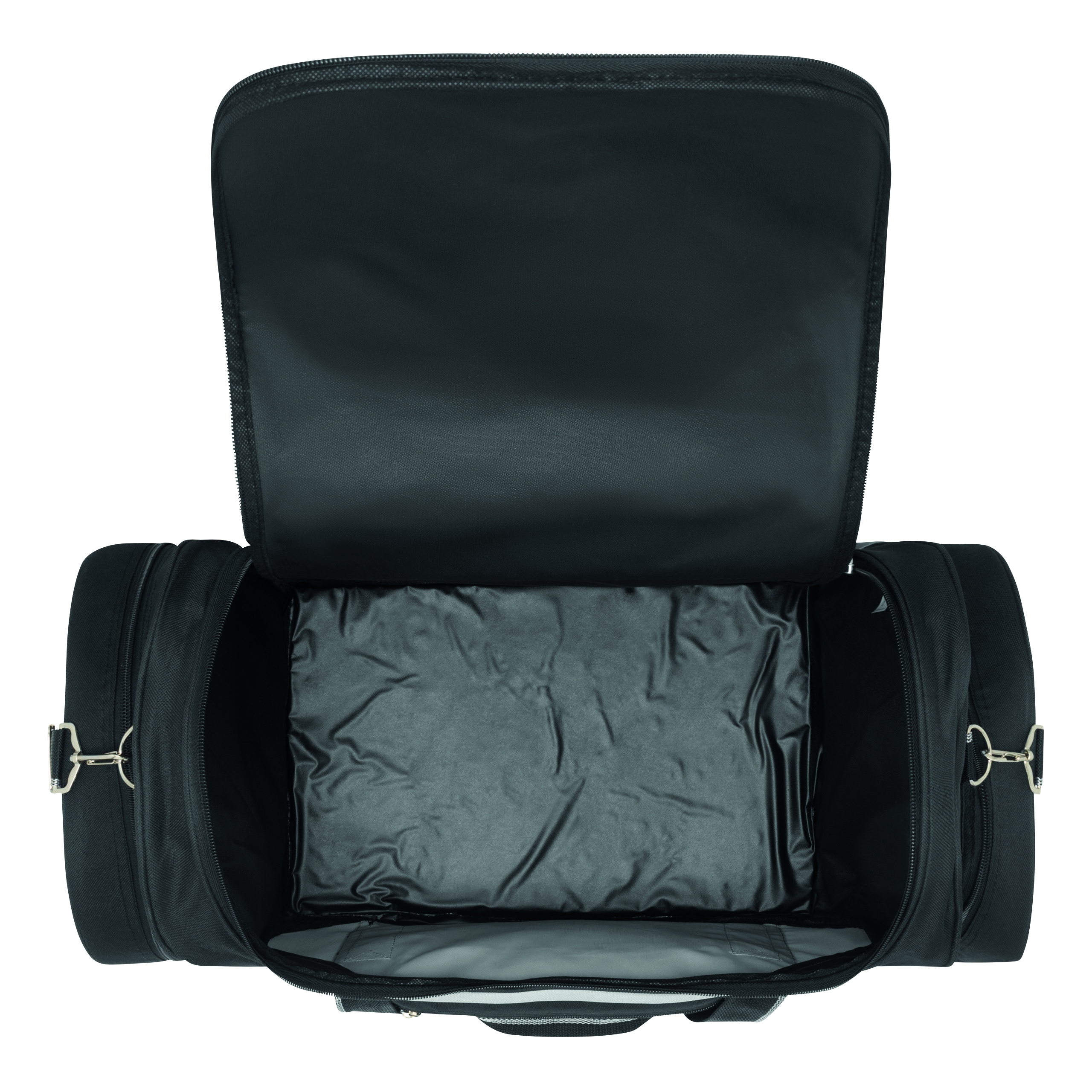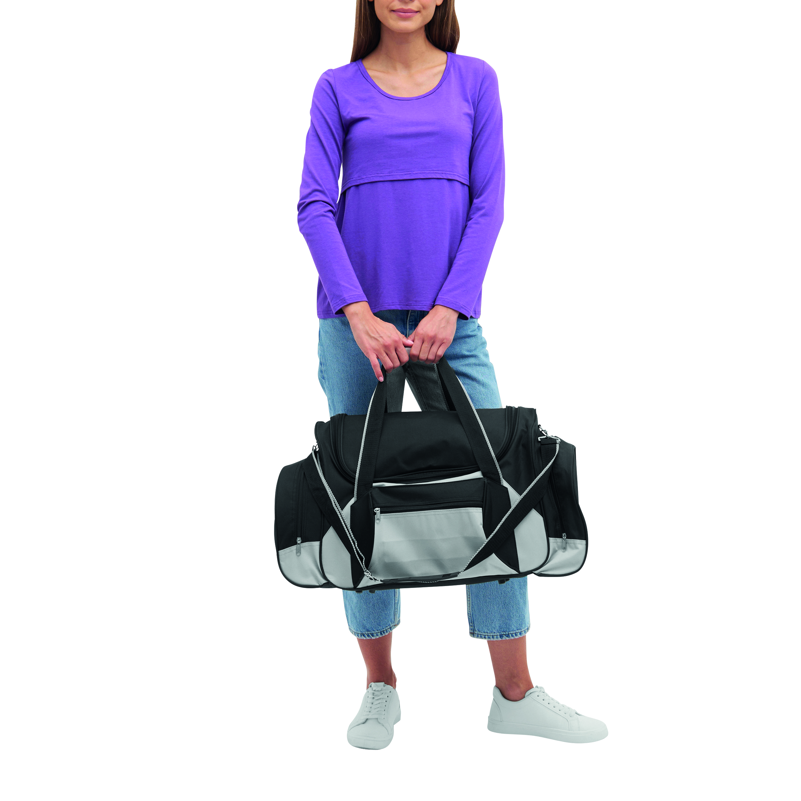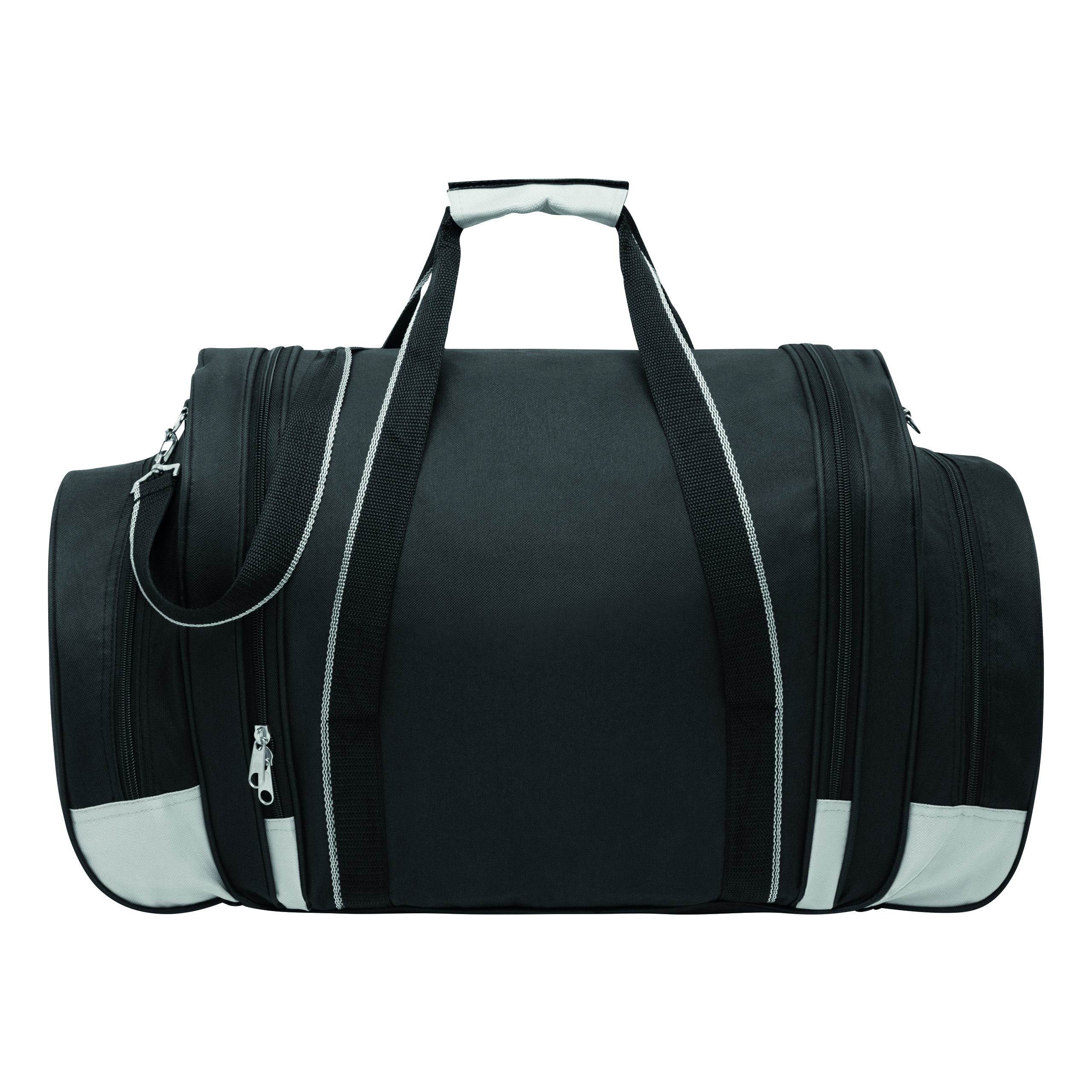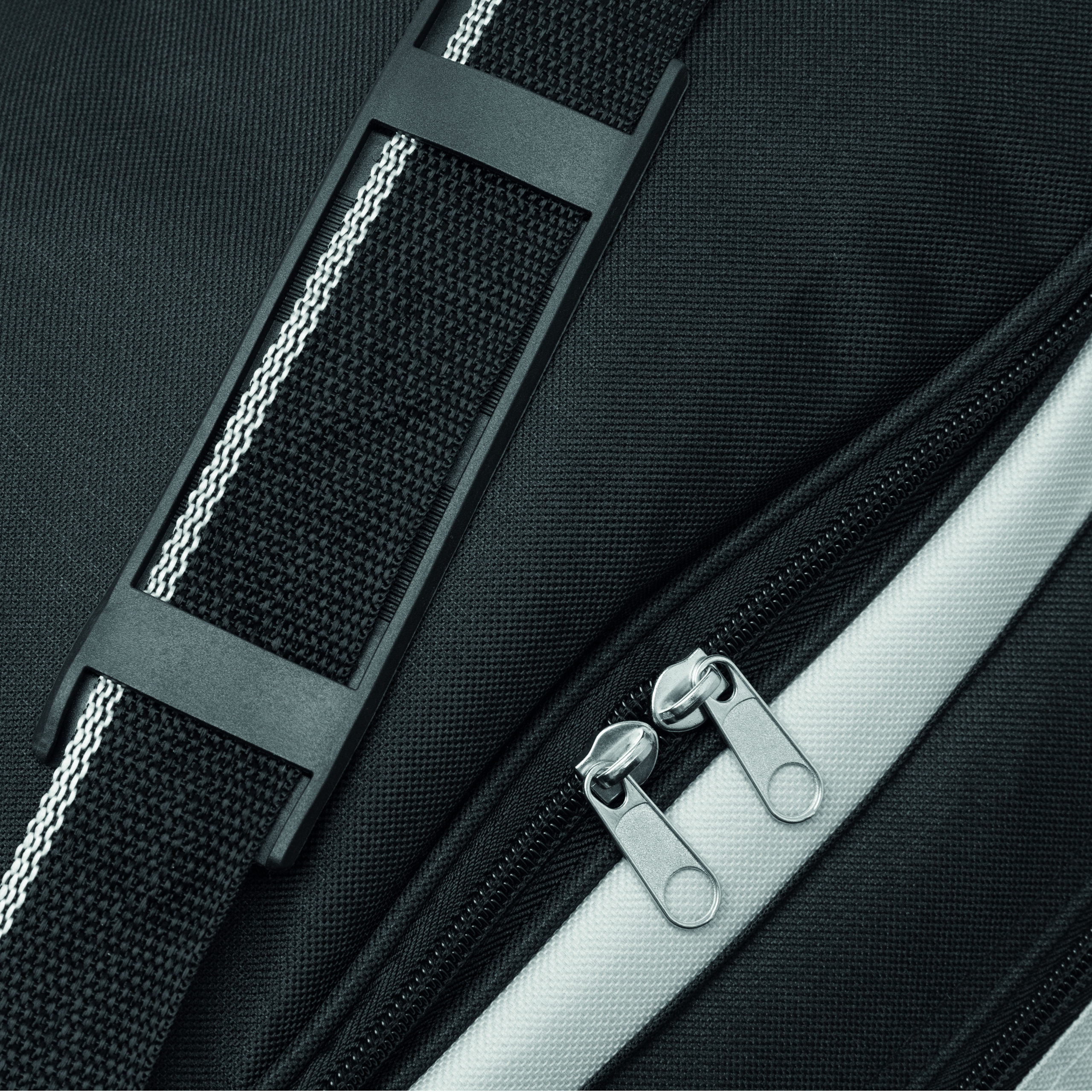 Torba podróżna ICELAND z główną i przednią kieszenią na zamek błyskawiczny, z 2 zaokrąglonymi kieszeniami bocznymi z zamkiem, zawiera regulowany i odpinany pasek na ramię.