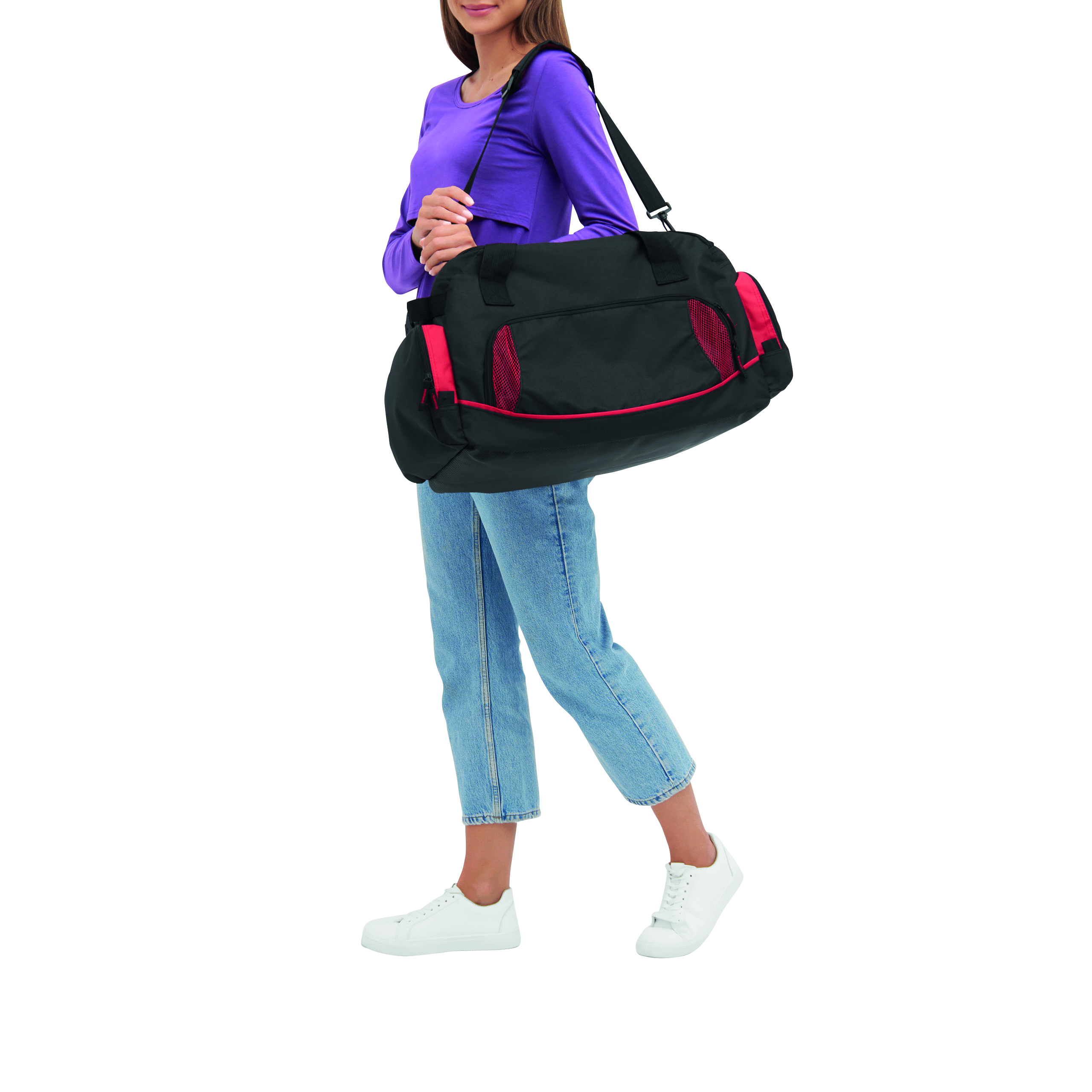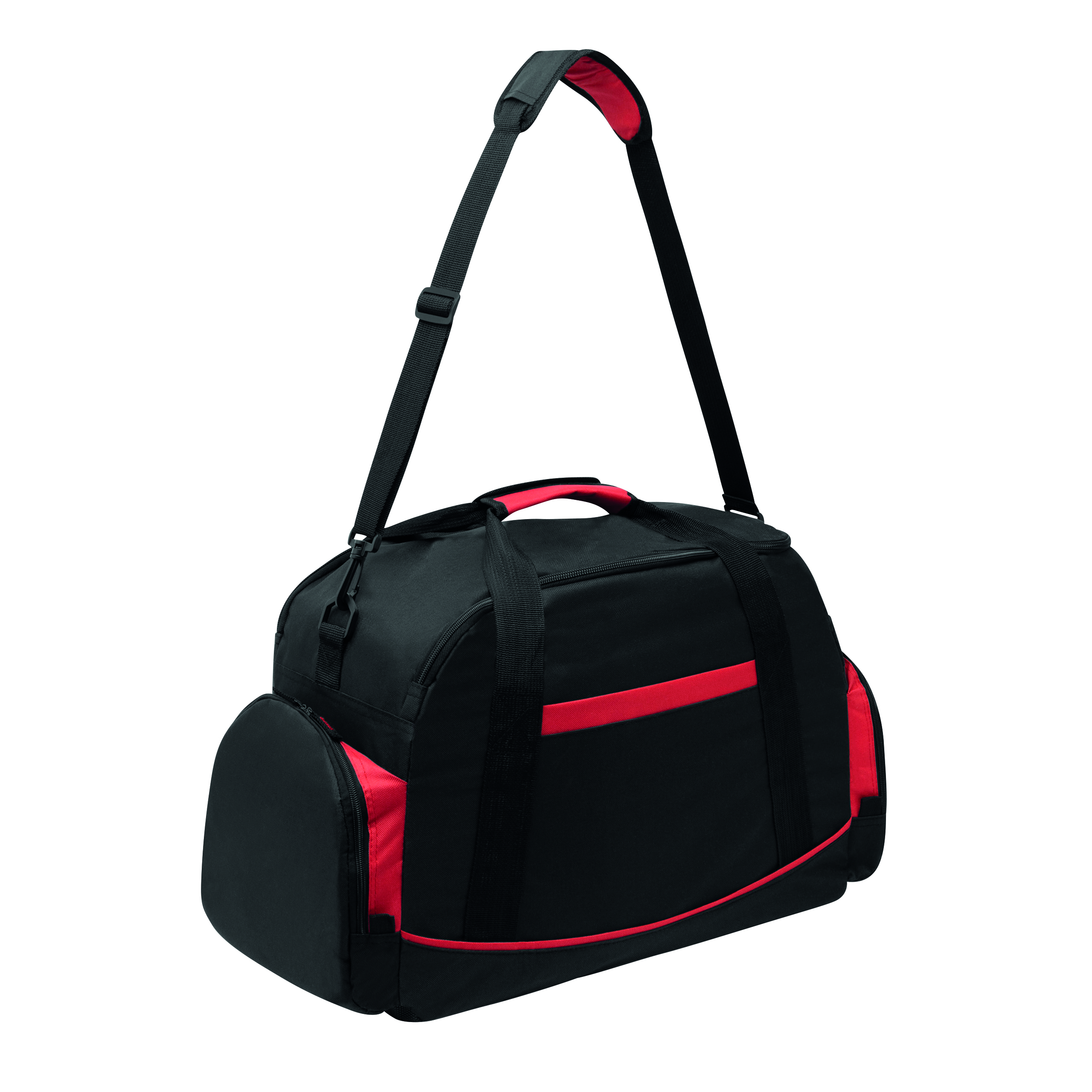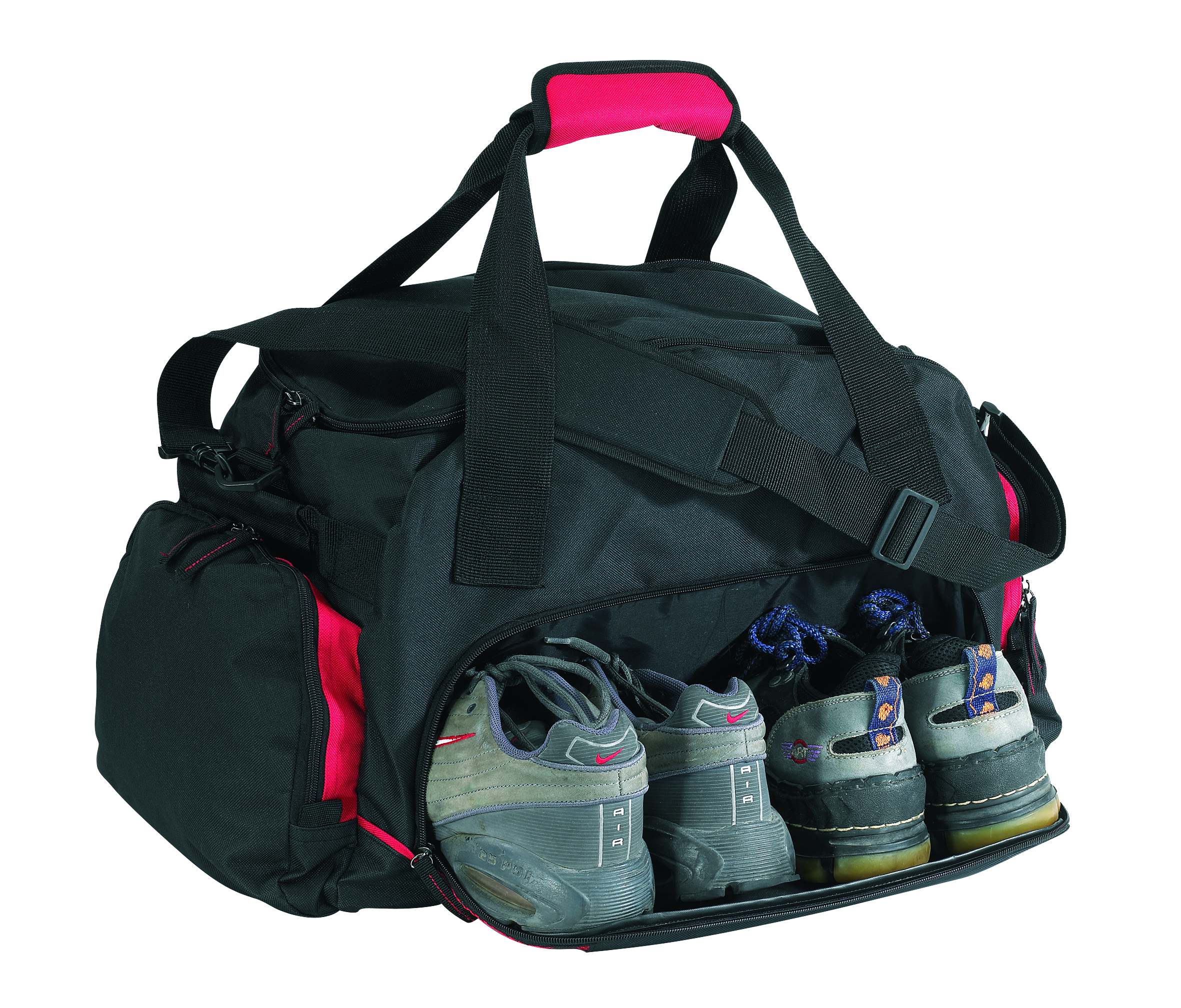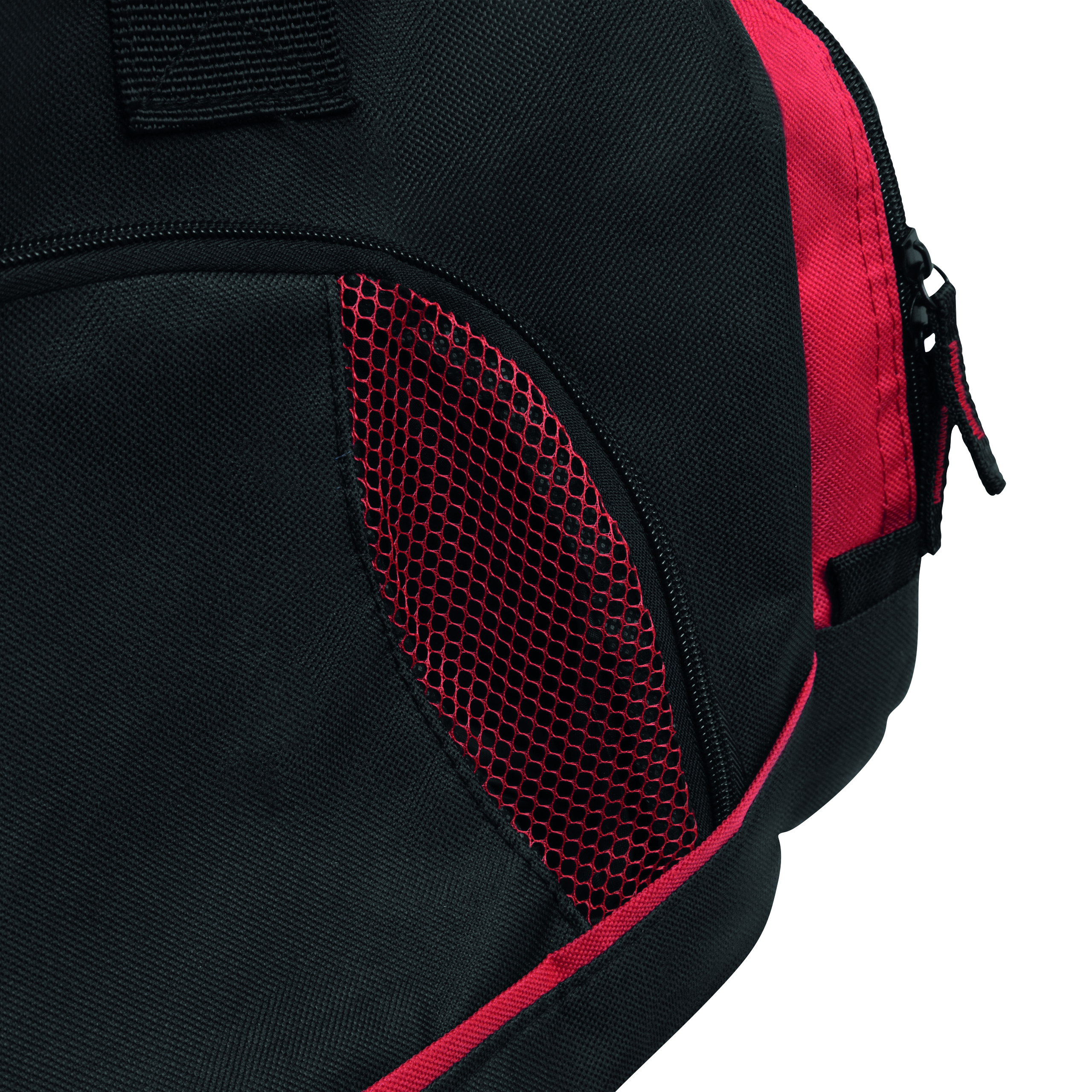 Torba sportowa DOME z kieszenią na obuwie, główną komorą i 2 bocznymi kieszeniami na zamek błyskawiczny, otwartą kieszenią z tyłu, wodoodpornym dnem, zawiera regulowany i odpinany pasek na ramię.