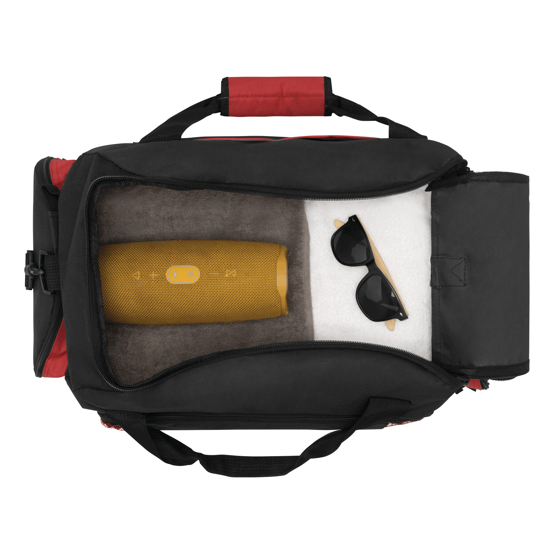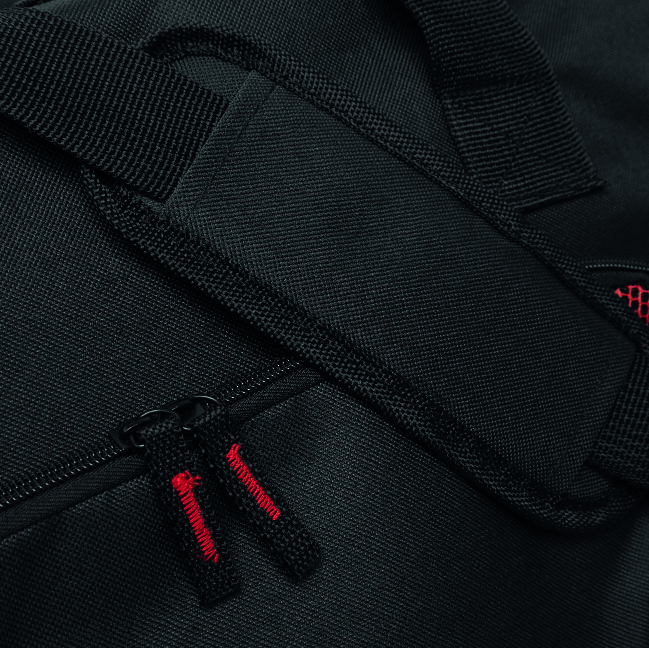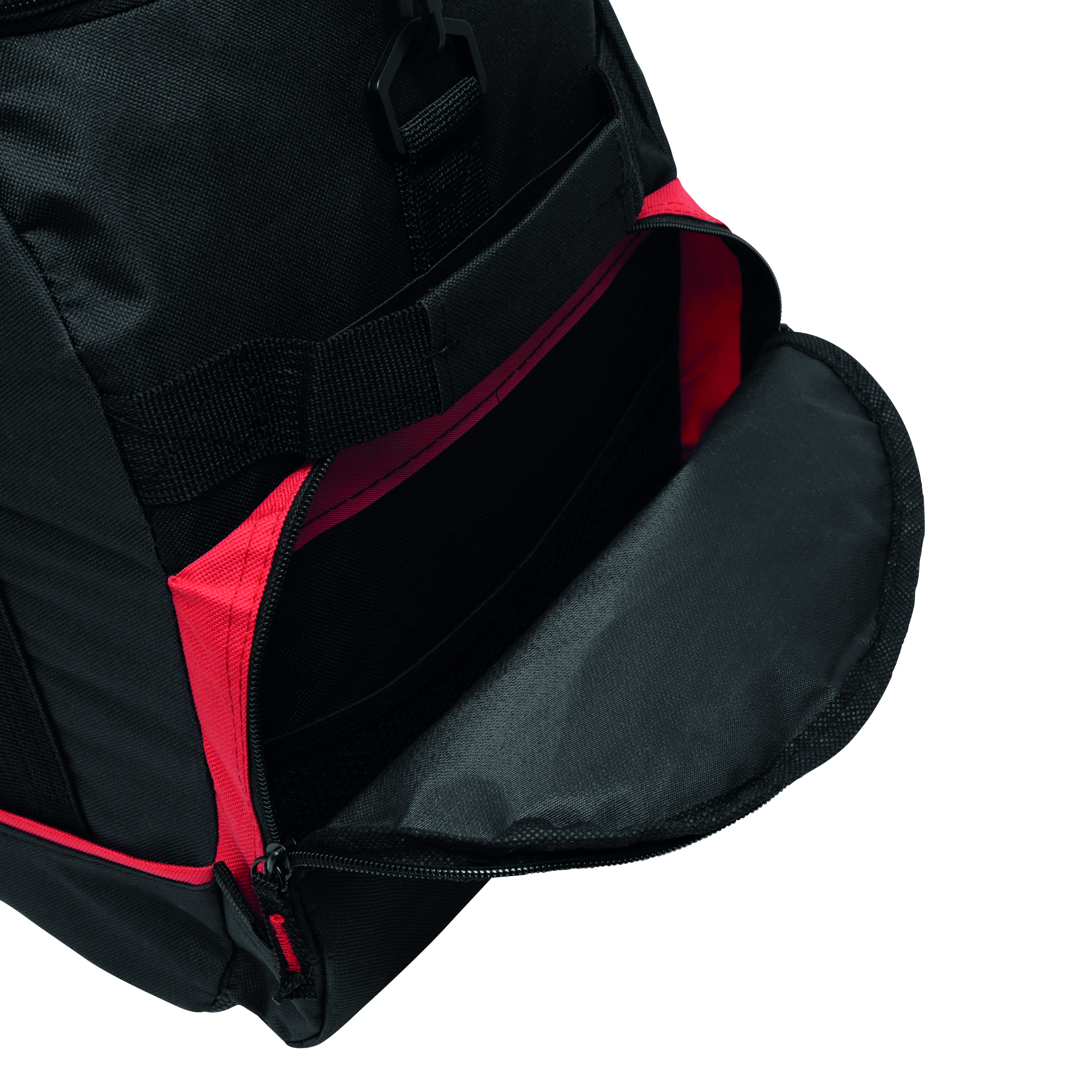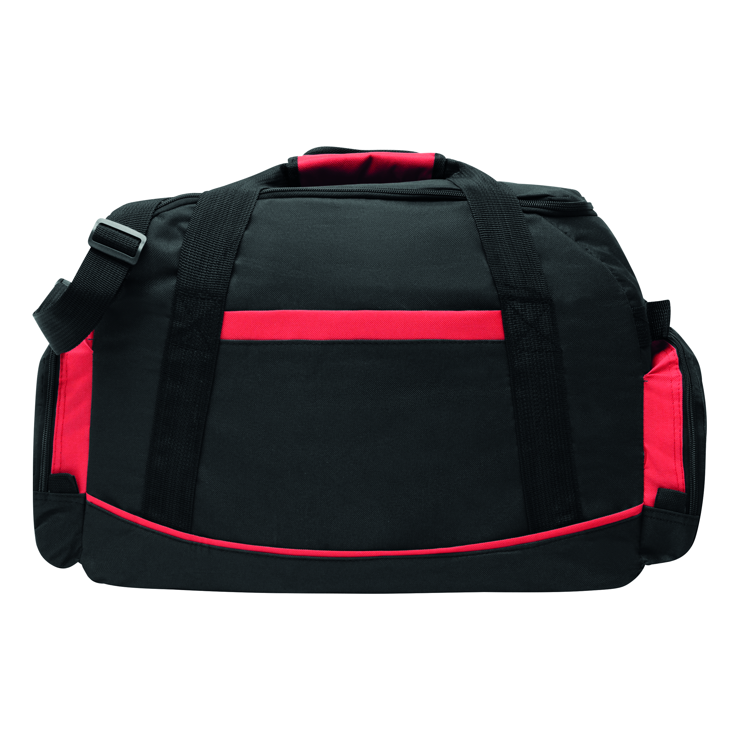 Torba sportowa DOME z kieszenią na obuwie, główną komorą i 2 bocznymi kieszeniami na zamek błyskawiczny, otwartą kieszenią z tyłu, wodoodpornym dnem, zawiera regulowany i odpinany pasek na ramię.