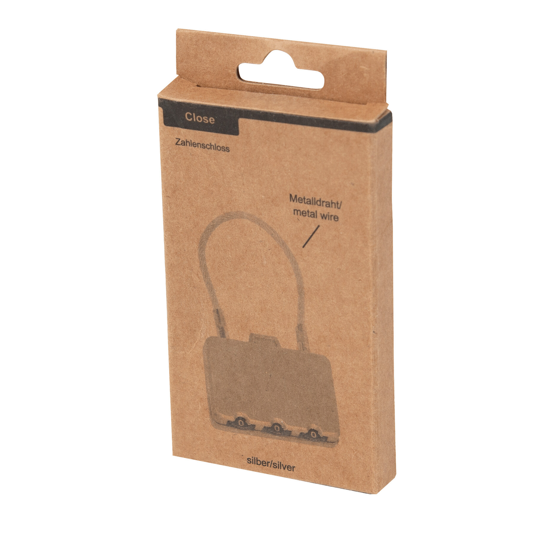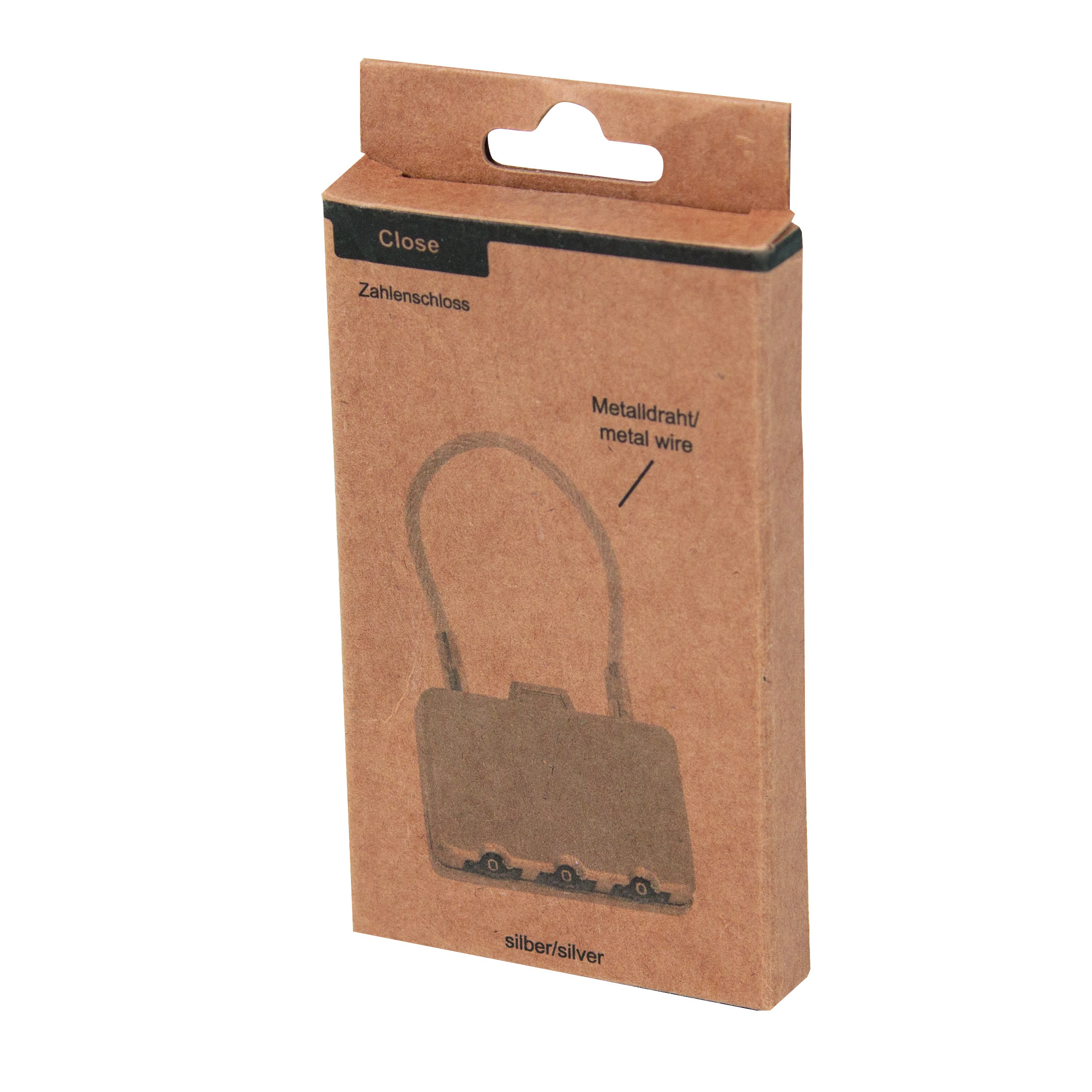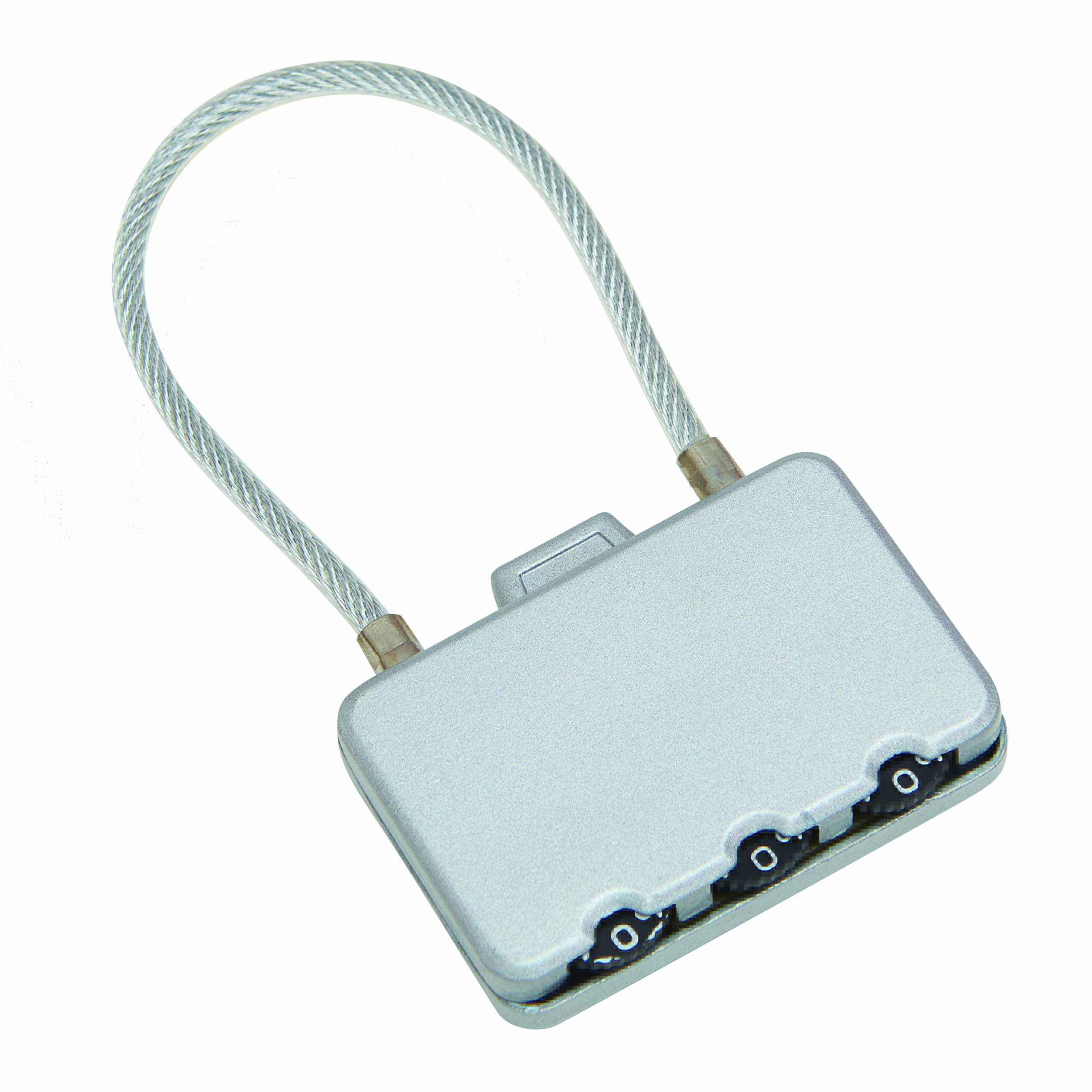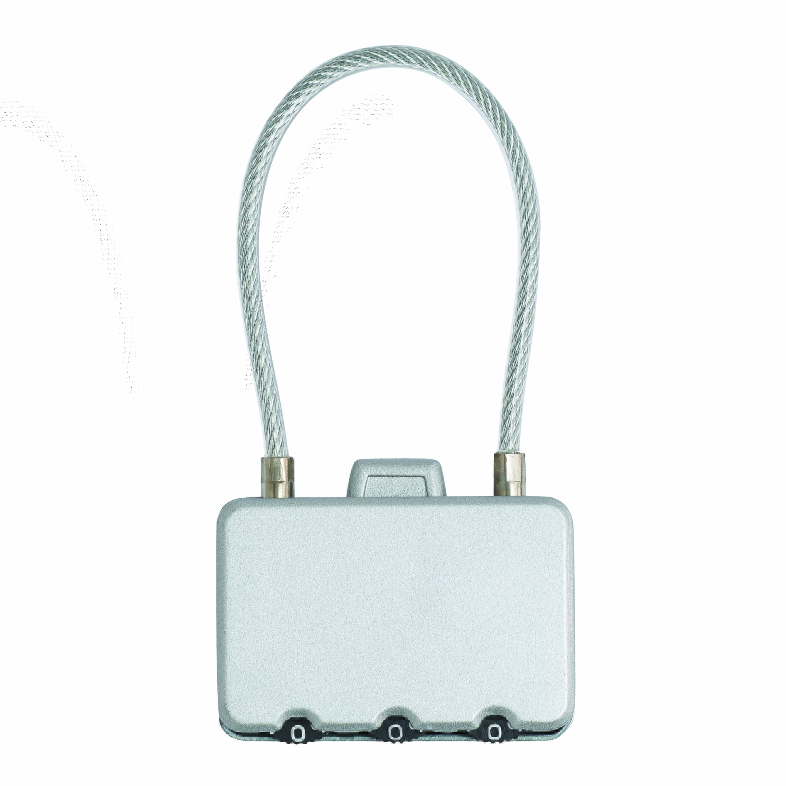 Zamek szyfrowy CLOSE w kształcie walizki z metalową linką do zabezpieczenia bagażu. Może służyć jako kłódka.