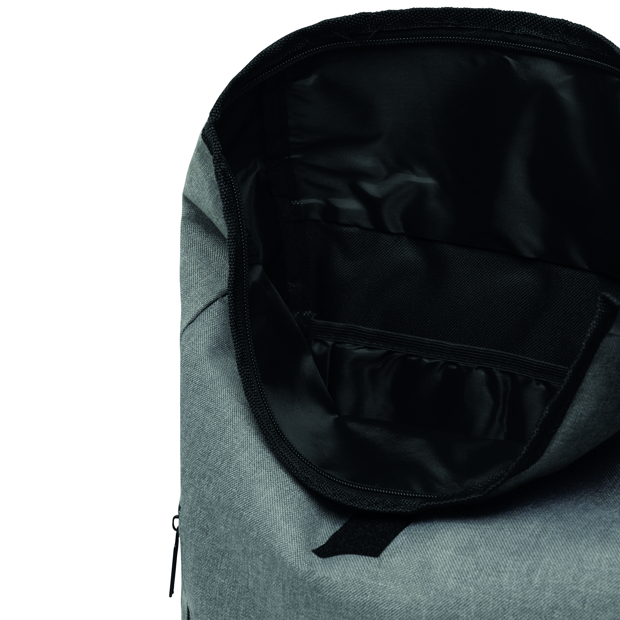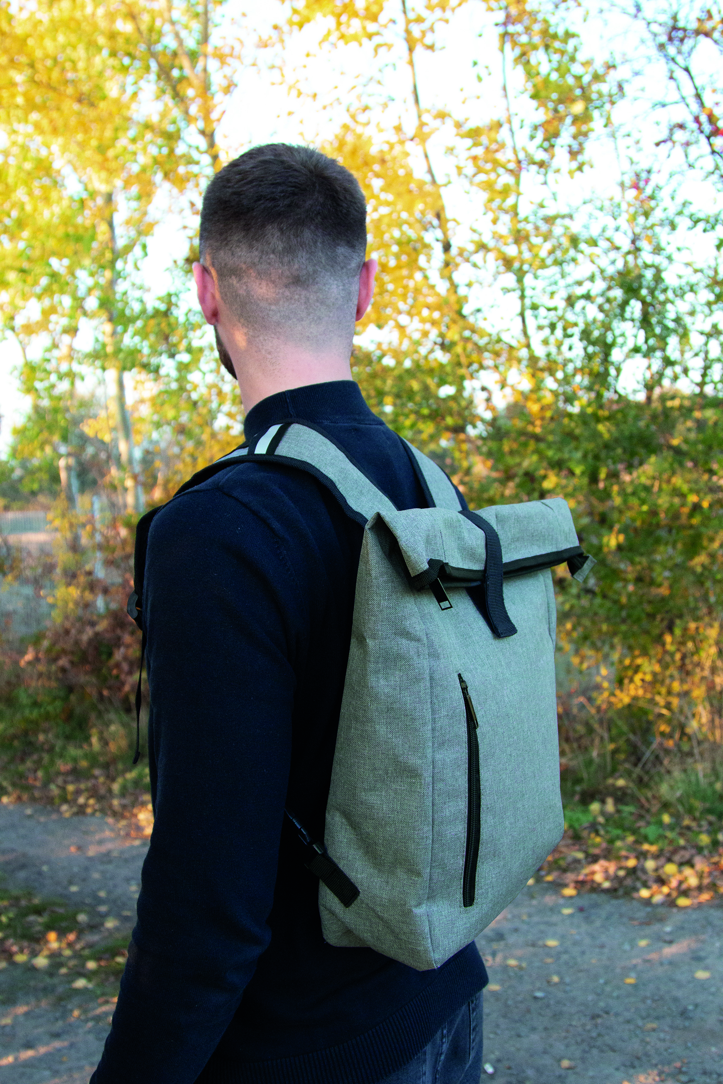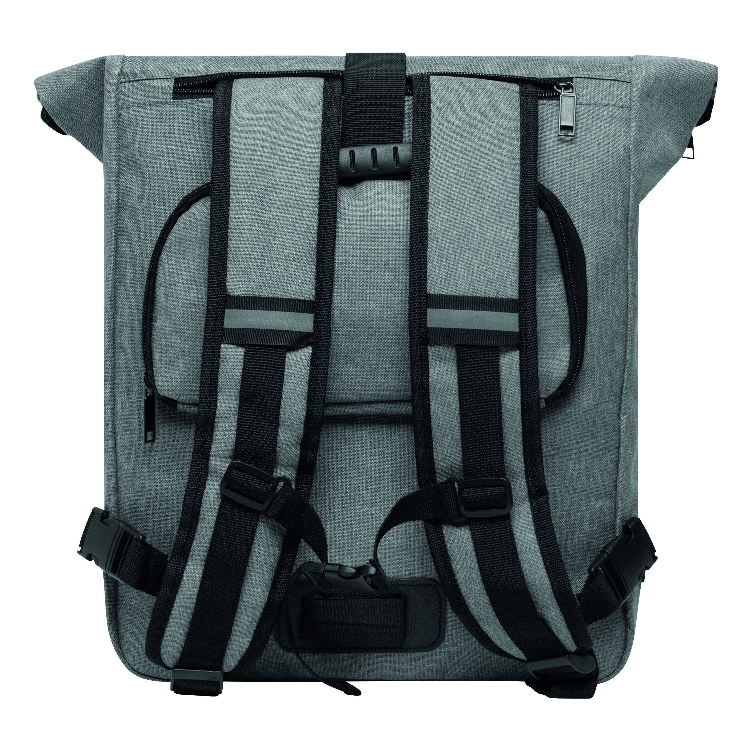 Plecak rowerowy BIKE RACE z główną komorą zamykaną na zamek błyskawiczny, z wyściełaną komorą wewnętrzną na laptopa lub tablet. Zamknięcie zwijane mocowane na rzep. Wyściełane szelki, przednia kieszeń zamykana na zamek błyskawiczny, uchwyt do przenoszenia. Szelki można przechowywać w kieszeni zapinanej na zamek.
