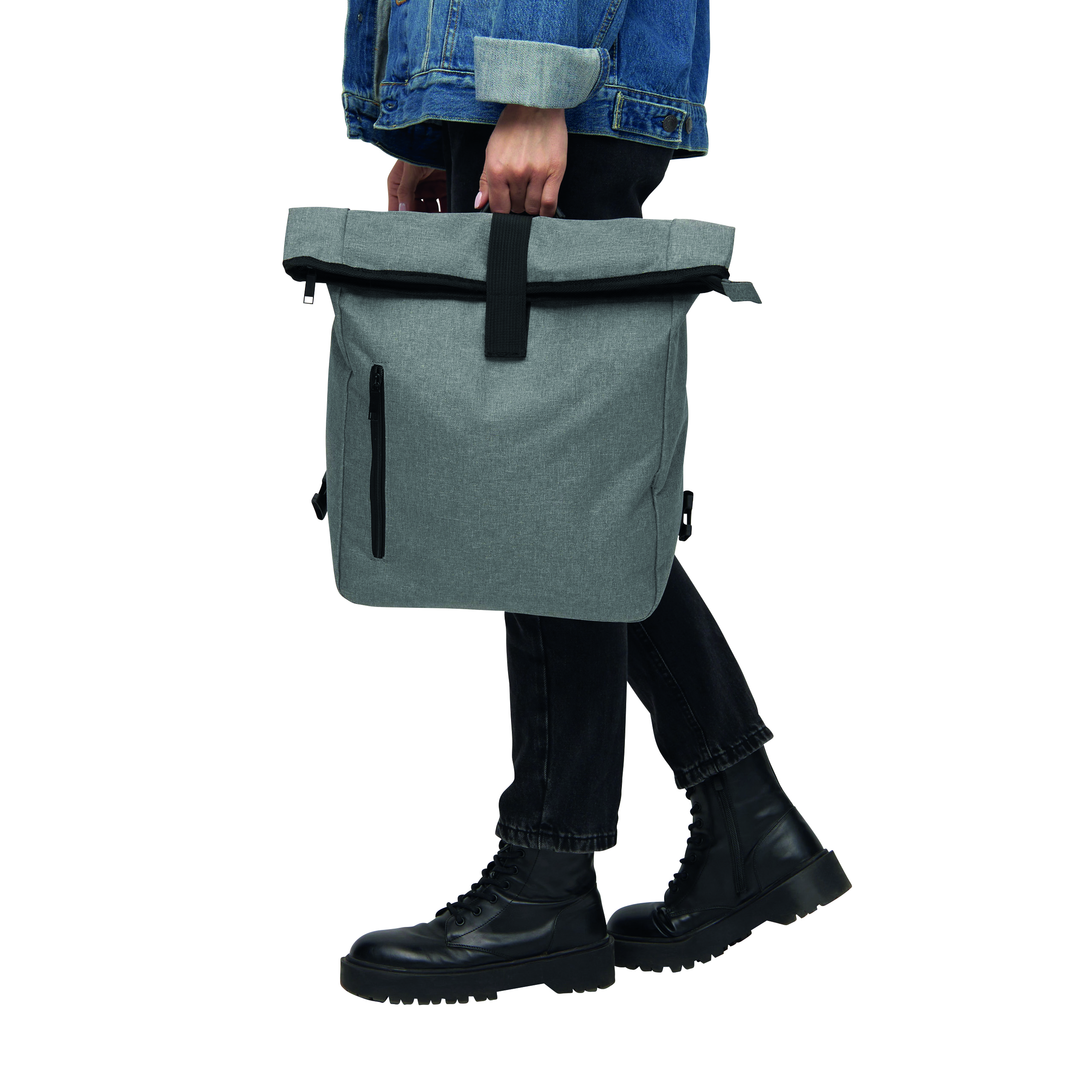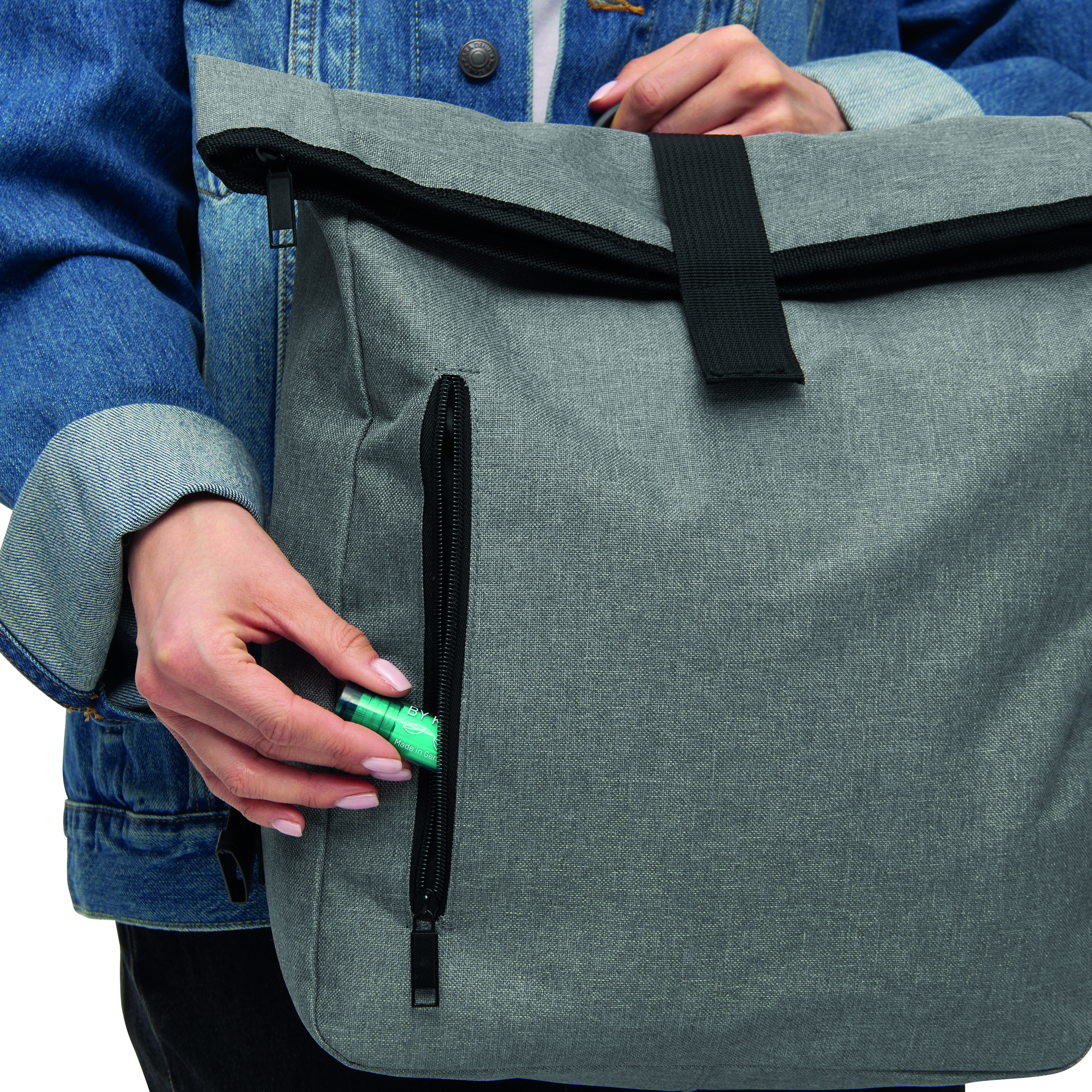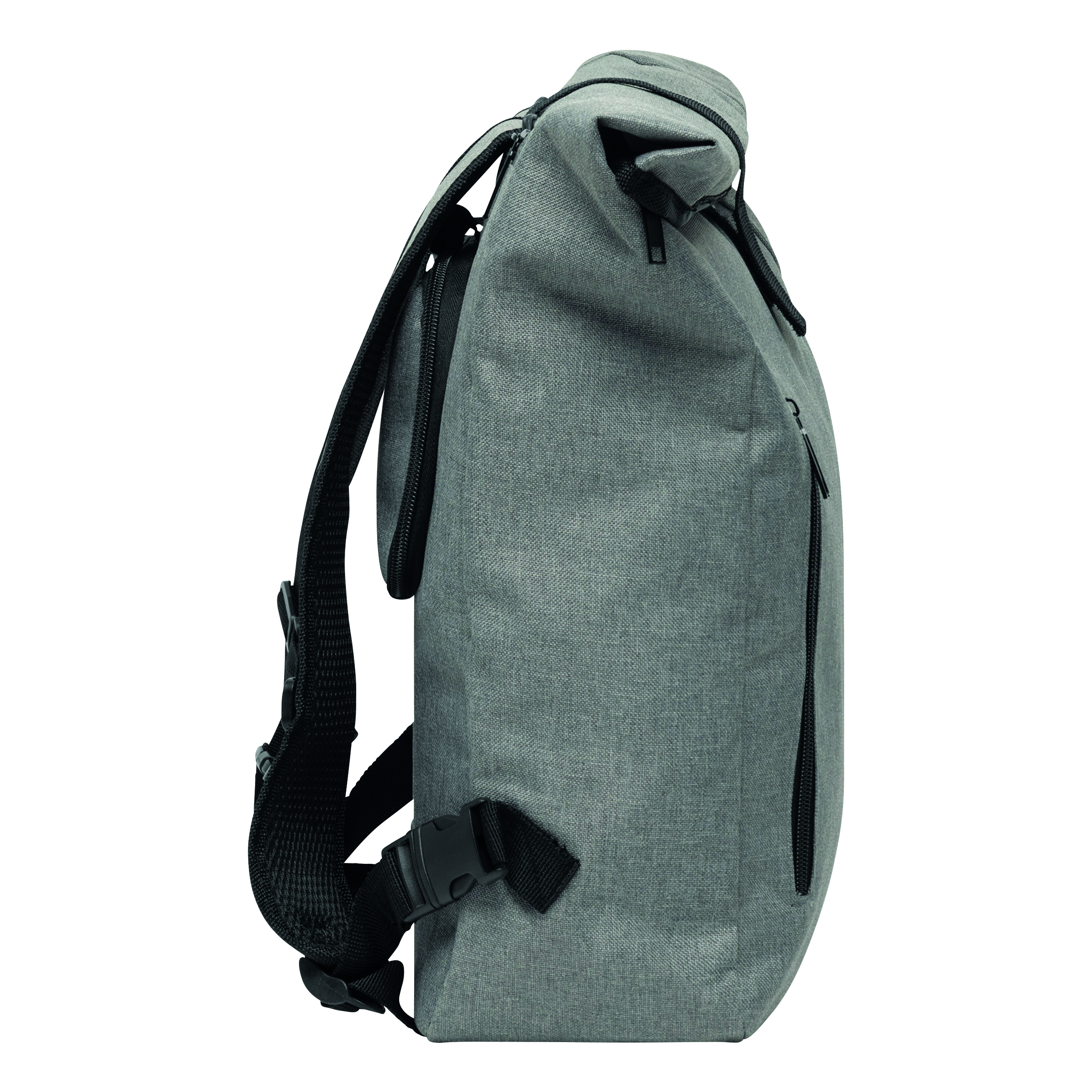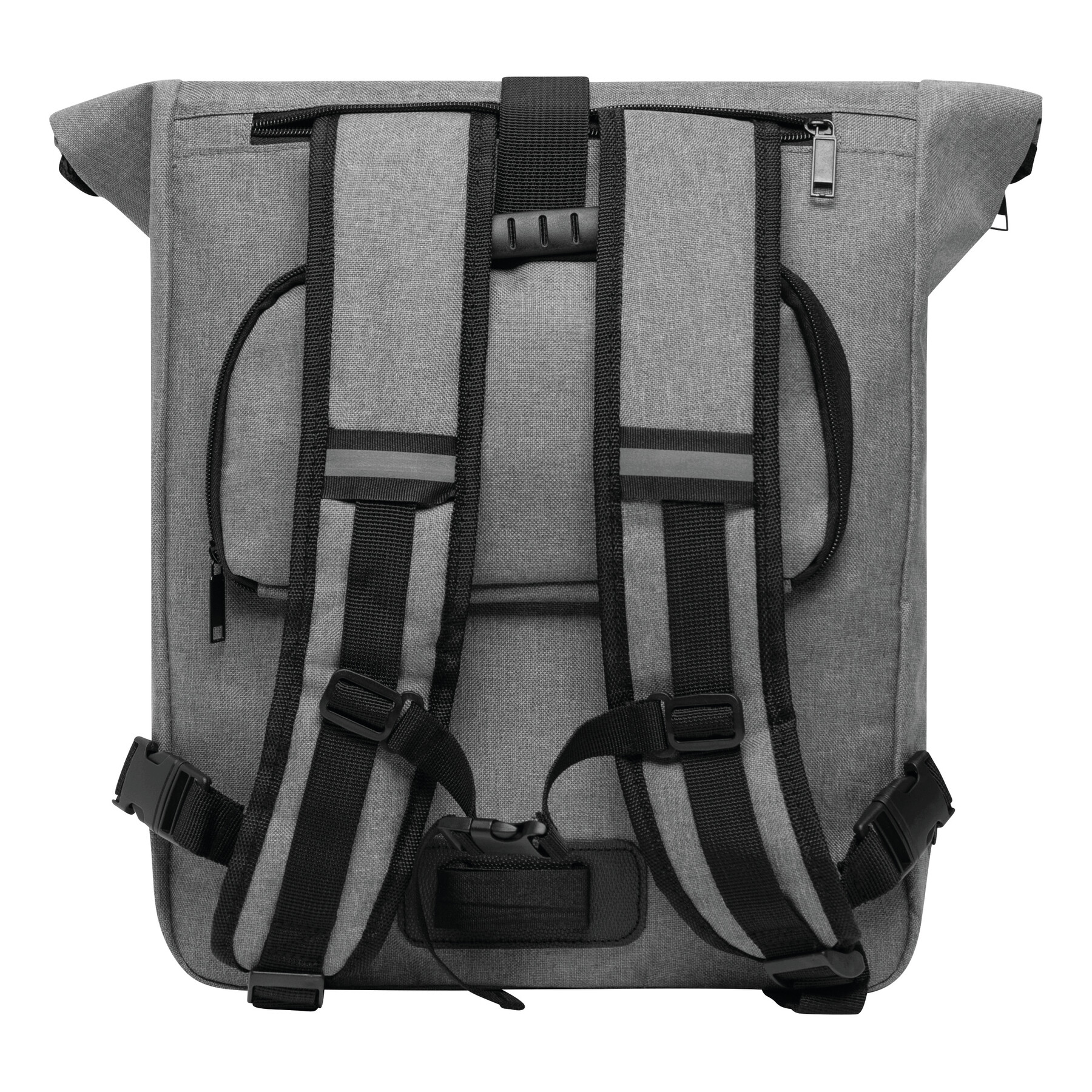 Plecak rowerowy BIKE RACE z główną komorą zamykaną na zamek błyskawiczny, z wyściełaną komorą wewnętrzną na laptopa lub tablet. Zamknięcie zwijane mocowane na rzep. Wyściełane szelki, przednia kieszeń zamykana na zamek błyskawiczny, uchwyt do przenoszenia. Szelki można przechowywać w kieszeni zapinanej na zamek.