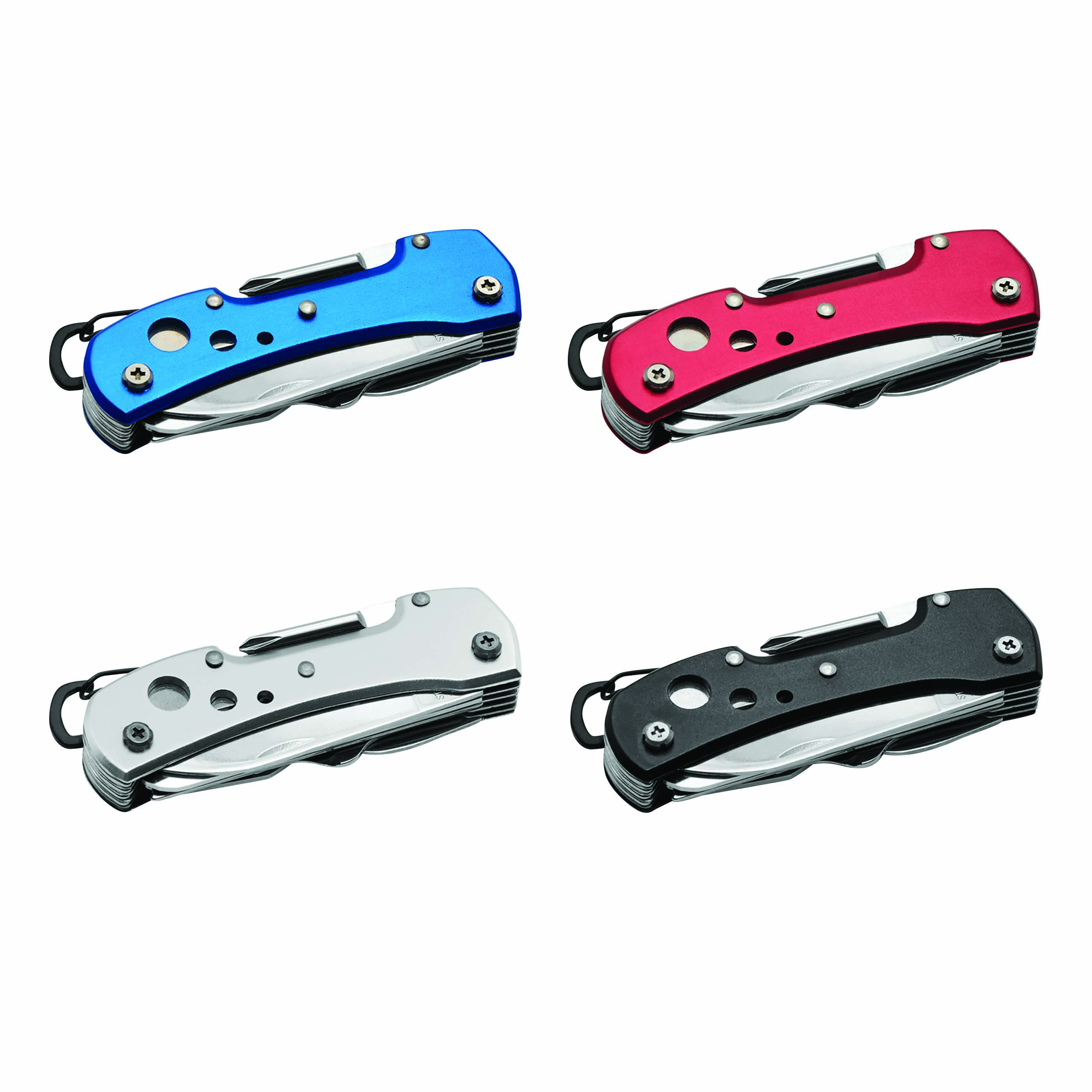 Scyzoryk STRONG HELPER składa się z 12 elementów: nożyka, piły, nożyczek, otwieracza do puszek, korkociągu, otwieracza do butelek, śrubokręta płaskiego, śrubokręta krzyżakowego, szpikulca-rozwiertaka, szydła, linijki, pilniczka oraz karabińczyka.