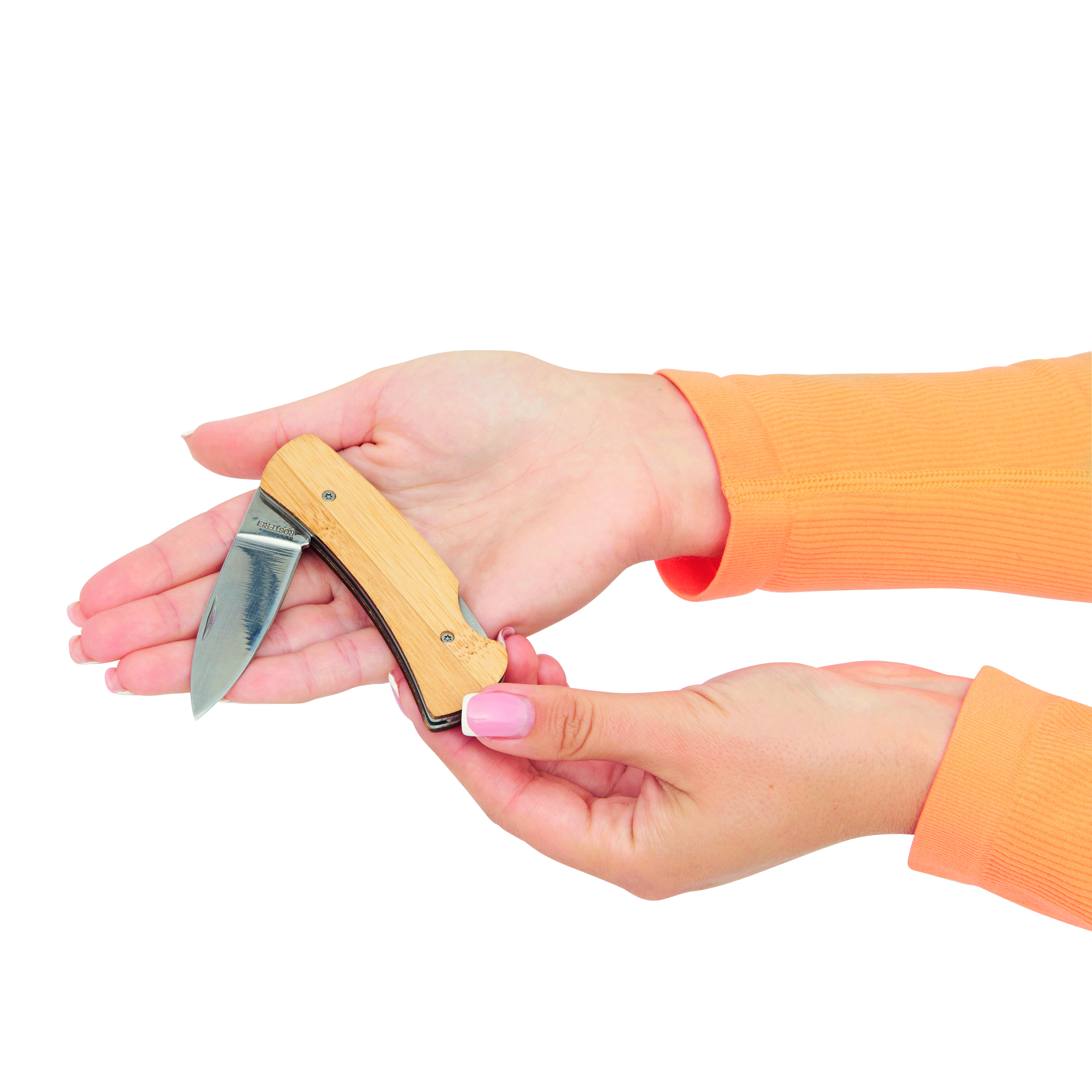 Nóż kieszonkowy BAMBOO BLADE: z mechanizmem składania, wykonany ze stali nierdzewnej z bambusową rękojeścią.