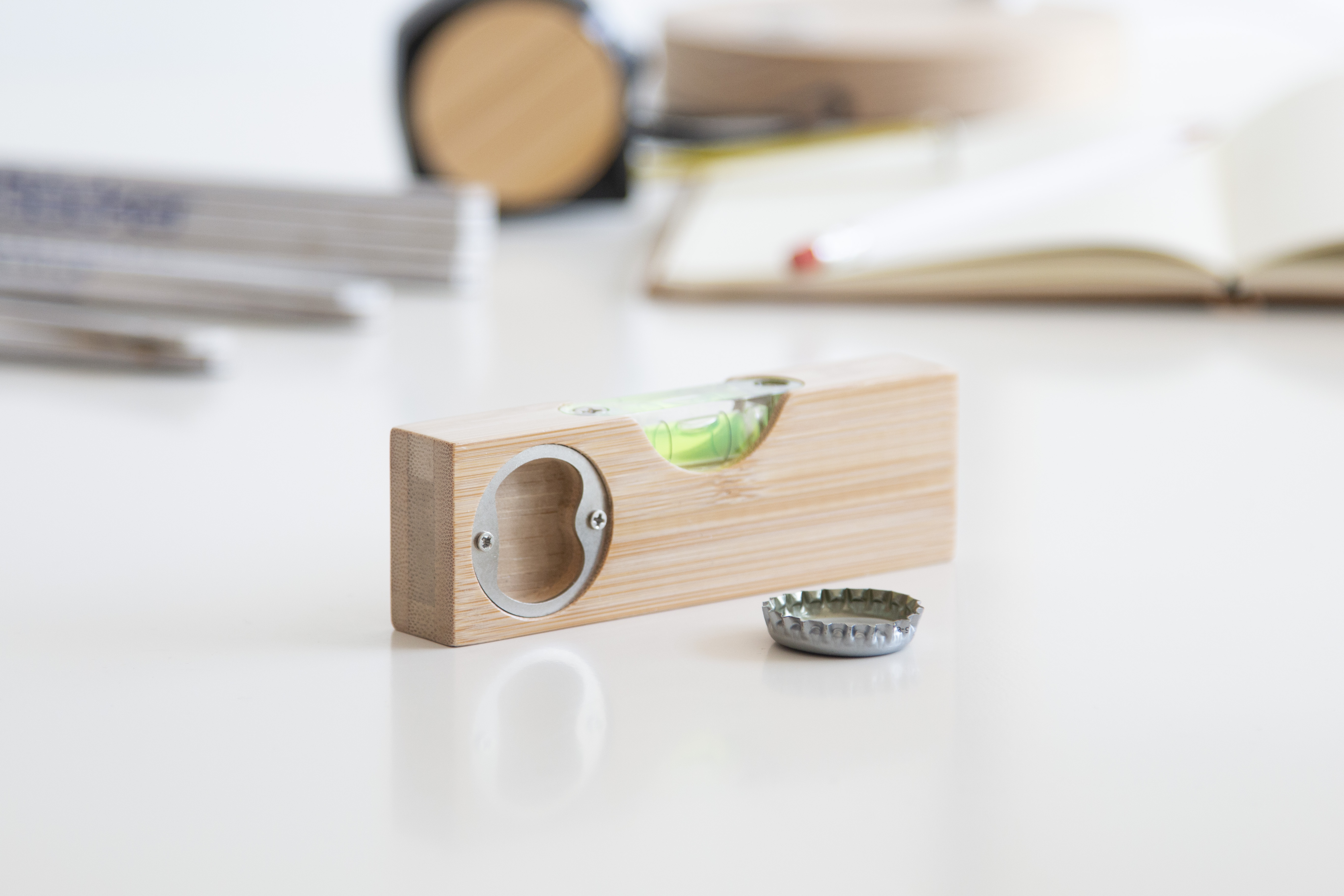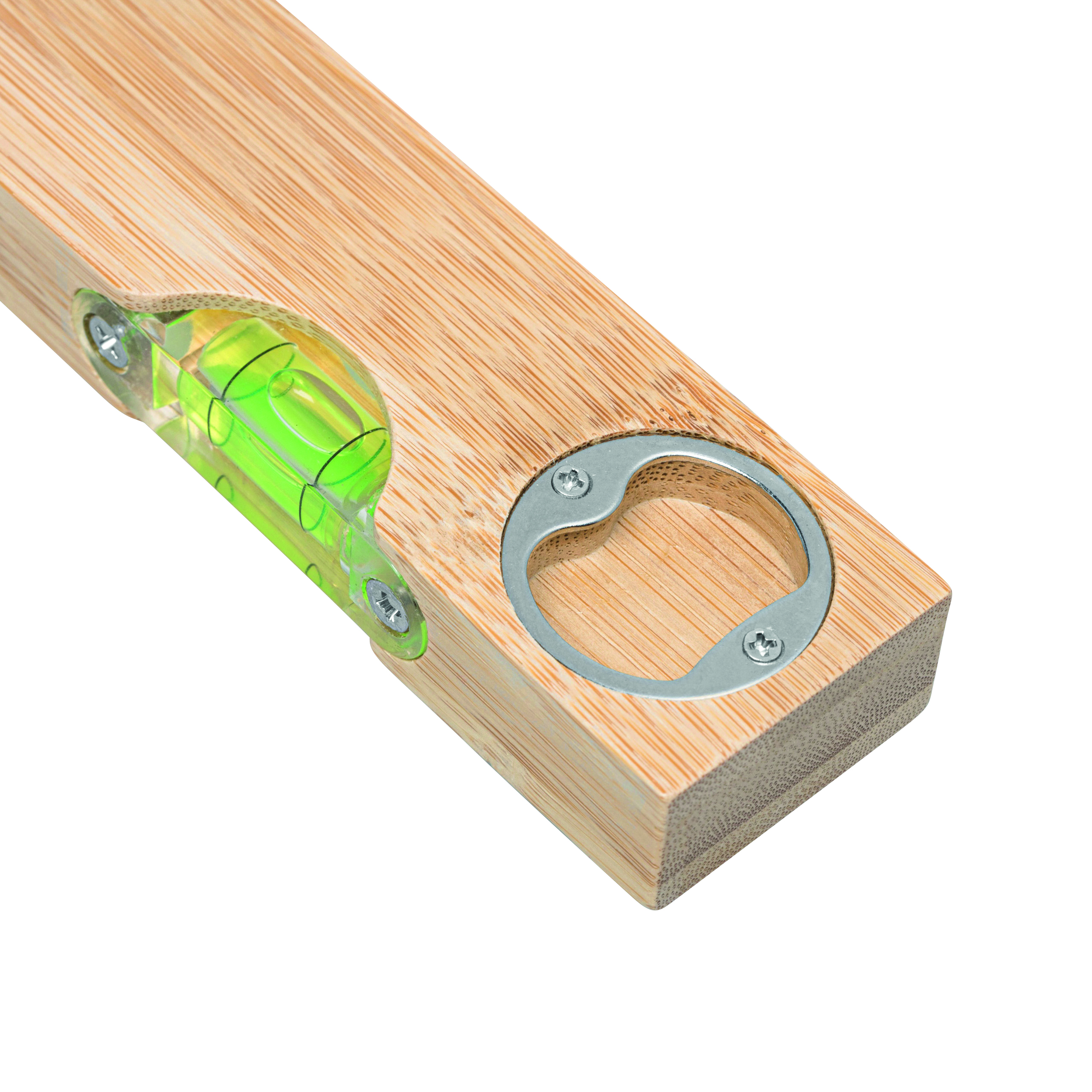 Poziomica BAMBOO TOOL: ze zintegrowanym otwieraczem do butelek, wykonana z bambusa.