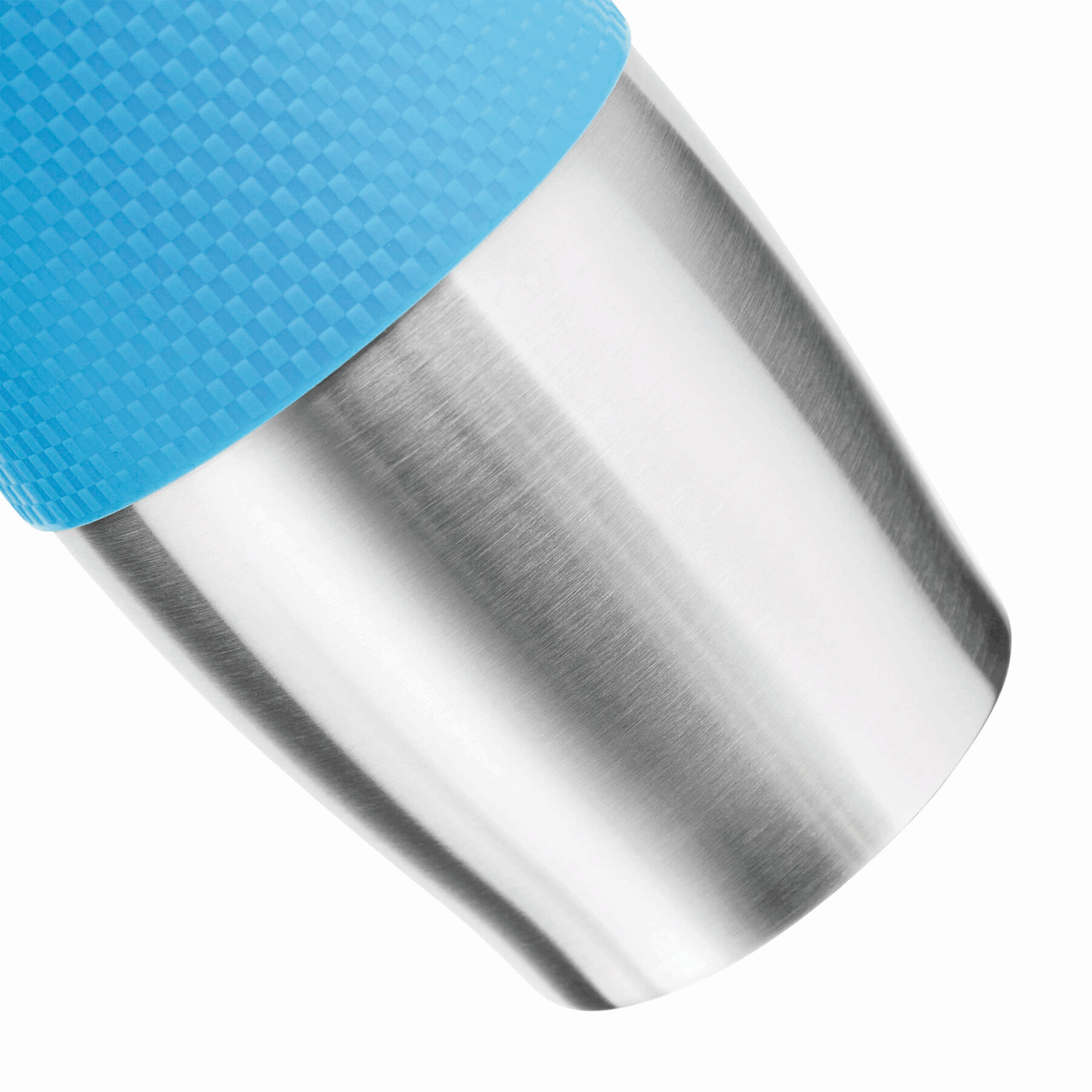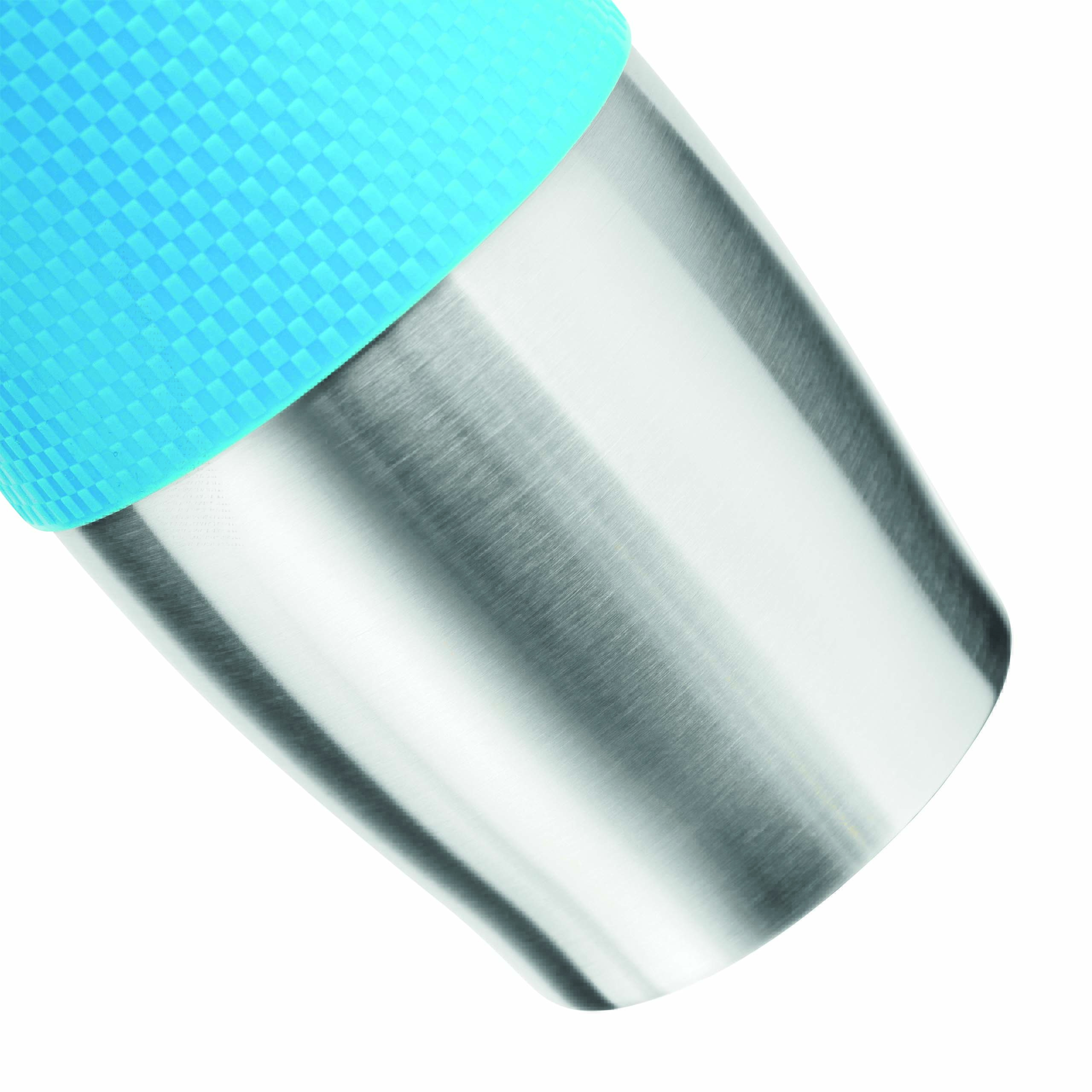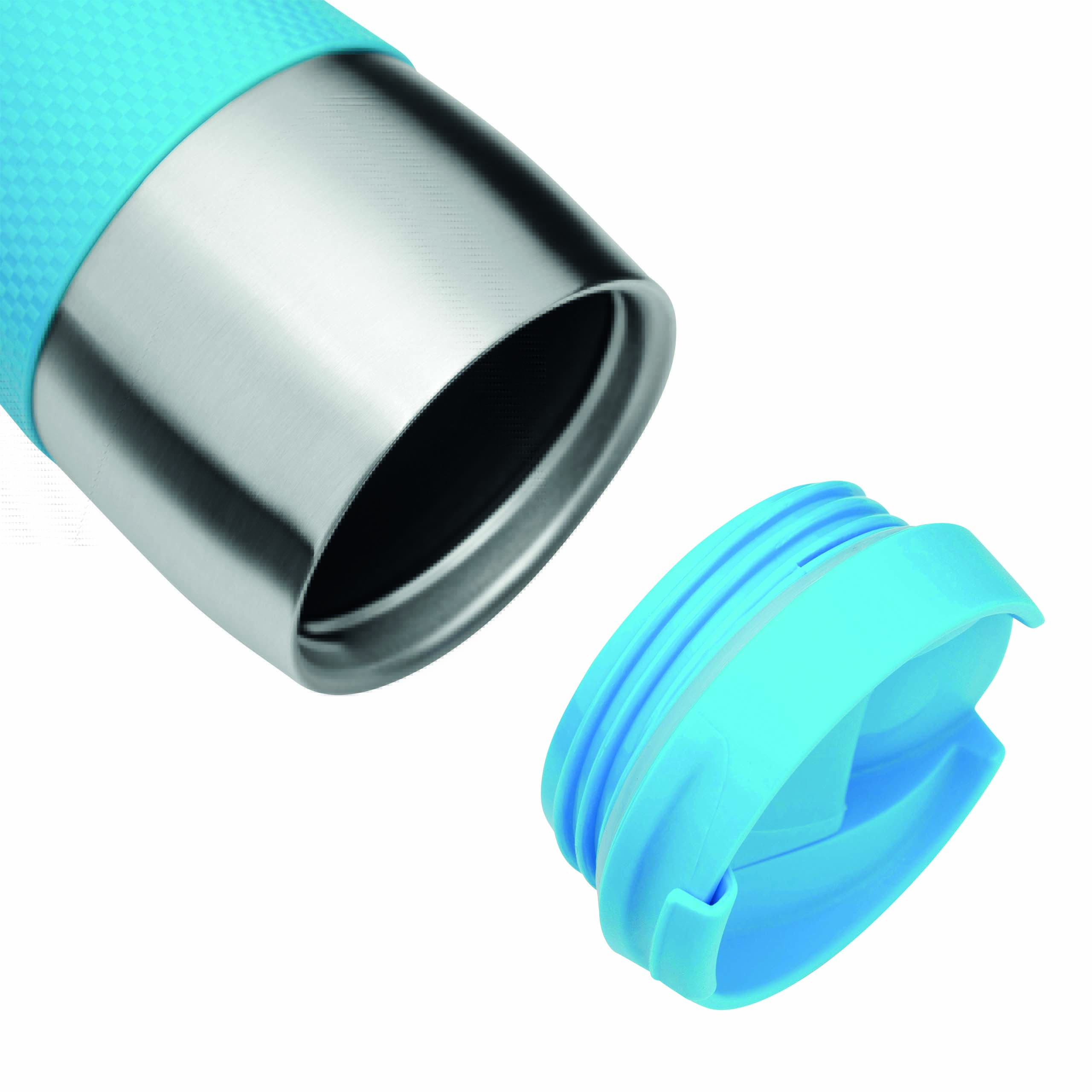 Kubek termiczny AU LAIT wykonany ze stali nierdzewnej (wewnątrz i na zewnątrz). Odkręcane wieczko w różnych kolorach z otworem do picia, kolorowy plastikowy uchwyt i gumowana podstawa dla lepszej stabilności, poj. ok. 380 ml, pakowany w pudełko.