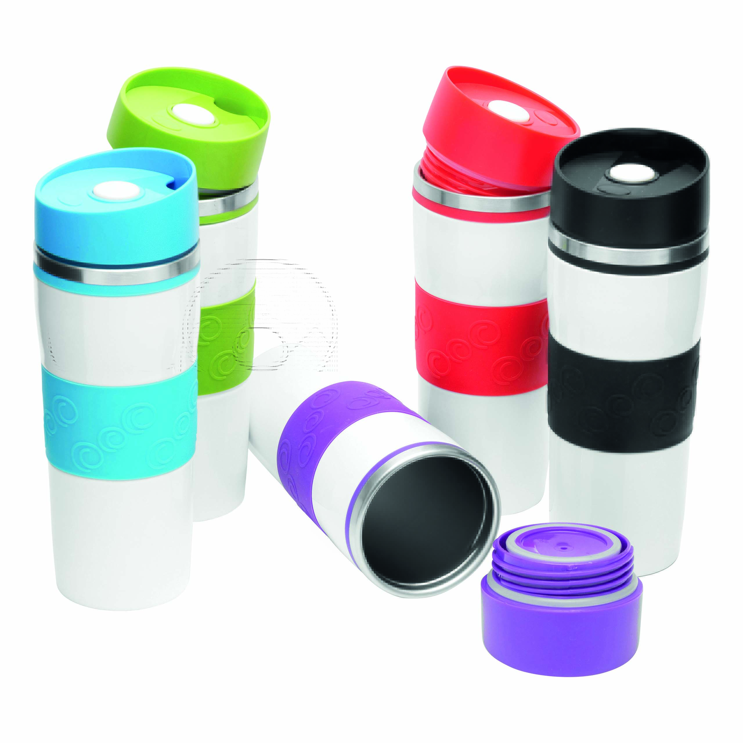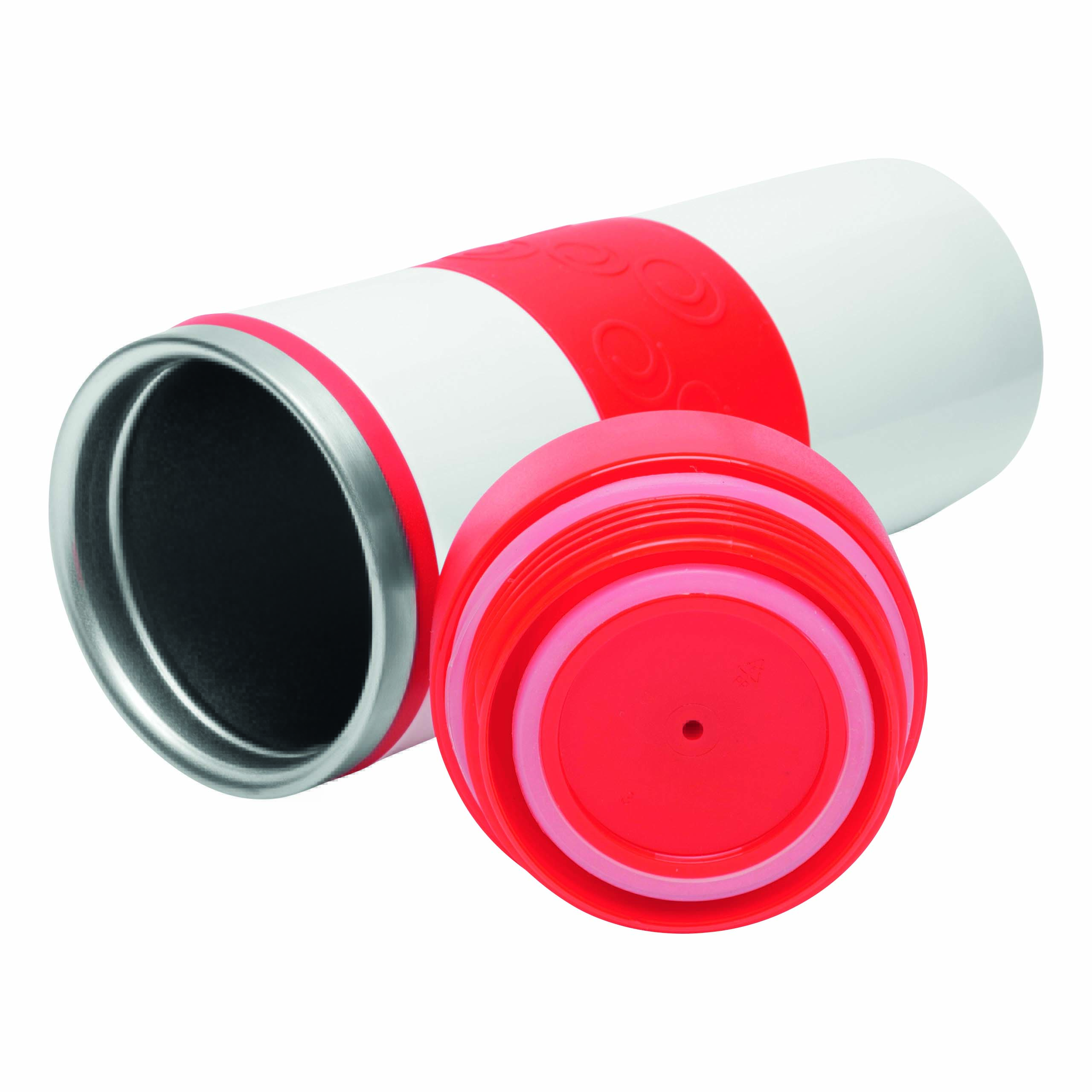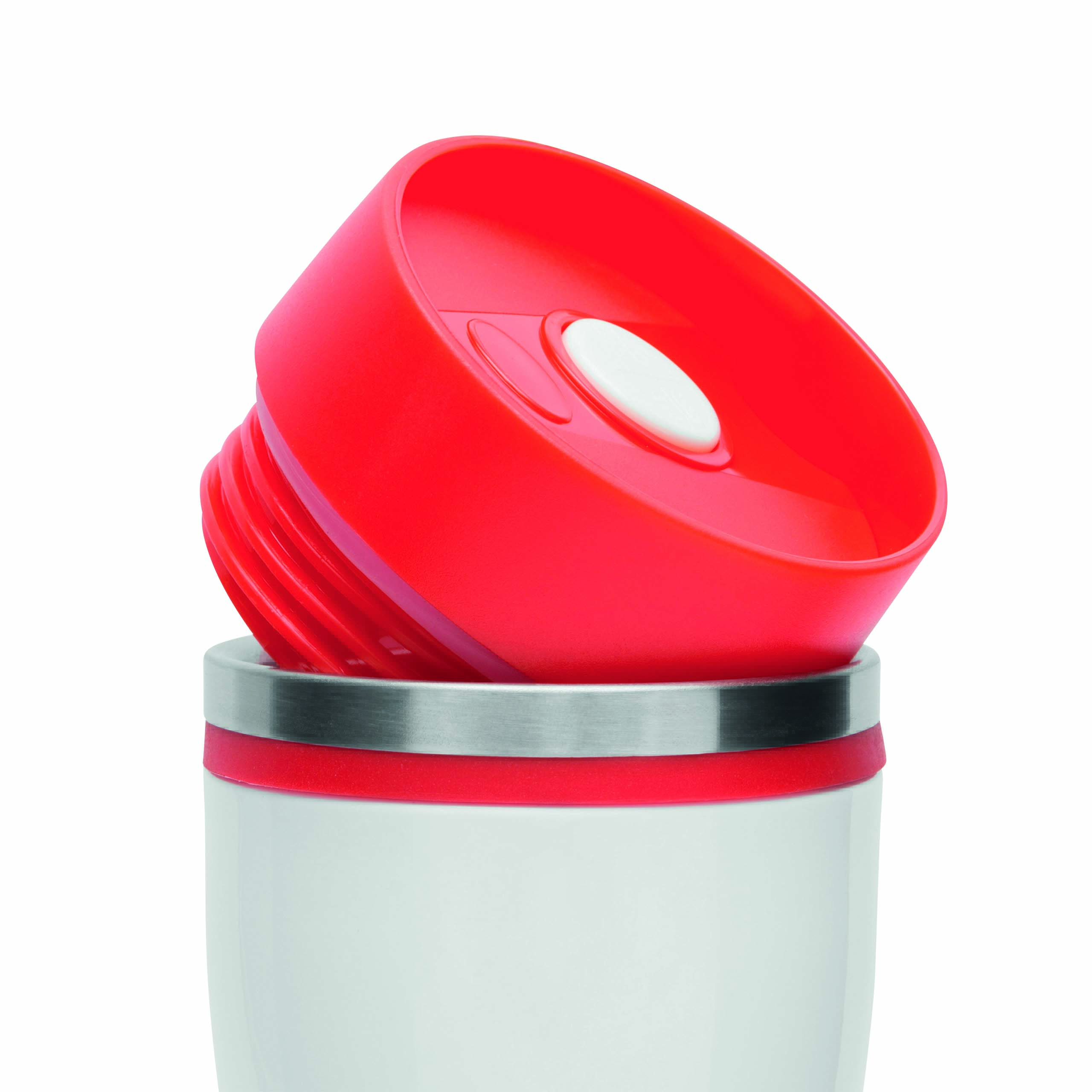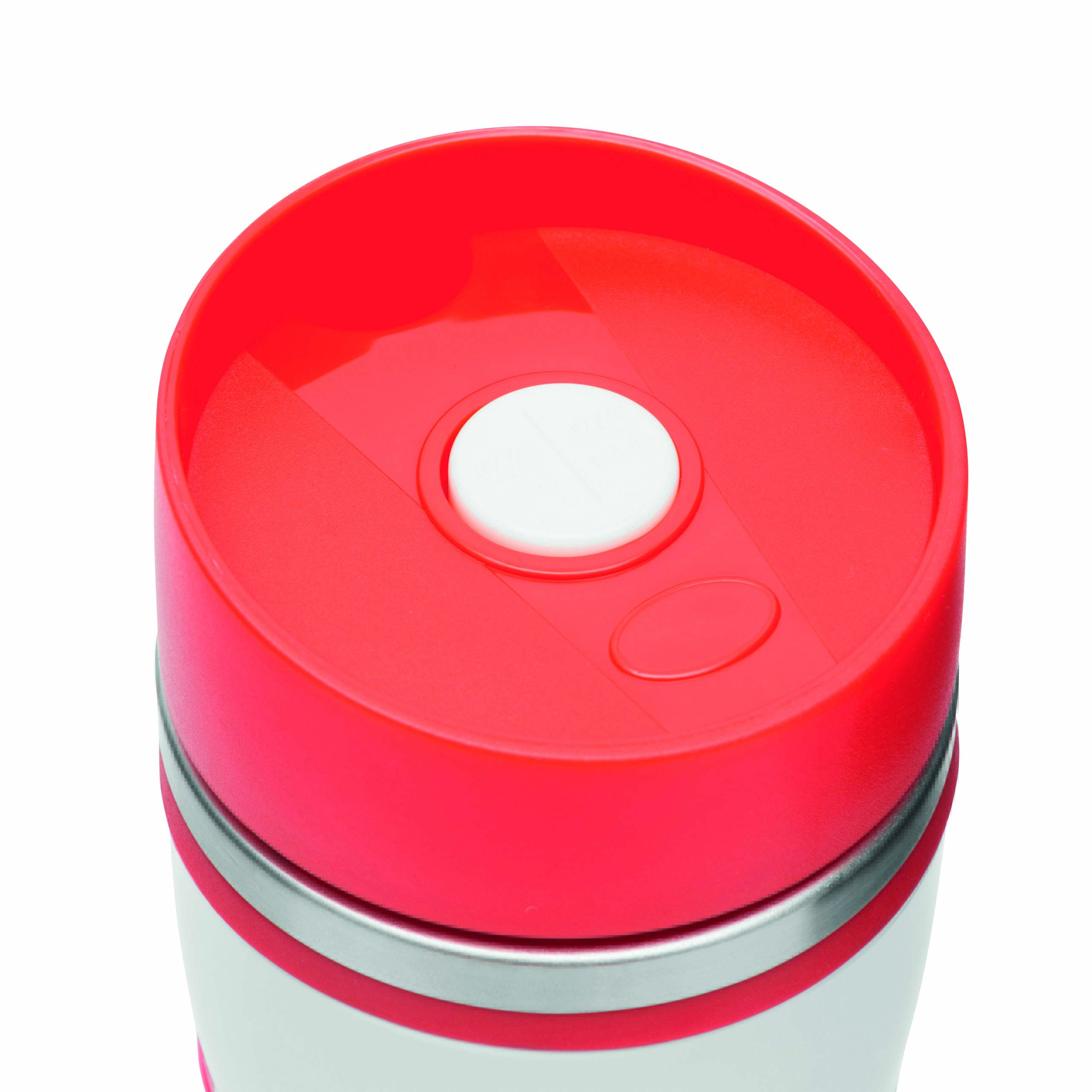 Kubek termiczny ARABICA wykonany ze stali nierdzewnej na zewnątrz i wewnątrz. Kolorowe odkręcane wieczko, przycisk OPEN/CLOSE i wbudowany otwór do picia, kolorowa, silikonowa tuleja i gumowy spód dla lepszej przyczepności, pojemność ok. 400 ml.