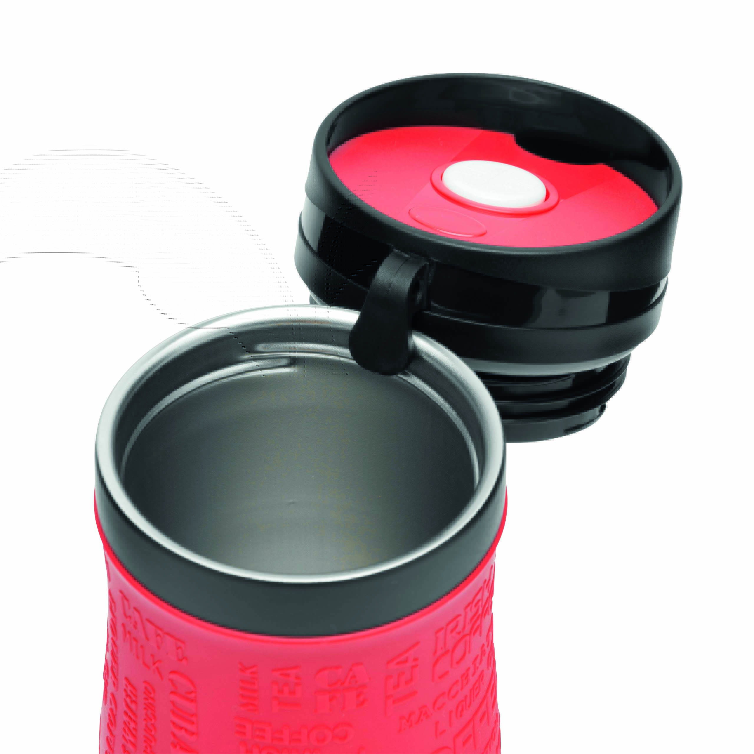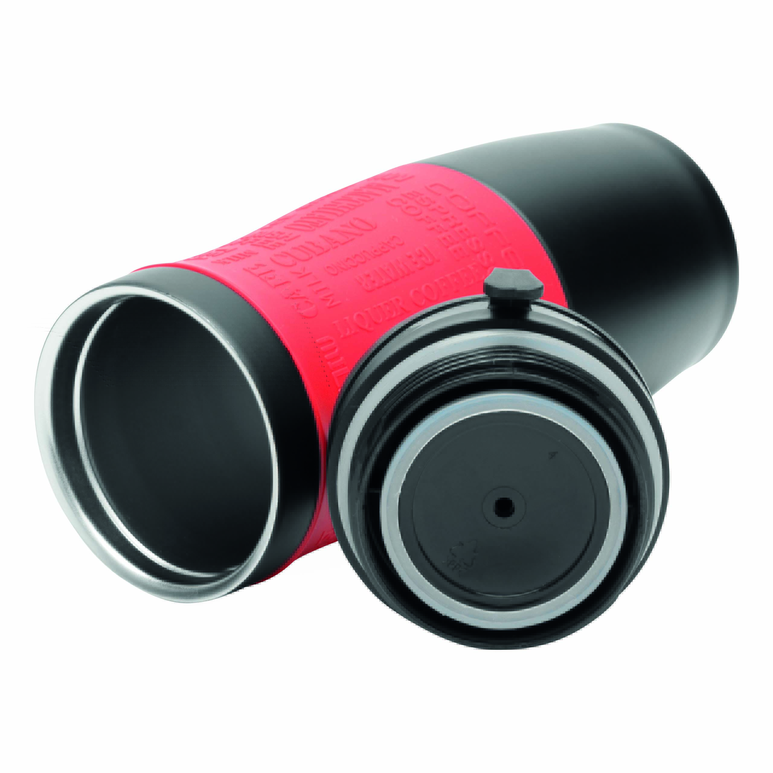 Kubek termiczny GOLDEN DREAM wewnątrz i na zewnątrz ze stali nierdzewnej. Plastikowe odkręcane wieczko, przesuwane zamknięcie wbudowanego otworu do picia, w wieczku wbudowany haczyk do zawieszania, kolorowa, gumowana, silikonowa nakładka dla lepszej przyczepności, ok. 380 ml pojemności, pakowany w pudełko.