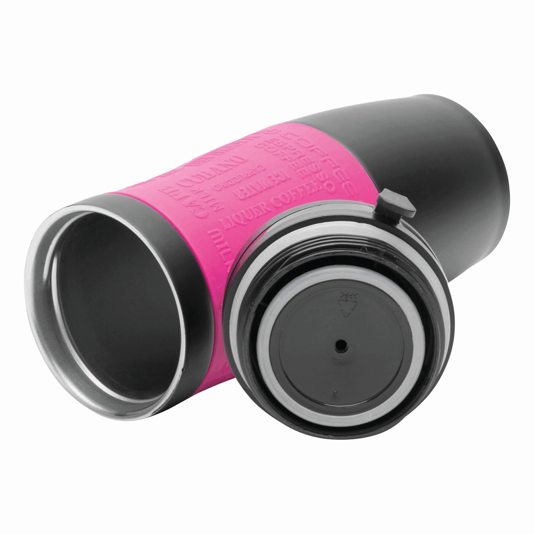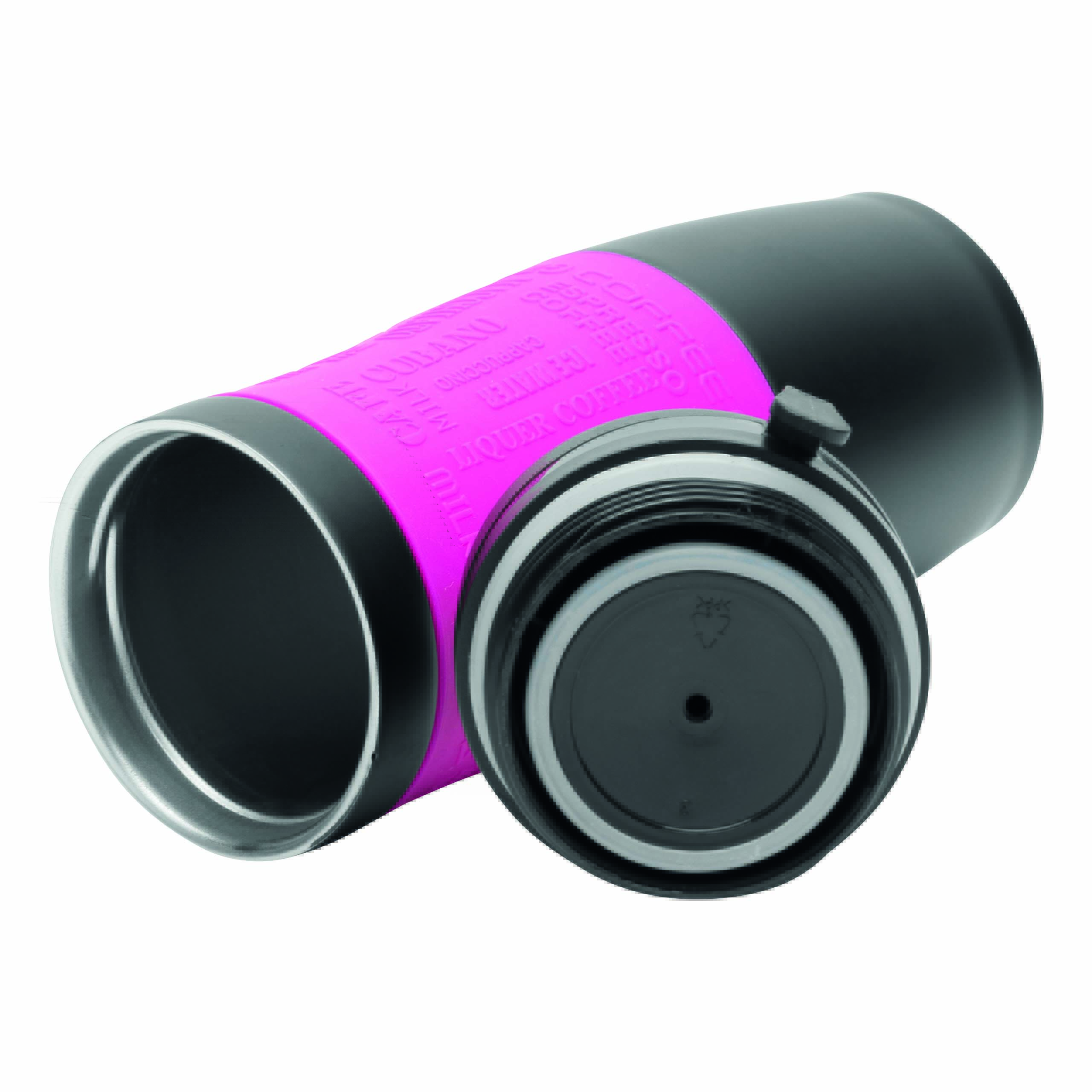 Kubek termiczny GOLDEN DREAM wewnątrz i na zewnątrz ze stali nierdzewnej. Plastikowe odkręcane wieczko, przesuwane zamknięcie wbudowanego otworu do picia, w wieczku wbudowany haczyk do zawieszania, kolorowa, gumowana, silikonowa nakładka dla lepszej przyczepności, ok. 380 ml pojemności, pakowany w pudełko.